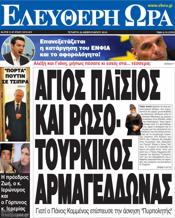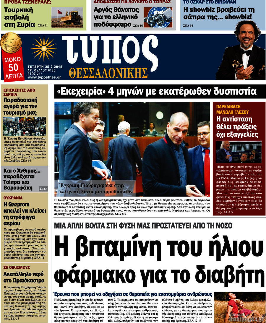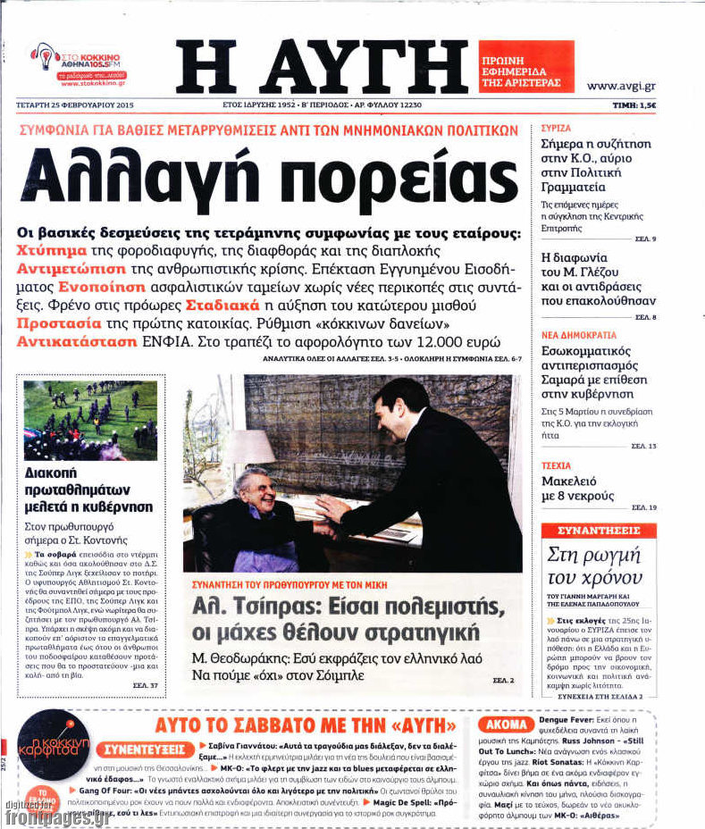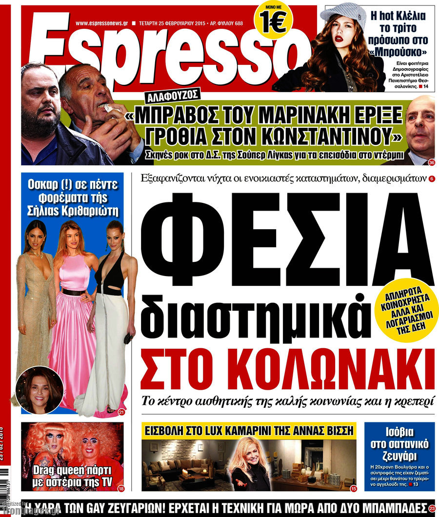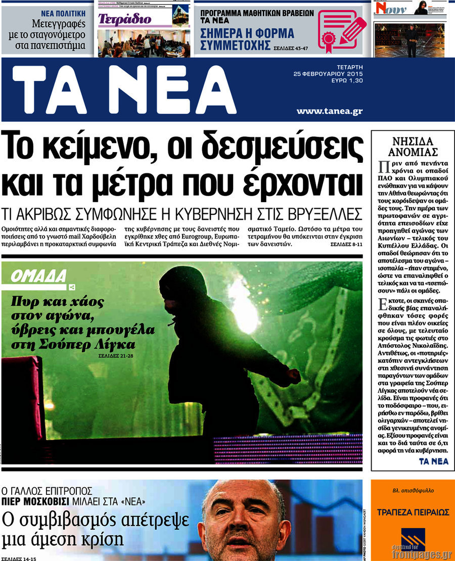 Οι πολιτικές εφημερίδες Enikos Newsroom 07:53, Τετάρτη 25 Φεβρουαρίου 2015 Media Διαβάστε τα σημερινά πρωτοσέλιδα των πολιτικών εφημερίδων: ΕΦΗΜΕΡΙΔΕΣ ΠΟΛΙΤΙΚΕΣ ΕΦΗΜΕΡΙΔΕΣ ΠΡΩΤΟΣΕΛΙΔΑ Μοιράσου το: σχολίασε κι εσύ (0 σχόλια) Ακολουθήστε το enikos.gr στο Google News και μάθετε πρώτοι όλες τις ειδήσεις Δείτε όλες τις τελευταίες ειδήσεις από την Ελλάδα και τον Κόσμο στο enikos.gr Ειδήσεις Ροή Ειδήσεων 4 ώρες πριν Υπόθεση Έπσταϊν: Το Υπουργείο Δικαιοσύνης δημοσιοποίησε μια σειρά από εξαιρετικά επεξεργασμένα αρχεία – «Λείπουν τα πιο σημαντικά έγγραφα», λένε οι Δημοκρατικοί 56 λεπτά πριν Γιορτές με μπλόκα για τους αγρότες: Ανοίγουν διόδια και μοιράζουν προϊόντα στους ταξιδιώτες 1 ώρα πριν Εξαφάνιση 33χρονου γιατρού στην Κρήτη: «Άναψα τα φώτα, τρόμαξε και άρχισε να τρέχει στα χωράφια» – Η τελευταία διαδρομή και η μαρτυρία «κλειδί» 3 ώρες πριν Ο «χάρτης» με τις αυξήσεις και τις φοροελαφρύνσεις του 2026 – Ποιοι και πόσα κερδίζουν 1 ώρα πριν Τα αρχεία του Έπσταϊν αποκαλύπτουν φωτογραφία του έκπτωτου πρίγκιπα Άντριου – Είναι ξαπλωμένος στην αγκαλιά 5 γυναικών 1 ώρα πριν Μία νέα «χρυσή» περίοδος αρχίζει για 3 ζώδια από σήμερα – «Μία αναπάντεχη ευκαιρία οδηγεί στην επιτυχία» 6 ώρες πριν Αυγά: Πόσα μπορείτε να τρώτε την ημέρα με ασφάλεια για μέγιστη πρόσληψη πρωτεΐνης 3 ώρες πριν Αρχαιολόγοι ανακάλυψαν σε χωράφι απεικόνιση 600 ετών ενός Αγίου – Τα στοιχεία που δείχνουν ότι μαρτύρησε 2 ώρες πριν Αγχώνεται για το χριστουγεννιάτικο δώρο που πήρε στην πλούσια σύντροφό του – «Φοβάμαι πως θα το βρει φθηνιάρικο, φοράει βραχιόλια Cartier» 5 λεπτά πριν Τραγωδία στην άσφαλτο στα Χανιά: Νεκρός 37χρονος οδηγός ΙΧ – Τον βρήκαν ώρες μετά το τροχαίο 13 λεπτά πριν Τα Labubu «μετακομίζουν» στο Χόλιγουντ: Η Sony Pictures ετοιμάζει live-action ταινία με τον σκηνοθέτη του «Wonka» 21 λεπτά πριν Νέες ταυτότητες: Μεγάλη αναμονή για ραντεβού στην Αττική – Τέλος τα ταξίδια εκτός Ελλάδος από τον Αύγουστο για όσους δεν έχουν αλλάξει 29 λεπτά πριν Οι 7 φράσεις που δεν λένε ποτέ οι συναισθηματικά έξυπνοι άνθρωποι κατά τη διάρκεια ενός καβγά 33 λεπτά πριν Τηλεθέαση (19/12): Ανατροπές και πρωτιές στην πρωινή ζώνη ENIKOS NETWORK Είστε μόνιμα απρόσεκτοι; 3 σημάδια που δείχνουν ότι μπορεί να είναι σύμπτωμα πάθησης Πόσα κιλά παίρνουμε πραγματικά τα Χριστούγεννα, σύμφωνα με την επιστήμη – Πώς να το αποτρέψουμε; e-ΕΦΚΑ και ΔΥΠΑ: Έρχονται νέες πληρωμές έως τις 24 Δεκεμβρίου – Ποιοι πάνε ταμείο Επίδομα παιδιού: Τι αλλάζει από το 2026 – Το όφελος από τις φορολογικές ελαφρύνσεις Χαρτογραφώντας το «σημείο χωρίς επιστροφή»: Για πρώτη φορά αποκαλύπτεται με λεπτομέρεια το ακανθώδες όριο της ατμόσφαιρας τ... Η Google καταργεί τη λειτουργία «dark web report» – Πώς θα μπορούν οι χρήστες να διαγράφουν τα δεδομένα τους περισσότερα 09:30 , Σάββατο 20 Δεκεμβρίου 2025 «Porto Leone: Στη γειτονιά με τα κόκκινα φανάρια» – Ο Χρόνης αποκαλύπτει στην Αλεξάνδρα το μυστικό για το παιδί της Λένας Η μεγάλη δραματική σειρά του Apha «Porto Leone: Στη γειτονιά με τα κόκκινα φανάρια» μας μεταφέ... 08:14 , Σάββατο 20 Δεκεμβρίου 2025 Τρομεροί γονείς: Η Μαρία Καβογιάννη εισβάλλει στο σπίτι της οικογένειας Στεφανίδη Όσα θα δούμε στο νέο διπλό επεισόδιο της σειράς «Τρομεροί γονείς», σήμερα Σάββατο 20 Δεκεμβρίο... 05:48 , Σάββατο 20 Δεκεμβρίου 2025 Οι οικονομικές εφημερίδες 20/12/2025 Διαβάστε τα πρωτοσέλιδα από τις οικονομικές εφημερίδες, σήμερα 20/12/2025. 05:43 , Σάββατο 20 Δεκεμβρίου 2025 Οι αθλητικές εφημερίδες 20/12/2025 Διαβάστε τα πρωτοσ