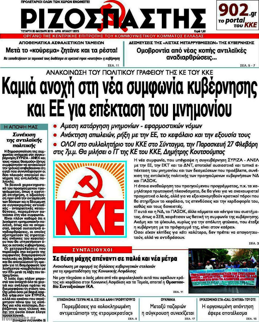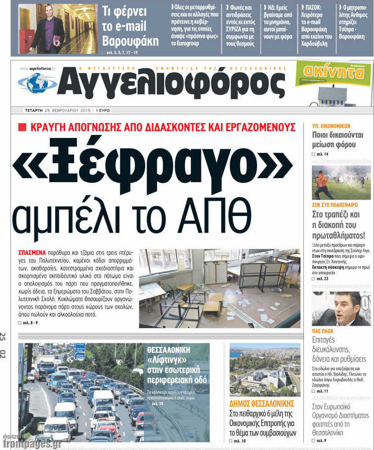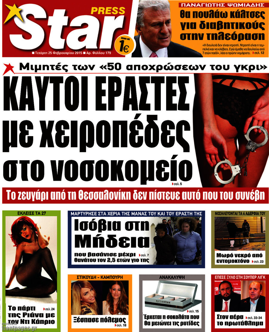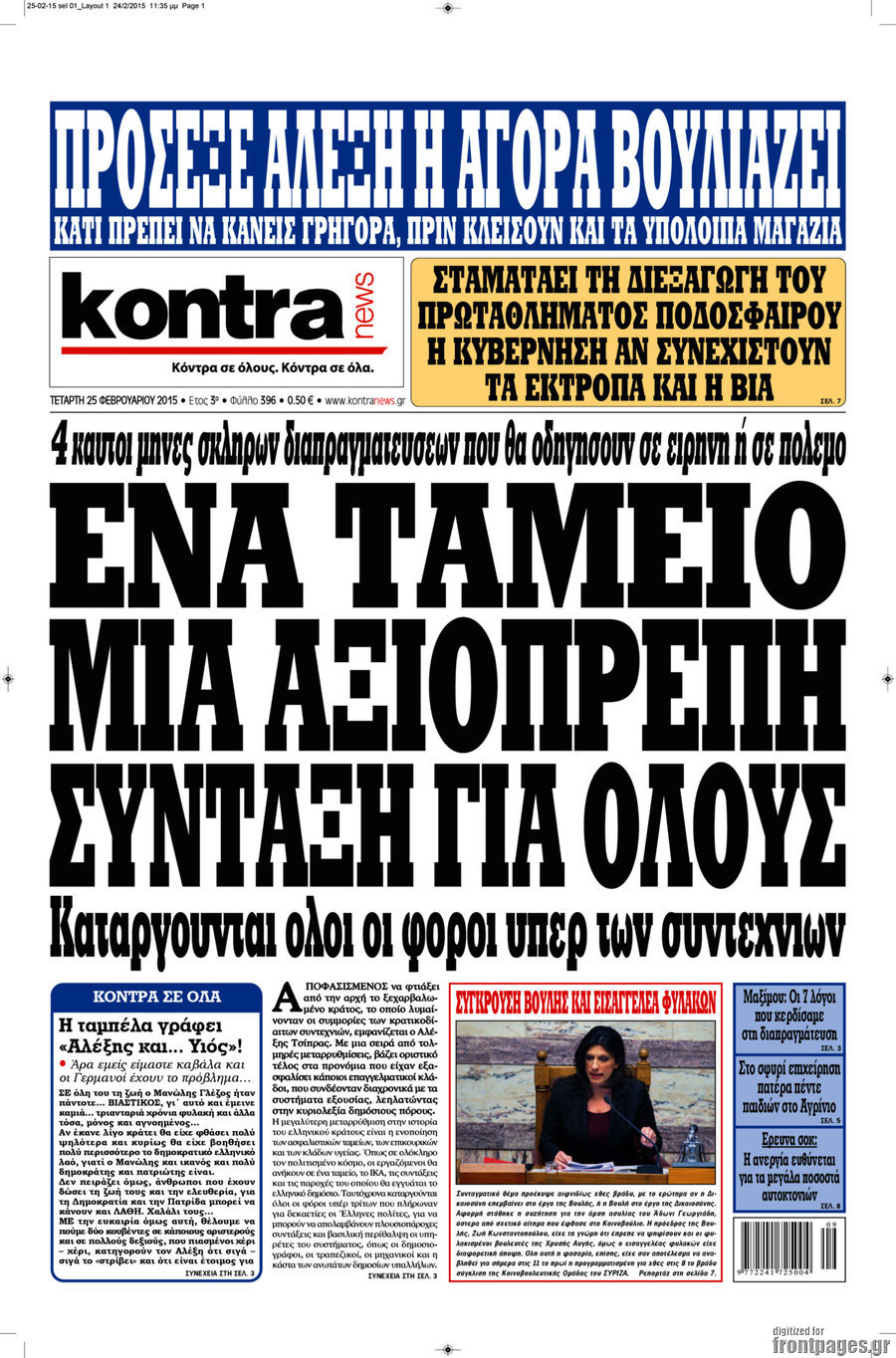 Οι πολιτικές εφημερίδες Enikos Newsroom 07:53, Τετάρτη 25 Φεβρουαρίου 2015 Media Διαβάστε τα σημερινά πρωτοσέλιδα των πολιτικών εφημερίδων: ΕΦΗΜΕΡΙΔΕΣ ΠΟΛΙΤΙΚΕΣ ΕΦΗΜΕΡΙΔΕΣ ΠΡΩΤΟΣΕΛΙΔΑ Μοιράσου το: σχολίασε κι εσύ (0 σχόλια) Ακολουθήστε το enikos.gr στο Google News και μάθετε πρώτοι όλες τις ειδήσεις Δείτε όλες τις τελευταίες ειδήσεις από την Ελλάδα και τον Κόσμο στο enikos.gr Ειδήσεις Ροή Ειδήσεων 4 ώρες πριν Υπόθεση Έπσταϊν: Το Υπουργείο Δικαιοσύνης δημοσιοποίησε μια σειρά από εξαιρετικά επεξεργασμένα αρχεία – «Λείπουν τα πιο σημαντικά έγγραφα», λένε οι Δημοκρατικοί 56 λεπτά πριν Γιορτές με μπλόκα για τους αγρότες: Ανοίγουν διόδια και μοιράζουν προϊόντα στους ταξιδιώτες 1 ώρα πριν Εξαφάνιση 33χρονου γιατρού στην Κρήτη: «Άναψα τα φώτα, τρόμαξε και άρχισε να τρέχει στα χωράφια» – Η τελευταία διαδρομή και η μαρτυρία «κλειδί» 3 ώρες πριν Ο «χάρτης» με τις αυξήσεις και τις φοροελαφρύνσεις του 2026 – Ποιοι και πόσα κερδίζουν 1 ώρα πριν Τα αρχεία του Έπσταϊν αποκαλύπτουν φωτογραφία του έκπτωτου πρίγκιπα Άντριου – Είναι ξαπλωμένος στην αγκαλιά 5 γυναικών 1 ώρα πριν Μία νέα «χρυσή» περίοδος αρχίζει για 3 ζώδια από σήμερα – «Μία αναπάντεχη ευκαιρία οδηγεί στην επιτυχία» 6 ώρες πριν Αυγά: Πόσα μπορείτε να τρώτε την ημέρα με ασφάλεια για μέγιστη πρόσληψη πρωτεΐνης 3 ώρες πριν Αρχαιολόγοι ανακάλυψαν σε χωράφι απεικόνιση 600 ετών ενός Αγίου – Τα στοιχεία που δείχνουν ότι μαρτύρησε 2 ώρες πριν Αγχώνεται για το χριστουγεννιάτικο δώρο που πήρε στην πλούσια σύντροφό του – «Φοβάμαι πως θα το βρει φθηνιάρικο, φοράει βραχιόλια Cartier» 5 λεπτά πριν Τραγωδία στην άσφαλτο στα Χανιά: Νεκρός 37χρονος οδηγός ΙΧ – Τον βρήκαν ώρες μετά το τροχαίο 13 λεπτά πριν Τα Labubu «μετακομίζουν» στο Χόλιγουντ: Η Sony Pictures ετοιμάζει live-action ταινία με τον σκηνοθέτη του «Wonka» 21 λεπτά πριν Νέες ταυτότητες: Μεγάλη αναμονή για ραντεβού στην Αττική – Τέλος τα ταξίδια εκτός Ελλάδος από τον Αύγουστο για όσους δεν έχουν αλλάξει 29 λεπτά πριν Οι 7 φράσεις που δεν λένε ποτέ οι συναισθηματικά έξυπνοι άνθρωποι κατά τη διάρκεια ενός καβγά 33 λεπτά πριν Τηλεθέαση (19/12): Ανατροπές και πρωτιές στην πρωινή ζώνη ENIKOS NETWORK Είστε μόνιμα απρόσεκτοι; 3 σημάδια που δείχνουν ότι μπορεί να είναι σύμπτωμα πάθησης Πόσα κιλά παίρνουμε πραγματικά τα Χριστούγεννα, σύμφωνα με την επιστήμη – Πώς να το αποτρέψουμε; e-ΕΦΚΑ και ΔΥΠΑ: Έρχονται νέες πληρωμές έως τις 24 Δεκεμβρίου – Ποιοι πάνε ταμείο Επίδομα παιδιού: Τι αλλάζει από το 2026 – Το όφελος από τις φορολογικές ελαφρύνσεις Χαρτογραφώντας το «σημείο χωρίς επιστροφή»: Για πρώτη φορά αποκαλύπτεται με λεπτομέρεια το ακανθώδες όριο της ατμόσφαιρας τ... Η Google καταργεί τη λειτουργία «dark web report» – Πώς θα μπορούν οι χρήστες να διαγράφουν τα δεδομένα τους περισσότερα 09:30 , Σάββατο 20 Δεκεμβρίου 2025 «Porto Leone: Στη γειτονιά με τα κόκκινα φανάρια» – Ο Χρόνης αποκαλύπτει στην Αλεξάνδρα το μυστικό για το παιδί της Λένας Η μεγάλη δραματική σειρά του Apha «Porto Leone: Στη γειτονιά με τα κόκκινα φανάρια» μας μεταφέ... 08:14 , Σάββατο 20 Δεκεμβρίου 2025 Τρομεροί γονείς: Η Μαρία Καβογιάννη εισβάλλει στο σπίτι της οικογένειας Στεφανίδη Όσα θα δούμε στο νέο διπλό επεισόδιο της σειράς «Τρομεροί γονείς», σήμερα Σάββατο 20 Δεκεμβρίο... 05:48 , Σάββατο 20 Δεκεμβρίου 2025 Οι οικονομικές εφημερίδες 20/12/2025 Διαβάστε τα πρωτοσέλιδα από τις οικονομικές εφημερίδες, σήμερα 20/12/2025. 05:43 , Σάββατο 20 Δεκεμβρίου 2025 Οι αθλητικές εφημερίδες 20/12/2025 Διαβάστε τα πρωτοσ