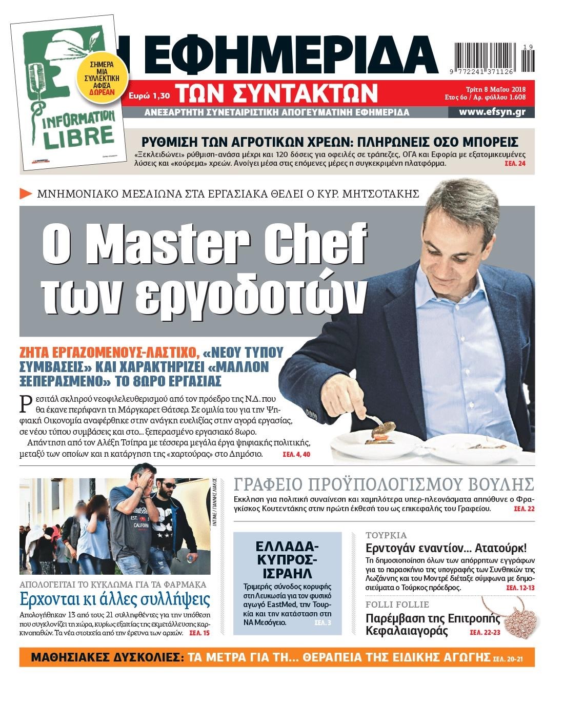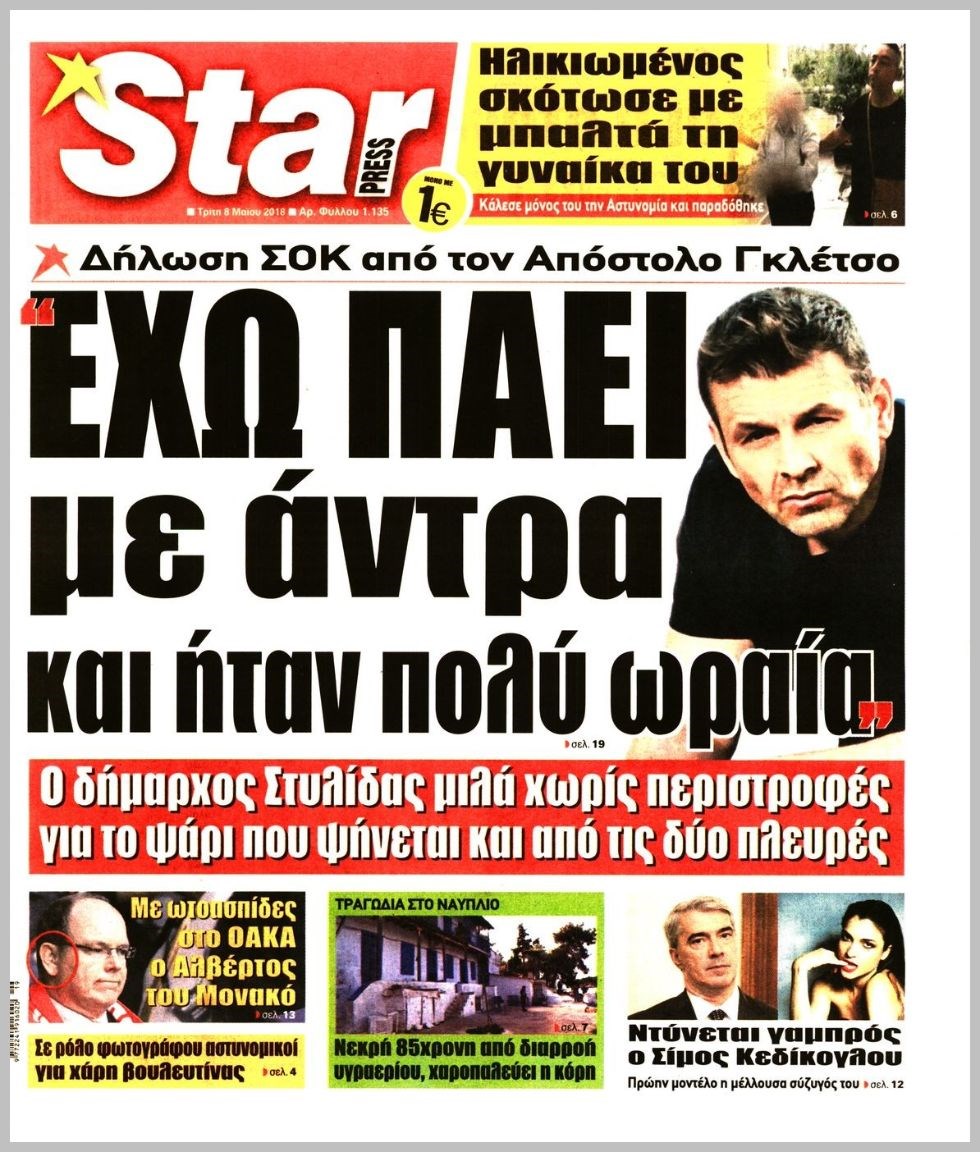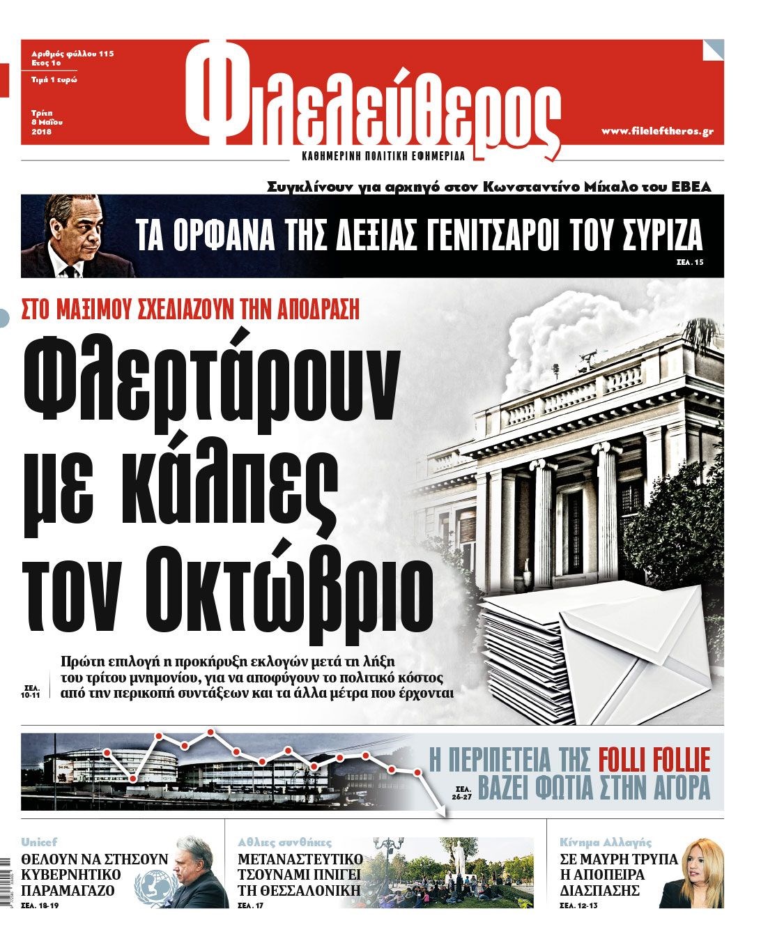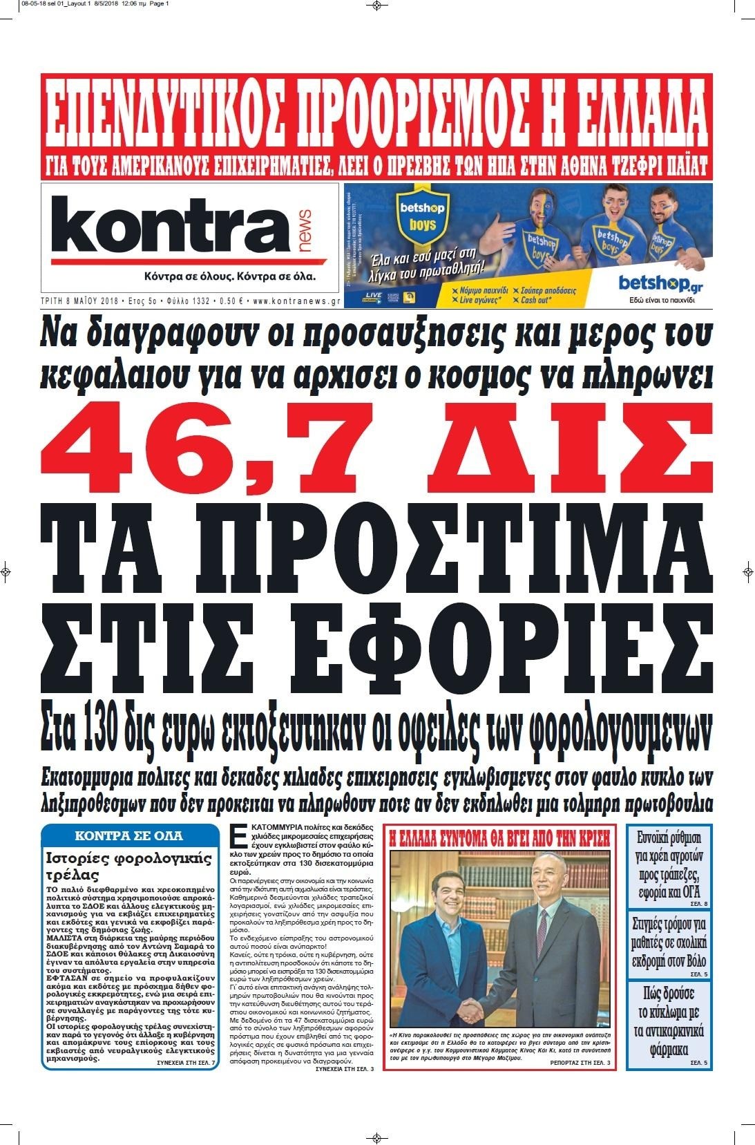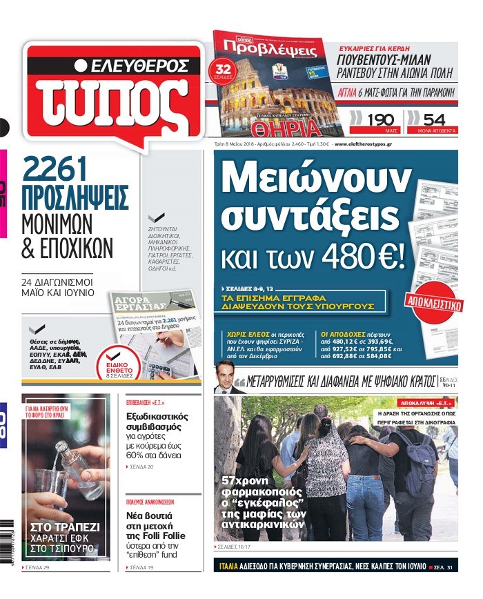 Οι πολιτικές εφημερίδες 8/5/2018 Κώστας Τεό 06:11, Τρίτη 08 Μαΐου 2018 Media Διαβάστε τα σημερινά πρωτοσέλιδα των πολιτικών εφημερίδων: ΠΟΛΙΤΙΚΕΣ ΕΦΗΜΕΡΙΔΕΣ ΠΡΩΤΟΣΕΛΙΔΑ Μοιράσου το: σχολίασε κι εσύ (0 σχόλια) Ακολουθήστε το enikos.gr στο Google News και μάθετε πρώτοι όλες τις ειδήσεις Δείτε όλες τις τελευταίες ειδήσεις από την Ελλάδα και τον Κόσμο στο enikos.gr Ειδήσεις Ροή Ειδήσεων 1 ώρα πριν Πώς δρούσε το κύκλωμα που διακινούσε ναρκωτικά σε σχολεία – Υπέβαλαν σε βασανιστήρια όσους δεν τηρούσαν τους «κανόνες πειθαρχίας» 2 ώρες πριν Αγρότες: Γιορτές στα μπλόκα με ανοιχτά διόδια – Δικογραφία στα Ιωάννινα για το σήκωμα των μπαρών 5 ώρες πριν Αρχεία Έπσταϊν: Οι συγκλονιστικές φωτογραφίες – Ο Μάικλ Τζάκσον, ο Μικ Τζάγκερ και ο Κέβιν Σπέισι ανάμεσα στους διάσημους που απεικονίζονται 18 λεπτά πριν NBC: Ο Νετανιάχου σχεδιάζει να ενημερώσει τον Τραμπ για πιθανά νέα πλήγματα εναντίον του Ιράν 28 λεπτά πριν Αττική: Εξαρθρώθηκε εγκληματική οργάνωση που έκλεβε οχήματα, τα παραποιούσε και τα μεταπωλούσε σε πολίτες – Πώς δρούσε το κύκλωμα 2 ώρες πριν Η τύχη χαμογελά σε 3 ζώδια έως τις 28 Δεκεμβρίου – «Προσέξτε τις επιλογές σας και η επιμονή σας θα ανταμειφθεί» 6 ώρες πριν Διαιτολόγος αποκαλύπτει 9 πρωινές συνήθειες που «λιώνουν» το κοιλιακό λίπος – «Υποστηρίζουν την υγιεινή απώλεια βάρους» 3 ώρες πριν Μία ανεκμετάλλευτη πηγή θα μπορούσε να προσφέρει ανεξάντλητη ενέργεια – Οι επιστήμονες ίσως γνωρίζουν πώς να την ξεκλειδώσουν 9 ώρες πριν Enerwave: Το νέο «ρεύμα» στη λιανική ενέργειας που αλλάζει την εμπειρία του καταναλωτή 9 λεπτά πριν Μικαέλα Μπέντχαους: Ο πρώτος άνθρωπος σε αναπηρικό αμαξίδιο που ταξίδεψε στο διάστημα – ΒΙΝΤΕΟ 18 λεπτά πριν NBC: Ο Νετανιάχου σχεδιάζει να ενημερώσει τον Τραμπ για πιθανά νέα πλήγματα εναντίον του Ιράν 28 λεπτά πριν Αττική: Εξαρθρώθηκε εγκληματική οργάνωση που έκλεβε οχήματα, τα παραποιούσε και τα μεταπωλούσε σε πολίτες – Πώς δρούσε το κύκλωμα 36 λεπτά πριν Κωνσταντίνος Αργυρός: «Δεν θέλω να ασχοληθώ με την πολιτική σε αυτή τη φάση – Μου έχουν γίνει προτάσεις» 45 λεπτά πριν Σέρρες: Διέρρηξαν διαμέρισμα και «βούτηξαν» ρολόγια συνολικής αξίας 15.000 ευρώ – 3 συλλήψεις ENIKOS NETWORK Η αποχή από την αναπαραγωγή παρατείνει τη ζωή στα ζώα, σύμφωνα με μελέτη – Τι ισχύει για τους ανθρώπους; Σημαντικές επαφές στις ΗΠΑ είχε ο υπουργός Υγείας Άδωνις Γεωργιάδης Στα ύψη ο χρυσός – Νέο ρεκόρ στην τιμή της λίρας, πόσο πωλείται Τέλη κυκλοφορίας 2026: Προσοχή στην προθεσμία εξόφλησής τους – Πώς διαμορφώνονται τα πρόστιμα σε περίπτωση καθυστέρησης Χαρτογραφώντας το «σημείο χωρίς επιστροφή»: Για πρώτη φορά αποκαλύπτεται με λεπτομέρεια το ακανθώδες όριο της ατμόσφαιρας τ... Η Google καταργεί τη λειτουργία «dark web report» – Πώς θα μπορούν οι χρήστες να διαγράφουν τα δεδομένα τους περισσότερα 14:04 , Σάββατο 20 Δεκεμβρίου 2025 Η Realnews αυτής της Κυριακής (21/12/2025) Με τίτλο: «Ασπίδα προστασίας για την Ελλάδα» κυκλοφορεί, αυτήν την Κυριακή, η Realnews. Σημαντ... 12:53 , Σάββατο 20 Δεκεμβρίου 2025 Να μ’ αγαπάς: Το παρελθόν έρχεται στο φως – Καταιγιστικές εξελίξεις στα τελευταία επεισόδια του 2025 Ο Άγγελος αποκαλύπτεται, η Φωτεινή ανησυχεί για τον Λευτέρη και η Ζωή έρχεται αντιμέτωπη με το... 11:41 , Σάββατο 20 Δεκεμβρίου 2025 «Η αγάπη δεν χάνεται ποτέ»: Η μικρού μήκους ταινία κινουμένων σχεδίων που θέτει ερωτήματα για τη ζωή και τον θάνατο Ο θάνατος είναι ένα από τα πιο σκληρά θέματα που καλείται να διαχειριστεί κάπο