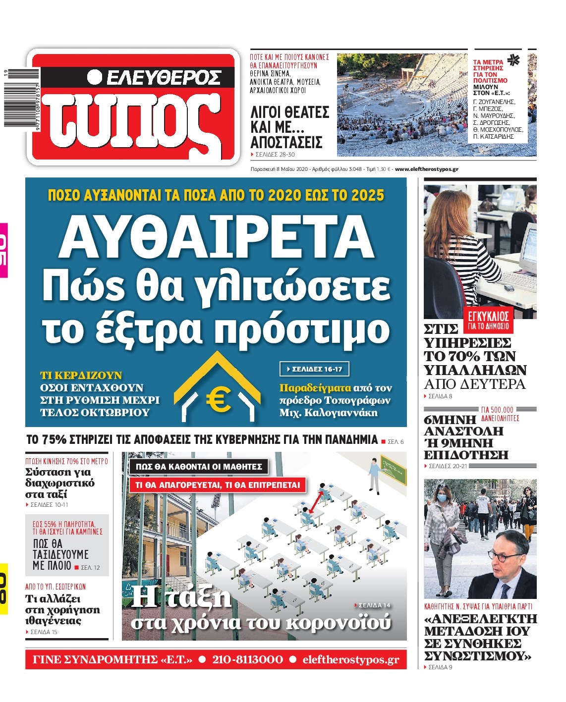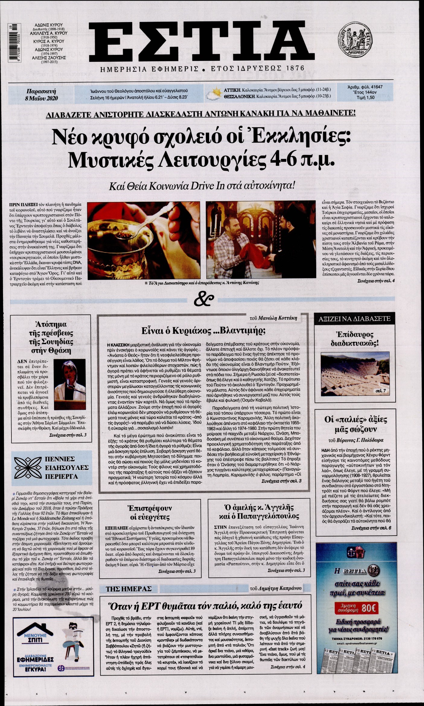Οι πολιτικές εφημερίδες 8/5/2020 Διονύσης Νίκκας 06:10, Παρασκευή 08 Μαΐου 2020 Media Διαβάστε τα πρωτοσέλιδα των πολιτικών εφημερίδων… ΠΟΛΙΤΙΚΕΣ ΕΦΗΜΕΡΙΔΕΣ ΠΡΩΤΟΣΕΛΙΔΑ Μοιράσου το: σχολίασε κι εσύ (0 σχόλια) Ακολουθήστε το enikos.gr στο Google News και μάθετε πρώτοι όλες τις ειδήσεις Δείτε όλες τις τελευταίες ειδήσεις από την Ελλάδα και τον Κόσμο στο enikos.gr Ειδήσεις Ροή Ειδήσεων 2 ώρες πριν Χριστούγεννα στα μπλόκα: Επιμένουν στις κινητοποιήσεις τους οι αγρότες – Ανοίγουν τα διόδια το Σαββατοκύριακο 2 ώρες πριν Ουκρανία: Η άνευ προηγουμένου επίθεση σε ρωσικό τάνκερ στη Μεσόγειο και το μήνυμα προς στον Πούτιν – Το «μακρύ χέρι» του Κιέβου 2 ώρες πριν Πούτιν: Τα μηνύματα σε Ευρώπη και ΝΑΤΟ από το μαραθώνιο «σόου» του – Η απαίτηση για «σεβασμό» και η ειρήνη «με τους όρους» της Μόσχας 3 ώρες πριν Τραμπ: Δεν αποκλείει την πιθανότητα ενός πολέμου στη Βενεζουέλα – «Ο Μαδούρο ξέρει καλύτερα από τον καθένα τι ακριβώς θέλω» 3 ώρες πριν Συνεχίζει να προκαλεί ο Μίτσκοσκι: «Για μένα το όνομα Μακεδονία είναι ιερό» 2 ώρες πριν Ανακαλύφθηκαν αρχαία χρυσά νομίσματα 2.200 ετών που απεικονίζουν τον θεό Απόλλωνα – Η άγνωστη σύνδεση με τον Φίλιππο Β΄ της Μακεδονίας 3 ώρες πριν Ύπνος: Μια κρυφή κατάσταση του εγκεφάλου πριν από τον ύπνο μπορεί να είναι το “κλειδί” για υψηλή ευφυΐα και δημιουργικότητα 4 ώρες πριν Αριθμολογία: Οι άνθρωποι που έχουν γεννηθεί αυτές τις 4 ημερομηνίες, συχνά παρεξηγούνται – «Η καλοσύνη τους κρύβει τεράστια δύναμη» 5 ώρες πριν Ξεχάστε το καθάρισμα το Σαββατοκύριακο: Ο «κανόνας των 20 λεπτών» που θα σας λύσει τα χέρια 15 λεπτά πριν Φαίη Σκορδά: «Παλιότερα τα κομπλιμέντα τα προσπερνούσα, τώρα τα έχω ανάγκη» 31 λεπτά πριν Βασίλης Σπανούλης: Δεν εμφανίστηκε ούτε ένας δημοσιογράφος στην συνέντευξη Τύπου – «Καλησπέρα στον… κανέναν», δείτε βίντεο 42 λεπτά πριν Πόλεμος στην Ουκρανία: Εφτά νεκροί από ρωσική πυραυλική επίθεση στο λιμάνι της Οδησσού 46 λεπτά πριν ΗΠΑ: Η κυβέρνηση του Ντόναλντ Τραμπ άρχισε να δημοσιοποιεί τα αρχεία Έπσταϊν 57 λεπτά πριν Σάμος: Άνοιξε το μπλόκο των αγροτών στον κόμβο Κοκκαρίου – Σε νέα συνεδρίαση θα καθορίσουν την στάση τους ENIKOS NETWORK Το ΕΚΑΒ τιμήθηκε από την Ακαδημία Αθηνών για τα 40 χρόνια προσφοράς του Έχετε πραγματικά μεγάλη καρδιά; 10 χαρακτηριστικά όσων έχουν καλοσύνη Αναστολή μέτρων αναγκαστικής εκτέλεσης για κτηνοτρόφους που πλήττονται από την ευλογιά των αιγοπροβάτων Πλήρης επάρκεια προϊόντων στις λαϊκές της Αττικής, παρά τις αγροτικές κινητοποιήσεις – Τι απαντούν οι πωλητές Χαρτογραφώντας το «σημείο χωρίς επιστροφή»: Για πρώτη φορά αποκαλύπτεται με λεπτομέρεια το ακανθώδες όριο της ατμόσφαιρας τ... Η Google καταργεί τη λειτουργία «dark web report» – Πώς θα μπορούν οι χρήστες να διαγράφουν τα δεδομένα τους περισσότερα 22:42 , Παρασκευή 19 Δεκεμβρίου 2025 Γιώργος Γιαννόπουλος για “Το σόι σου”: “Είναι ευτυχία και ευλογία αυτή η σειρά” «Είναι ευτυχία και ευλογία η συγκυρία αυτής της σειράς», θα πει ο Γιώργος Γιαννόπουλος -ο αγαπ... 20:37 , Παρασκευή 19 Δεκεμβρίου 2025 Don’t Forget The Lyrics: Η Έλλη Κοκκίνου υποδέχεται 4 παίκτες που θα κάνουν τα πάντα για να μη χάσουν ούτε… μισή λέξη από τους στίχους Το «Don’t Forget The Lyrics» επιστρέφει απόψε, Παρασκευή 19 Δεκεμβρίου, στις 21:00 με νέο επει... 19:31 , Παρασκευή 19 Δεκεμβρίου 2025 GNTM: Απόψε ο μεγάλος τελικός για τους 4 φιναλίστ Έπειτα από μήνες γεμάτους μόδα, δημιουργία και έντονες αναμετρήσεις, το GNTM 2025 κορυφώνεται,... 18:11 , Παρασ