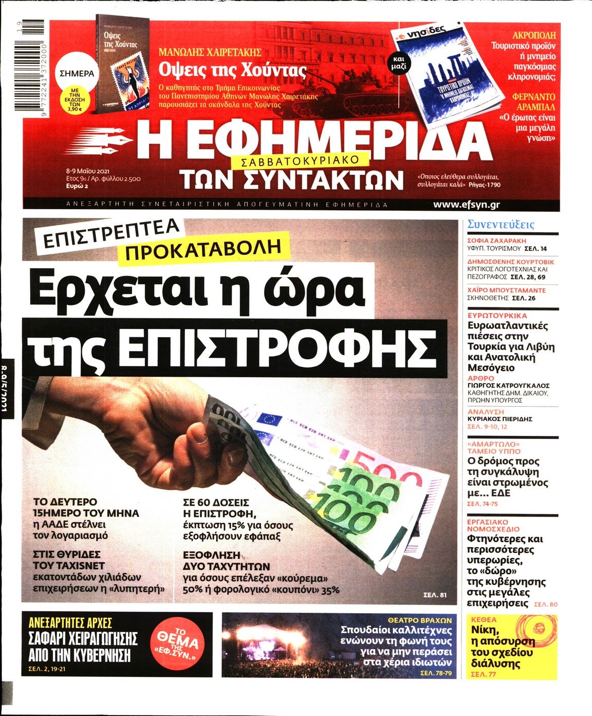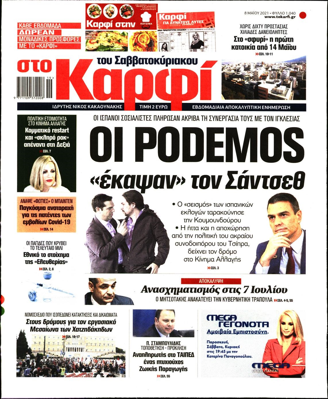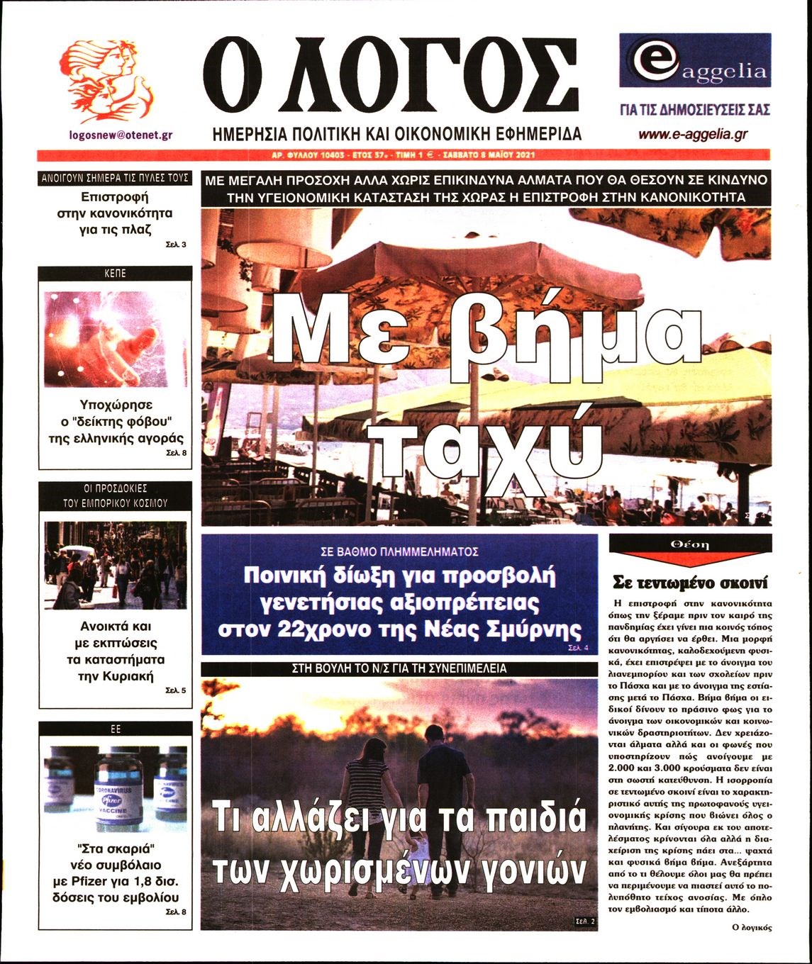 Οι πολιτικές εφημερίδες 8/5/2021 Σήφης Γαρυφαλάκης 07:27, Σάββατο 08 Μαΐου 2021 Media Διαβάστε τα πρωτοσέλιδα των πολιτικών εφημερίδων. ΕΦΗΜΕΡΙΔΕΣ ΠΟΛΙΤΙΚΕΣ ΕΦΗΜΕΡΙΔΕΣ ΠΡΩΤΟΣΕΛΙΔΑ ΠΡΩΤΟΣΕΛΙΔΑ ΕΦΗΜΕΡΙΔΩΝ Μοιράσου το: σχολίασε κι εσύ (0 σχόλια) Ακολουθήστε το enikos.gr στο Google News και μάθετε πρώτοι όλες τις ειδήσεις Δείτε όλες τις τελευταίες ειδήσεις από την Ελλάδα και τον Κόσμο στο enikos.gr Ειδήσεις Ροή Ειδήσεων 3 ώρες πριν Αυξάνουν την πίεση προς την κυβέρνηση οι αγρότες: Κλείνουν παρακαμπτήριους και ανοίγουν διόδια – Τι θα γίνει τις γιορτές 2 ώρες πριν ΟΠΕΚΕΠΕ: Προφυλακιστέος ο φερόμενος αρχηγός και ο λογιστής της εγκληματικής οργάνωσης 3 ώρες πριν Φοινικούντα: Το Σάββατο απολογείται ο 30χρονος γιος γνωστού επιχειρηματία της Πλάκας που παραδόθηκε – Όσα είπε στους αστυνομικούς και ο ρόλος του στο έγκλημα 3 ώρες πριν Μπορεί ο Μαδούρο να αντέξει τον αποκλεισμό του Τραμπ; Τι θα χρειαστεί η Ουάσινγκτον για να τον ανατρέψει 4 ώρες πριν Πρίγκιπας Ουίλιαμ – Κέιτ: Η νέα οικογενειακή φωτογραφία για τις Χριστουγεννιάτικες κάρτες του 2025 4 ώρες πριν Ύπνος: Η απλή βραδινή ρουτίνα για να προστατεύσετε τα μαλλιά σας από το κρύο κατά τη διάρκεια του χειμώνα 5 ώρες πριν Manifesting: Πώς να συναντήσετε τον σύντροφο της ζωής σας, ανάλογα με τον μήνα γέννησής σας 2 ημέρες πριν 20 χρόνια τα Χριστούγεννα ξεκινούν στα Public με μεγάλη ποικιλία σε δώρα! 3 ώρες πριν Αρχαιολόγοι ανακάλυψαν ρωμαϊκά τεχνουργήματα από μια πόλη που δεν υπήρξε ποτέ – Τα τρία εντυπωσιακά κτίρια και ο αμφορέας με τις… σαρδέλες 14 λεπτά πριν Μάρκο Νίκολιτς: «Είμαι περήφανος για τους παίκτες μου, όποιος αντίπαλος και να έρθει θα προετοιμαστούμε» 23 λεπτά πριν ΟΗΕ: Την εκλογή του νέου ύπατου αρμοστή για τους Πρόσφυγες Μπαρχάμ Άχμεντ Σαλίχ χαιρέτησε ο Αντόνιο Γκουτέρες 27 λεπτά πριν Σύνοδος Κορυφής στις Βρυξέλλες: Ακόμη πιο κοντά σε διέξοδο για τη χρηματοδότηση της Ουκρανίας 35 λεπτά πριν ΟΗΕ: Iστορική επίσκεψη του Συμβουλίου Ασφαλείας στη Δαμασκό – Mήνυμα Ελλάδας για συμπερίληψη και λογοδοσία 42 λεπτά πριν Νέος πρέσβης της Μεγάλης Βρετανίας στις ΗΠΑ ο Κρίστιαν Τέρνερ ENIKOS NETWORK Σε περίοδο αυξημένης δραστηριότητας η γρίπη στην Ελλάδα-Μέτρα προστασίας από τον ΕΟΔΥ Σκέφτεστε συνέχεια συζητήσεις που έχετε κάνει; Τι σημαίνει αυτό, σύμφωνα με ειδικό Στεγαστικό: Τι λέει η ΠΟΜΙΔΑ για τα νέα μέτρα που ανακοίνωσε ο Κυριάκος Μητσοτάκης Λαγκάρντ: Αισιόδοξη για την ανάπτυξη της Ευρωζώνης, αβέβαιη για τον πληθωρισμό Χαρτογραφώντας το «σημείο χωρίς επιστροφή»: Για πρώτη φορά αποκαλύπτεται με λεπτομέρεια το ακανθώδες όριο της ατμόσφαιρας τ... Η Google καταργεί τη λειτουργία «dark web report» – Πώς θα μπορούν οι χρήστες να διαγράφουν τα δεδομένα τους περισσότερα 17:45 , Πέμπτη 18 Δεκεμβρίου 2025 ROUK ZOUK: Εορταστικό επεισόδιο με καλεσμένους τους πρωταγωνιστές του «Γιατί ρε πατέρα» Το Σάββατο 20 Δεκεμβρίου στις 21:00, η Ζέτα Μακρυπούλια υποδέχεται εκλεκτούς ηθοποιούς που όλο... 17:20 , Πέμπτη 18 Δεκεμβρίου 2025 Άγιος έρωτας: Η Χριστίνα εξομολογείται στον πατέρα Νικόλαο, απόψε στις 21:00 στον Alpha Η Νότα αποφασίζει να εκδικηθεί τον Πέτρο και τον Στέφανο, για χάρη του Λούη, όμως τα πράγματα ... 16:50 , Πέμπτη 18 Δεκεμβρίου 2025 Να μ’ αγαπάς: Ζωή και Φωτεινή συμφιλιώνονται ως μάνα με κόρη, απόψε στις 20:00 Η ταυτότητα του Άγγελου αποκαλύπτεται στο νέο επεισόδιο της σειράς “Να μ’ αγαπάς... 15:52 , Πέμπτη 18 Δεκεμβρίου 2025 Το Σπίτι Δίπλα Στο Ποτάμι: Το καθηλωτικό τελευταίο επεισόδιο για τ
