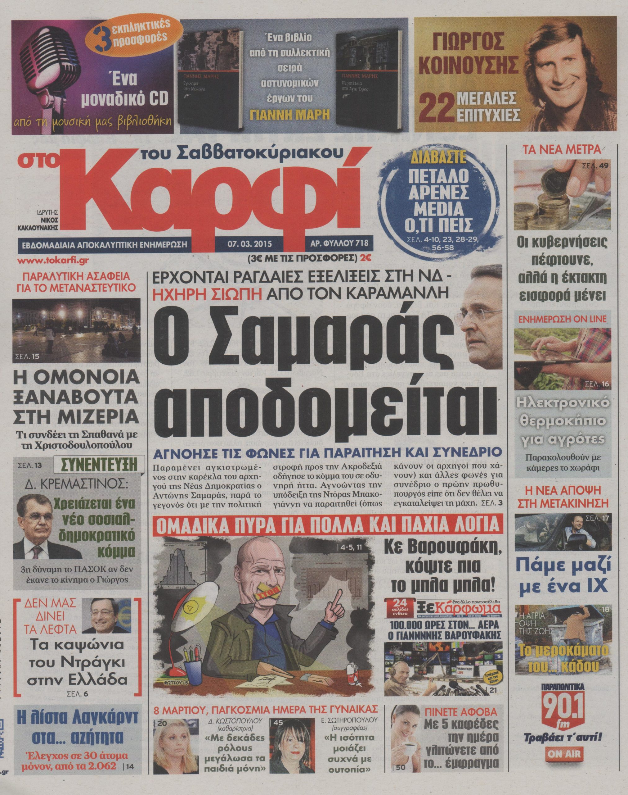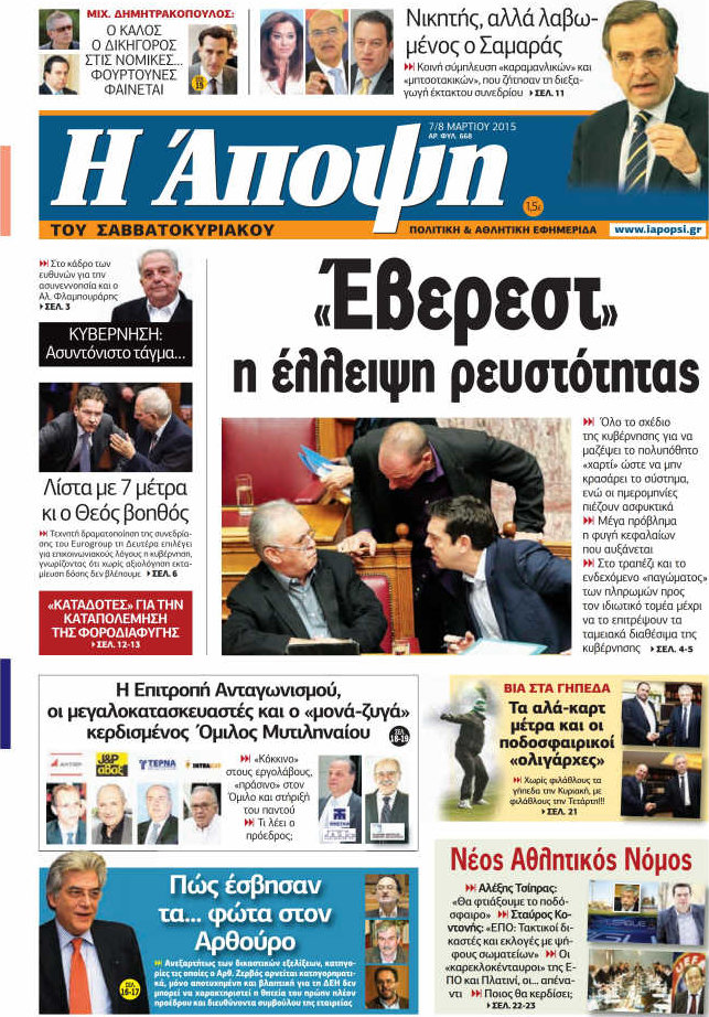Οι πολιτικές εφημερίδες Enikos Newsroom 07:34, Σάββατο 07 Μαρτίου 2015 Media Ακολουθούν κι άλλα πρωτοσ ΠΟΛΙΤΙΚΕΣ ΕΦΗΜΕΡΙΔΕΣ ΠΡΩΤΟΣΕΛΙΔΑ Μοιράσου το: σχολίασε κι εσύ (0 σχόλια) Ακολουθήστε το enikos.gr στο Google News και μάθετε πρώτοι όλες τις ειδήσεις Δείτε όλες τις τελευταίες ειδήσεις από την Ελλάδα και τον Κόσμο στο enikos.gr Ειδήσεις Ροή Ειδήσεων 3 ώρες πριν Μητσοτάκης σε αγρότες: Είμαστε ανοιχτοί στον διάλογο, αλλά όχι στο παράλογο – Η διεκδίκηση αιτημάτων οφείλει να γίνεται με σεβασμό στο κοινωνικό σύνολο 2 ώρες πριν Κηφισιά: Δύο συλλήψεις για ληστεία με λεία 180.000 ευρώ – Βίντεο ντοκουμέντα από τη δράση των συλληφθέντων 3 ώρες πριν Γρίπη: «Καμπανάκι» από τους επιστήμονες για έξαρση κρουσμάτων στις γιορτές – Ποιοι κινδυνεύουν και πώς προστατευόμαστε 1 ώρα πριν Ρωσία: Δεν προετοιμάζεται συνάντηση Αμερικανών, Ρώσων και Ουκρανών απεσταλμένων, ανακοίνωσε το Κρεμλίνο 4 ώρες πριν Η οικογενειακή διαμάχη των Μπέκαμ: Το block από τον Μπρούκλιν και η απόφαση να περάσει τα Χριστούγεννα με τους δισεκατομμυριούχους γονείς της συζύγου του 3 ώρες πριν Τα άστρα ευνοούν σκανδαλωδώς 4 ζώδια – «Εμφανίζονται ξαφνικά ευκαιρίες γιατί αποφασίζετε να αφήσετε πίσω το παρελθόν» 2 ώρες πριν Προπονήτρια γυμναστικής που έχασε 9 κιλά αποκαλύπτει: «Αυτοί είναι οι 5 παράγοντες που εμποδίζουν την απώλεια βάρους» 1 ώρα πριν Οι άνθρωποι που στρώνουν το κρεβάτι τους κάθε πρωί, διαθέτουν αυτές τις 8 κρυφές δυνάμεις 1 ημέρα πριν Enerwave: Το νέο «ρεύμα» στη λιανική ενέργειας που αλλάζει την εμπειρία του καταναλωτή 8 λεπτά πριν Ισραήλ: Πράσινο φως για τη δημιουργία 19 νέων οικισμών στη Δυτική Όχθη 16 λεπτά πριν Κρήτη: Συνελήφθη 53χρονος που είχε στο σπίτι του ρούχα με… διακριτικά της Αστυνομίας και του Πολεμικού Ναυτικού 24 λεπτά πριν Κίνα: Έφτιαξαν χιονάνθρωπο ύψους 19 μέτρων – Βίντεο timelapse 32 λεπτά πριν Λειψυδρία: Πού βρισκόμαστε σήμερα και πώς προετοιμάζεται η ΕΥΔΑΠ για το επόμενο κρίσιμο διάστημα 40 λεπτά πριν Maestro – Χριστόφορος Παπακαλιάτης: Θα δείτε εκπλήξεις – Θα προβληθεί τον Οκτώβριο ENIKOS NETWORK Φοράτε ψηλοτάκουνα παπούτσια; Ποδίατροι συμβουλεύουν πόσο ψηλά επιτρέπεται να είναι και πώς να τα επιλέξετε Άσκηση: η «ασπίδα» του εγκεφάλου απέναντι στη γήρανση Χριστουγεννιάτικο τραπέζι: Πόσο θα αγοράσετε φέτος τη γαλοπούλα και το μοσχάρι – Πού κυμαίνονται οι τιμές για μελομακάρονα ... Φοροδιαφυγή: Πώς τα ψηφιακά εργαλεία άλλαξαν τα δεδομένα το 2025 και έφεραν δισεκατομμύρια στα ταμεία του Δημοσίου Χαρτογραφώντας το «σημείο χωρίς επιστροφή»: Για πρώτη φορά αποκαλύπτεται με λεπτομέρεια το ακανθώδες όριο της ατμόσφαιρας τ... Η Google καταργεί τη λειτουργία «dark web report» – Πώς θα μπορούν οι χρήστες να διαγράφουν τα δεδομένα τους περισσότερα 09:43 , Κυριακή 21 Δεκεμβρίου 2025 Το λάθος στην ταινία Die Hard που άφησε άναυδους τους θαυμαστές του Μπρους Γουίλις Ένας φανατικός των ταινιών άφησε άναυδους τους θαυμαστές του Die Hard, επισημαίνοντας τρία βασ... 08:13 , Κυριακή 21 Δεκεμβρίου 2025 Άγιος έρωτας: Ένας καταστροφικός σεισμός χτυπά τη Στέρνα Καταιγιστικές είναι οι εξελίξεις στα δυο τελευταία, συγκλονιστικά επεισόδια του 2025 της σειρά... 08:00 , Κυριακή 21 Δεκεμβρίου 2025 Σήμερα με τη Realnews: Ό,τι και αν αγοράσεις, σκανάρεις και κερδίζεις! Σήμερα με τη Realnews: Ό,τι και αν αγοράσεις, σκανάρεις και κερδίζεις! Με το PADU app, το κορυ... 07:00 , Κυριακή 21 Δεκεμβρίου 2025 Σήμερα με τη Realnews: Instyle, μαζί Drive και Realnews Geopolitics Σήμερα με τη Realnews: Instyle, μαζί Drive και Realnews Geopolitics In