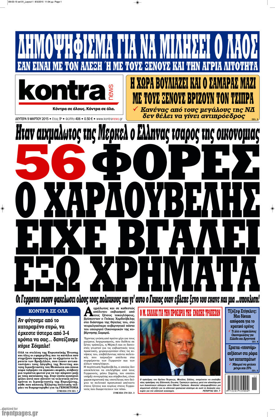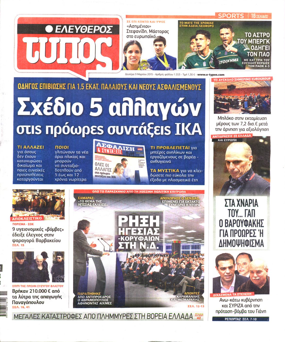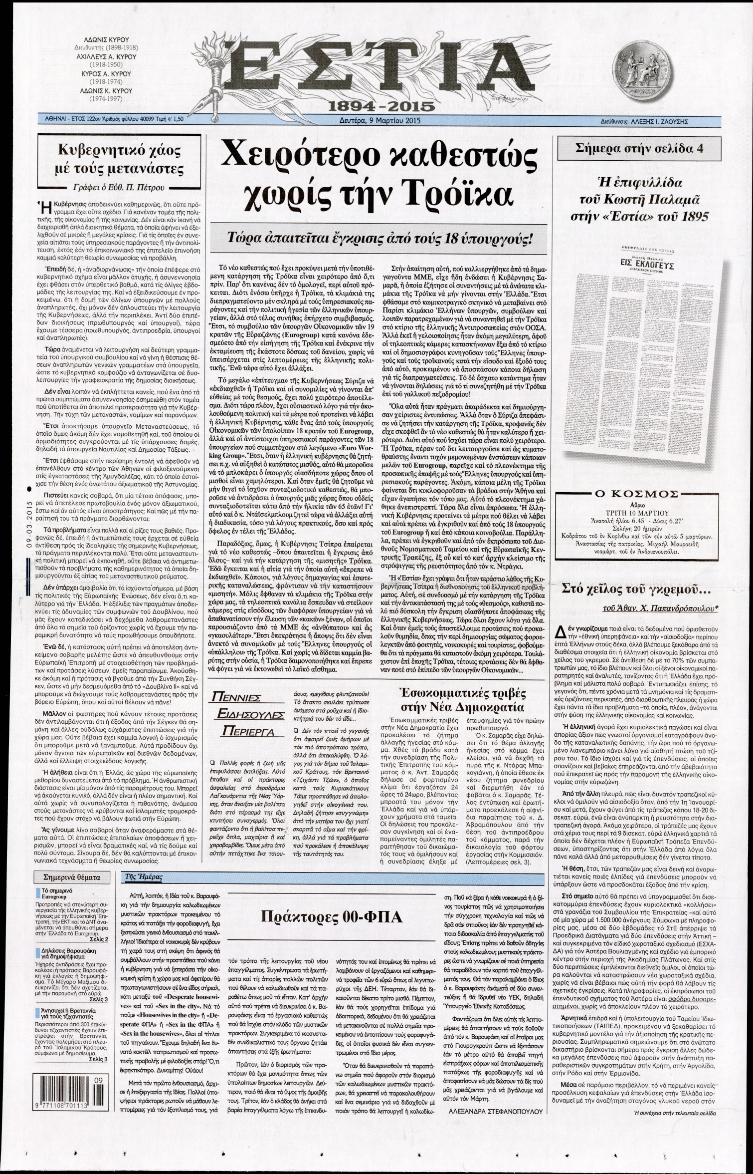 Οι πολιτικές εφημερίδες Enikos Newsroom 07:41, Δευτέρα 09 Μαρτίου 2015 Media Διαβάστε τα σημερινά πρωτοσέλιδα των πολιτικών εφημερίδων: ΕΦΗΜΕΡΙΔΕΣ ΠΟΛΙΤΙΚΕΣ ΕΦΗΜΕΡΙΔΕΣ ΠΡΩΤΟΣΕΛΙΔΑ Μοιράσου το: σχολίασε κι εσύ (0 σχόλια) Ακολουθήστε το enikos.gr στο Google News και μάθετε πρώτοι όλες τις ειδήσεις Δείτε όλες τις τελευταίες ειδήσεις από την Ελλάδα και τον Κόσμο στο enikos.gr Ειδήσεις Ροή Ειδήσεων 2 ώρες πριν Κυριάκος Μητσοτάκης: «Κάποιοι αγρότες δεν αισθάνονται την ανάγκη να διαφωνήσουν με τις προτάσεις της κυβέρνησης, η Ευρώπη στέκεται στο πλευρό της Ουκρανίας» 7 ώρες πριν ΟΠΕΚΕΠΕ: Προφυλακιστέος ο φερόμενος αρχηγός και ο λογιστής της εγκληματικής οργάνωσης 8 ώρες πριν Αυξάνουν την πίεση προς την κυβέρνηση οι αγρότες: Κλείνουν παρακαμπτήριους και ανοίγουν διόδια – Τι θα γίνει τις γιορτές 8 ώρες πριν Φοινικούντα: Το Σάββατο απολογείται ο 30χρονος γιος γνωστού επιχειρηματία της Πλάκας που παραδόθηκε – Όσα είπε στους αστυνομικούς και ο ρόλος του στο έγκλημα 7 ώρες πριν ΑΕΚ – Κραϊόβα 3-2: Επική ανατροπή και πρόκριση στους «16» του Conference League η Ένωση 8 ώρες πριν Αρχαιολόγοι ανακάλυψαν ρωμαϊκά τεχνουργήματα από μια πόλη που δεν υπήρξε ποτέ – Τα τρία εντυπωσιακά κτίρια και ο αμφορέας με τις… σαρδέλες 9 ώρες πριν Ύπνος: Η απλή βραδινή ρουτίνα για να προστατεύσετε τα μαλλιά σας από το κρύο κατά τη διάρκεια του χειμώνα 10 ώρες πριν Manifesting: Πώς να συναντήσετε τον σύντροφο της ζωής σας, ανάλογα με τον μήνα γέννησής σας 2 ημέρες πριν 20 χρόνια τα Χριστούγεννα ξεκινούν στα Public με μεγάλη ποικιλία σε δώρα! 10 λεπτά πριν Φρίντριχ Μερτς: Χορήγηση άτοκου δανείου στην Ουκρανία συμφώνησαν τα κράτη – μέλη της ΕΕ 18 λεπτά πριν Απειλή για το Προϋπολογισμό τα ληξιπρόθεσμα χρέη των ιδιωτών προς την εφορία 18 λεπτά πριν Πέντε νεκροί σε πλήγματα των ΗΠΑ κατά δύο σκαφών που φέρεται να μετέφεραν ναρκωτικά στον Ανατολικό Ειρηνικό 26 λεπτά πριν ΕΥΔΑΠ: Αλλάζουν τα τιμολόγια του νερού 34 λεπτά πριν Οπτική ψευδαίσθηση: Μόνο αν έχεις αετίσια ματιά θα βρεις τον παπαγάλο σε 12 δευτερόλεπτα ENIKOS NETWORK Σε περίοδο αυξημένης δραστηριότητας η γρίπη στην Ελλάδα-Μέτρα προστασίας από τον ΕΟΔΥ Σκέφτεστε συνέχεια συζητήσεις που έχετε κάνει; Τι σημαίνει αυτό, σύμφωνα με ειδικό Στεγαστικό: Τι λέει η ΠΟΜΙΔΑ για τα νέα μέτρα που ανακοίνωσε ο Κυριάκος Μητσοτάκης Λαγκάρντ: Αισιόδοξη για την ανάπτυξη της Ευρωζώνης, αβέβαιη για τον πληθωρισμό Χαρτογραφώντας το «σημείο χωρίς επιστροφή»: Για πρώτη φορά αποκαλύπτεται με λεπτομέρεια το ακανθώδες όριο της ατμόσφαιρας τ... Η Google καταργεί τη λειτουργία «dark web report» – Πώς θα μπορούν οι χρήστες να διαγράφουν τα δεδομένα τους περισσότερα 05:48 , Παρασκευή 19 Δεκεμβρίου 2025 Οι οικονομικές εφημερίδες 19/12/2025 Διαβάστε τα πρωτοσέλιδα από τις οικονομικές εφημερίδες, σήμερα 19/12/2025. 05:43 , Παρασκευή 19 Δεκεμβρίου 2025 Οι αθλητικές εφημερίδες 19/12/2025 Διαβάστε τα πρωτοσέλιδα από τις αθλητικές εφημερίδες, σήμερα 19/12/2025. 05:38 , Παρασκευή 19 Δεκεμβρίου 2025 Οι πολιτικές εφημερίδες 19/12/2025 Διαβάστε τα πρωτοσέλιδα από τις πολιτικές εφημερίδες, σήμερα 19/12/2025. 02:50 , Παρασκευή 19 Δεκεμβρίου 2025 GNTM: «Κλείδωσαν» οι τέσσερις φιναλίστ – Μεγάλη ανατροπή στις τελευταίες αποχωρήσεις Για προτελευταία φορά εμφανίστηκαν στο πλατό του GNTM οι φιναλίστ του φετινού κύκλου, το βράδυ... ΤΕΛΕΥΤΑΙΕΣ ΕΙΔΗΣΕΙΣ 10 λεπτά πριν Φρίντριχ Μερτς: Χορήγηση άτοκου δανείου στην Ουκρανία... 18 λεπτά πριν Απειλή για το Προϋπολογισμό τα ληξιπρόθεσμα χρέη των... 18 λ