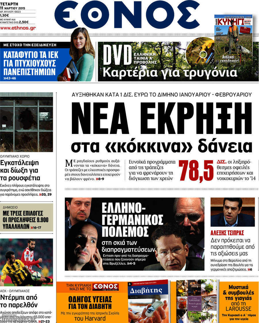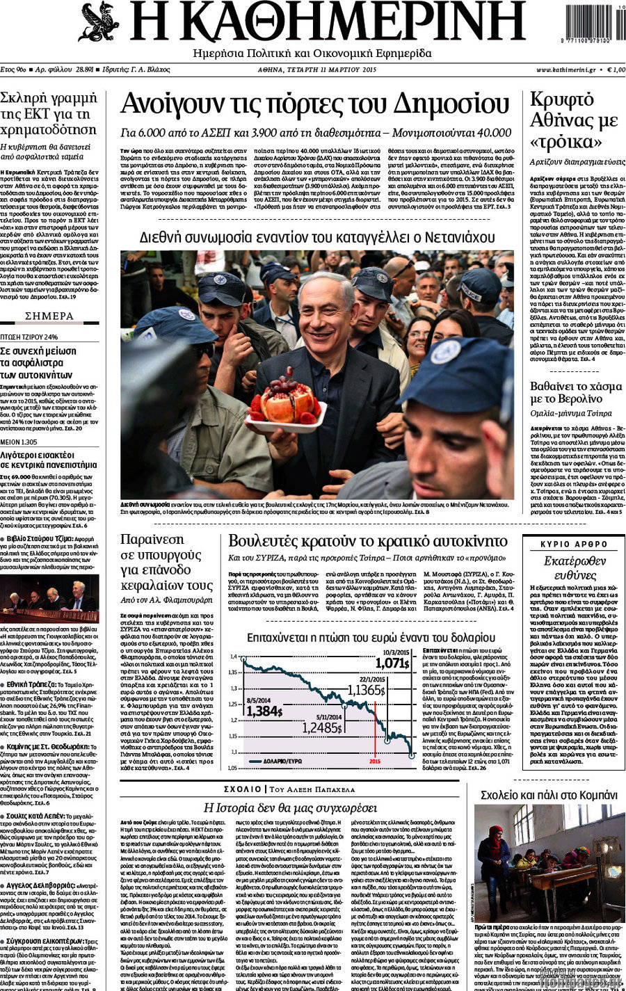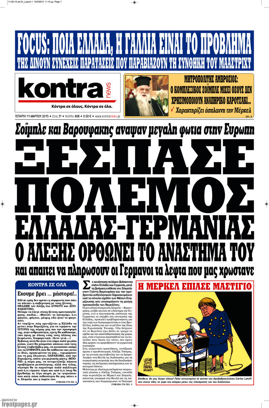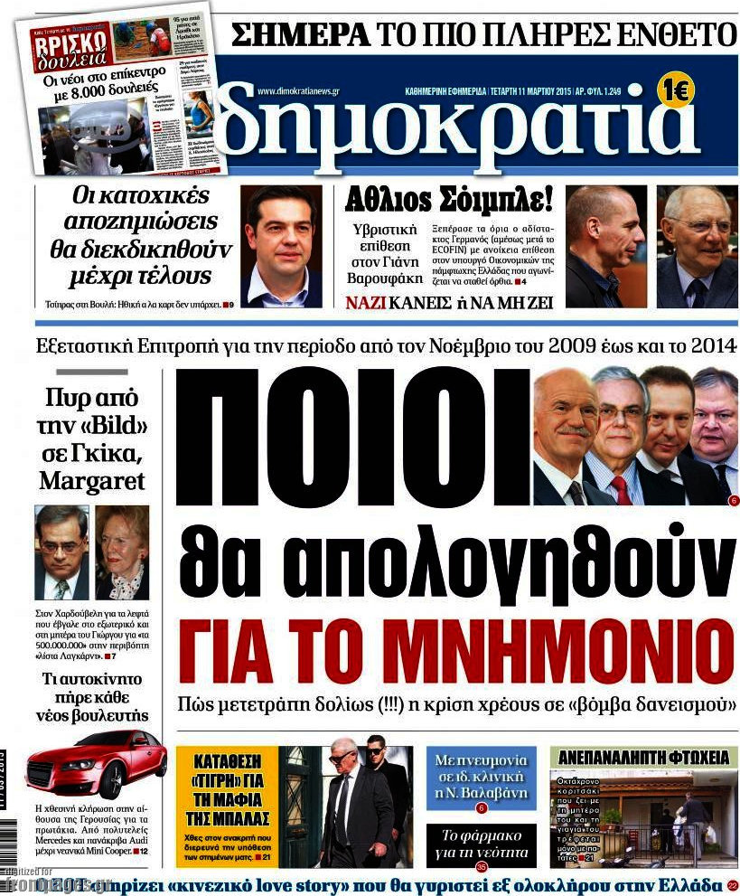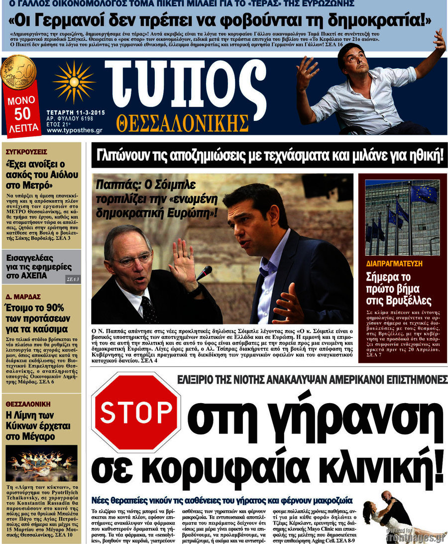 Οι πολιτικές εφημερίδες Enikos Newsroom 08:07, Τετάρτη 11 Μαρτίου 2015 Media Διαβάστε τα σημερινά πρωτοσέλιδα των πολιτικών εφημερίδων: ΠΟΛΙΤΙΚΕΣ ΕΦΗΜΕΡΙΔΕΣ ΠΡΩΤΟΣΕΛΙΔΑ Μοιράσου το: σχολίασε κι εσύ (0 σχόλια) Ακολουθήστε το enikos.gr στο Google News και μάθετε πρώτοι όλες τις ειδήσεις Δείτε όλες τις τελευταίες ειδήσεις από την Ελλάδα και τον Κόσμο στο enikos.gr Ειδήσεις Ροή Ειδήσεων 2 ώρες πριν Μπλόκα: Οι αγρότες σηκώνουν τις μπάρες σε διόδια για τους εκδρομείς των Χριστουγέννων και μοιράζουν προϊόντα – Βίντεο 2 ώρες πριν Τσιάρας προς αγρότες: Τα μπλόκα και τα πείσματα δεν ωφελούν – Οι λύσεις περνούν μέσα από τον διάλογο 3 ώρες πριν Αρχεία Έπσταϊν: Οι συγκλονιστικές φωτογραφίες – Ο Μάικλ Τζάκσον, ο Μικ Τζάγκερ και ο Κέβιν Σπέισι ανάμεσα στους διάσημους που απεικονίζονται 60 λεπτά πριν Μαθητές διακινούσαν κοκαΐνη και χασίς σε σχολείο της Αττικής – 12 συλλήψεις 1 ώρα πριν Βέλγιο: Άγνωστοι έριξαν κόκκινη μπογιά στο προξενείο της Πολωνίας στις Βρυξέλλες 5 ώρες πριν Μία νέα «χρυσή» περίοδος αρχίζει για 3 ζώδια από σήμερα – «Μία αναπάντεχη ευκαιρία οδηγεί στην επιτυχία» 4 ώρες πριν Διαιτολόγος αποκαλύπτει 9 πρωινές συνήθειες που «λιώνουν» το κοιλιακό λίπος – «Υποστηρίζουν την υγιεινή απώλεια βάρους» 5 ώρες πριν Οι 7 φράσεις που δεν λένε ποτέ οι συναισθηματικά έξυπνοι άνθρωποι κατά τη διάρκεια ενός καβγά 7 ώρες πριν Enerwave: Το νέο «ρεύμα» στη λιανική ενέργειας που αλλάζει την εμπειρία του καταναλωτή 9 λεπτά πριν Μαρινάκης στον Realfm 97,8: Η κυβέρνηση σέβεται κάθε λογική διεκδίκηση των αγροτών, αλλά και το αίτημα των πολιτών να μην ταλαιπωρούνται 15 λεπτά πριν O Πάντερ MVP της 17ης αγωνιστικής στην Euroleague 23 λεπτά πριν Πέθανε η τραγουδίστρια Κλαούντια Ντελμέρ 31 λεπτά πριν Μία ανεκμετάλλευτη πηγή θα μπορούσε να προσφέρει ανεξάντλητη ενέργεια – Οι επιστήμονες ίσως γνωρίζουν πώς να την ξεκλειδώσουν 40 λεπτά πριν Θεσσαλονίκη: Ανήλικος που είχε εξαφανιστεί βρέθηκε στο σπίτι Τούρκων μετά από αστυνομική επιχείρηση ENIKOS NETWORK Η αποχή από την αναπαραγωγή παρατείνει τη ζωή στα ζώα, σύμφωνα με μελέτη – Τι ισχύει για τους ανθρώπους; Σημαντικές επαφές στις ΗΠΑ είχε ο υπουργός Υγείας Άδωνις Γεωργιάδης Ευλογιά αιγοπροβάτων: Παρατεταμένη επιζωοτία, αυστηρά μέτρα – Τι ισχύει για τον εμβολιασμό και την ανασύσταση του ζωικού κε... Τσιάρας προς αγρότες: Έχει ικανοποιηθεί το 74% των αιτημάτων – Τα μπλόκα και τα πείσματα δεν ωφελούν Χαρτογραφώντας το «σημείο χωρίς επιστροφή»: Για πρώτη φορά αποκαλύπτεται με λεπτομέρεια το ακανθώδες όριο της ατμόσφαιρας τ... Η Google καταργεί τη λειτουργία «dark web report» – Πώς θα μπορούν οι χρήστες να διαγράφουν τα δεδομένα τους περισσότερα 14:04 , Σάββατο 20 Δεκεμβρίου 2025 Η Realnews αυτής της Κυριακής (21/12/2025) Με τίτλο: «Ασπίδα προστασίας για την Ελλάδα» κυκλοφορεί, αυτήν την Κυριακή, η Realnews. Σημαντ... 12:53 , Σάββατο 20 Δεκεμβρίου 2025 Να μ’ αγαπάς: Το παρελθόν έρχεται στο φως – Καταιγιστικές εξελίξεις στα τελευταία επεισόδια του 2025 Ο Άγγελος αποκαλύπτεται, η Φωτεινή ανησυχεί για τον Λευτέρη και η Ζωή έρχεται αντιμέτωπη με το... 11:41 , Σάββατο 20 Δεκεμβρίου 2025 «Η αγάπη δεν χάνεται ποτέ»: Η μικρού μήκους ταινία κινουμένων σχεδίων που θέτει ερωτήματα για τη ζωή και τον θάνατο Ο θάνατος είναι ένα από τα πιο σκληρά θέματα που καλείται να διαχειριστεί κάποιος στη διάρκεια... 09:30 , Σάββατο 20 Δεκεμβρίου 2025 «Porto Leone: Στη γειτονιά με τα κόκκινα φανάρια» – Ο Χρόνης αποκαλύπτει στην Αλεξάνδρα το μυστικό για το