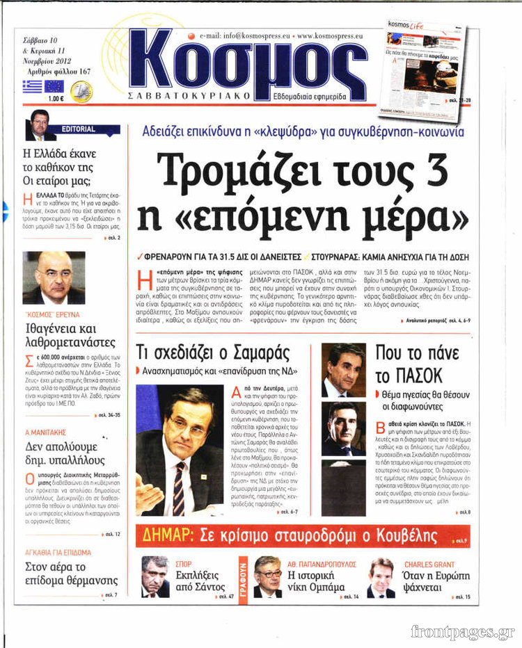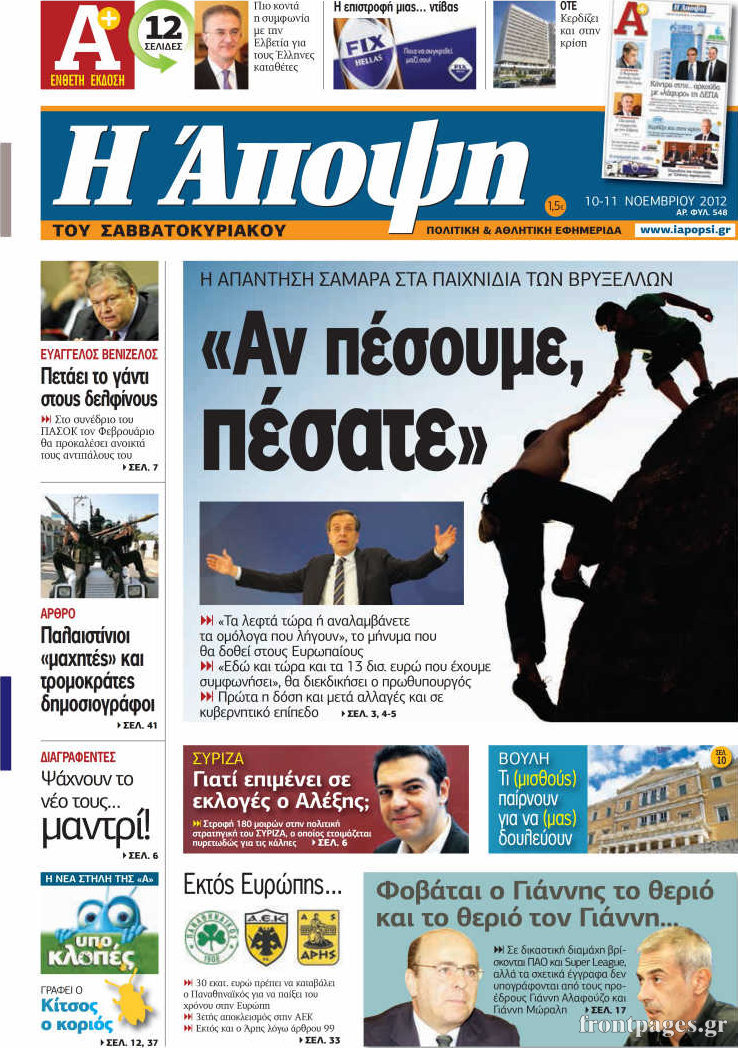 Οι πολιτικές εφημερίδες Enikos Newsroom 09:00, Σάββατο 10 Νοεμβρίου 2012 Media Οι πολιτικές εφημερίδες Δείτε τα πρωτοσέλιδα των πολιτικών εφημερίδων. ΠΟΛΙΤΙΚΕΣ ΕΦΗΜΕΡΙΔΕΣ Μοιράσου το: σχολίασε κι εσύ (0 σχόλια) Ακολουθήστε το enikos.gr στο Google News και μάθετε πρώτοι όλες τις ειδήσεις Δείτε όλες τις τελευταίες ειδήσεις από την Ελλάδα και τον Κόσμο στο enikos.gr Ειδήσεις Ροή Ειδήσεων 2 ώρες πριν Υπόθεση Έπσταϊν: Το Υπουργείο Δικαιοσύνης δημοσιοποίησε μια σειρά από εξαιρετικά επεξεργασμένα αρχεία – «Λείπουν τα πιο σημαντικά έγγραφα», λένε οι Δημοκρατικοί 1 ώρα πριν Ο «χάρτης» με τις αυξήσεις και τις φοροελαφρύνσεις του 2026 – Ποιοι και πόσα κερδίζουν 11 ώρες πριν Χριστούγεννα στα μπλόκα: Επιμένουν στις κινητοποιήσεις τους οι αγρότες – Ανοίγουν τα διόδια το Σαββατοκύριακο 2 ώρες πριν ΟΝΕΧ – MEGATUGS: Ξεκίνησε η ναυπήγηση ρυμουλκών στην Ελλάδα – Προθάλαμος πολεμικών πλοίων – Δείτε φωτογραφίες και βίντεο 2 ώρες πριν Καιρός: Αλλαγή σκηνικού σήμερα με βροχές και πτώση της θερμοκρασίας – Οι προβλέψεις των μετεωρολόγων για τα Χριστούγεννα 4 ώρες πριν Αυγά: Πόσα μπορείτε να τρώτε την ημέρα με ασφάλεια για μέγιστη πρόσληψη πρωτεΐνης 4 ώρες πριν Οπτική ψευδαίσθηση: Μόνο αν είσαι ο Σέρλοκ Χολμς θα βρεις τον αριθμό «87» σε 7 δευτερόλεπτα 2 ώρες πριν Αρχαιολόγοι ανακάλυψαν σε χωράφι απεικόνιση 600 ετών ενός Αγίου – Τα στοιχεία που δείχνουν ότι μαρτύρησε 57 λεπτά πριν Αγχώνεται για το χριστουγεννιάτικο δώρο που πήρε στην πλούσια σύντροφό του – «Φοβάμαι πως θα το βρει φθηνιάρικο, φοράει βραχιόλια Cartier» 8 λεπτά πριν Κρήτη: «Πίεση διαρκείας» με νέες αφίξεις μεταναστών – Τρεις επιχειρήσεις διάσωσης νότια του νησιού 16 λεπτά πριν Η χήνα… που πέρασαν για κλέφτη: Έσπασε την πόρτα προκαλώντας πανικό 23 λεπτά πριν Θεσσαλονίκη: 24ωρη λειτουργία σήμερα σε μετρό και 6 λεωφορειακές γραμμές 31 λεπτά πριν «Porto Leone: Στη γειτονιά με τα κόκκινα φανάρια» – Ο Χρόνης αποκαλύπτει στην Αλεξάνδρα το μυστικό για το παιδί της Λένας 39 λεπτά πριν Νέες αιτήσεις για ίδρυση μη κρατικών πανεπιστημίων στο πρώτο δίμηνο του 2026 – Τι είπε η Ζαχαράκη ENIKOS NETWORK Είστε μόνιμα απρόσεκτοι; 3 σημάδια που δείχνουν ότι μπορεί να είναι σύμπτωμα πάθησης Πόσα κιλά παίρνουμε πραγματικά τα Χριστούγεννα, σύμφωνα με την επιστήμη – Πώς να το αποτρέψουμε; Mega χριστουγεννιάτικη φορολοταρία: «Κλείδωσε» η ημερομηνία για την κλήρωση – Ερωτήσεις και απαντήσεις Αναστολή μέτρων αναγκαστικής εκτέλεσης για κτηνοτρόφους που πλήττονται από την ευλογιά των αιγοπροβάτων Χαρτογραφώντας το «σημείο χωρίς επιστροφή»: Για πρώτη φορά αποκαλύπτεται με λεπτομέρεια το ακανθώδες όριο της ατμόσφαιρας τ... Η Google καταργεί τη λειτουργία «dark web report» – Πώς θα μπορούν οι χρήστες να διαγράφουν τα δεδομένα τους περισσότερα 09:30 , Σάββατο 20 Δεκεμβρίου 2025 «Porto Leone: Στη γειτονιά με τα κόκκινα φανάρια» – Ο Χρόνης αποκαλύπτει στην Αλεξάνδρα το μυστικό για το παιδί της Λένας Η μεγάλη δραματική σειρά του Apha «Porto Leone: Στη γειτονιά με τα κόκκινα φανάρια» μας μεταφέ... 08:14 , Σάββατο 20 Δεκεμβρίου 2025 Τρομεροί γονείς: Η Μαρία Καβογιάννη εισβάλλει στο σπίτι της οικογένειας Στεφανίδη Όσα θα δούμε στο νέο διπλό επεισόδιο της σειράς «Τρομεροί γονείς», σήμερα Σάββατο 20 Δεκεμβρίο... 05:48 , Σάββατο 20 Δεκεμβρίου 2025 Οι οικονομικές εφημερίδες 20/12/2025 Διαβάστε τα πρωτοσέλιδα από τις οικονομικές εφημερίδες, σήμερα 20/12/2025. 05:43 , Σάββατο 20 Δεκεμβρίου 2025 Οι αθλητικές εφημερίδες 20/12/2025 Διαβάστε τα πρωτοσέ