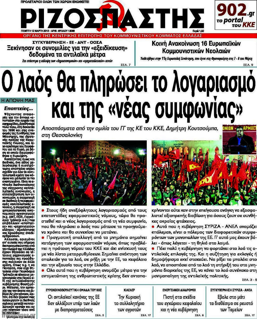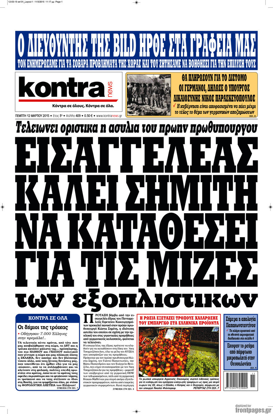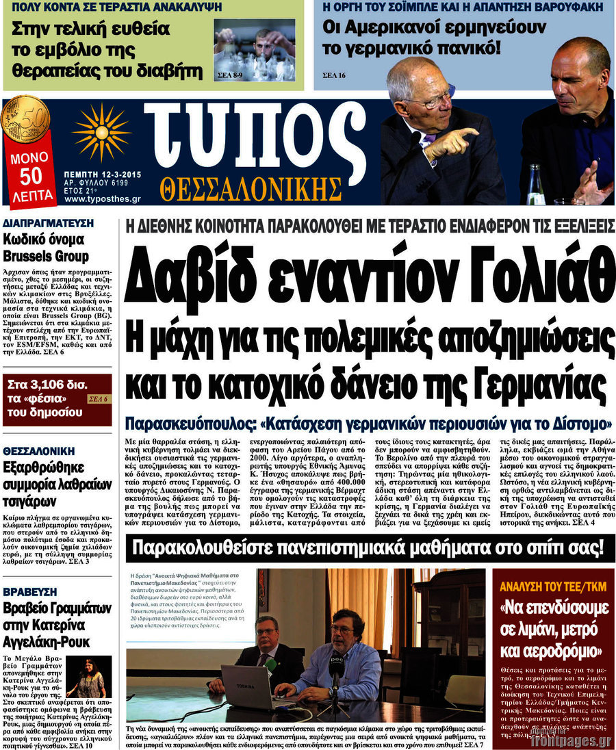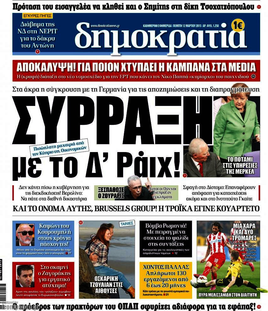 Οι πολιτικές εφημερίδες Enikos Newsroom 08:12, Πέμπτη 12 Μαρτίου 2015 Media Διαβάστε τα σημερινά πρωτοσέλιδα των πολιτικών εφημερίδων: ΠΟΛΙΤΙΚΕΣ ΕΦΗΜΕΡΙΔΕΣ ΠΡΩΤΟΣΕΛΙΔΑ Μοιράσου το: σχολίασε κι εσύ (0 σχόλια) Ακολουθήστε το enikos.gr στο Google News και μάθετε πρώτοι όλες τις ειδήσεις Δείτε όλες τις τελευταίες ειδήσεις από την Ελλάδα και τον Κόσμο στο enikos.gr Ειδήσεις Ροή Ειδήσεων 2 ώρες πριν Μπλόκα: Οι αγρότες σηκώνουν τις μπάρες σε διόδια για τους εκδρομείς των Χριστουγέννων και μοιράζουν προϊόντα – Βίντεο 3 ώρες πριν Τσιάρας προς αγρότες: Τα μπλόκα και τα πείσματα δεν ωφελούν – Οι λύσεις περνούν μέσα από τον διάλογο 4 ώρες πριν Αρχεία Έπσταϊν: Οι συγκλονιστικές φωτογραφίες – Ο Μάικλ Τζάκσον, ο Μικ Τζάγκερ και ο Κέβιν Σπέισι ανάμεσα στους διάσημους που απεικονίζονται 2 ώρες πριν Μαθητές διακινούσαν κοκαΐνη και χασίς σε σχολείο της Αττικής – 12 συλλήψεις 2 ώρες πριν Βέλγιο: Άγνωστοι έριξαν κόκκινη μπογιά στο προξενείο της Πολωνίας στις Βρυξέλλες 6 ώρες πριν Μία νέα «χρυσή» περίοδος αρχίζει για 3 ζώδια από σήμερα – «Μία αναπάντεχη ευκαιρία οδηγεί στην επιτυχία» 4 ώρες πριν Διαιτολόγος αποκαλύπτει 9 πρωινές συνήθειες που «λιώνουν» το κοιλιακό λίπος – «Υποστηρίζουν την υγιεινή απώλεια βάρους» 5 ώρες πριν Οι 7 φράσεις που δεν λένε ποτέ οι συναισθηματικά έξυπνοι άνθρωποι κατά τη διάρκεια ενός καβγά 7 ώρες πριν Enerwave: Το νέο «ρεύμα» στη λιανική ενέργειας που αλλάζει την εμπειρία του καταναλωτή 13 λεπτά πριν Στο νοσοκομείο ο Λευτέρης Πανταζής – Τι συνέβη 22 λεπτά πριν Super League: Με Κηφισιά ο Ολυμπιακός για να «κλείσει» το 2025 στην κορυφή – Αναλυτικά το πρόγραμμα της 15ης αγωνιστικής 27 λεπτά πριν ΕΛΑΣ: Συνελήφθησαν Υπαρχιπυροσβέστης και δύο ακόμη άτομα για κατοχή και διακίνηση ναρκωτικών ουσιών – Η καταγγελία και ο τιμοκατάλογος 35 λεπτά πριν Πακιστάν: Σε κάθειρξη 17 ετών καταδικάστηκαν ο πρώην πρωθυπουργός Ίμραν Χαν και η σύζυγός του 44 λεπτά πριν Μαρινάκης στον Realfm 97,8: Η κυβέρνηση σέβεται κάθε λογική διεκδίκηση των αγροτών, αλλά και το αίτημα των πολιτών να μην ταλαιπωρούνται ENIKOS NETWORK Η αποχή από την αναπαραγωγή παρατείνει τη ζωή στα ζώα, σύμφωνα με μελέτη – Τι ισχύει για τους ανθρώπους; Σημαντικές επαφές στις ΗΠΑ είχε ο υπουργός Υγείας Άδωνις Γεωργιάδης Επιτροπή Ανταγωνισμού: Στο μικροσκόπιο σχολικές τσάντες και επώνυμα brands – Τι ερευνάται Ευλογιά αιγοπροβάτων: Παρατεταμένη επιζωοτία, αυστηρά μέτρα – Τι ισχύει για τον εμβολιασμό και την ανασύσταση του ζωικού κε... Χαρτογραφώντας το «σημείο χωρίς επιστροφή»: Για πρώτη φορά αποκαλύπτεται με λεπτομέρεια το ακανθώδες όριο της ατμόσφαιρας τ... Η Google καταργεί τη λειτουργία «dark web report» – Πώς θα μπορούν οι χρήστες να διαγράφουν τα δεδομένα τους περισσότερα 14:04 , Σάββατο 20 Δεκεμβρίου 2025 Η Realnews αυτής της Κυριακής (21/12/2025) Με τίτλο: «Ασπίδα προστασίας για την Ελλάδα» κυκλοφορεί, αυτήν την Κυριακή, η Realnews. Σημαντ... 12:53 , Σάββατο 20 Δεκεμβρίου 2025 Να μ’ αγαπάς: Το παρελθόν έρχεται στο φως – Καταιγιστικές εξελίξεις στα τελευταία επεισόδια του 2025 Ο Άγγελος αποκαλύπτεται, η Φωτεινή ανησυχεί για τον Λευτέρη και η Ζωή έρχεται αντιμέτωπη με το... 11:41 , Σάββατο 20 Δεκεμβρίου 2025 «Η αγάπη δεν χάνεται ποτέ»: Η μικρού μήκους ταινία κινουμένων σχεδίων που θέτει ερωτήματα για τη ζωή και τον θάνατο Ο θάνατος είναι ένα από τα πιο σκληρά θέματα που καλείται να διαχειριστεί κάποιος στη διάρκεια... 09:30 , Σάββατο 20 Δεκεμβρίου 2025 «Porto Leone: Στη γειτονιά με τα κόκκινα φ