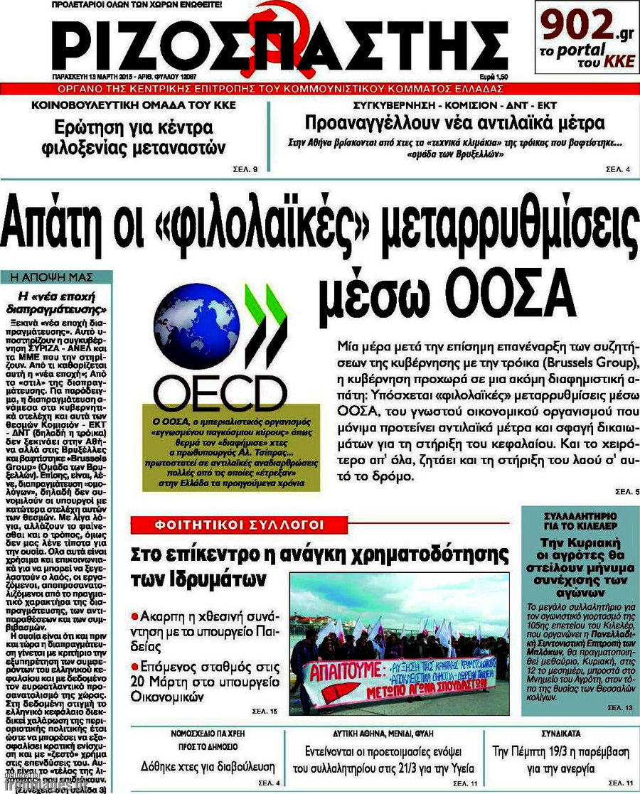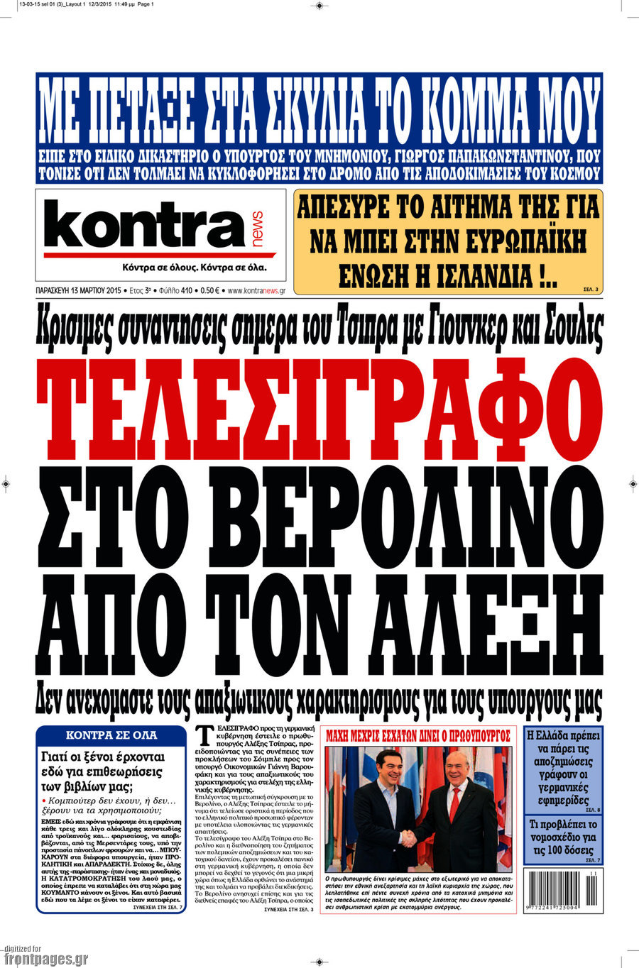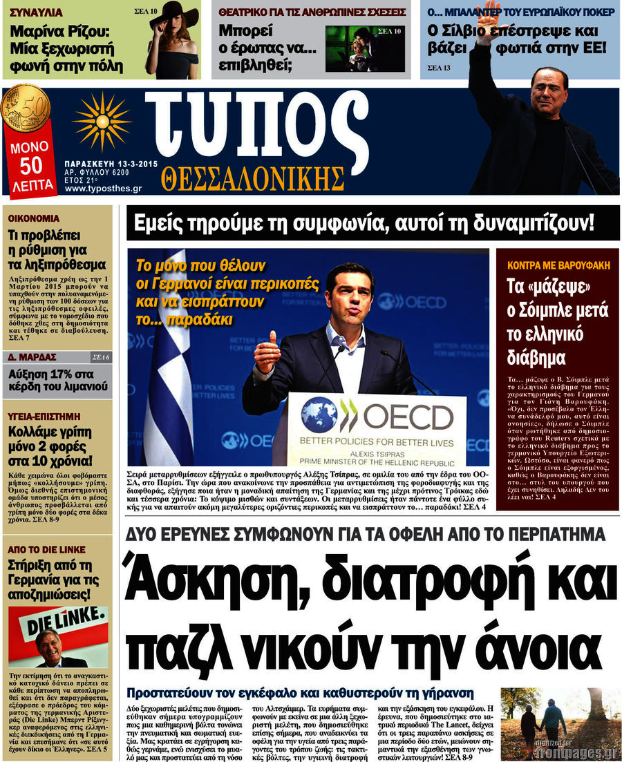 Οι πολιτικές εφημερίδες Enikos Newsroom 08:11, Παρασκευή 13 Μαρτίου 2015 Media Διαβάστε τα σημερινά πρωτοσέλιδα των πολιτικών εφημερίδων: ΠΟΛΙΤΙΚΕΣ ΕΦΗΜΕΡΙΔΕΣ ΠΡΩΤΟΣΕΛΙΔΑ Μοιράσου το: σχολίασε κι εσύ (0 σχόλια) Ακολουθήστε το enikos.gr στο Google News και μάθετε πρώτοι όλες τις ειδήσεις Δείτε όλες τις τελευταίες ειδήσεις από την Ελλάδα και τον Κόσμο στο enikos.gr Ειδήσεις Ροή Ειδήσεων 49 λεπτά πριν Μπλόκα: Οι αγρότες σηκώνουν τις μπάρες σε διόδια για τους εκδρομείς των Χριστουγέννων και μοιράζουν προϊόντα – Βίντεο 1 ώρα πριν Τσιάρας προς αγρότες: Τα μπλόκα και τα πείσματα δεν ωφελούν – Οι λύσεις περνούν μέσα από τον διάλογο 2 ώρες πριν Αρχεία Έπσταϊν: Οι συγκλονιστικές φωτογραφίες – Ο Μάικλ Τζάκσον, ο Μικ Τζάγκερ και ο Κέβιν Σπέισι ανάμεσα στους διάσημους που απεικονίζονται 7 λεπτά πριν Μαθητές διακινούσαν κοκαΐνη και χασίς σε σχολείο της Αττικής – 12 συλλήψεις 3 ώρες πριν Ινδία: Επτά ελέφαντες σκοτώθηκαν κατά τη σύγκρουση επιβατικού τρένου με κοπάδι 4 ώρες πριν Μία νέα «χρυσή» περίοδος αρχίζει για 3 ζώδια από σήμερα – «Μία αναπάντεχη ευκαιρία οδηγεί στην επιτυχία» 6 ώρες πριν Αγχώνεται για το χριστουγεννιάτικο δώρο που πήρε στην πλούσια σύντροφό του – «Φοβάμαι πως θα το βρει φθηνιάρικο, φοράει βραχιόλια Cartier» 3 ώρες πριν Διαιτολόγος αποκαλύπτει 9 πρωινές συνήθειες που «λιώνουν» το κοιλιακό λίπος – «Υποστηρίζουν την υγιεινή απώλεια βάρους» 4 ώρες πριν Οι 7 φράσεις που δεν λένε ποτέ οι συναισθηματικά έξυπνοι άνθρωποι κατά τη διάρκεια ενός καβγά 4 λεπτά πριν Γερμανού για Μαζωνάκη: «Η σχέση μας μετράει 30 χρόνια – Σαφώς και έχω άποψη» 7 λεπτά πριν Μαθητές διακινούσαν κοκαΐνη και χασίς σε σχολείο της Αττικής – 12 συλλήψεις 13 λεπτά πριν Βέλγιο: Άγνωστοι έριξαν κόκκινη μπογιά στο προξενείο της Πολωνίας στις Βρυξέλλες 21 λεπτά πριν Γρηγόρης Δημητριάδης: Χριστουγεννιάτικη συνάντηση με τα παιδιά της ΔΑΠ-ΝΔΦΚ και της ΟΝΝΕΔ 29 λεπτά πριν Στέφανος Παπαδόπουλος: Ξέσπασε σε κλάματα – «Θέλω να έρθει μπροστά μου και να μου πει ότι είμαι ψεύτης» ENIKOS NETWORK Η αποχή από την αναπαραγωγή παρατείνει τη ζωή στα ζώα, σύμφωνα με μελέτη – Τι ισχύει για τους ανθρώπους; Σημαντικές επαφές στις ΗΠΑ είχε ο υπουργός Υγείας Άδωνις Γεωργιάδης Τσιάρας προς αγρότες: Έχει ικανοποιηθεί το 74% των αιτημάτων – Τα μπλόκα και τα πείσματα δεν ωφελούν MyHealth App: Τα στοιχεία για τον Προσωπικό Βοηθό Υγείας Πολίτη – Τι ερωτήματα έγιναν μέσα σε 7 ημέρες Χαρτογραφώντας το «σημείο χωρίς επιστροφή»: Για πρώτη φορά αποκαλύπτεται με λεπτομέρεια το ακανθώδες όριο της ατμόσφαιρας τ... Η Google καταργεί τη λειτουργία «dark web report» – Πώς θα μπορούν οι χρήστες να διαγράφουν τα δεδομένα τους περισσότερα 14:04 , Σάββατο 20 Δεκεμβρίου 2025 Η Realnews αυτής της Κυριακής (21/12/2025) Με τίτλο: «Ασπίδα προστασίας για την Ελλάδα» κυκλοφορεί, αυτήν την Κυριακή, η Realnews. Σημαντ... 12:53 , Σάββατο 20 Δεκεμβρίου 2025 Να μ’ αγαπάς: Το παρελθόν έρχεται στο φως – Καταιγιστικές εξελίξεις στα τελευταία επεισόδια του 2025 Ο Άγγελος αποκαλύπτεται, η Φωτεινή ανησυχεί για τον Λευτέρη και η Ζωή έρχεται αντιμέτωπη με το... 11:41 , Σάββατο 20 Δεκεμβρίου 2025 «Η αγάπη δεν χάνεται ποτέ»: Η μικρού μήκους ταινία κινουμένων σχεδίων που θέτει ερωτήματα για τη ζωή και τον θάνατο Ο θάνατος είναι ένα από τα πιο σκληρά θέματα που καλείται να διαχειριστεί κάποιος στη διάρκεια... 09:30 , Σάββατο 20 Δεκεμβρίου 2025 «Porto Leone: Στη γειτονιά με τα κόκκινα φανάρια» – Ο Χρόνης αποκαλύπτει στην Αλεξάνδρα το μυστικό 