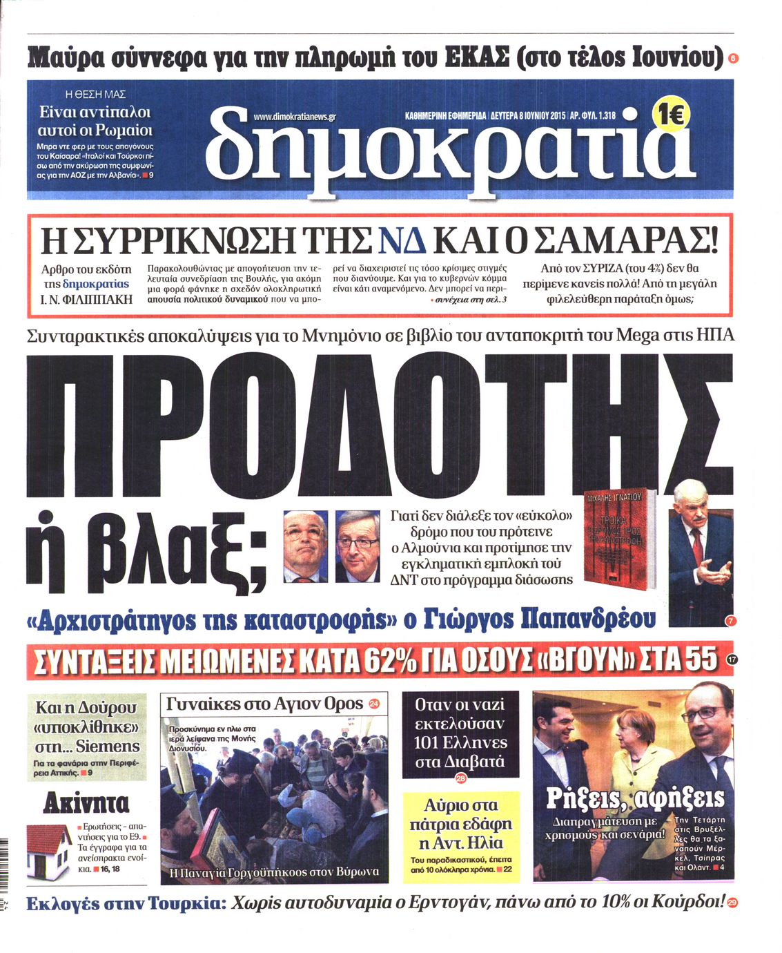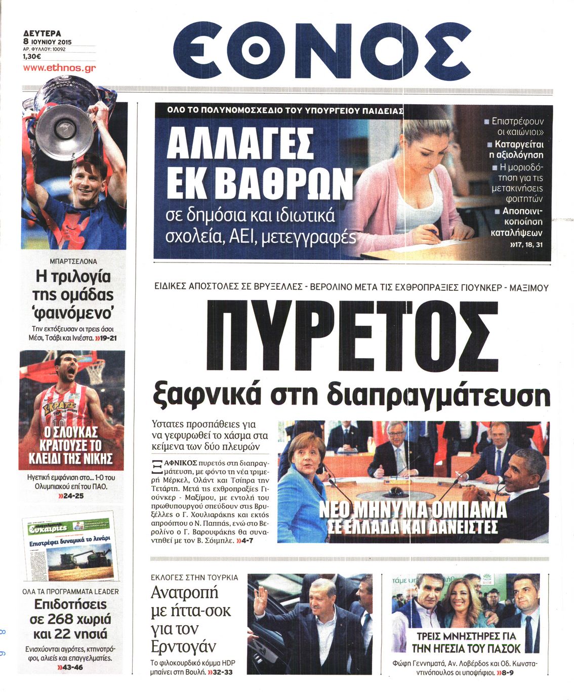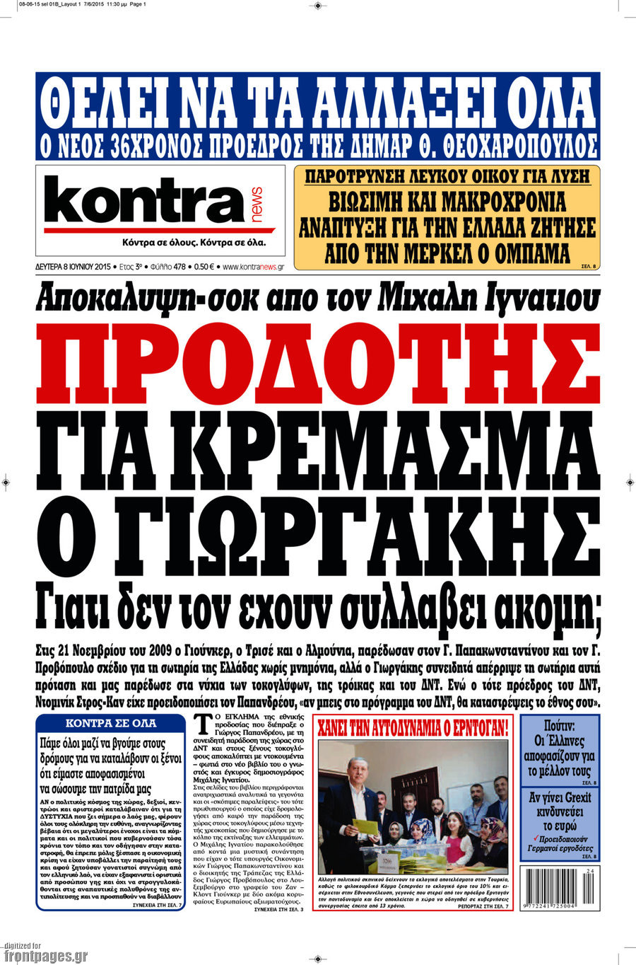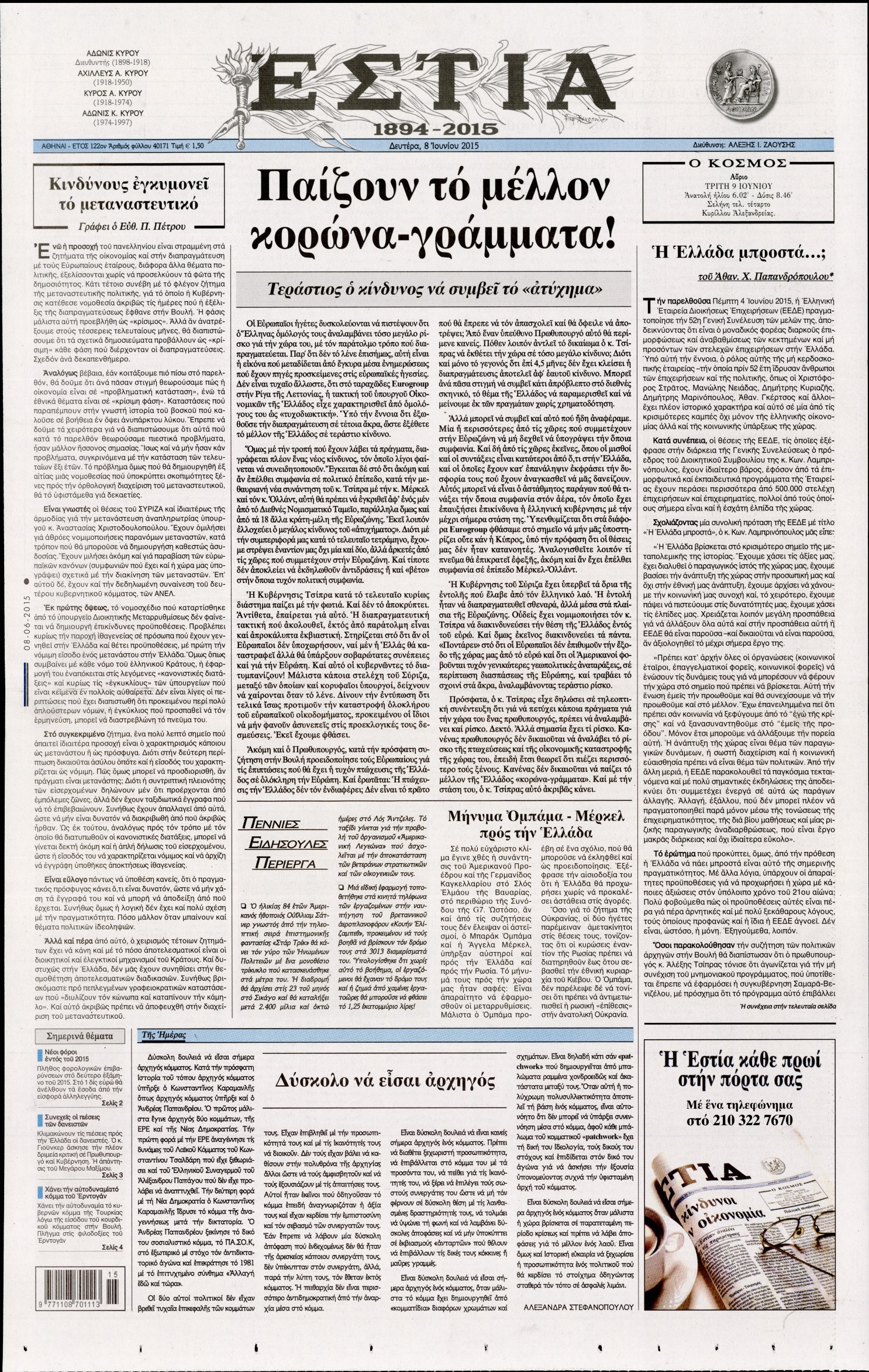 Οι πολιτικές εφημερίδες 8/6/2015 Enikos Newsroom 06:56, Δευτέρα 08 Ιουνίου 2015 Media Διαβάστε τα σημερινά πρωτοσέλιδα των πολιτικών εφημερίδων: ΠΟΛΙΤΙΚΕΣ ΕΦΗΜΕΡΙΔΕΣ ΠΡΩΤΟΣΕΛΙΔΑ Μοιράσου το: σχολίασε κι εσύ (0 σχόλια) Ακολουθήστε το enikos.gr στο Google News και μάθετε πρώτοι όλες τις ειδήσεις Δείτε όλες τις τελευταίες ειδήσεις από την Ελλάδα και τον Κόσμο στο enikos.gr Ειδήσεις Ροή Ειδήσεων 3 ώρες πριν Από το Ορμένιο ως τα Μάλγαρα κι από τη Σιάτιστα μέχρι τη Νίκαια: Μπλόκα σε όλη την Ελλάδα – Το Σάββατο ανοίγουν τα διόδια οι αγρότες 50 λεπτά πριν Εμπλοκή και αερομαχίες με οπλισμένα τουρκικά F-16 στο Αιγαίο 2 ώρες πριν Αττική: Θρίλερ με νεκρό βρέφος 5 μηνών – Κοιμόταν στο ίδιο κρεβάτι με τους γονείς του 40 λεπτά πριν Πούτιν: «Ναι, είμαι ερωτευμένος» – Βίντεο από τη σπάνια προσωπική παραδοχή του 3 ώρες πριν Μεσόγειος: Η διαδρομή του ρωσικού τάνκερ «Qendil» και η στοχευμένη επίθεση της Ουκρανίας με drone – Ο Πούτιν προειδοποίησε για αντίποινα 4 ώρες πριν Τα 5 ζώδια που ευνοούνται στην ερωτική ζωή τους την επόμενη εβδομάδα – «Η ενέργεια του Αιγόκερου φέρνει αγάπη και σταθερότητα» 5 ώρες πριν Αυτό το έξυπνο μαθηματικό κόλπο θα μπορούσε να αλλάξει τον τρόπο με τον οποίο οι επιστήμονες μελετούν τους σεισμούς 1 ώρα πριν Μήπως έχετε χάσει τον εαυτό σας στη σχέση σας; 7 «αθόρυβες» υποχωρήσεις που μάλλον κάνατε, χωρίς να το συνειδητοποιήσετε 3 ώρες πριν Κουίζ για την παλιά Αθήνα: Αναγνωρίζετε την περιοχή; Έχετε περάσει 100% από εκεί 2 λεπτά πριν Η εξομολόγηση της Νίκης Σερέτη: «Δεν κρύβω ότι ήταν πάρα πολύ δύσκολο όλο αυτό που βίωσα» 8 λεπτά πριν Αγρότες: Κλειστό ξανά το ρεύμα εισόδου στα Μάλγαρα – Άνοιξαν τον κόμβο της Χαλκηδόνας 13 λεπτά πριν Νίκος Γιαννόπουλος: «Μου επιτέθηκε ο Παππάς – Ήμουν νηφάλιος, δεν τον προκάλεσα» – ΒΙΝΤΕΟ 21 λεπτά πριν Γιώργος Τράγκας: Ανατροπή από το Πριγκιπάτο του Μονακό για την υπόθεση της κληρονομιάς – Η ανακοίνωση της δικηγόρου της Μαρίας Καρρά 28 λεπτά πριν Ξεχάστε το καθάρισμα το Σαββατοκύριακο: Ο «κανόνας των 20 λεπτών» που θα σας λύσει τα χέρια ENIKOS NETWORK Έχετε πραγματικά μεγάλη καρδιά; 10 χαρακτηριστικά όσων έχουν καλοσύνη «Η σούπερ» γρίπη εξαπλώνεται στην Ευρώπη-Στοιχεία από το ECDC για την αποτελεσματικότητα του εμβολίου Επίδομα παιδιού: Πότε ανοίγει ξανά η πλατφόρμα για τις αιτήσεις Προκήρυξη ΑΣΕΠ για 397 μόνιμες προσλήψεις στο Δημόσιο: Βγήκαν τα προσωρινά αποτελέσματα – Πότε αρχίζει η υποβολή ενστάσεων Χαρτογραφώντας το «σημείο χωρίς επιστροφή»: Για πρώτη φορά αποκαλύπτεται με λεπτομέρεια το ακανθώδες όριο της ατμόσφαιρας τ... Η Google καταργεί τη λειτουργία «dark web report» – Πώς θα μπορούν οι χρήστες να διαγράφουν τα δεδομένα τους περισσότερα 19:31 , Παρασκευή 19 Δεκεμβρίου 2025 GNTM: Απόψε ο μεγάλος τελικός για τους 4 φιναλίστ Έπειτα από μήνες γεμάτους μόδα, δημιουργία και έντονες αναμετρήσεις, το GNTM 2025 κορυφώνεται,... 18:11 , Παρασκευή 19 Δεκεμβρίου 2025 Το σόι σου: Ο Άρης έρχεται στην Ελλάδα για τις γιορτές των Χριστουγέννων – Τι θα δούμε στο αποψινό εορταστικό επεισόδιο Ένα απολαυστικό, εορταστικό επεισόδιο της σειράς “Το σόι σου”, γεμάτο ευτράπελα αλ... 15:15 , Παρασκευή 19 Δεκεμβρίου 2025 Την Κυριακή με τη Realnews: Ό,τι και αν αγοράσεις, σκανάρεις και κερδίζεις! Την Κυριακή με τη Realnews: Ό,τι και αν αγοράσεις, σκανάρεις και κερδίζεις! Με το PADU app, το... 08:00 , Παρασκευή 19 Δεκεμβρίου 2025 Την Κυριακή με τη Realnews: Δωροεπιταγή 10€ Δωροεπιταγή αξίας 10€ για αγορές άνω των 60€ από τα πολυκαταστήματα Factor