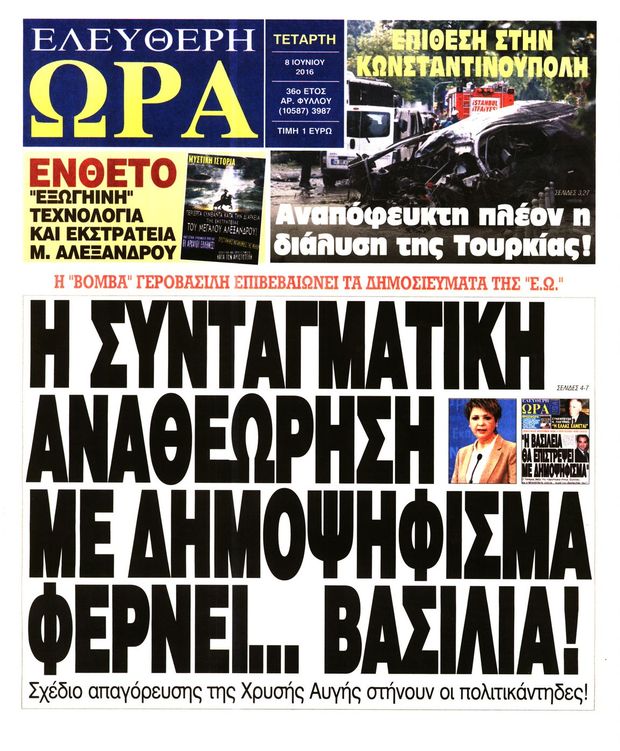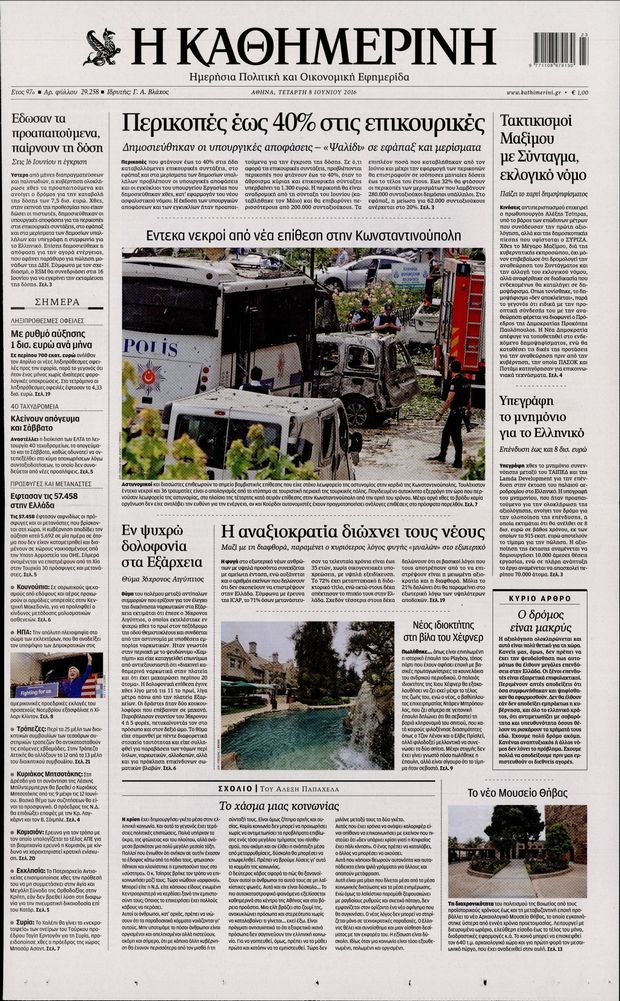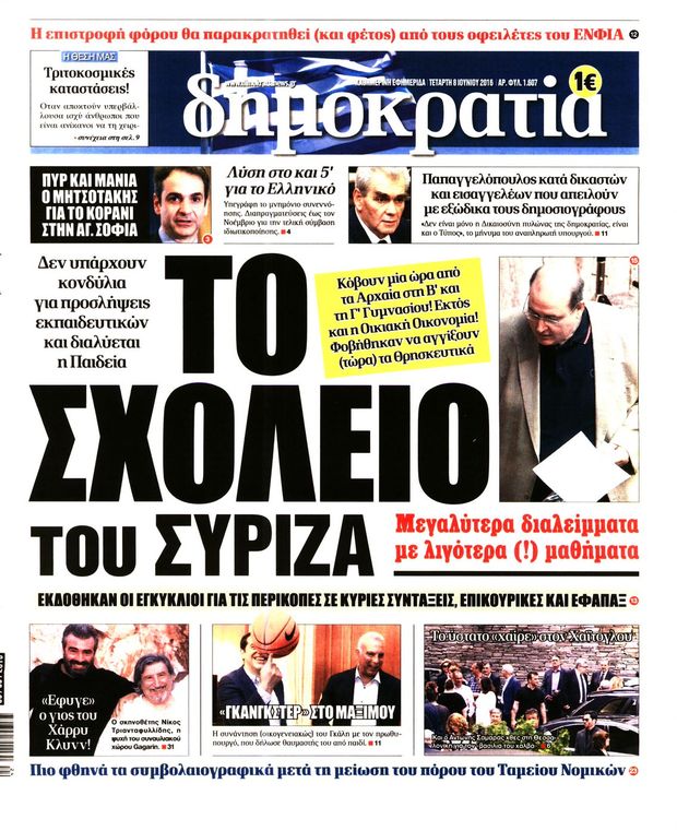 Οι πολιτικές εφημερίδες 8/6/2016 Enikos Newsroom 05:22, Τετάρτη 08 Ιουνίου 2016 Media Διαβάστε τα σημερινά πρωτοσέλιδα των πολιτικών εφημερίδων: ΠΟΛΙΤΙΚΕΣ ΕΦΗΜΕΡΙΔΕΣ ΠΡΩΤΟΣΕΛΙΔΑ Μοιράσου το: σχολίασε κι εσύ (0 σχόλια) Ακολουθήστε το enikos.gr στο Google News και μάθετε πρώτοι όλες τις ειδήσεις Δείτε όλες τις τελευταίες ειδήσεις από την Ελλάδα και τον Κόσμο στο enikos.gr Ειδήσεις Ροή Ειδήσεων 3 ώρες πριν Αγρότες: Πολύωροι αποκλεισμοί στα τελωνεία Προμαχώνα, Εξοχής, Ευζώνων και Νίκης – Κλείνουν τον κόμβο Φιλώτα οι παραγωγοί στη Δυτική Μακεδονία 2 ώρες πριν Νίκος Παππάς: Ζητώ συγγνώμη για αυτό το επεισόδιο – Δεν τον γρονθοκόπησα 1 ώρα πριν Πούτιν: Η Ουκρανία δεν είναι έτοιμη για ειρηνευτικές συνομιλίες – ο ρωσικός στρατός προελαύνει σε όλα τα μέτωπα 56 λεπτά πριν Κρήτη: Στο Ρέθυμνο μεταφέρονται οι εκατοντάδες μετανάστες που διασώθηκαν ανοιχτά της Γαύδου 2 ώρες πριν Τρομακτικό βίντεο: Η στιγμή της έκρηξης στο τζετ που μετέφερε τον οδηγό του NASCAR, Γκρεγκ Μπιφλ και την οικογένειά του 3 ώρες πριν Αλλαγή σελίδας για 3 ζώδια – «Μία δύσκολη περίοδος φτάνει στο τέλος της» 2 ημέρες πριν 20 χρόνια τα Χριστούγεννα ξεκινούν στα Public με μεγάλη ποικιλία σε δώρα! 2 ώρες πριν Γεμάτος νεροχύτης; 5 σοβαρές ευθύνες που «φοβίζουν» όσους αφήνουν άπλυτα πιάτα 1 ώρα πριν Ειδικός μοιράζεται 6 κόλπα για να διατηρείστε σε φόρμα με πάνω από 40 ώρες εργασίας την εβδομάδα: «Προπονηθείτε πριν από τη δουλειά, όχι μετά» 3 λεπτά πριν ΑΑΔΕ: QR Code και Barcode για εύκολες και γρήγορες πληρωμές οφειλών 8 λεπτά πριν Νέα Φιλαδέλφεια: Βίντεο ντοκουμέντο από το θανατηφόρο τροχαίο 13 λεπτά πριν Παπαθανάσης: «Η Ελλάδα αλλάζει με μεταρρυθμίσεις και έργα – Το 2026 χρονιά μεγάλης ανάπτυξης, νέων θέσεων εργασίας, καλύτερων αμοιβών» 19 λεπτά πριν Αγρότες: Παραμένουν στα μπλόκα και ενισχύουν τις δράσεις τους σε Ημαθία, Πέλλα, Πιερία και Καβάλα 26 λεπτά πριν Γιώργος Μαζωνάκης: «Φοβόταν, θεώρησα ότι έπρεπε να τον προστατεύσω» – Τι λέει η τραγουδίστρια, Νωαίνα για τον Στέφανο Παπαδόπουλο ENIKOS NETWORK Κίνδυνος παραπλάνησης από διαφημίσεις οδοντικών εμφυτευμάτων Καρκίνος του πνεύμονα: Έως 8.000 ζωές μπορούν να σωθούν με την έγκαιρη διάγνωση Αγορά πολυτελών κατοικιών: Αυτές είναι οι προτεραιότητες των αγοραστών – Σε ποιες περιοχές στρέφονται και τι επιλέγουν ΕΥΔΑΠ: Στο τραπέζι αλλαγές στους λογαριασμούς του νερού – Τι θα ισχύσει για ευάλωτα νοικοκυριά και επιχειρήσεις Χαρτογραφώντας το «σημείο χωρίς επιστροφή»: Για πρώτη φορά αποκαλύπτεται με λεπτομέρεια το ακανθώδες όριο της ατμόσφαιρας τ... Η Google καταργεί τη λειτουργία «dark web report» – Πώς θα μπορούν οι χρήστες να διαγράφουν τα δεδομένα τους περισσότερα 08:00 , Παρασκευή 19 Δεκεμβρίου 2025 Την Κυριακή με τη Realnews: Δωροεπιταγή 10€ Δωροεπιταγή αξίας 10€ για αγορές άνω των 60€ από τα πολυκαταστήματα FactoryOutlet H προσφορά ι... 05:48 , Παρασκευή 19 Δεκεμβρίου 2025 Οι οικονομικές εφημερίδες 19/12/2025 Διαβάστε τα πρωτοσέλιδα από τις οικονομικές εφημερίδες, σήμερα 19/12/2025. 05:43 , Παρασκευή 19 Δεκεμβρίου 2025 Οι αθλητικές εφημερίδες 19/12/2025 Διαβάστε τα πρωτοσέλιδα από τις αθλητικές εφημερίδες, σήμερα 19/12/2025. 05:38 , Παρασκευή 19 Δεκεμβρίου 2025 Οι πολιτικές εφημερίδες 19/12/2025 Διαβάστε τα πρωτοσέλιδα από τις πολιτικές εφημερίδες, σήμερα 19/12/2025. ΤΕΛΕΥΤΑΙΕΣ ΕΙΔΗΣΕΙΣ 3 λεπτά πριν ΑΑΔΕ: QR Code και Barcode για εύκολες και γρήγορες πληρωμές... 8 λεπτά πριν Νέα Φιλαδέλφεια: Βίντεο ντοκουμέντο από το θανατηφόρο... 13 λεπτά πριν Παπαθανάσης: «Η Ελλάδα αλλάζει
