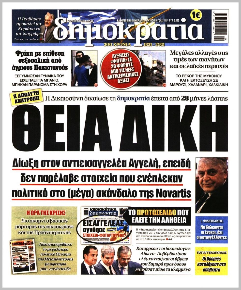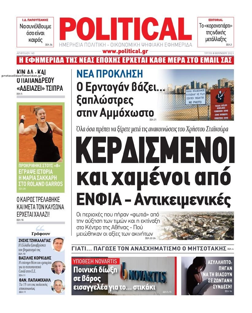 Οι πολιτικές εφημερίδες 8/6/2021 Διονύσης Νίκκας 06:12, Τρίτη 08 Ιουνίου 2021 Media Διαβάστε τα πρωτοσέλιδα των πολιτικών εφημερίδων…. ΕΦΗΜΕΡΙΔΕΣ ΠΡΩΤΟΣΕΛΙΔΑ Μοιράσου το: σχολίασε κι εσύ (0 σχόλια) Ακολουθήστε το enikos.gr στο Google News και μάθετε πρώτοι όλες τις ειδήσεις Δείτε όλες τις τελευταίες ειδήσεις από την Ελλάδα και τον Κόσμο στο enikos.gr Ειδήσεις Ροή Ειδήσεων 2 ώρες πριν Γιορτές με μπλόκα για τους αγρότες: Ανοίγουν διόδια και μοιράζουν προϊόντα στους ταξιδιώτες 2 ώρες πριν Τα αρχεία του Έπσταϊν αποκαλύπτουν φωτογραφία του έκπτωτου πρίγκιπα Άντριου – Είναι ξαπλωμένος στην αγκαλιά 5 γυναικών 2 ώρες πριν Νέες ταυτότητες: Μεγάλη αναμονή για ραντεβού στην Αττική – Τέλος τα ταξίδια εκτός Ελλάδος από τον Αύγουστο για όσους δεν έχουν αλλάξει 3 ώρες πριν Εξαφάνιση 33χρονου γιατρού στην Κρήτη: «Άναψα τα φώτα, τρόμαξε και άρχισε να τρέχει στα χωράφια» – Η τελευταία διαδρομή και η μαρτυρία «κλειδί» 50 λεπτά πριν Ινδία: Επτά ελέφαντες σκοτώθηκαν κατά τη σύγκρουση επιβατικού τρένου με κοπάδι 3 ώρες πριν Μία νέα «χρυσή» περίοδος αρχίζει για 3 ζώδια από σήμερα – «Μία αναπάντεχη ευκαιρία οδηγεί στην επιτυχία» 5 ώρες πριν Αρχαιολόγοι ανακάλυψαν σε χωράφι απεικόνιση 600 ετών ενός Αγίου – Τα στοιχεία που δείχνουν ότι μαρτύρησε 4 ώρες πριν Αγχώνεται για το χριστουγεννιάτικο δώρο που πήρε στην πλούσια σύντροφό του – «Φοβάμαι πως θα το βρει φθηνιάρικο, φοράει βραχιόλια Cartier» 48 λεπτά πριν Διαιτολόγος αποκαλύπτει 9 πρωινές συνήθειες που «λιώνουν» το κοιλιακό λίπος – «Υποστηρίζουν την υγιεινή απώλεια βάρους» 4 λεπτά πριν Τσιάρας για αγρότες: Ικανοποιείται το αίτημα για αφορολόγητο πετρέλαιο στη μάνικα, πρόθεσή μας να μειωθεί ακόμη περισσότερο η τιμή στο ρεύμα 11 λεπτά πριν Η Ζιζέλ Μπούντχεν παντρεύτηκε τον δάσκαλο ζίου-ζίτσου, Χοακίμ Βαλέντε 19 λεπτά πριν Αρχεία Έπσταϊν: Οι συγκλονιστικές φωτογραφίες – Ο Μάικλ Τζάκσον, ο Μικ Τζάγκερ και ο Κέβιν Σπέισι ανάμεσα στους διάσημους που απεικονίζονται 27 λεπτά πριν Χρήστος Μάντακας: «Θα μπορούσα να είχα φύγει από τη ζωή, δεν μπορούσα να περπατήσω…» 34 λεπτά πριν Εντυπωσιακό βίντεο από «τσουνάμι» πάγου στη Σιβηρία – Πώς προκαλείται το σπάνιο φαινόμενο ENIKOS NETWORK Είστε μόνιμα απρόσεκτοι; 3 σημάδια που δείχνουν ότι μπορεί να είναι σύμπτωμα πάθησης Πόσα κιλά παίρνουμε πραγματικά τα Χριστούγεννα, σύμφωνα με την επιστήμη – Πώς να το αποτρέψουμε; Χρήστος Δήμας: Στα 2,5 εκατ. ευρώ την ημέρα το κόστος από το άνοιγμα των διοδίων από τους αγρότες – Θα αξιώσουν αποζημίωση ... Χριστούγεννα και Πρωτοχρονιά: Πώς αμείβονται όσοι εργαστούν Χαρτογραφώντας το «σημείο χωρίς επιστροφή»: Για πρώτη φορά αποκαλύπτεται με λεπτομέρεια το ακανθώδες όριο της ατμόσφαιρας τ... Η Google καταργεί τη λειτουργία «dark web report» – Πώς θα μπορούν οι χρήστες να διαγράφουν τα δεδομένα τους περισσότερα 11:41 , Σάββατο 20 Δεκεμβρίου 2025 «Η αγάπη δεν χάνεται ποτέ»: Η μικρού μήκους ταινία κινουμένων σχεδίων που θέτει ερωτήματα για τη ζωή και τον θάνατο Ο θάνατος είναι ένα από τα πιο σκληρά θέματα που καλείται να διαχειριστεί κάποιος στη διάρκεια... 09:30 , Σάββατο 20 Δεκεμβρίου 2025 «Porto Leone: Στη γειτονιά με τα κόκκινα φανάρια» – Ο Χρόνης αποκαλύπτει στην Αλεξάνδρα το μυστικό για το παιδί της Λένας Η μεγάλη δραματική σειρά του Apha «Porto Leone: Στη γειτονιά με τα κόκκινα φανάρια» μας μεταφέ... 08:14 , Σάββατο 20 Δεκεμβρίου 2025 Τρομεροί γονείς: Η Μαρία Καβογιάννη εισβάλλει στο σπίτι της οικογένειας Στεφαν