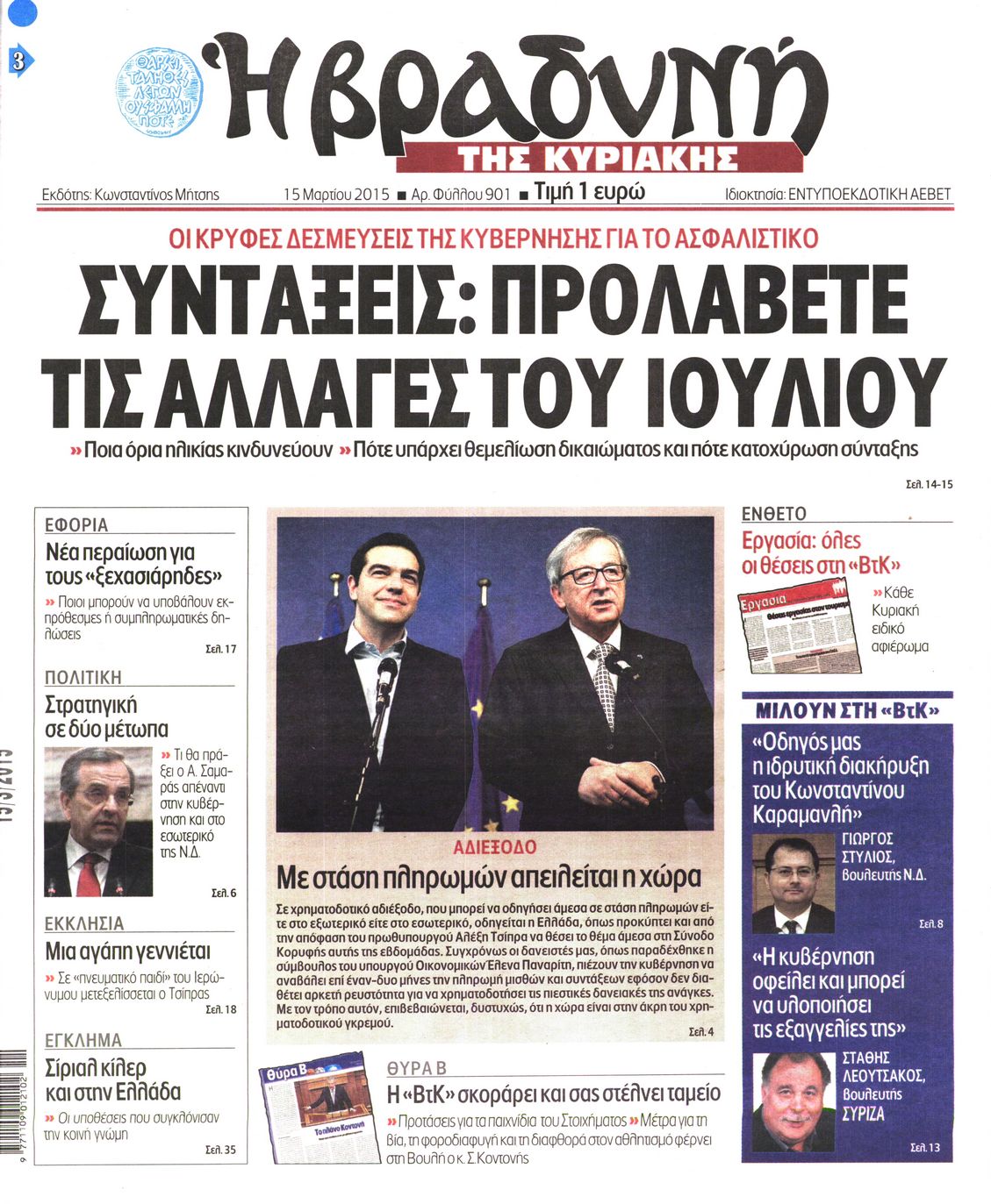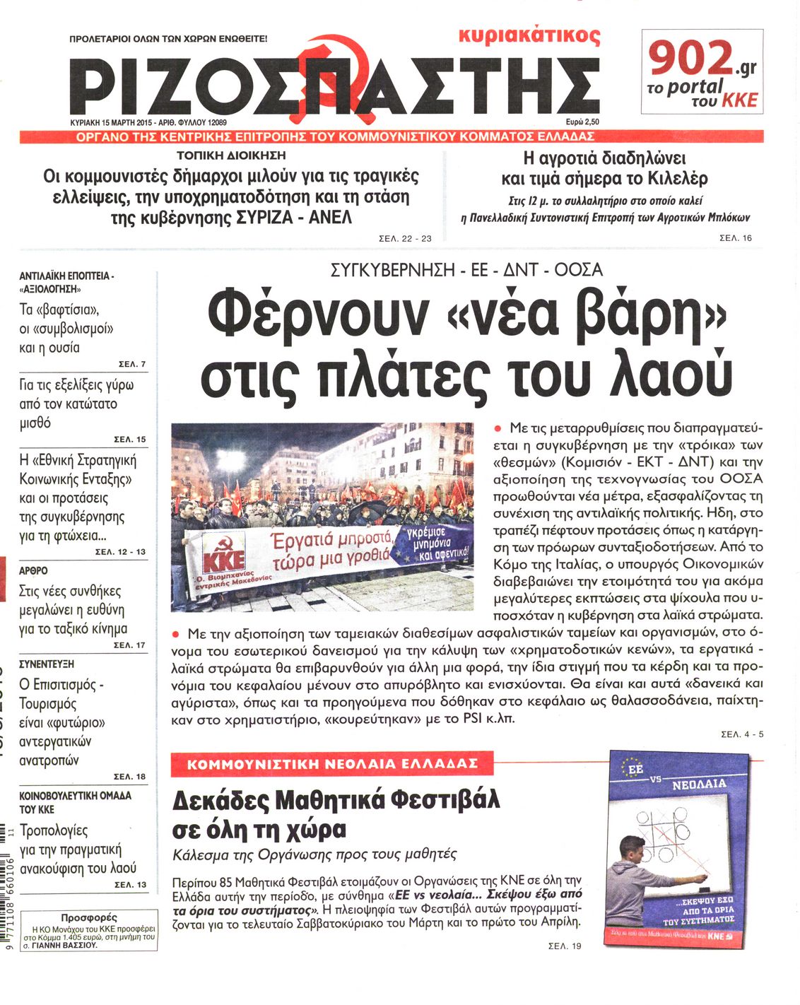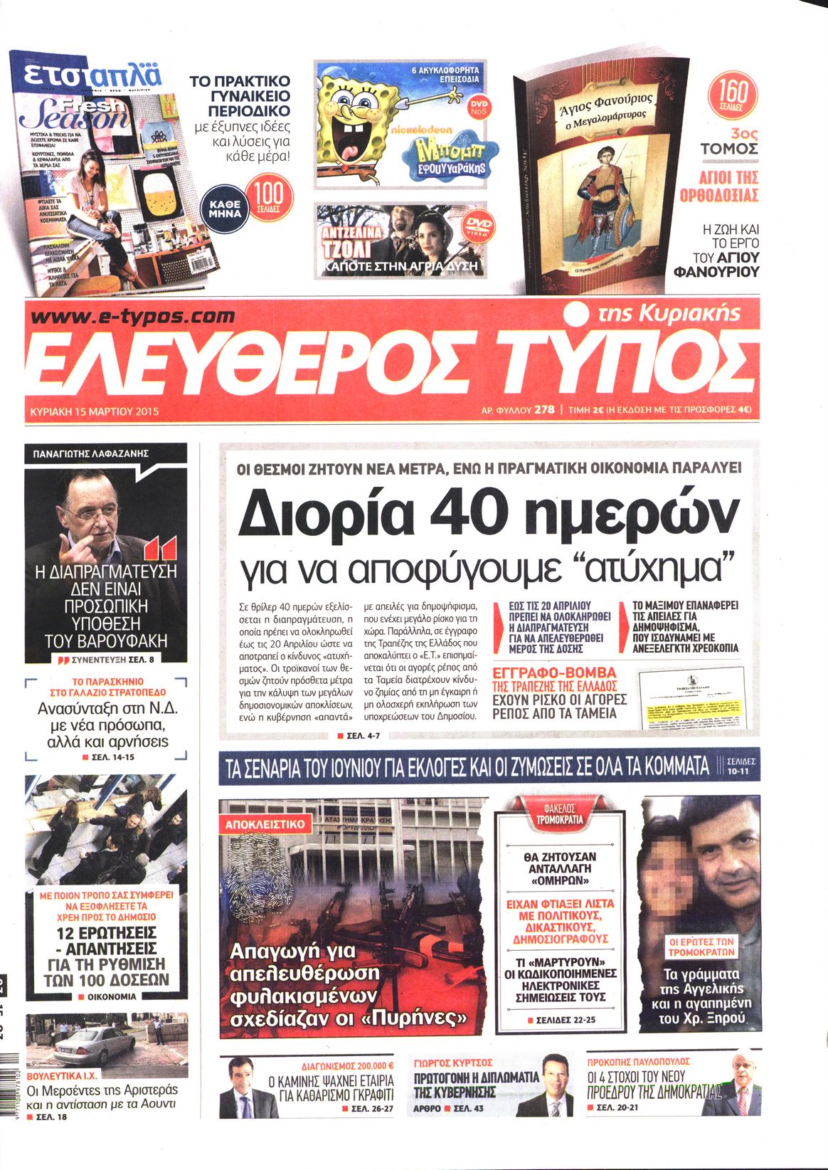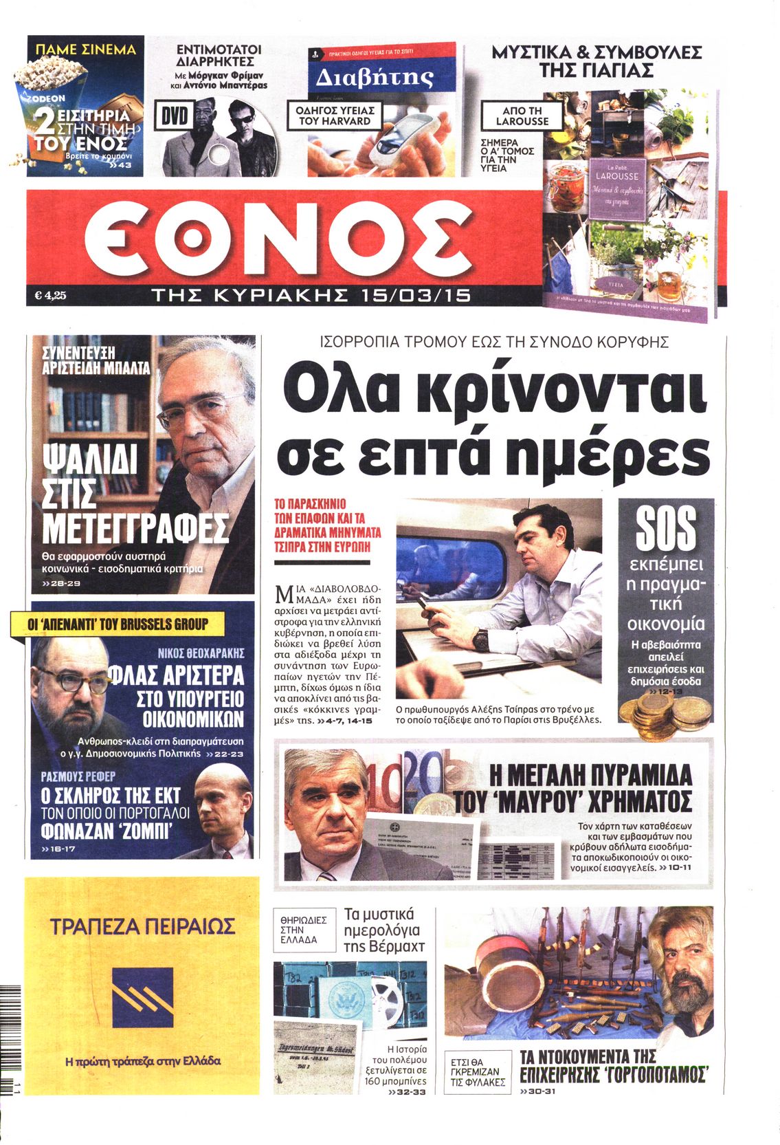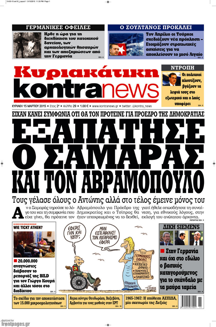 Οι πολιτικές εφημερίδες Enikos Newsroom 07:37, Κυριακή 15 Μαρτίου 2015 Media Διαβάστε τα σημερινά πρωτοσέλιδα των πολιτικών εφημερίδων: ΕΦΗΜΕΡΙΔΕΣ ΠΟΛΙΤΙΚΕΣ ΕΦΗΜΕΡΙΔΕΣ ΠΡΩΤΟΣΕΛΙΔΑ Μοιράσου το: σχολίασε κι εσύ (0 σχόλια) Ακολουθήστε το enikos.gr στο Google News και μάθετε πρώτοι όλες τις ειδήσεις Δείτε όλες τις τελευταίες ειδήσεις από την Ελλάδα και τον Κόσμο στο enikos.gr Ειδήσεις Ροή Ειδήσεων 1 ώρα πριν Υπόθεση Έπσταϊν: Το Υπουργείο Δικαιοσύνης δημοσιοποίησε μια σειρά από εξαιρετικά επεξεργασμένα αρχεία – «Λείπουν τα πιο σημαντικά έγγραφα», λένε οι Δημοκρατικοί 3 ώρες πριν Σαρωτικοί οι έλεγχοι στους δρόμους ενόψει εορτών – Μπλόκα της τροχαίας σε κεντρικές αρτηρίες της Αττικής 1 ώρα πριν ΟΝΕΧ – MEGATUGS: Ξεκίνησε η ναυπήγηση ρυμουλκών στην Ελλάδα – Προθάλαμος πολεμικών πλοίων – Δείτε φωτογραφίες και βίντεο 1 ώρα πριν Καιρός: Αλλαγή σκηνικού σήμερα με βροχές και πτώση της θερμοκρασίας – Οι προβλέψεις των μετεωρολόγων για τα Χριστούγεννα 10 ώρες πριν Χριστούγεννα στα μπλόκα: Επιμένουν στις κινητοποιήσεις τους οι αγρότες – Ανοίγουν τα διόδια το Σαββατοκύριακο 3 ώρες πριν Αυγά: Πόσα μπορείτε να τρώτε την ημέρα με ασφάλεια για μέγιστη πρόσληψη πρωτεΐνης 3 ώρες πριν Τα ζώδια σήμερα, Σάββατο 20 Δεκεμβρίου: Παρθένοι, το σύμπαν σας δίνει το κλειδί 3 ώρες πριν Οπτική ψευδαίσθηση: Μόνο αν είσαι ο Σέρλοκ Χολμς θα βρεις τον αριθμό «87» σε 7 δευτερόλεπτα 48 λεπτά πριν Αρχαιολόγοι ανακάλυψαν σε χωράφι απεικόνιση 600 ετών ενός Αγίου – Τα στοιχεία που δείχνουν ότι μαρτύρησε 1 λεπτό πριν Γιώργος Μαζωνάκης: Τη Δευτέρα η μήνυση του τραγουδιστή κατά του 22χρονου 10 λεπτά πριν Αμαλία Κωστοπούλου: Το μήνυμα για το χειρουργείο στο γόνατο – «Αυτός ο τραυματισμός μού στέρησε πολλά…» 17 λεπτά πριν Ο «χάρτης» με τις αυξήσεις και τις φοροελαφρύνσεις του 2026 – Ποιοι και πόσα κερδίζουν 25 λεπτά πριν Η τέλεια συνταγή για cookies με κομμάτια σοκολάτας 33 λεπτά πριν MyHealth App: Τα στοιχεία για τον Προσωπικό Βοηθό Υγείας Πολίτη – Τι ερωτήματα έγιναν μέσα σε 7 ημέρες ENIKOS NETWORK Το τεστ των 10 δευτερολέπτων που μπορεί να προβλέψει το προσδόκιμο ζωής σας – Τι λέει ειδικός του Cleveland Επιλέξτε καρέκλα για να μάθετε ποια είναι τα κρυφά χαρακτηριστικά σας – Τι αποκάλυψε για εσάς αυτό το τεστ προσωπικότητας; Mega χριστουγεννιάτικη φορολοταρία: «Κλείδωσε» η ημερομηνία για την κλήρωση – Ερωτήσεις και απαντήσεις Αναστολή μέτρων αναγκαστικής εκτέλεσης για κτηνοτρόφους που πλήττονται από την ευλογιά των αιγοπροβάτων Χαρτογραφώντας το «σημείο χωρίς επιστροφή»: Για πρώτη φορά αποκαλύπτεται με λεπτομέρεια το ακανθώδες όριο της ατμόσφαιρας τ... Η Google καταργεί τη λειτουργία «dark web report» – Πώς θα μπορούν οι χρήστες να διαγράφουν τα δεδομένα τους περισσότερα 08:14 , Σάββατο 20 Δεκεμβρίου 2025 Τρομεροί γονείς: Η Μαρία Καβογιάννη εισβάλλει στο σπίτι της οικογένειας Στεφανίδη Όσα θα δούμε στο νέο διπλό επεισόδιο της σειράς «Τρομεροί γονείς», σήμερα Σάββατο 20 Δεκεμβρίο... 05:48 , Σάββατο 20 Δεκεμβρίου 2025 Οι οικονομικές εφημερίδες 20/12/2025 Διαβάστε τα πρωτοσέλιδα από τις οικονομικές εφημερίδες, σήμερα 20/12/2025. 05:43 , Σάββατο 20 Δεκεμβρίου 2025 Οι αθλητικές εφημερίδες 20/12/2025 Διαβάστε τα πρωτοσέλιδα από τις αθλητικές εφημερίδες, σήμερα 20/12/2025. 05:38 , Σάββατο 20 Δεκεμβρίου 2025 Οι πολιτικές εφημερίδες 20/12/2025 Διαβάστε τα πρωτοσέλιδα από τις πολιτικές εφημερίδες, σήμερα 20/12/2025. ΤΕΛΕΥΤΑΙΕΣ ΕΙΔΗΣΕΙΣ 10 λεπτά πριν Αμαλία Κωστοπούλου: Το μήνυμα για το χειρουργείο στο... 17 λ