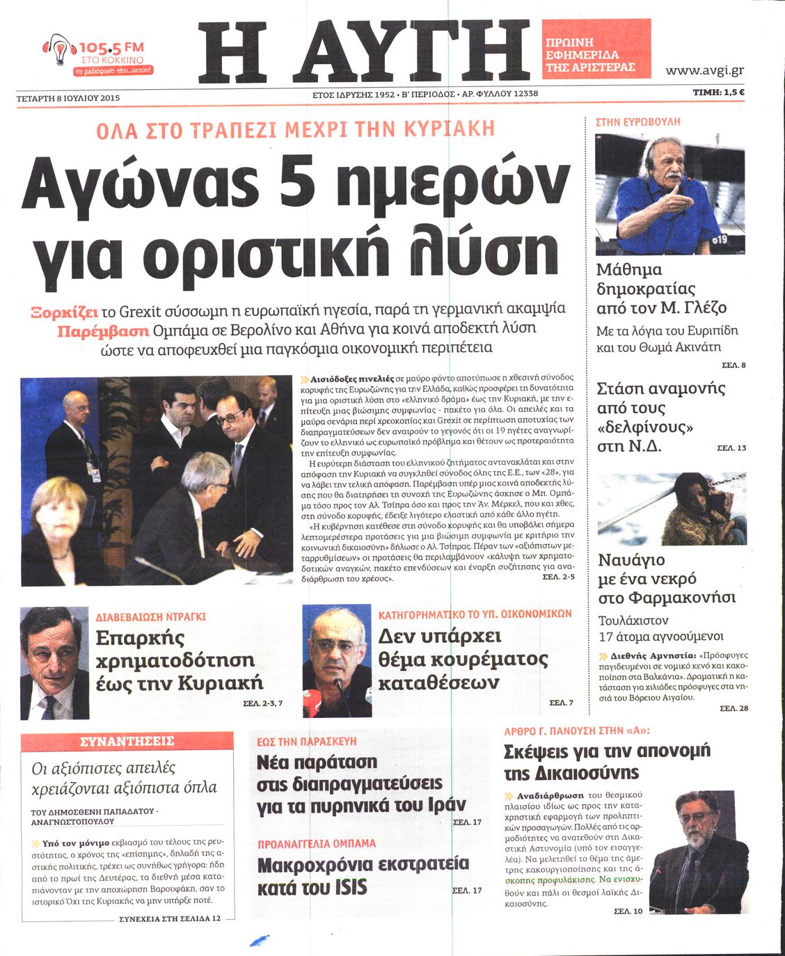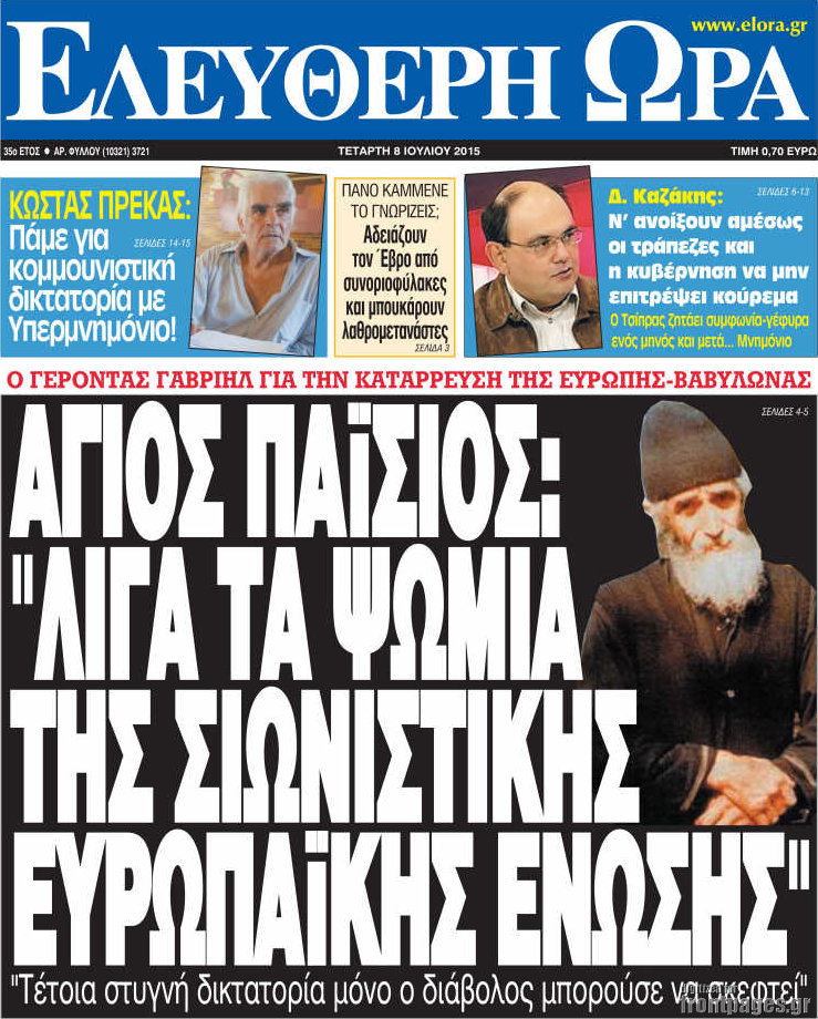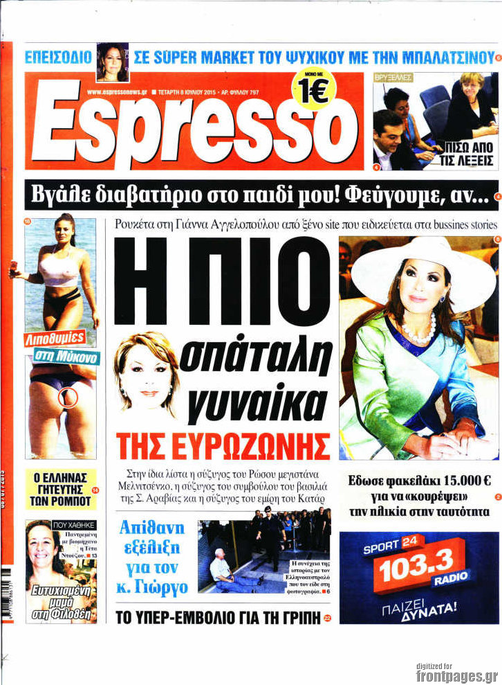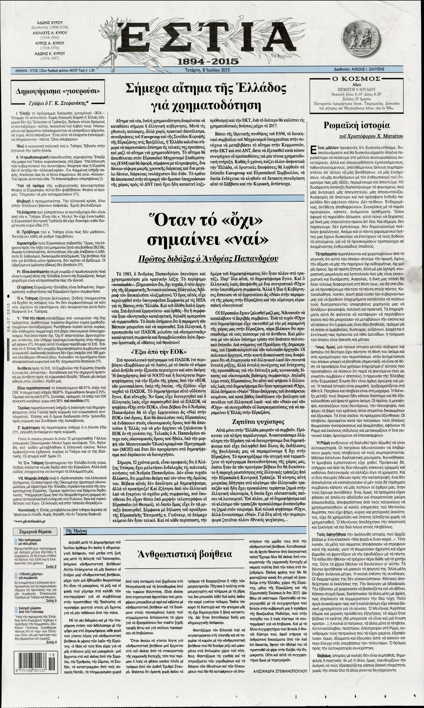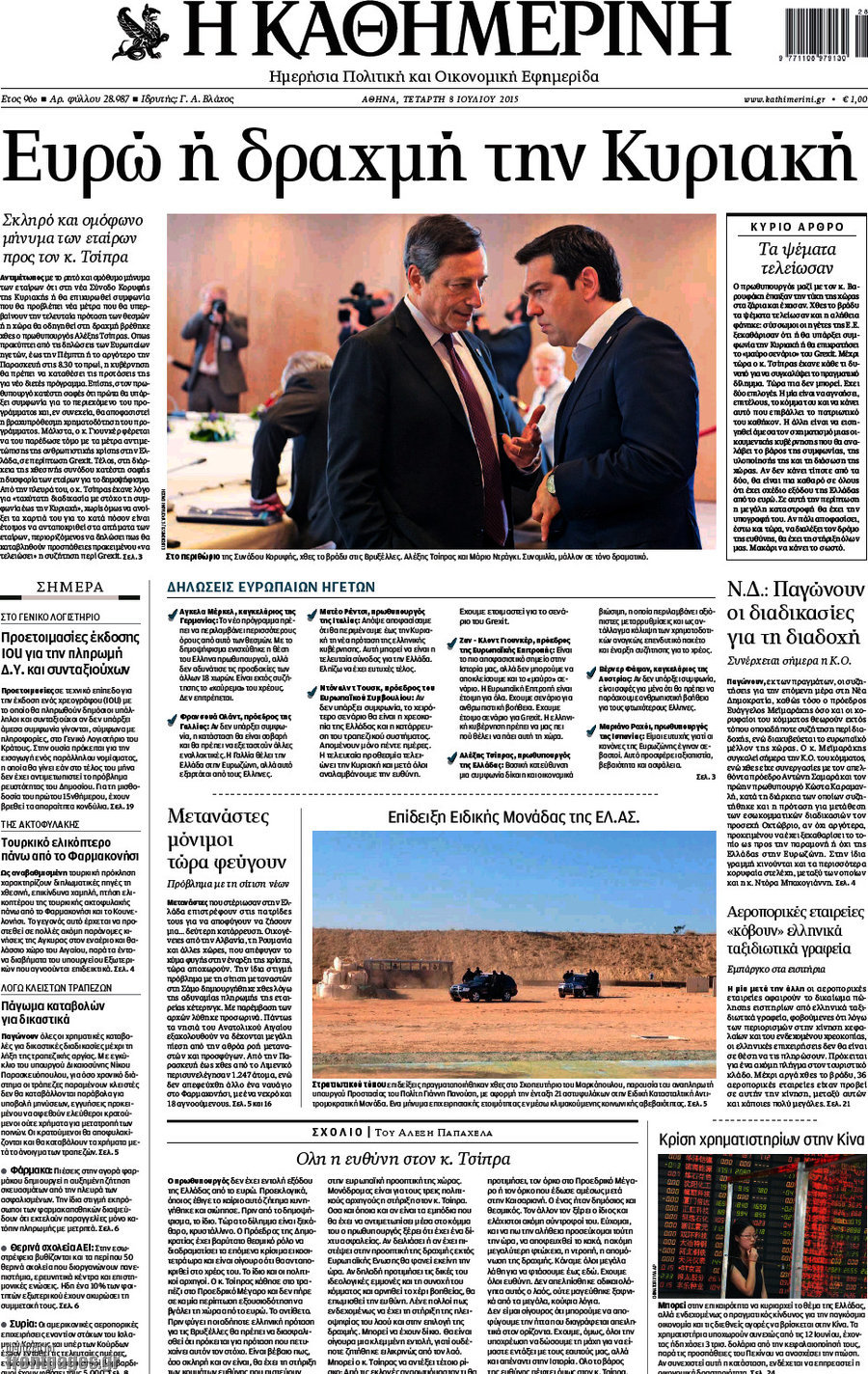 Οι πολιτικές εφημερίδες 8/7/2015 Enikos Newsroom 07:58, Τετάρτη 08 Ιουλίου 2015 Media Διαβάστε τα σημερινά πρωτοσέλιδα των σημερινών πολιτικών εφημερίδων: ΠΟΛΙΤΙΚΕΣ ΕΦΗΜΕΡΙΔΕΣ ΠΡΩΤΟΣΕΛΙΔΑ Μοιράσου το: σχολίασε κι εσύ (0 σχόλια) Ακολουθήστε το enikos.gr στο Google News και μάθετε πρώτοι όλες τις ειδήσεις Δείτε όλες τις τελευταίες ειδήσεις από την Ελλάδα και τον Κόσμο στο enikos.gr Ειδήσεις Ροή Ειδήσεων 4 ώρες πριν Χριστούγεννα στα μπλόκα: Επιμένουν στις κινητοποιήσεις τους οι αγρότες – Ανοίγουν τα διόδια το Σαββατοκύριακο 5 ώρες πριν Ουκρανία: Η άνευ προηγουμένου επίθεση σε ρωσικό τάνκερ στη Μεσόγειο και το μήνυμα προς στον Πούτιν – Το «μακρύ χέρι» του Κιέβου 4 ώρες πριν Πούτιν: Τα μηνύματα σε Ευρώπη και ΝΑΤΟ από το μαραθώνιο «σόου» του – Η απαίτηση για «σεβασμό» και η ειρήνη «με τους όρους» της Μόσχας 5 ώρες πριν Τραμπ: Δεν αποκλείει την πιθανότητα ενός πολέμου στη Βενεζουέλα – «Ο Μαδούρο ξέρει καλύτερα από τον καθένα τι ακριβώς θέλω» 5 ώρες πριν Συνεχίζει να προκαλεί ο Μίτσκοσκι: «Για μένα το όνομα Μακεδονία είναι ιερό» 4 ώρες πριν Ανακαλύφθηκαν αρχαία χρυσά νομίσματα 2.200 ετών που απεικονίζουν τον θεό Απόλλωνα – Η άγνωστη σύνδεση με τον Φίλιππο Β΄ της Μακεδονίας 5 ώρες πριν Ύπνος: Μια κρυφή κατάσταση του εγκεφάλου πριν από τον ύπνο μπορεί να είναι το “κλειδί” για υψηλή ευφυΐα και δημιουργικότητα 6 ώρες πριν Αριθμολογία: Οι άνθρωποι που έχουν γεννηθεί αυτές τις 4 ημερομηνίες, συχνά παρεξηγούνται – «Η καλοσύνη τους κρύβει τεράστια δύναμη» 7 ώρες πριν Ξεχάστε το καθάρισμα το Σαββατοκύριακο: Ο «κανόνας των 20 λεπτών» που θα σας λύσει τα χέρια 21 λεπτά πριν Θεσσαλονίκη: Εξαφανίστηκε 13χρονος από χώρο φιλοξενίας ασυνόδευτων ανηλίκων στο Ωραιόκαστρο 32 λεπτά πριν Ντόναλντ Τραμπ: «Πολύ βαριά αντίποινα» στη Συρία – «Πλήττουμε πολύ δυνατά οχυρά του Ισλαμικού Κράτους» 46 λεπτά πριν Εξάρχεια: Ένταση με μολότοφ, χημικά και κρότου λάμψης 1 ώρα πριν ΗΠΑ: Τραγωδία στην Αλαμπάμα – Σκότωσε την δημοσιογράφο σύζυγό του και αυτοκτόνησε μπροστά στον 3χρονο γιο τους 1 ώρα πριν Πρόταση γάμου στο ΣΕΦ κατά την διάρκεια του αγώνα Ολυμπιακός-Βιλερμπάν – Δείτε βίντεο ENIKOS NETWORK Το ΕΚΑΒ τιμήθηκε από την Ακαδημία Αθηνών για τα 40 χρόνια προσφοράς του Έχετε πραγματικά μεγάλη καρδιά; 10 χαρακτηριστικά όσων έχουν καλοσύνη Αναστολή μέτρων αναγκαστικής εκτέλεσης για κτηνοτρόφους που πλήττονται από την ευλογιά των αιγοπροβάτων Πλήρης επάρκεια προϊόντων στις λαϊκές της Αττικής, παρά τις αγροτικές κινητοποιήσεις – Τι απαντούν οι πωλητές Χαρτογραφώντας το «σημείο χωρίς επιστροφή»: Για πρώτη φορά αποκαλύπτεται με λεπτομέρεια το ακανθώδες όριο της ατμόσφαιρας τ... Η Google καταργεί τη λειτουργία «dark web report» – Πώς θα μπορούν οι χρήστες να διαγράφουν τα δεδομένα τους περισσότερα 22:42 , Παρασκευή 19 Δεκεμβρίου 2025 Γιώργος Γιαννόπουλος για “Το σόι σου”: “Είναι ευτυχία και ευλογία αυτή η σειρά” «Είναι ευτυχία και ευλογία η συγκυρία αυτής της σειράς», θα πει ο Γιώργος Γιαννόπουλος -ο αγαπ... 20:37 , Παρασκευή 19 Δεκεμβρίου 2025 Don’t Forget The Lyrics: Η Έλλη Κοκκίνου υποδέχεται 4 παίκτες που θα κάνουν τα πάντα για να μη χάσουν ούτε… μισή λέξη από τους στίχους Το «Don’t Forget The Lyrics» επιστρέφει απόψε, Παρασκευή 19 Δεκεμβρίου, στις 21:00 με νέο επει... 19:31 , Παρασκευή 19 Δεκεμβρίου 2025 GNTM: Απόψε ο μεγάλος τελικός για τους 4 φιναλίστ Έπειτα από μήνες γεμάτους μόδα, δημιουργία και έντονες αναμετρήσεις, το GNTM 2025 κορυφώνεται,... 18:11 , Παρασκευή 19 Δεκεμβρίο