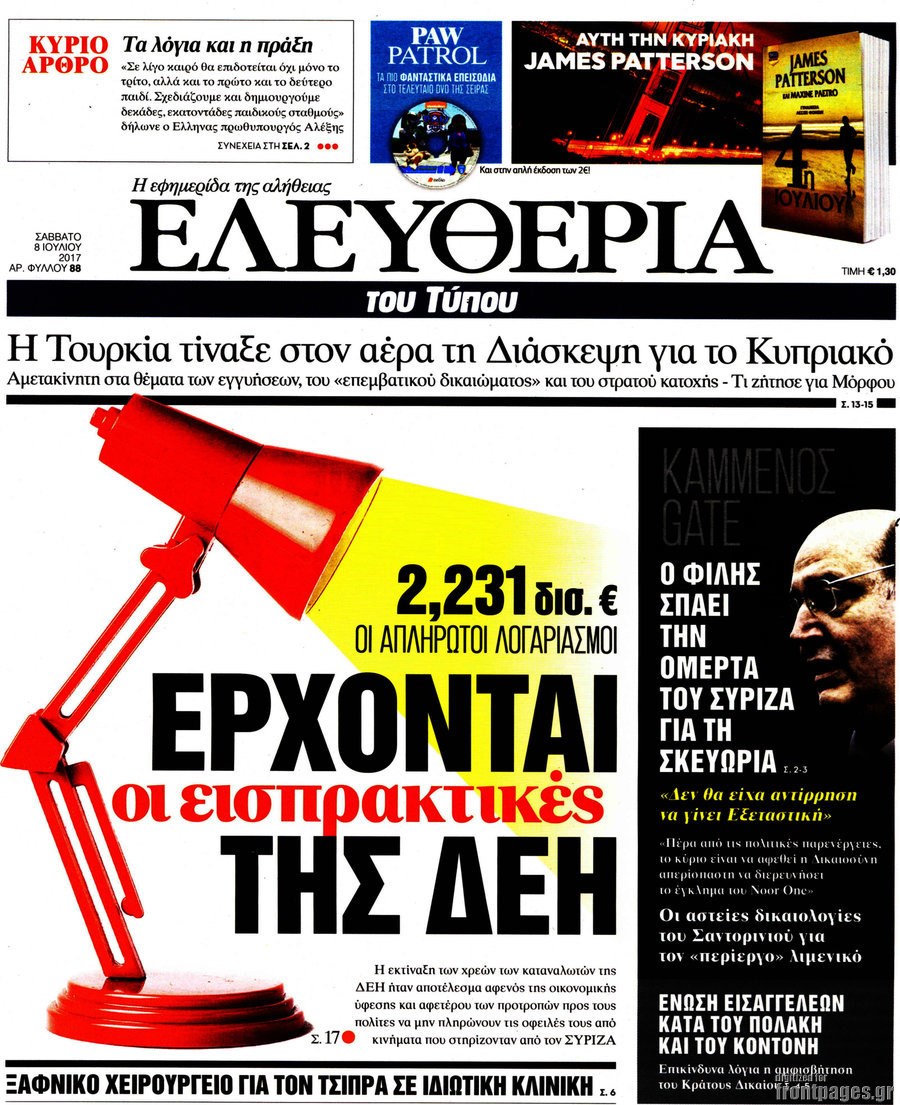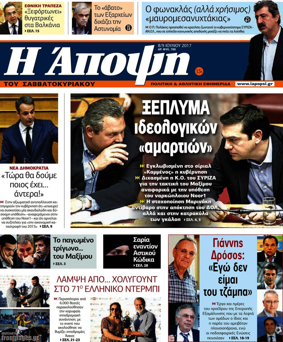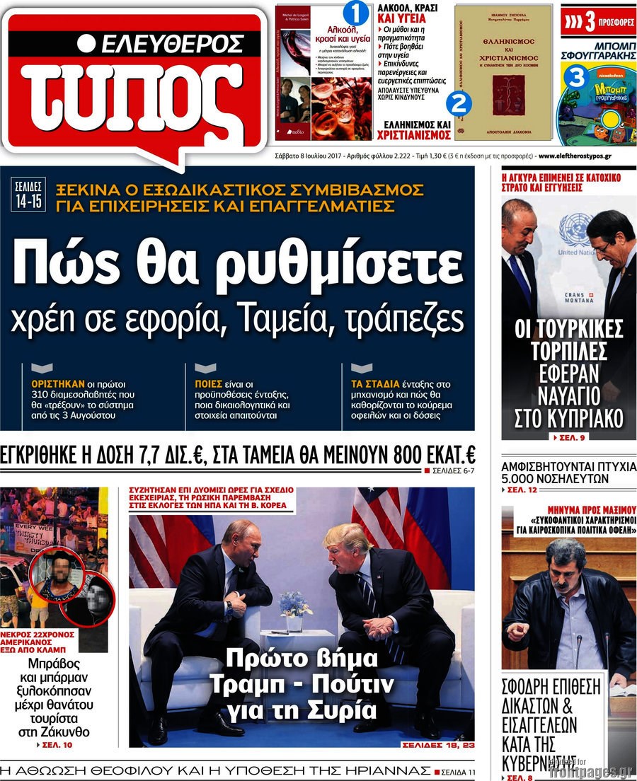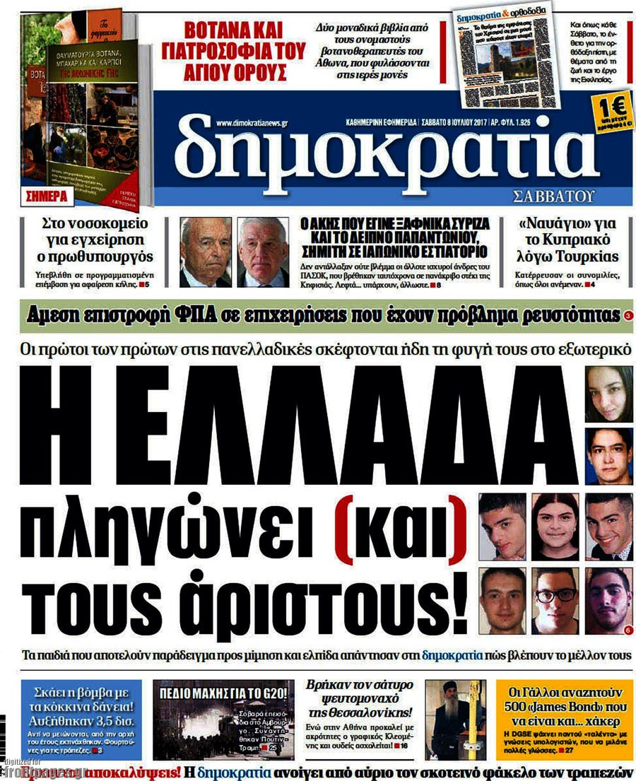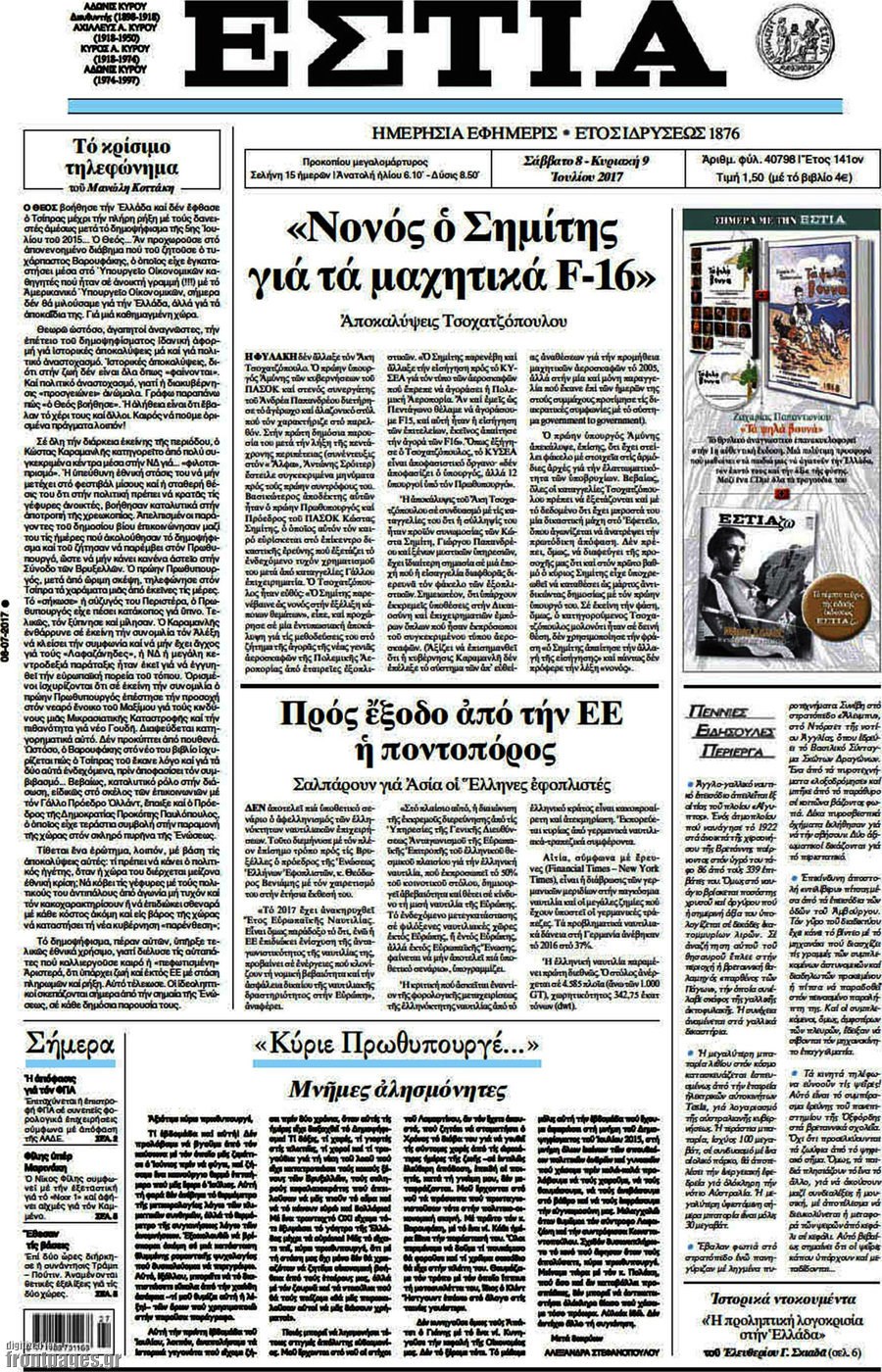 Οι πολιτικές εφημερίδες 8/7/2017 Enikos Newsroom 07:37, Σάββατο 08 Ιουλίου 2017 Media Διαβάστε τα σημερινά πρωτοσέλιδα των πολιτικών εφημερίδων: ΠΟΛΙΤΙΚΕΣ ΕΦΗΜΕΡΙΔΕΣ ΠΡΩΤΟΣΕΛΙΔΑ Μοιράσου το: σχολίασε κι εσύ (0 σχόλια) Ακολουθήστε το enikos.gr στο Google News και μάθετε πρώτοι όλες τις ειδήσεις Δείτε όλες τις τελευταίες ειδήσεις από την Ελλάδα και τον Κόσμο στο enikos.gr Ειδήσεις Ροή Ειδήσεων 6 λεπτά πριν «Έλληνας Εσκομπάρ»: Φωτογραφίες με τους 4 τόνους κοκαΐνης που κατασχέθηκαν από το σκάφος «Ουρανία» 3 ώρες πριν Η Ουκρανία χτύπησε τάνκερ του σκιώδους στόλου της Ρωσίας στη Μεσόγειο – Έπλεε νότια της Κρήτης 1 ώρα πριν Πούτιν: Σαρκαστικά μηνύματα, παράπονα και απρόοπτα στη συνέντευξη Τύπου – Η πρόταση γάμου on air και οι ερωτήσεις για τα αγγούρια και τους… εξωγήινους 2 ώρες πριν Η απάντηση της κυβέρνησης στα αιτήματα των αγροτών: 16+4 υλοποιούνται ή βρίσκονται υπό επεξεργασία για να βρεθεί λύση – 7 δεν μπορούν να επιλυθούν 2 ώρες πριν Εξώδικο επιχειρηματία στον Γιώργο Μαζωνάκη – Τι απαντά στις καταγγελίες του τραγουδιστή 1 ώρα πριν Τα 5 ζώδια που ευνοούνται στην ερωτική ζωή τους την επόμενη εβδομάδα – «Η ενέργεια του Αιγόκερου φέρνει αγάπη και σταθερότητα» 6 ώρες πριν Γεμάτος νεροχύτης; 5 σοβαρές ευθύνες που «φοβίζουν» όσους αφήνουν άπλυτα πιάτα 5 ώρες πριν Ειδικός μοιράζεται 6 κόλπα για να διατηρείστε σε φόρμα με πάνω από 40 ώρες εργασίας την εβδομάδα: «Προπονηθείτε πριν από τη δουλειά, όχι μετά» 2 ημέρες πριν 20 χρόνια τα Χριστούγεννα ξεκινούν στα Public με μεγάλη ποικιλία σε δώρα! 2 λεπτά πριν Πούτιν: «Δεν είμαι υπεύθυνος» για τους θανάτους στην Ουκρανία – Σχέδιο για κατάπαυση του πυρός αν ο Ζελένσκι κάνει εκλογές 5 λεπτά πριν Κουίζ για την παλιά Αθήνα: Αναγνωρίζετε την περιοχή; Έχετε περάσει 100% από εκεί 6 λεπτά πριν «Έλληνας Εσκομπάρ»: Φωτογραφίες με τους 4 τόνους κοκαΐνης που κατασχέθηκαν από το σκάφος «Ουρανία» 11 λεπτά πριν Μακρόν: Η Ευρώπη πρέπει να συνεργαστεί με τον Πούτιν αν αποτύχουν οι προσπάθειες των ΗΠΑ για ειρηνευτική συμφωνία 17 λεπτά πριν ΟΠΑΠ: Φρέσκια και δυναμική καμπάνια για το Υπεύθυνο Παιχνίδι με Χριστουγεννιάτικη διάθεση ENIKOS NETWORK ΕΛΣΤΑΤ: Αύξηση κατά 1,7% των επαγγελματιών υγείας το 2024 Τάξη στις ιατρικές διαφημίσεις για την προστασία των πολιτών βάζει ο ΙΣΑ Παπαθανάσης για νέο Εθνικό Πρόγραμμα Ανάπτυξης 2026-2030: Είναι υπερδιπλάσιο από αυτό της προηγούμενης προγραμματικής περιό... Βουλή: Υπερψηφίστηκε το νομοσχέδιο για τη μετάβαση του ΟΠΕΚΕΠΕ στην ΑΑΔΕ Χαρτογραφώντας το «σημείο χωρίς επιστροφή»: Για πρώτη φορά αποκαλύπτεται με λεπτομέρεια το ακανθώδες όριο της ατμόσφαιρας τ... Η Google καταργεί τη λειτουργία «dark web report» – Πώς θα μπορούν οι χρήστες να διαγράφουν τα δεδομένα τους περισσότερα 15:15 , Παρασκευή 19 Δεκεμβρίου 2025 Την Κυριακή με τη Realnews: Ό,τι και αν αγοράσεις, σκανάρεις και κερδίζεις! Την Κυριακή με τη Realnews: Ό,τι και αν αγοράσεις, σκανάρεις και κερδίζεις! Με το PADU app, το... 08:00 , Παρασκευή 19 Δεκεμβρίου 2025 Την Κυριακή με τη Realnews: Δωροεπιταγή 10€ Δωροεπιταγή αξίας 10€ για αγορές άνω των 60€ από τα πολυκαταστήματα FactoryOutlet H προσφορά ι... 05:48 , Παρασκευή 19 Δεκεμβρίου 2025 Οι οικονομικές εφημερίδες 19/12/2025 Διαβάστε τα πρωτοσέλιδα από τις οικονομικές εφημερίδες, σήμερα 19/12/2025. 05:43 , Παρασκευή 19 Δεκεμβρίου 2025 Οι αθλητικές εφημερίδες 19/12/2025 Διαβάστε τα πρωτοσέλιδα από τις αθλητικές εφημερίδες, σήμερα 19/12/2025. ΤΕΛΕΥΤΑΙΕΣ ΕΙΔΗΣΕΙΣ 5 λεπτά πριν Κουίζ για την παλιά Αθήνα: Αναγνωρίζετε την 