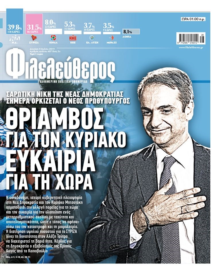 Οι πολιτικές εφημερίδες 8/7/2019 Κώστας Τεό 06:52, Δευτέρα 08 Ιουλίου 2019 Media Διαβάστε τα πρωτοσέλιδα των πολιτικών εφημερίδων: ΠΟΛΙΤΙΚΕΣ ΕΦΗΜΕΡΙΔΕΣ ΠΡΩΤΟΣΕΛΙΔΑ Μοιράσου το: σχολίασε κι εσύ (0 σχόλια) Ακολουθήστε το enikos.gr στο Google News και μάθετε πρώτοι όλες τις ειδήσεις Δείτε όλες τις τελευταίες ειδήσεις από την Ελλάδα και τον Κόσμο στο enikos.gr Ειδήσεις Ροή Ειδήσεων 5 ώρες πριν Χριστούγεννα στα μπλόκα: Επιμένουν στις κινητοποιήσεις τους οι αγρότες – Ανοίγουν τα διόδια το Σαββατοκύριακο 5 ώρες πριν Ουκρανία: Η άνευ προηγουμένου επίθεση σε ρωσικό τάνκερ στη Μεσόγειο και το μήνυμα προς στον Πούτιν – Το «μακρύ χέρι» του Κιέβου 4 ώρες πριν Πούτιν: Τα μηνύματα σε Ευρώπη και ΝΑΤΟ από το μαραθώνιο «σόου» του – Η απαίτηση για «σεβασμό» και η ειρήνη «με τους όρους» της Μόσχας 5 ώρες πριν Τραμπ: Δεν αποκλείει την πιθανότητα ενός πολέμου στη Βενεζουέλα – «Ο Μαδούρο ξέρει καλύτερα από τον καθένα τι ακριβώς θέλω» 6 ώρες πριν Συνεχίζει να προκαλεί ο Μίτσκοσκι: «Για μένα το όνομα Μακεδονία είναι ιερό» 4 ώρες πριν Ανακαλύφθηκαν αρχαία χρυσά νομίσματα 2.200 ετών που απεικονίζουν τον θεό Απόλλωνα – Η άγνωστη σύνδεση με τον Φίλιππο Β΄ της Μακεδονίας 5 ώρες πριν Ύπνος: Μια κρυφή κατάσταση του εγκεφάλου πριν από τον ύπνο μπορεί να είναι το “κλειδί” για υψηλή ευφυΐα και δημιουργικότητα 6 ώρες πριν Αριθμολογία: Οι άνθρωποι που έχουν γεννηθεί αυτές τις 4 ημερομηνίες, συχνά παρεξηγούνται – «Η καλοσύνη τους κρύβει τεράστια δύναμη» 7 ώρες πριν Ξεχάστε το καθάρισμα το Σαββατοκύριακο: Ο «κανόνας των 20 λεπτών» που θα σας λύσει τα χέρια 15 λεπτά πριν Η Ελλάδα προσχωρεί στη Διεθνή Επιτροπή Αποζημιώσεων για την Ουκρανία 30 λεπτά πριν GNTM: Η Ξένια Τσίρκοβα αναδείχθηκε μεγάλη νικήτρια και πήρε τις 50.000 ευρώ – Ποιος βρέθηκε σε απόσταση αναπνοής; 45 λεπτά πριν Θεσσαλονίκη: Εξαφανίστηκε 13χρονος από χώρο φιλοξενίας ασυνόδευτων ανηλίκων στο Ωραιόκαστρο 55 λεπτά πριν Ντόναλντ Τραμπ: «Πολύ βαριά αντίποινα» στη Συρία – «Πλήττουμε πολύ δυνατά οχυρά του Ισλαμικού Κράτους» 1 ώρα πριν Εξάρχεια: Ένταση με μολότοφ, χημικά και κρότου λάμψης ENIKOS NETWORK Το ΕΚΑΒ τιμήθηκε από την Ακαδημία Αθηνών για τα 40 χρόνια προσφοράς του Έχετε πραγματικά μεγάλη καρδιά; 10 χαρακτηριστικά όσων έχουν καλοσύνη Αναστολή μέτρων αναγκαστικής εκτέλεσης για κτηνοτρόφους που πλήττονται από την ευλογιά των αιγοπροβάτων Πλήρης επάρκεια προϊόντων στις λαϊκές της Αττικής, παρά τις αγροτικές κινητοποιήσεις – Τι απαντούν οι πωλητές Χαρτογραφώντας το «σημείο χωρίς επιστροφή»: Για πρώτη φορά αποκαλύπτεται με λεπτομέρεια το ακανθώδες όριο της ατμόσφαιρας τ... Η Google καταργεί τη λειτουργία «dark web report» – Πώς θα μπορούν οι χρήστες να διαγράφουν τα δεδομένα τους περισσότερα 02:50 , Σάββατο 20 Δεκεμβρίου 2025 GNTM: Η Ξένια Τσίρκοβα αναδείχθηκε μεγάλη νικήτρια και πήρε τις 50.000 ευρώ – Ποιος βρέθηκε σε απόσταση αναπνοής; Με φαντασμαγορικό τρόπο ολοκληρώθηκε το βράδυ της Παρασκευής ο μεγάλος τελικός του GNTM, μέσα ... 22:42 , Παρασκευή 19 Δεκεμβρίου 2025 Γιώργος Γιαννόπουλος για “Το σόι σου”: “Είναι ευτυχία και ευλογία αυτή η σειρά” «Είναι ευτυχία και ευλογία η συγκυρία αυτής της σειράς», θα πει ο Γιώργος Γιαννόπουλος -ο αγαπ... 20:37 , Παρασκευή 19 Δεκεμβρίου 2025 Don’t Forget The Lyrics: Η Έλλη Κοκκίνου υποδέχεται 4 παίκτες που θα κάνουν τα πάντα για να μη χάσουν ούτε… μισή λέξη από τους στίχους Το «Don’t Forget The Lyrics» επιστρέφει απόψε, Παρασκευή 19 Δεκεμβρίου, στις 21:00 με νέο επει..