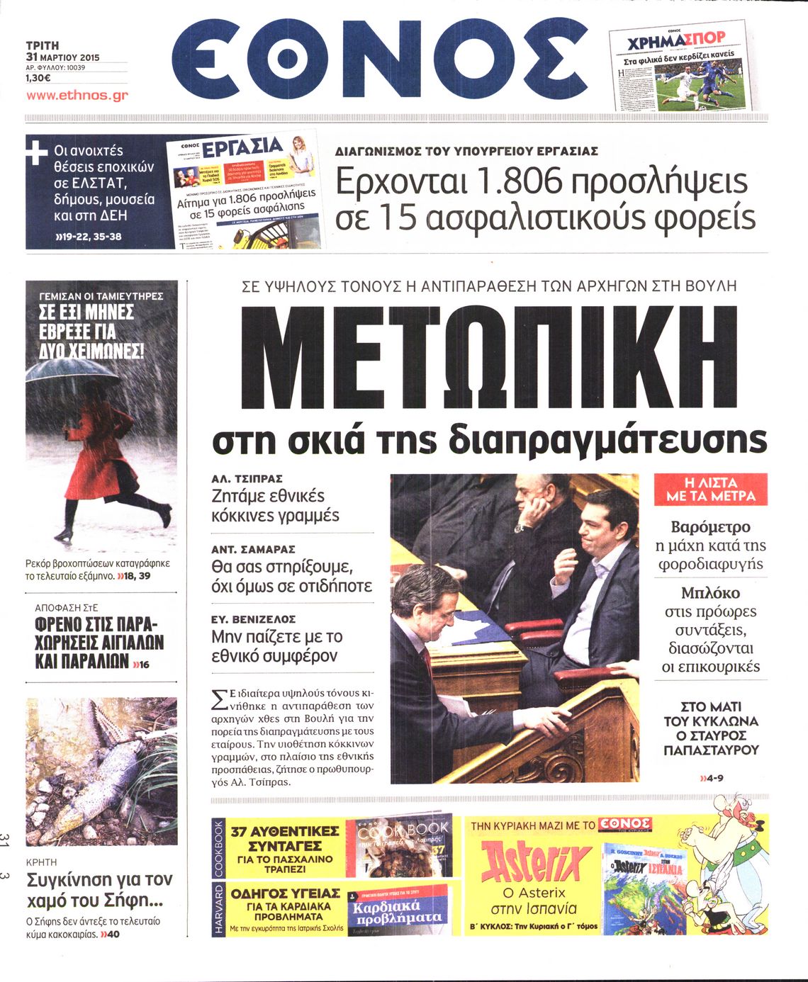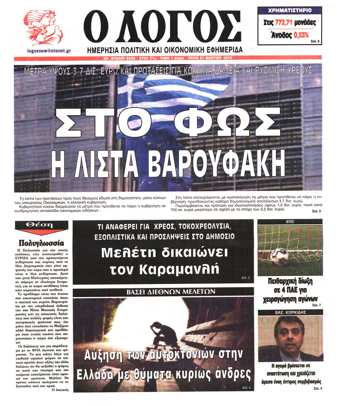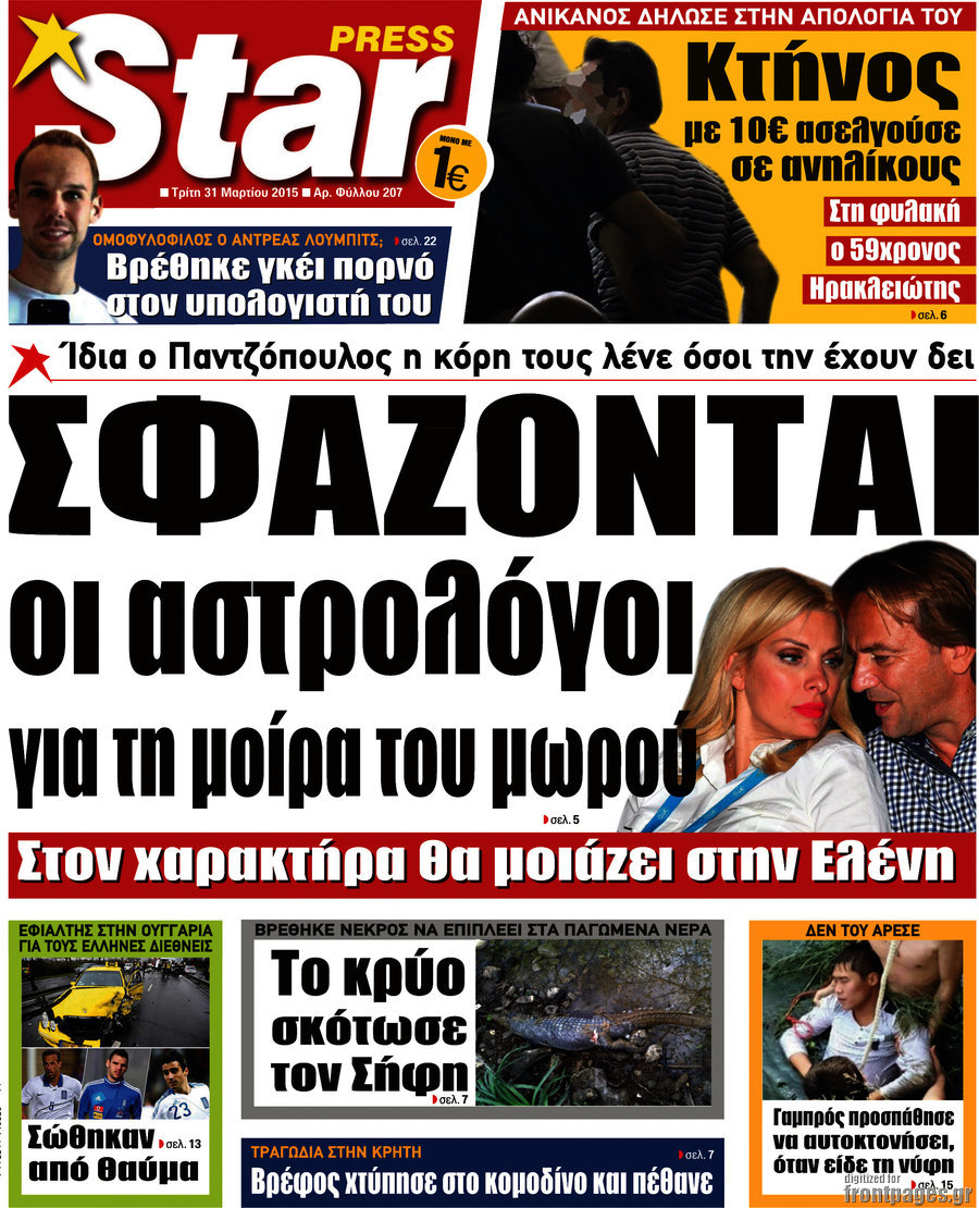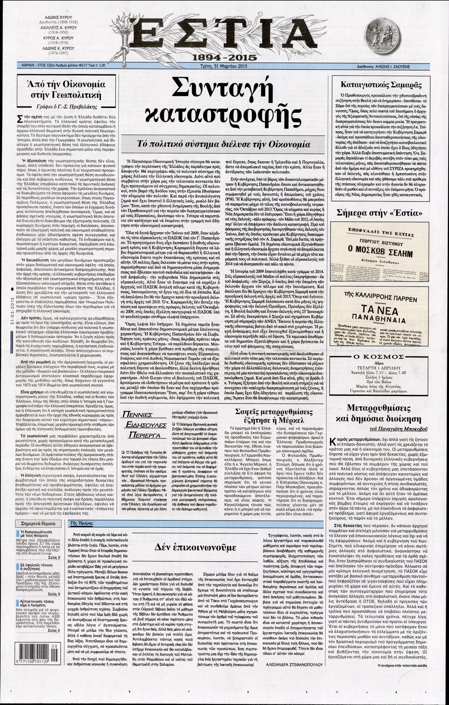 Οι πολιτικές εφημερίδες Enikos Newsroom 07:51, Τρίτη 31 Μαρτίου 2015 Media Διαβάστε τα σημερινά πρωτοσέλιδα των πολιτικών εφημερίδων: ΕΦΗΜΕΡΙΔΕΣ ΠΟΛΙΤΙΚΕΣ ΕΦΗΜΕΡΙΔΕΣ ΠΡΩΤΟΣΕΛΙΔΑ Μοιράσου το: σχολίασε κι εσύ (0 σχόλια) Ακολουθήστε το enikos.gr στο Google News και μάθετε πρώτοι όλες τις ειδήσεις Δείτε όλες τις τελευταίες ειδήσεις από την Ελλάδα και τον Κόσμο στο enikos.gr Ειδήσεις Ροή Ειδήσεων 8 ώρες πριν Χριστούγεννα στα μπλόκα: Επιμένουν στις κινητοποιήσεις τους οι αγρότες – Ανοίγουν τα διόδια το Σαββατοκύριακο 8 ώρες πριν Ουκρανία: Η άνευ προηγουμένου επίθεση σε ρωσικό τάνκερ στη Μεσόγειο και το μήνυμα προς στον Πούτιν – Το «μακρύ χέρι» του Κιέβου 8 ώρες πριν Πούτιν: Τα μηνύματα σε Ευρώπη και ΝΑΤΟ από το μαραθώνιο «σόου» του – Η απαίτηση για «σεβασμό» και η ειρήνη «με τους όρους» της Μόσχας 7 ώρες πριν ΗΠΑ: Η κυβέρνηση του Ντόναλντ Τραμπ άρχισε να δημοσιοποιεί τα αρχεία Έπσταϊν 7 ώρες πριν Άνω Λιόσια: Πυροβολισμοί σε επιχείρηση με χαλιά – Εντοπίστηκαν 10 κάλυκες 38 λεπτά πριν Αυγά: Πόσα μπορείτε να τρώτε την ημέρα με ασφάλεια για μέγιστη πρόσληψη πρωτεΐνης 1 ώρα πριν Τα ζώδια σήμερα, Σάββατο 20 Δεκεμβρίου: Παρθένοι, το σύμπαν σας δίνει το κλειδί 8 ώρες πριν Ανακαλύφθηκαν αρχαία χρυσά νομίσματα 2.200 ετών που απεικονίζουν τον θεό Απόλλωνα – Η άγνωστη σύνδεση με τον Φίλιππο Β΄ της Μακεδονίας 9 ώρες πριν Ύπνος: Μια κρυφή κατάσταση του εγκεφάλου πριν από τον ύπνο μπορεί να είναι το “κλειδί” για υψηλή ευφυΐα και δημιουργικότητα 6 λεπτά πριν ΔΕΔΔΗΕ: Διακοπές ρεύματος σήμερα (20/12) στην Αθήνα και σε άλλες 7 περιοχές της Αττικής 15 λεπτά πριν Κολομβία: Είκοσι χρόνια κάθειρξη σε πρώην ανώτερο αξιωματικό για 72 εκτελέσεις αμάχων 22 λεπτά πριν Οπτική ψευδαίσθηση: Μόνο αν είσαι ο Σέρλοκ Χολμς θα βρεις τον αριθμό «87» σε 7 δευτερόλεπτα 29 λεπτά πριν Σαρωτικοί οι έλεγχοι στους δρόμους ενόψει εορτών – Μπλόκα της τροχαίας σε κεντρικές αρτηρίες της Αττικής 38 λεπτά πριν Αυγά: Πόσα μπορείτε να τρώτε την ημέρα με ασφάλεια για μέγιστη πρόσληψη πρωτεΐνης ENIKOS NETWORK Το ΕΚΑΒ τιμήθηκε από την Ακαδημία Αθηνών για τα 40 χρόνια προσφοράς του Έχετε πραγματικά μεγάλη καρδιά; 10 χαρακτηριστικά όσων έχουν καλοσύνη Αναστολή μέτρων αναγκαστικής εκτέλεσης για κτηνοτρόφους που πλήττονται από την ευλογιά των αιγοπροβάτων Πλήρης επάρκεια προϊόντων στις λαϊκές της Αττικής, παρά τις αγροτικές κινητοποιήσεις – Τι απαντούν οι πωλητές Χαρτογραφώντας το «σημείο χωρίς επιστροφή»: Για πρώτη φορά αποκαλύπτεται με λεπτομέρεια το ακανθώδες όριο της ατμόσφαιρας τ... Η Google καταργεί τη λειτουργία «dark web report» – Πώς θα μπορούν οι χρήστες να διαγράφουν τα δεδομένα τους περισσότερα 05:48 , Σάββατο 20 Δεκεμβρίου 2025 Οι οικονομικές εφημερίδες 20/12/2025 Διαβάστε τα πρωτοσέλιδα από τις οικονομικές εφημερίδες, σήμερα 20/12/2025. 05:43 , Σάββατο 20 Δεκεμβρίου 2025 Οι αθλητικές εφημερίδες 20/12/2025 Διαβάστε τα πρωτοσέλιδα από τις αθλητικές εφημερίδες, σήμερα 20/12/2025. 05:38 , Σάββατο 20 Δεκεμβρίου 2025 Οι πολιτικές εφημερίδες 20/12/2025 Διαβάστε τα πρωτοσέλιδα από τις πολιτικές εφημερίδες, σήμερα 20/12/2025. 04:20 , Σάββατο 20 Δεκεμβρίου 2025 Αγγελική Νικολούλη: Τα συλλυπητήρια για την απώλεια της Ειρήνης Μαρινάκη Τα συλληπητήρια στον πρόεδρο του Mega, τον Βαγγέλη Μαρινάκη, για την απώλεια της μητέρας του Ε... ΤΕΛΕΥΤΑΙΕΣ ΕΙΔΗΣΕΙΣ 6 λεπτά πριν ΔΕΔΔΗΕ: Διακοπές ρεύματος σήμερα (20/12) στην Αθήνα και... 15 λεπτά πριν Κολομβία: Είκοσι χρόνια κάθειρξη σε πρώην ανώτερο... 22 λεπτά πριν Οπτική ψευ