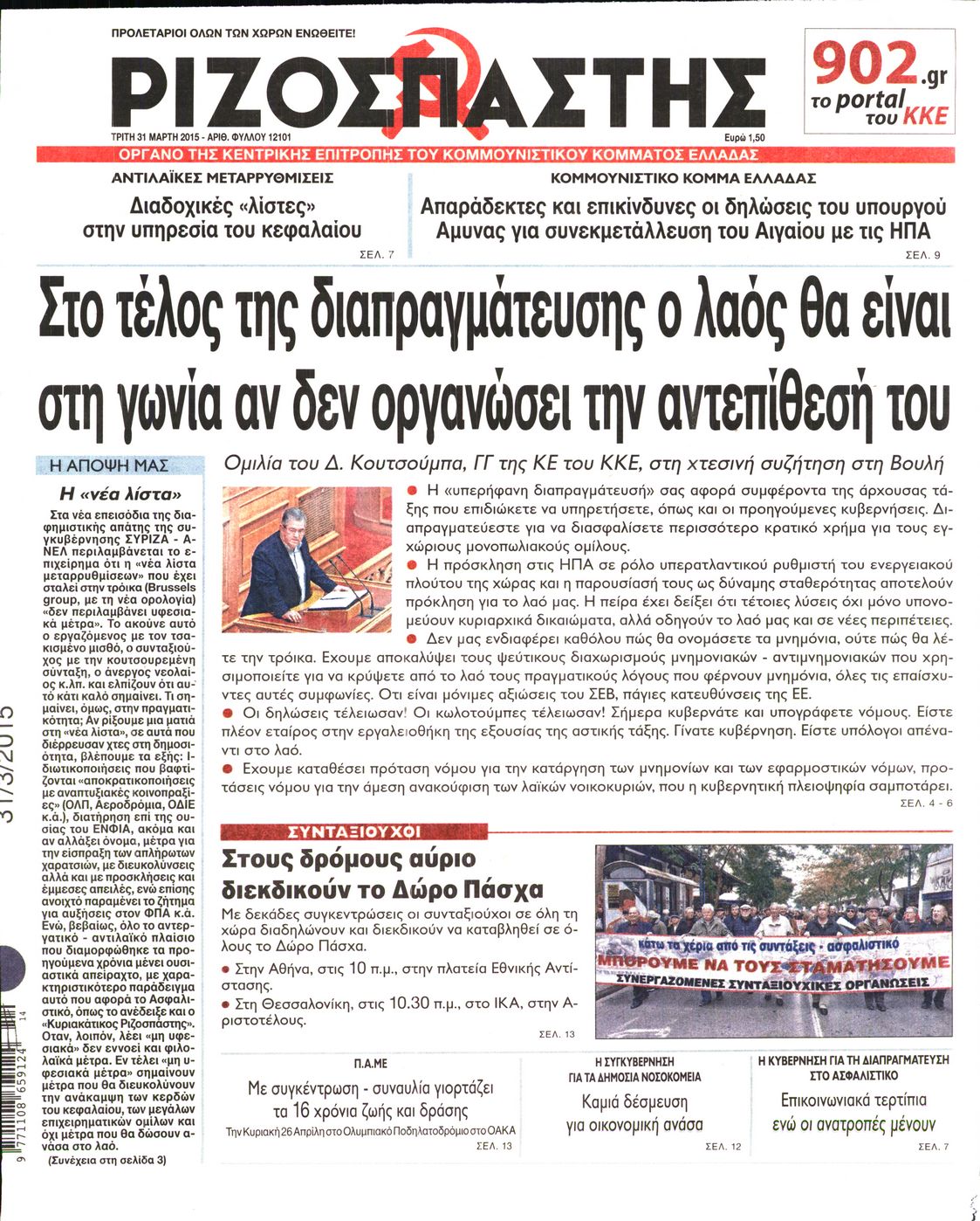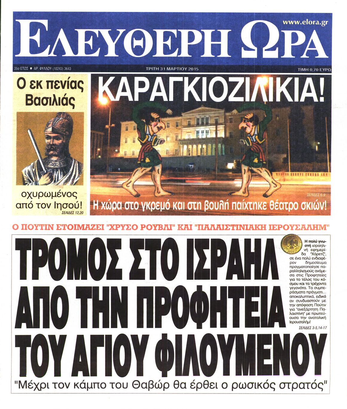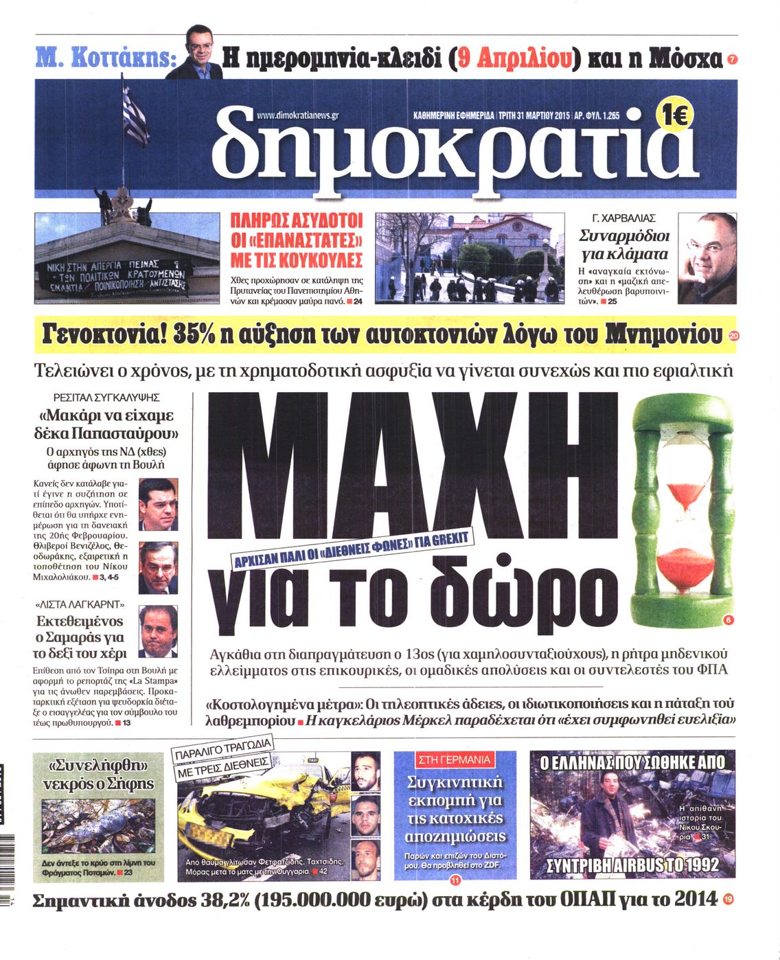 Οι πολιτικές εφημερίδες Enikos Newsroom 07:51, Τρίτη 31 Μαρτίου 2015 Media Διαβάστε τα σημερινά πρωτοσέλιδα των πολιτικών εφημερίδων: ΕΦΗΜΕΡΙΔΕΣ ΠΟΛΙΤΙΚΕΣ ΕΦΗΜΕΡΙΔΕΣ ΠΡΩΤΟΣΕΛΙΔΑ Μοιράσου το: σχολίασε κι εσύ (0 σχόλια) Ακολουθήστε το enikos.gr στο Google News και μάθετε πρώτοι όλες τις ειδήσεις Δείτε όλες τις τελευταίες ειδήσεις από την Ελλάδα και τον Κόσμο στο enikos.gr Ειδήσεις Ροή Ειδήσεων 8 ώρες πριν Χριστούγεννα στα μπλόκα: Επιμένουν στις κινητοποιήσεις τους οι αγρότες – Ανοίγουν τα διόδια το Σαββατοκύριακο 8 ώρες πριν Ουκρανία: Η άνευ προηγουμένου επίθεση σε ρωσικό τάνκερ στη Μεσόγειο και το μήνυμα προς στον Πούτιν – Το «μακρύ χέρι» του Κιέβου 8 ώρες πριν Πούτιν: Τα μηνύματα σε Ευρώπη και ΝΑΤΟ από το μαραθώνιο «σόου» του – Η απαίτηση για «σεβασμό» και η ειρήνη «με τους όρους» της Μόσχας 7 ώρες πριν ΗΠΑ: Η κυβέρνηση του Ντόναλντ Τραμπ άρχισε να δημοσιοποιεί τα αρχεία Έπσταϊν 7 ώρες πριν Άνω Λιόσια: Πυροβολισμοί σε επιχείρηση με χαλιά – Εντοπίστηκαν 10 κάλυκες 38 λεπτά πριν Αυγά: Πόσα μπορείτε να τρώτε την ημέρα με ασφάλεια για μέγιστη πρόσληψη πρωτεΐνης 1 ώρα πριν Τα ζώδια σήμερα, Σάββατο 20 Δεκεμβρίου: Παρθένοι, το σύμπαν σας δίνει το κλειδί 8 ώρες πριν Ανακαλύφθηκαν αρχαία χρυσά νομίσματα 2.200 ετών που απεικονίζουν τον θεό Απόλλωνα – Η άγνωστη σύνδεση με τον Φίλιππο Β΄ της Μακεδονίας 9 ώρες πριν Ύπνος: Μια κρυφή κατάσταση του εγκεφάλου πριν από τον ύπνο μπορεί να είναι το “κλειδί” για υψηλή ευφυΐα και δημιουργικότητα 6 λεπτά πριν ΔΕΔΔΗΕ: Διακοπές ρεύματος σήμερα (20/12) στην Αθήνα και σε άλλες 7 περιοχές της Αττικής 15 λεπτά πριν Κολομβία: Είκοσι χρόνια κάθειρξη σε πρώην ανώτερο αξιωματικό για 72 εκτελέσεις αμάχων 22 λεπτά πριν Οπτική ψευδαίσθηση: Μόνο αν είσαι ο Σέρλοκ Χολμς θα βρεις τον αριθμό «87» σε 7 δευτερόλεπτα 29 λεπτά πριν Σαρωτικοί οι έλεγχοι στους δρόμους ενόψει εορτών – Μπλόκα της τροχαίας σε κεντρικές αρτηρίες της Αττικής 38 λεπτά πριν Αυγά: Πόσα μπορείτε να τρώτε την ημέρα με ασφάλεια για μέγιστη πρόσληψη πρωτεΐνης ENIKOS NETWORK Το ΕΚΑΒ τιμήθηκε από την Ακαδημία Αθηνών για τα 40 χρόνια προσφοράς του Έχετε πραγματικά μεγάλη καρδιά; 10 χαρακτηριστικά όσων έχουν καλοσύνη Αναστολή μέτρων αναγκαστικής εκτέλεσης για κτηνοτρόφους που πλήττονται από την ευλογιά των αιγοπροβάτων Πλήρης επάρκεια προϊόντων στις λαϊκές της Αττικής, παρά τις αγροτικές κινητοποιήσεις – Τι απαντούν οι πωλητές Χαρτογραφώντας το «σημείο χωρίς επιστροφή»: Για πρώτη φορά αποκαλύπτεται με λεπτομέρεια το ακανθώδες όριο της ατμόσφαιρας τ... Η Google καταργεί τη λειτουργία «dark web report» – Πώς θα μπορούν οι χρήστες να διαγράφουν τα δεδομένα τους περισσότερα 05:48 , Σάββατο 20 Δεκεμβρίου 2025 Οι οικονομικές εφημερίδες 20/12/2025 Διαβάστε τα πρωτοσέλιδα από τις οικονομικές εφημερίδες, σήμερα 20/12/2025. 05:43 , Σάββατο 20 Δεκεμβρίου 2025 Οι αθλητικές εφημερίδες 20/12/2025 Διαβάστε τα πρωτοσέλιδα από τις αθλητικές εφημερίδες, σήμερα 20/12/2025. 05:38 , Σάββατο 20 Δεκεμβρίου 2025 Οι πολιτικές εφημερίδες 20/12/2025 Διαβάστε τα πρωτοσέλιδα από τις πολιτικές εφημερίδες, σήμερα 20/12/2025. 04:20 , Σάββατο 20 Δεκεμβρίου 2025 Αγγελική Νικολούλη: Τα συλλυπητήρια για την απώλεια της Ειρήνης Μαρινάκη Τα συλληπητήρια στον πρόεδρο του Mega, τον Βαγγέλη Μαρινάκη, για την απώλεια της μητέρας του Ε... ΤΕΛΕΥΤΑΙΕΣ ΕΙΔΗΣΕΙΣ 6 λεπτά πριν ΔΕΔΔΗΕ: Διακοπές ρεύματος σήμερα (20/12) στην Αθήνα και... 15 λεπτά πριν Κολομβία: Είκοσι χρόνια κάθειρξη σε πρώην ανώτερο... 22 λεπτά πριν Οπτική ψευ