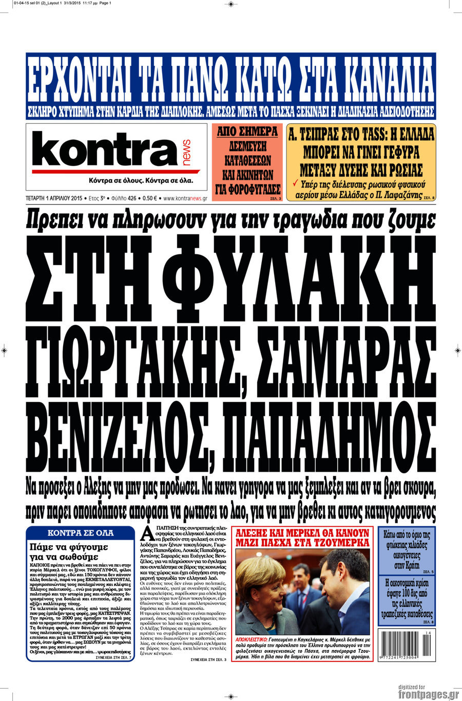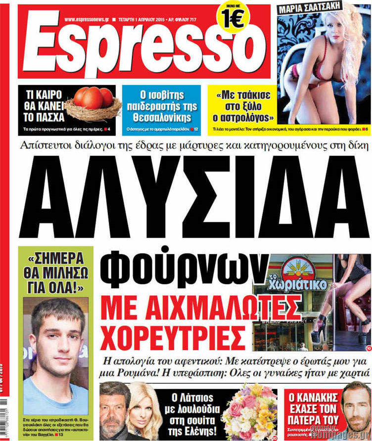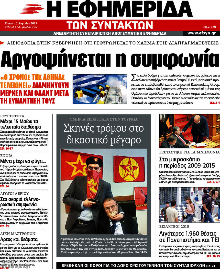 Οι πολιτικές εφημερίδες Enikos Newsroom 08:12, Τετάρτη 01 Απριλίου 2015 Media Διαβάστε τα σημερινά πρωτοσέλιδα των πολιτικών εφημερίδων: ΠΟΛΙΤΙΚΕΣ ΕΦΗΜΕΡΙΔΕΣ Μοιράσου το: σχολίασε κι εσύ (0 σχόλια) Ακολουθήστε το enikos.gr στο Google News και μάθετε πρώτοι όλες τις ειδήσεις Δείτε όλες τις τελευταίες ειδήσεις από την Ελλάδα και τον Κόσμο στο enikos.gr Ειδήσεις Ροή Ειδήσεων 3 ώρες πριν Διάλογοι-σοκ από το κύκλωμα που διακινούσε ναρκωτικά σε σχολεία – «Αν δεν είσαι εκεί σε 5 λεπτά, θα φας πολύ ξύλο μπρο» 4 ώρες πριν Αγρότες από το μπλόκο Νίκαιας κλείνουν τη Δευτέρα τις σήραγγες των Τεμπών για τα φορτηγά – Τι αποφάσισαν 2 ώρες πριν «Πλημμύρισε» με κόσμο η Ερμού ενόψει των Χριστουγέννων – Ουρές στα καταστήματα – ΦΩΤΟ και ΒΙΝΤΕΟ 4 ώρες πριν Ζελένσκι: Τάχθηκε σήμερα υπέρ της διεξαγωγής ευρύτερων διαβουλεύσεων με Ευρωπαίους εταίρους 2 ώρες πριν Super League 2: Ο Σεμπά πέτυχε το γκολ της χρονιάς με ανάποδο ψαλίδι – ΒΙΝΤΕΟ 2 ώρες πριν Αν ανήκετε σε ένα από αυτά τα 3 ζώδια, το 2026 θα είναι η χρονιά σας – «Η ζωή σας βελτιώνεται σε όλους τους τομείς» 6 ώρες πριν Οι άνθρωποι που στρώνουν το κρεβάτι τους κάθε πρωί, διαθέτουν αυτές τις 8 κρυφές δυνάμεις 3 ώρες πριν Ένα πλάσμα στα βάθη της θάλασσας απορροφά άνθρακα από την ατμόσφαιρα – «Δεν είχαμε ιδέα για την ύπαρξή του» 1 ημέρα πριν Enerwave: Το νέο «ρεύμα» στη λιανική ενέργειας που αλλάζει την εμπειρία του καταναλωτή 6 λεπτά πριν Θεσσαλονίκη: Συνελήφθη 27χρονος που έκανε επικίνδυνο ελιγμό για να αποφύγει έλεγχο και παραλίγο να τραυματίσει αστυνομικό 17 λεπτά πριν Εγκαινιάστηκε ο αρχαιολογικός χώρος του Ανακτόρου της Πέλλας – Παρουσιάστηκαν για πρώτη φορά δύο ελληνιστικά αγάλματα 31 λεπτά πριν Βλαδίμηρος Κυριακίδης για Έφη Μουρίκη: «Δεν υπάρχει ανταγωνισμός στη σχέση μας, αλλά συναγωνισμός» 43 λεπτά πριν Δήμος Αθηναίων: Ξεκινά τη Δευτέρα η επιστροφή πινακίδων οχημάτων από τη Δημοτική Αστυνομία 55 λεπτά πριν Μαρία Καρυστιανού: «Δόλιο χτύπημα της κυβέρνησης – Έφοδος της ΑΑΔΕ στα γραφεία του Συλλόγου Θυμάτων Τεμπών» ENIKOS NETWORK «Όσοι απατούν τους συντρόφους τους έχουν ένα κοινό χαρακτηριστικό» αποκαλύπτει ειδικός στις σχέσεις Ο εγκέφαλός μας ξεπερνά ακόμα σε εξυπνάδα το ΑΙ – Ποιο είναι αυτό στο οποίο είμαστε καλύτεροι Λειψυδρία: Πού βρισκόμαστε σήμερα και πώς προετοιμάζεται η ΕΥΔΑΠ για το επόμενο κρίσιμο διάστημα Έρχεται ο Μοναδικός Αριθμός Ταυτότητας για τα ακίνητα: Τι είναι και από πού θα αντλούνται πληροφορίες – Πώς θα αλλάξει τις ... Χαρτογραφώντας το «σημείο χωρίς επιστροφή»: Για πρώτη φορά αποκαλύπτεται με λεπτομέρεια το ακανθώδες όριο της ατμόσφαιρας τ... Η Google καταργεί τη λειτουργία «dark web report» – Πώς θα μπορούν οι χρήστες να διαγράφουν τα δεδομένα τους περισσότερα 17:18 , Κυριακή 21 Δεκεμβρίου 2025 «Η Μεγάλη Χίμαιρα»: Μάγεψε το κοινό κατά την avant-première της προβολής της Την Πρωτοχρονιά (Πέμπτη 1η Ιανουαρίου 2026) στο ERTFLIX θα γίνει η πρεμιέρα της πολυαναμενόμεν... 15:08 , Κυριακή 21 Δεκεμβρίου 2025 Μια νύχτα μόνο: Η Αρετή και ο Οδυσσέας έρχονται και πάλι κοντά Το νέο επεισόδιο της δραματικής σειράς του MEGA «Μια νύχτα μόνο», θα προβληθεί απόψε Κυριακή 2... 14:24 , Κυριακή 21 Δεκεμβρίου 2025 IQ 160: Ο φάκελος με το τεστ πατρότητας ανοίγει, απόψε στις 21:00 στο Star Ανατρεπτικό το νέο διπλό επεισόδιο της σειράς “IQ 160” στις 21:00 στο Star. Ο Τηλέ... 09:43 , Κυριακή 21 Δεκεμβρίου 2025 Το λάθος στην ταινία Die Hard που άφησε άναυδους τους θαυμαστές του Μπρους Γουίλις Ένας φανατικός των ταινιών άφησε 
