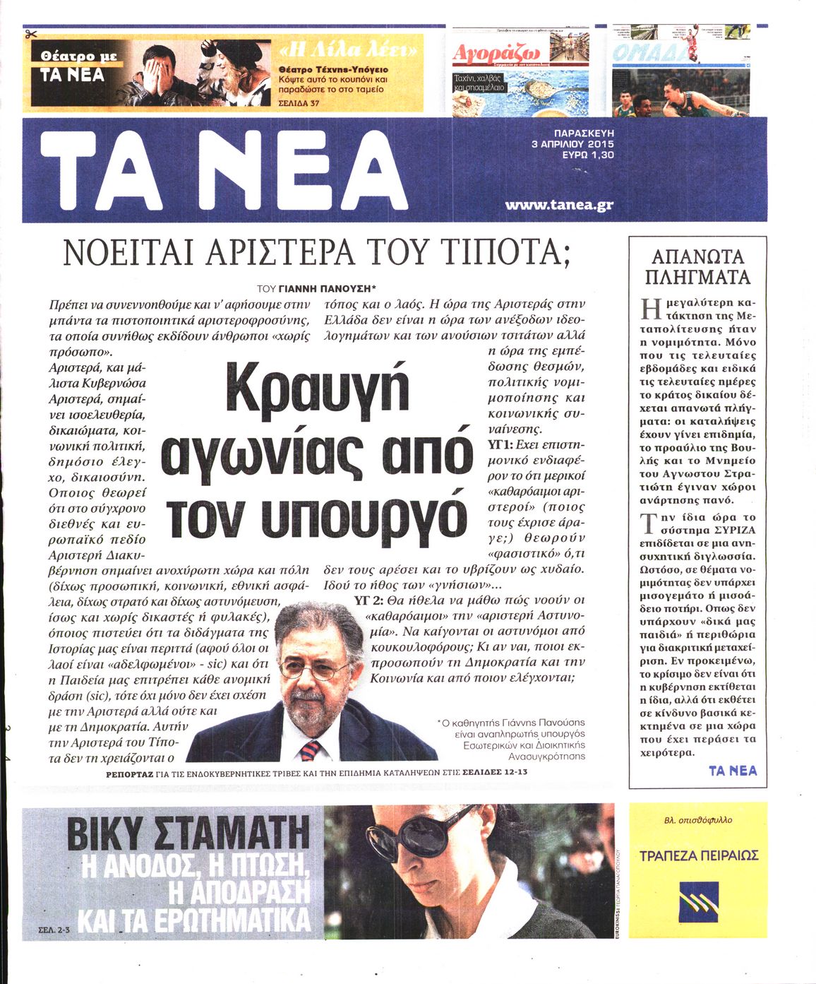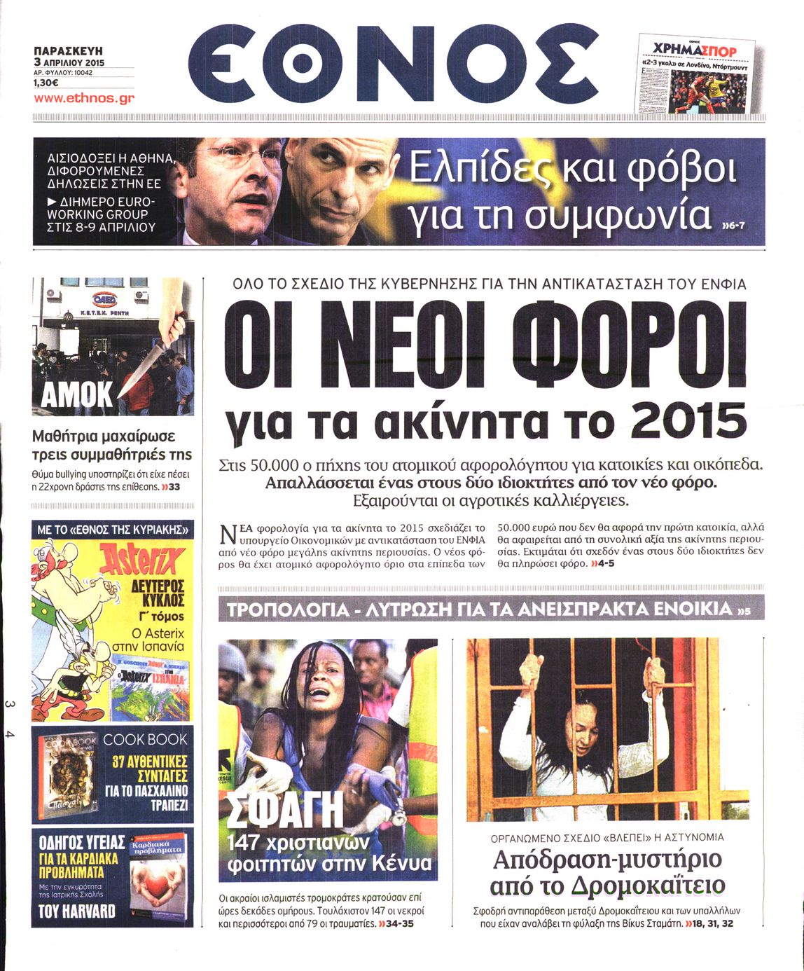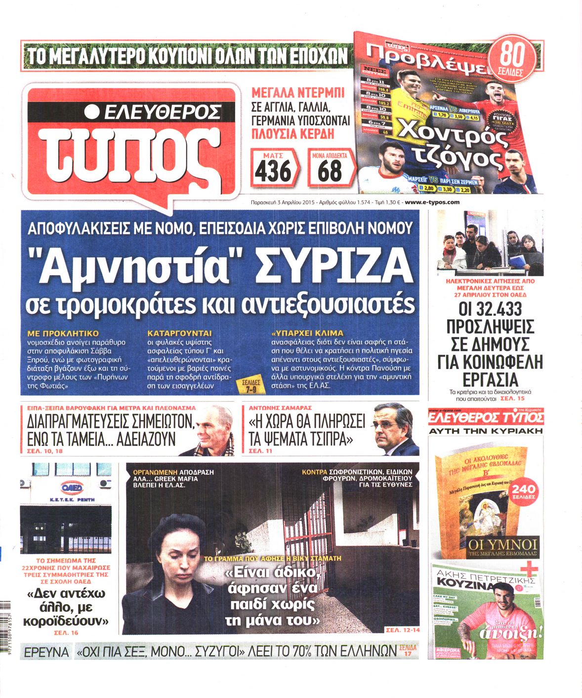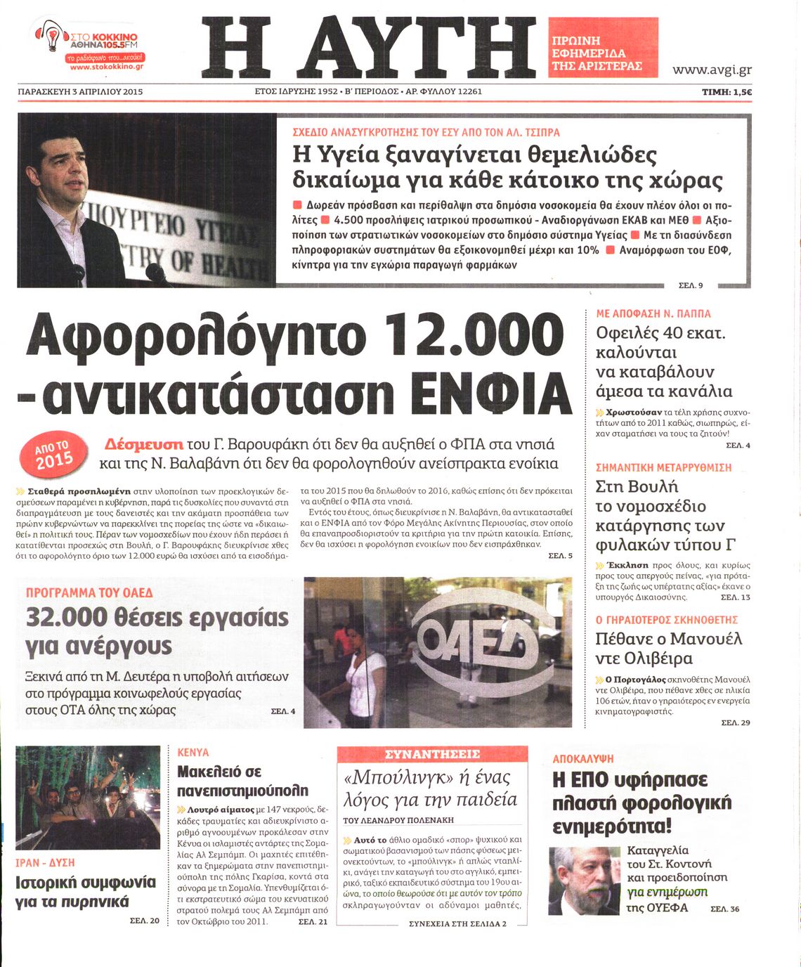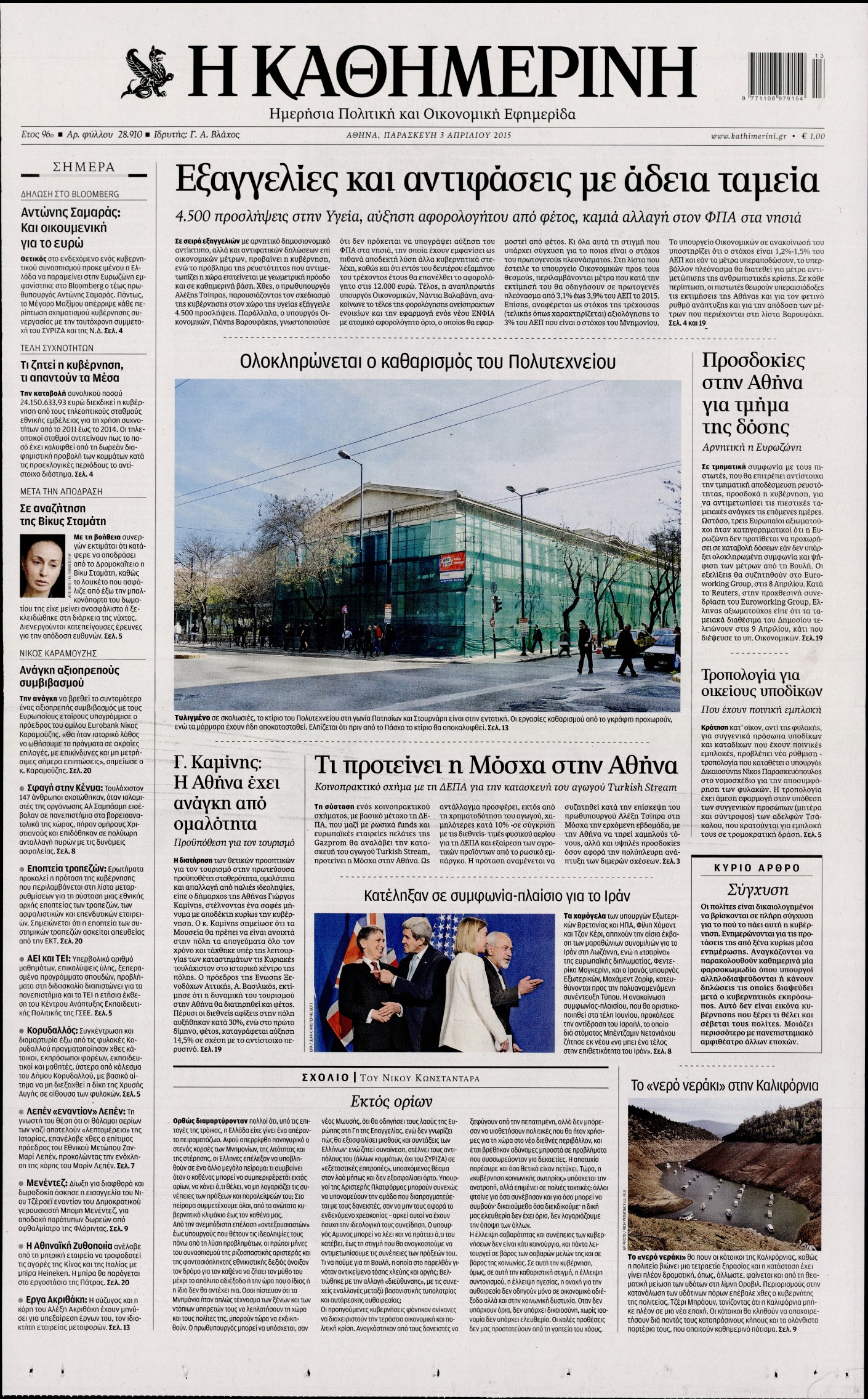 Οι πολιτικές εφημερίδες Enikos Newsroom 07:48, Παρασκευή 03 Απριλίου 2015 Media Διαβάστε τα σημερινά πρωτοσέλιδα των πολιτικών εφημερίδων: ΕΦΗΜΕΡΙΔΕΣ ΠΟΛΙΤΙΚΕΣ ΕΦΗΜΕΡΙΔΕΣ ΠΡΩΤΟΣΕΛΙΔΑ Μοιράσου το: σχολίασε κι εσύ (0 σχόλια) Ακολουθήστε το enikos.gr στο Google News και μάθετε πρώτοι όλες τις ειδήσεις Δείτε όλες τις τελευταίες ειδήσεις από την Ελλάδα και τον Κόσμο στο enikos.gr Ειδήσεις Ροή Ειδήσεων 2 ώρες πριν Αγρότες: Πολύωροι αποκλεισμοί στα τελωνεία Προμαχώνα, Εξοχής, Ευζώνων και Νίκης – Κλείνουν τον κόμβο Φιλώτα οι παραγωγοί στη Δυτική Μακεδονία 2 ώρες πριν Νίκος Παππάς: Ζητώ συγγνώμη για αυτό το επεισόδιο – Δεν τον γρονθοκόπησα 4 ώρες πριν Ευρωπαϊκό Συμβούλιο: Όλες οι λεπτομέρειες για το δάνειο των 90 δισ. ευρώ στην Ουκρανία – Τα συμπεράσματα της Συνόδου Κορυφής 3 ώρες πριν Αίγιο: 22χρονη κατήγγειλε ότι έπεσε θύμα βιασμού και ληστείας από συγγενικά της πρόσωπα 2 ώρες πριν Τρομακτικό βίντεο: Η στιγμή της έκρηξης στο τζετ που μετέφερε τον οδηγό του NASCAR, Γκρεγκ Μπιφλ και την οικογένειά του 2 ώρες πριν Αλλαγή σελίδας για 3 ζώδια – «Μία δύσκολη περίοδος φτάνει στο τέλος της» 2 ημέρες πριν 20 χρόνια τα Χριστούγεννα ξεκινούν στα Public με μεγάλη ποικιλία σε δώρα! 3 ώρες πριν Ο σύζυγός της συμπεριφέρεται όπως το παιδί τους – «Χρησιμοποιεί αστείες δικαιολογίες για να μην κάνει δουλειές και να ξοδεύει λεφτά» 1 ώρα πριν Γεμάτος νεροχύτης; 5 σοβαρές ευθύνες που «φοβίζουν» όσους αφήνουν άπλυτα πιάτα 7 λεπτά πριν Οδοντιατρικός Σύλλογος Αττικής: Προσοχή στις παραπλανητικές διαφημίσεις οδοντικών εμφυτευμάτων 13 λεπτά πριν Αλεξάνδρα Νίκα για Κωνσταντίνο Αργυρό: «Τον συμβουλεύομαι για όλα» – Πώς θα περάσουν τις γιορτές 19 λεπτά πριν Κρήτη: Στο Ρέθυμνο μεταφέρονται οι εκατοντάδες μετανάστες που διασώθηκαν ανοιχτά της Γαύδου 24 λεπτά πριν Ειδικός μοιράζεται 6 κόλπα για να διατηρείστε σε φόρμα με πάνω από 40 ώρες εργασίας την εβδομάδα: «Προπονηθείτε πριν από τη δουλειά, όχι μετά» 32 λεπτά πριν Γονείς για πρώτη φορά ο Πιτ Ντέιβιντσον και η Έλσι Χιούιτ ENIKOS NETWORK Κίνδυνος παραπλάνησης από διαφημίσεις οδοντικών εμφυτευμάτων Καρκίνος του πνεύμονα: Έως 8.000 ζωές μπορούν να σωθούν με την έγκαιρη διάγνωση ΕΥΔΑΠ: Στο τραπέζι αλλαγές στους λογαριασμούς του νερού – Τι θα ισχύσει για ευάλωτα νοικοκυριά και επιχειρήσεις Επιδόματα και παροχές από τον ΟΠΕΚΑ: Τι πιστώνεται σήμερα στους τραπεζικούς λογαριασμούς Χαρτογραφώντας το «σημείο χωρίς επιστροφή»: Για πρώτη φορά αποκαλύπτεται με λεπτομέρεια το ακανθώδες όριο της ατμόσφαιρας τ... Η Google καταργεί τη λειτουργία «dark web report» – Πώς θα μπορούν οι χρήστες να διαγράφουν τα δεδομένα τους περισσότερα 08:00 , Παρασκευή 19 Δεκεμβρίου 2025 Την Κυριακή με τη Realnews: Δωροεπιταγή 10€ Δωροεπιταγή αξίας 10€ για αγορές άνω των 60€ από τα πολυκαταστήματα FactoryOutlet H προσφορά ι... 05:48 , Παρασκευή 19 Δεκεμβρίου 2025 Οι οικονομικές εφημερίδες 19/12/2025 Διαβάστε τα πρωτοσέλιδα από τις οικονομικές εφημερίδες, σήμερα 19/12/2025. 05:43 , Παρασκευή 19 Δεκεμβρίου 2025 Οι αθλητικές εφημερίδες 19/12/2025 Διαβάστε τα πρωτοσέλιδα από τις αθλητικές εφημερίδες, σήμερα 19/12/2025. 05:38 , Παρασκευή 19 Δεκεμβρίου 2025 Οι πολιτικές εφημερίδες 19/12/2025 Διαβάστε τα πρωτοσέλιδα από τις πολιτικές εφημερίδες, σήμερα 19/12/2025. ΤΕΛΕΥΤΑΙΕΣ ΕΙΔΗΣΕΙΣ 7 λεπτά πριν Οδοντιατρικός Σύλλογος Αττικής: Προσοχή στις... 13 λεπτά πριν Αλεξάνδρα Νίκα για Κωνσταντίνο Αργυρό: «Τον... 19 λεπτά πριν Κρήτη: Στο Ρέθυμνο μεταφέρονται οι εκατοντάδες... 24 λεπτά πριν Ειδι