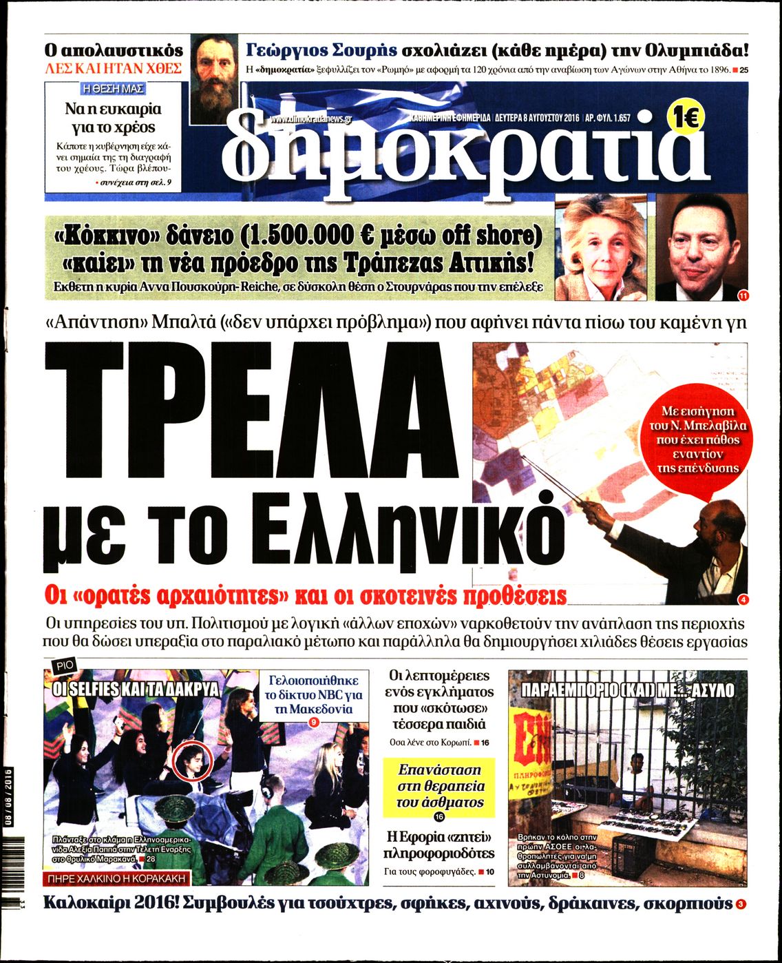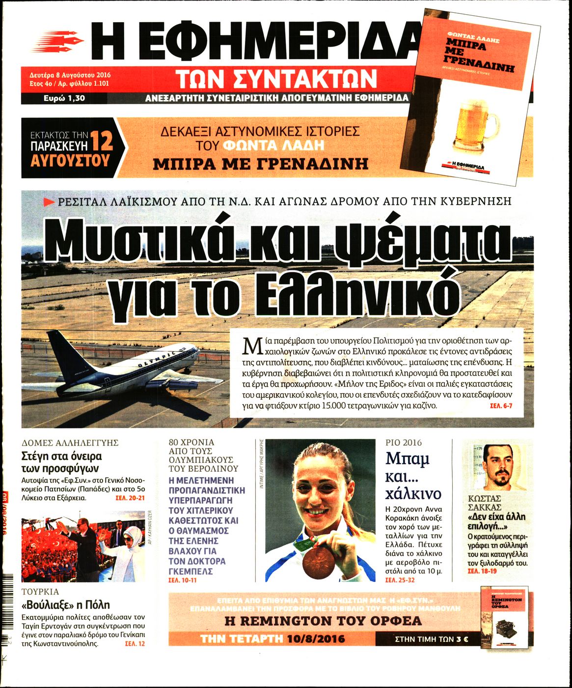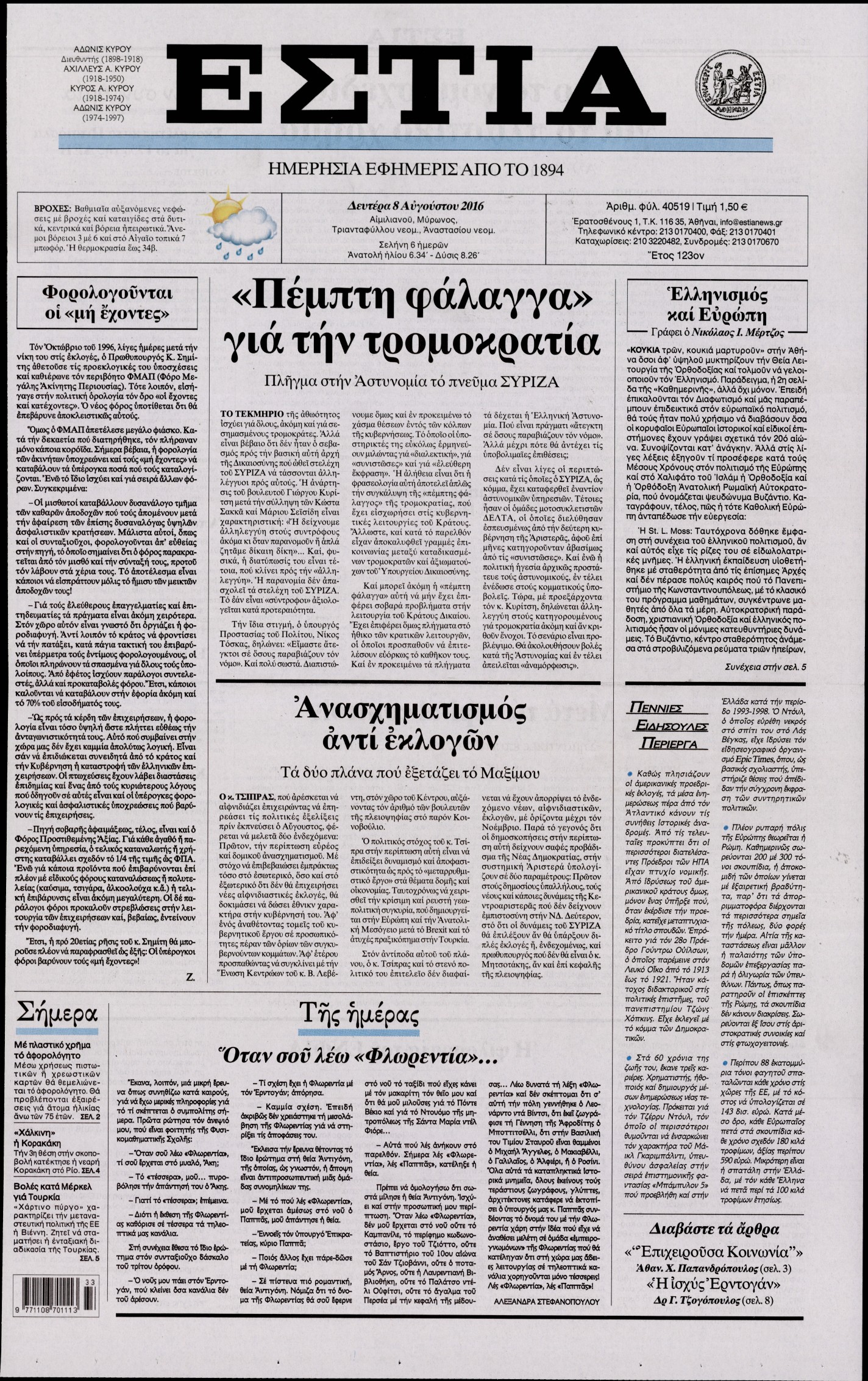 Οι πολιτικές εφημερίδες 8/8/2016 Enikos Newsroom 06:42, Δευτέρα 08 Αυγούστου 2016 Media Διαβάστε τα σημερινά πρωτοσέλιδα των πολιτικών εφημερίδων: ΠΟΛΙΤΙΚΕΣ ΕΦΗΜΕΡΙΔΕΣ ΠΡΩΤΟΣΕΛΙΔΑ Μοιράσου το: σχολίασε κι εσύ (0 σχόλια) Ακολουθήστε το enikos.gr στο Google News και μάθετε πρώτοι όλες τις ειδήσεις Δείτε όλες τις τελευταίες ειδήσεις από την Ελλάδα και τον Κόσμο στο enikos.gr Ειδήσεις Ροή Ειδήσεων 46 λεπτά πριν Ευρωπαϊκή Ένωση: Συμφωνία για δάνειο 90 δισ. ευρώ στην Ουκρανία τη διετία 2026-2027 5 ώρες πριν ΟΠΕΚΕΠΕ: Προφυλακιστέος ο φερόμενος αρχηγός και ο λογιστής της εγκληματικής οργάνωσης 6 ώρες πριν Αυξάνουν την πίεση προς την κυβέρνηση οι αγρότες: Κλείνουν παρακαμπτήριους και ανοίγουν διόδια – Τι θα γίνει τις γιορτές 6 ώρες πριν Φοινικούντα: Το Σάββατο απολογείται ο 30χρονος γιος γνωστού επιχειρηματία της Πλάκας που παραδόθηκε – Όσα είπε στους αστυνομικούς και ο ρόλος του στο έγκλημα 5 ώρες πριν ΑΕΚ – Κραϊόβα 3-2: Επική ανατροπή και πρόκριση στους «16» του Conference League η Ένωση 6 ώρες πριν Αρχαιολόγοι ανακάλυψαν ρωμαϊκά τεχνουργήματα από μια πόλη που δεν υπήρξε ποτέ – Τα τρία εντυπωσιακά κτίρια και ο αμφορέας με τις… σαρδέλες 7 ώρες πριν Ύπνος: Η απλή βραδινή ρουτίνα για να προστατεύσετε τα μαλλιά σας από το κρύο κατά τη διάρκεια του χειμώνα 8 ώρες πριν Manifesting: Πώς να συναντήσετε τον σύντροφο της ζωής σας, ανάλογα με τον μήνα γέννησής σας 2 ημέρες πριν 20 χρόνια τα Χριστούγεννα ξεκινούν στα Public με μεγάλη ποικιλία σε δώρα! 9 λεπτά πριν Αυστραλία: Κήρυξε την Κυριακή (21/12) ημέρα εθνικού πένθους για τη φονική επίθεση στην παραλία Μπόνταϊ 19 λεπτά πριν Ρόδος: Δάσκαλος καράτε καταδικάστηκε για ασέλγεια σε ανήλικες αθλήτριες – Μαρτυρίες για αγγίγματα σε ευαίσθητα σημεία 34 λεπτά πριν Γουατεμάλα: Εξαρθρώθηκε κύκλωμα διακίνησης μεταναστών προς τις ΗΠΑ – Συνελήφθησαν 14 άτομα 39 λεπτά πριν Βουλγαρία: Χιλιάδες πολίτες στους δρόμους κατά της απερχόμενης κυβέρνησης και της διαφθοράς 46 λεπτά πριν Ευρωπαϊκή Ένωση: Συμφωνία για δάνειο 90 δισ. ευρώ στην Ουκρανία τη διετία 2026-2027 ENIKOS NETWORK Σε περίοδο αυξημένης δραστηριότητας η γρίπη στην Ελλάδα-Μέτρα προστασίας από τον ΕΟΔΥ Σκέφτεστε συνέχεια συζητήσεις που έχετε κάνει; Τι σημαίνει αυτό, σύμφωνα με ειδικό Στεγαστικό: Τι λέει η ΠΟΜΙΔΑ για τα νέα μέτρα που ανακοίνωσε ο Κυριάκος Μητσοτάκης Λαγκάρντ: Αισιόδοξη για την ανάπτυξη της Ευρωζώνης, αβέβαιη για τον πληθωρισμό Χαρτογραφώντας το «σημείο χωρίς επιστροφή»: Για πρώτη φορά αποκαλύπτεται με λεπτομέρεια το ακανθώδες όριο της ατμόσφαιρας τ... Η Google καταργεί τη λειτουργία «dark web report» – Πώς θα μπορούν οι χρήστες να διαγράφουν τα δεδομένα τους περισσότερα 02:50 , Παρασκευή 19 Δεκεμβρίου 2025 GNTM: «Κλείδωσαν» οι τέσσερις φιναλίστ – Μεγάλη ανατροπή στις τελευταίες αποχωρήσεις Για προτελευταία φορά εμφανίστηκαν στο πλατό του GNTM οι φιναλίστ του φετινού κύκλου, το βράδυ... 17:45 , Πέμπτη 18 Δεκεμβρίου 2025 ROUK ZOUK: Εορταστικό επεισόδιο με καλεσμένους τους πρωταγωνιστές του «Γιατί ρε πατέρα» Το Σάββατο 20 Δεκεμβρίου στις 21:00, η Ζέτα Μακρυπούλια υποδέχεται εκλεκτούς ηθοποιούς που όλο... 17:20 , Πέμπτη 18 Δεκεμβρίου 2025 Άγιος έρωτας: Η Χριστίνα εξομολογείται στον πατέρα Νικόλαο, απόψε στις 21:00 στον Alpha Η Νότα αποφασίζει να εκδικηθεί τον Πέτρο και τον Στέφανο, για χάρη του Λούη, όμως τα πράγματα ... 16:50 , Πέμπτη 18 Δεκεμβρίου 2025 Να μ’ αγαπάς: Ζωή και Φωτεινή συμφιλιώνονται ως μάνα με κόρη, απόψε στις 20:00 Η ταυτότητα του Άγγελου αποκαλύπτεται στο ν