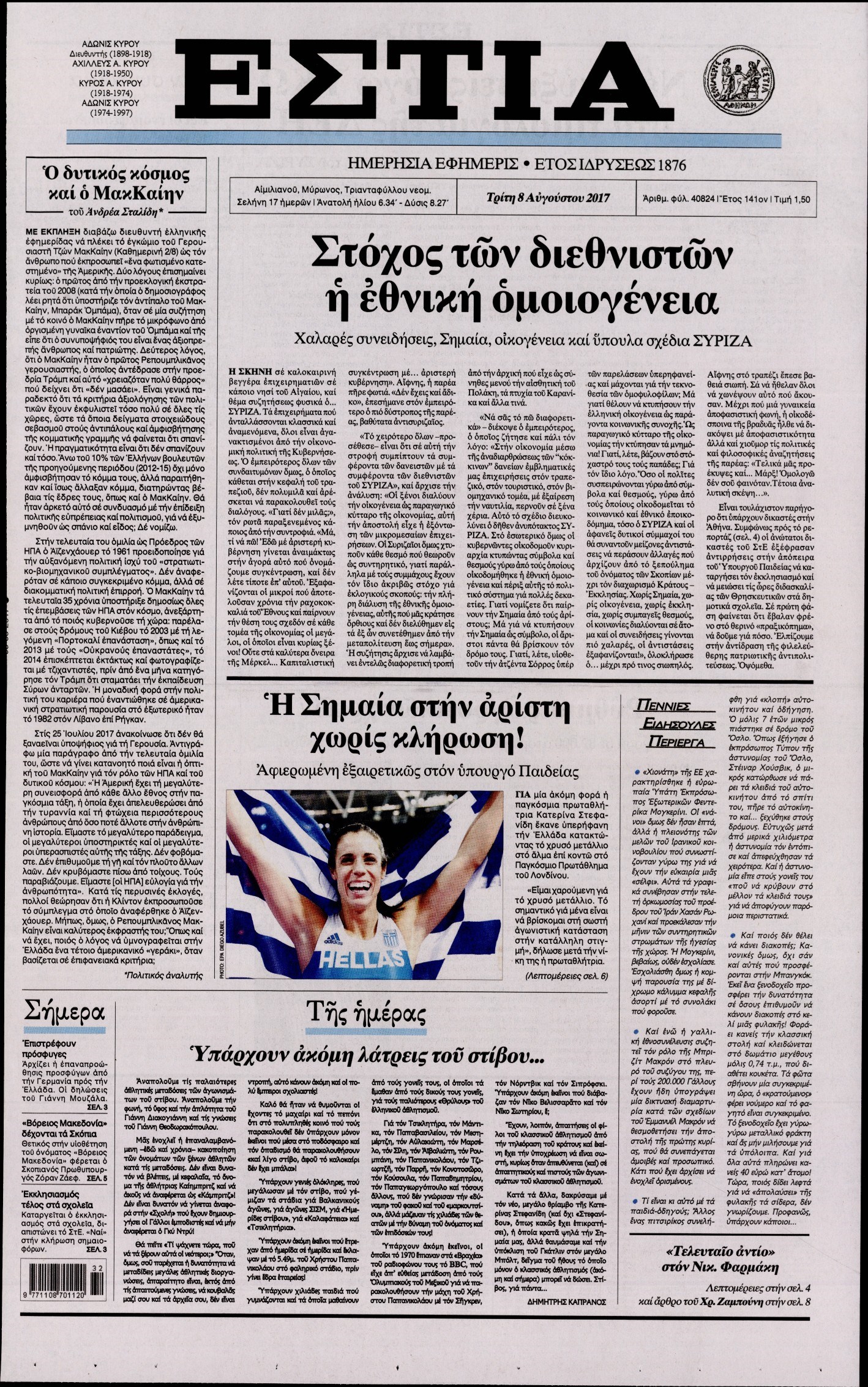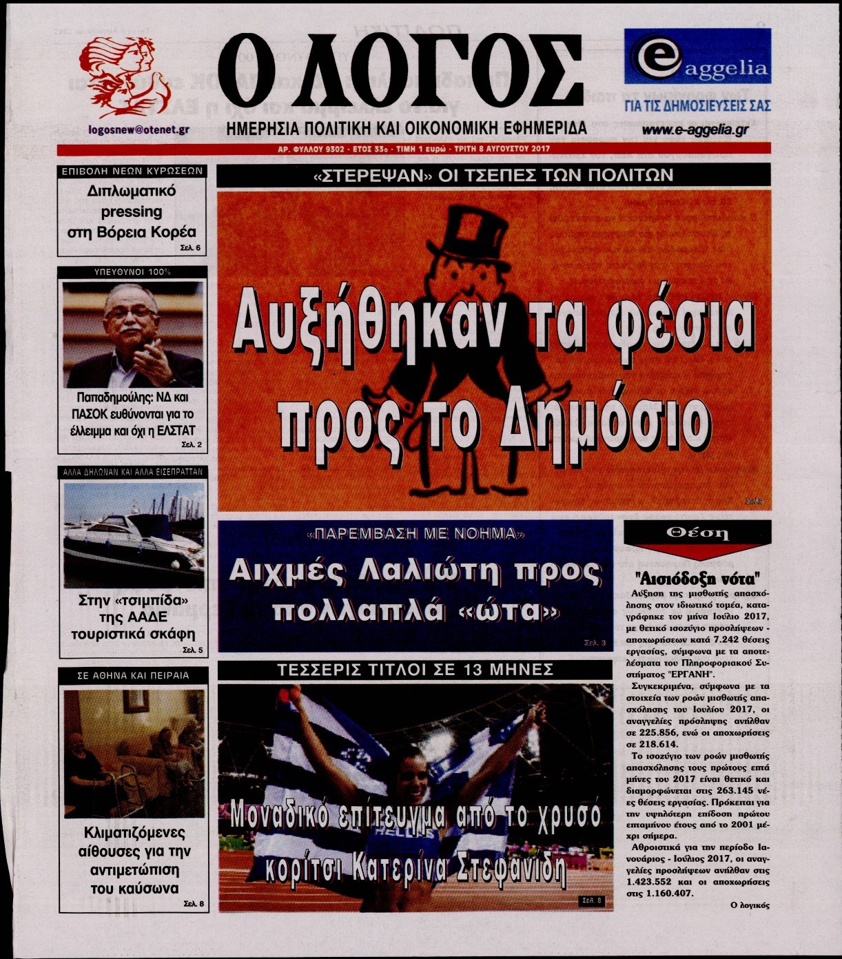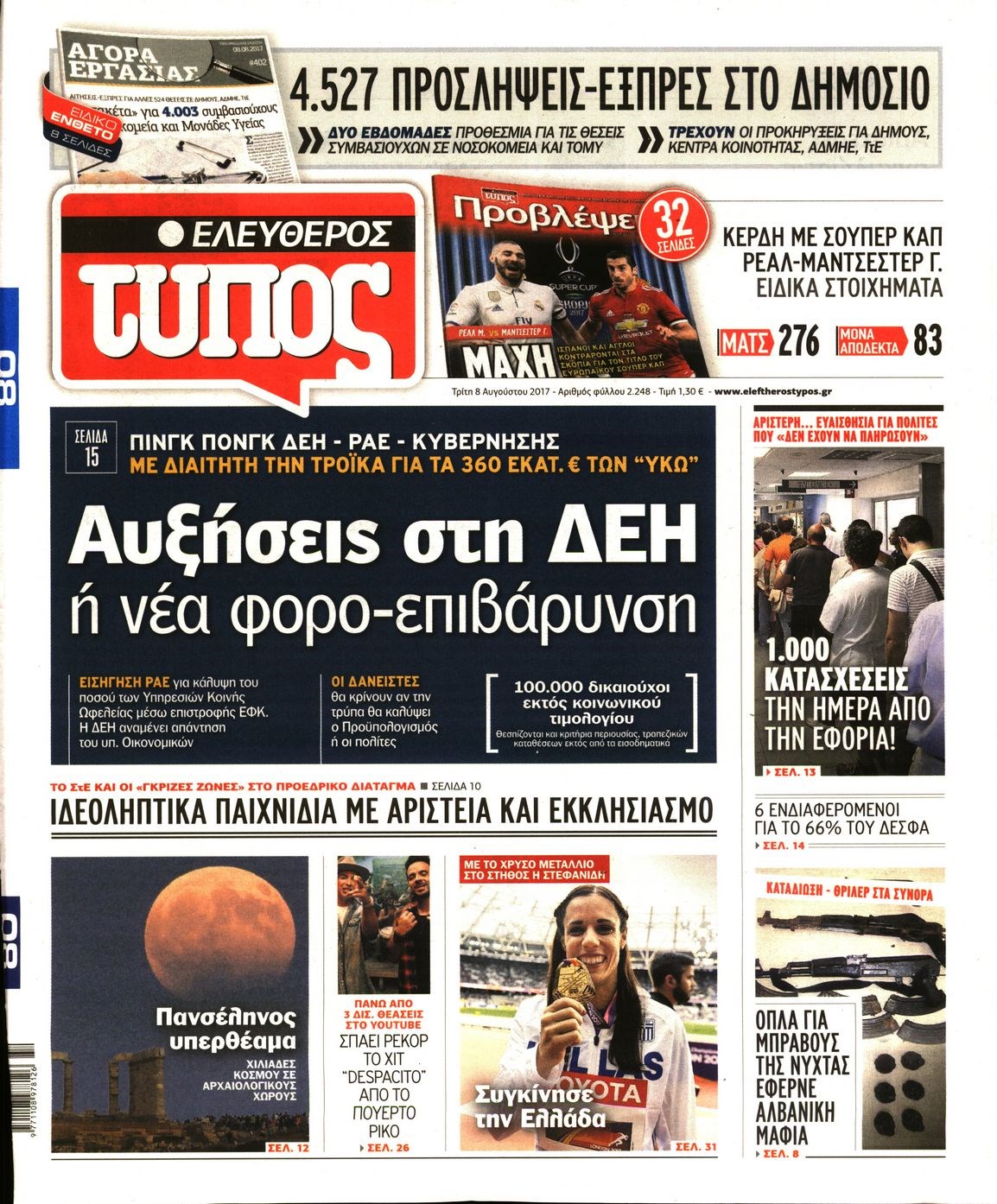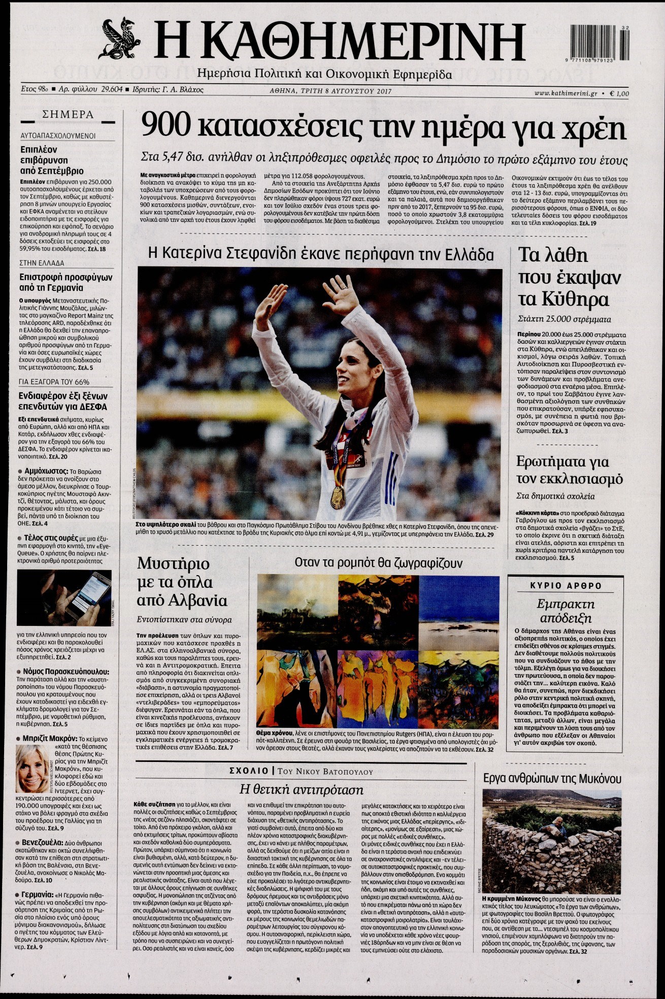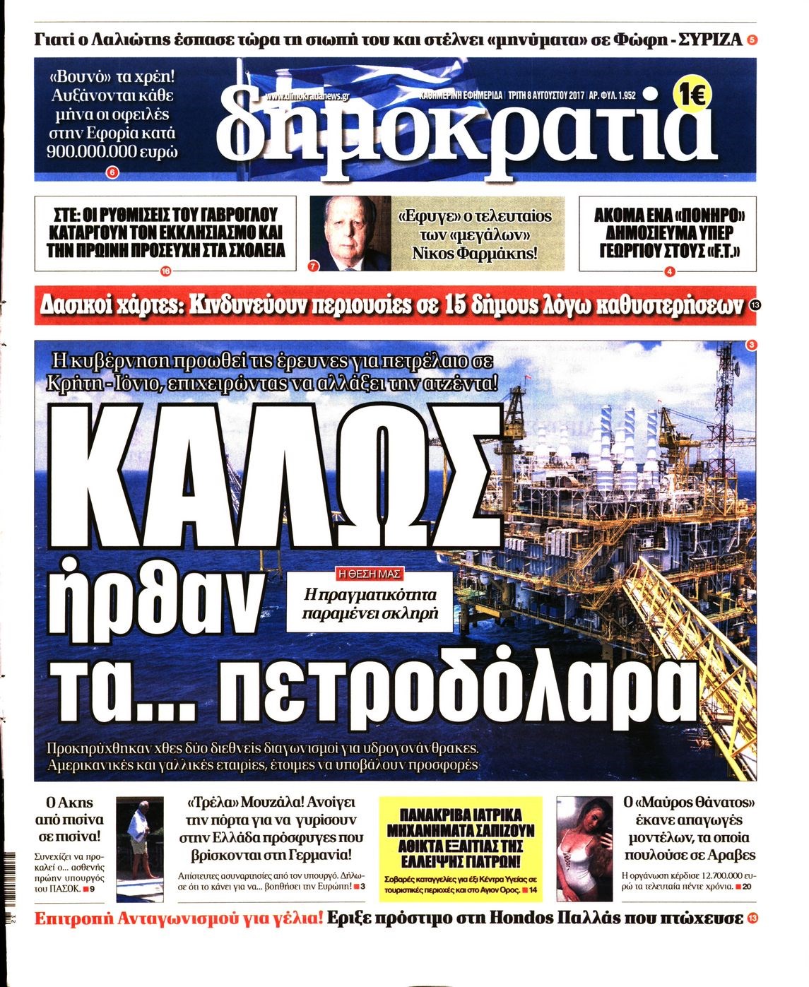 Οι πολιτικές εφημερίδες 8/8/2017 Κώστας Τεό 06:55, Τρίτη 08 Αυγούστου 2017 Media Διαβάστε τα σημερινά πρωτοσέλιδα των πολιτικών εφημερίδων: ΠΟΛΙΤΙΚΕΣ ΕΦΗΜΕΡΙΔΕΣ ΠΡΩΤΟΣΕΛΙΔΑ Μοιράσου το: σχολίασε κι εσύ (0 σχόλια) Ακολουθήστε το enikos.gr στο Google News και μάθετε πρώτοι όλες τις ειδήσεις Δείτε όλες τις τελευταίες ειδήσεις από την Ελλάδα και τον Κόσμο στο enikos.gr Ειδήσεις Ροή Ειδήσεων 2 ώρες πριν Μεσόγειος: Η διαδρομή του ρωσικού τάνκερ «Qendil» και η στοχευμένη επίθεση της Ουκρανίας με drone – Ο Πούτιν προειδοποίησε για αντίποινα 2 ώρες πριν Αττική: Θρίλερ με νεκρό βρέφος 5 μηνών – Κοιμόταν στο ίδιο κρεβάτι με τους γονείς του 3 ώρες πριν Από το Ορμένιο ως τα Μάλγαρα κι από τη Σιάτιστα μέχρι τη Νίκαια: Μπλόκα σε όλη την Ελλάδα – Το Σάββατο ανοίγουν τα διόδια οι αγρότες 3 ώρες πριν «Έλληνας Εσκομπάρ»: Φωτογραφίες με τους 4 τόνους κοκαΐνης που κατασχέθηκαν από το σκάφος «Ουρανία» 4 ώρες πριν Πούτιν: Σαρκαστικά μηνύματα, παράπονα και απρόοπτα στη συνέντευξη Τύπου – Η πρόταση γάμου on air και οι ερωτήσεις για τα αγγούρια και τους… εξωγήινους 4 ώρες πριν Τα 5 ζώδια που ευνοούνται στην ερωτική ζωή τους την επόμενη εβδομάδα – «Η ενέργεια του Αιγόκερου φέρνει αγάπη και σταθερότητα» 8 ώρες πριν Ειδικός μοιράζεται 6 κόλπα για να διατηρείστε σε φόρμα με πάνω από 40 ώρες εργασίας την εβδομάδα: «Προπονηθείτε πριν από τη δουλειά, όχι μετά» 5 ώρες πριν Αυτό το έξυπνο μαθηματικό κόλπο θα μπορούσε να αλλάξει τον τρόπο με τον οποίο οι επιστήμονες μελετούν τους σεισμούς 3 ώρες πριν Κουίζ για την παλιά Αθήνα: Αναγνωρίζετε την περιοχή; Έχετε περάσει 100% από εκεί 6 λεπτά πριν Πούτιν: «Ναι, είμαι ερωτευμένος» – Βίντεο από τη σπάνια προσωπική παραδοχή του 11 λεπτά πριν Γαλλία – Shein: Υποχρεωτικός έλεγχος ηλικίας των πελατών μετά τον σάλο με τις ερωτικές κούκλες 16 λεπτά πριν Εμπλοκή και αερομαχίες με οπλισμένα τουρκικά F-16 στο Αιγαίο 24 λεπτά πριν GNTM: Απόψε ο μεγάλος τελικός για τους 4 φιναλίστ 30 λεπτά πριν Ολυμπιακός: Χωρίς Ποντένσε η αποστολή των Ερυθρόλευκων ενόψει Κηφισιάς ENIKOS NETWORK Έχετε πραγματικά μεγάλη καρδιά; 10 χαρακτηριστικά όσων έχουν καλοσύνη «Η σούπερ» γρίπη εξαπλώνεται στην Ευρώπη-Στοιχεία από το ECDC για την αποτελεσματικότητα του εμβολίου Προκήρυξη ΑΣΕΠ για 397 μόνιμες προσλήψεις στο Δημόσιο: Βγήκαν τα προσωρινά αποτελέσματα – Πότε αρχίζει η υποβολή ενστάσεων Η απάντηση της κυβέρνησης στα αιτήματα των αγροτών: 16 έχουν ικανοποιηθεί, 4 βρίσκονται υπό επεξεργασία και 7 δεν είναι εφι... Χαρτογραφώντας το «σημείο χωρίς επιστροφή»: Για πρώτη φορά αποκαλύπτεται με λεπτομέρεια το ακανθώδες όριο της ατμόσφαιρας τ... Η Google καταργεί τη λειτουργία «dark web report» – Πώς θα μπορούν οι χρήστες να διαγράφουν τα δεδομένα τους περισσότερα 19:31 , Παρασκευή 19 Δεκεμβρίου 2025 GNTM: Απόψε ο μεγάλος τελικός για τους 4 φιναλίστ Έπειτα από μήνες γεμάτους μόδα, δημιουργία και έντονες αναμετρήσεις, το GNTM 2025 κορυφώνεται,... 18:11 , Παρασκευή 19 Δεκεμβρίου 2025 Το σόι σου: Ο Άρης έρχεται στην Ελλάδα για τις γιορτές των Χριστουγέννων – Τι θα δούμε στο αποψινό εορταστικό επεισόδιο Ένα απολαυστικό, εορταστικό επεισόδιο της σειράς “Το σόι σου”, γεμάτο ευτράπελα αλ... 15:15 , Παρασκευή 19 Δεκεμβρίου 2025 Την Κυριακή με τη Realnews: Ό,τι και αν αγοράσεις, σκανάρεις και κερδίζεις! Την Κυριακή με τη Realnews: Ό,τι και αν αγοράσεις, σκανάρεις και κερδίζεις! Με το PADU app, το... 08:00 , Παρασκευή 19 Δεκεμβρίου 2025 Την Κυριακή με τη Realnews: Δωροεπιταγή 10€ Δωροεπιταγή αξίας 10