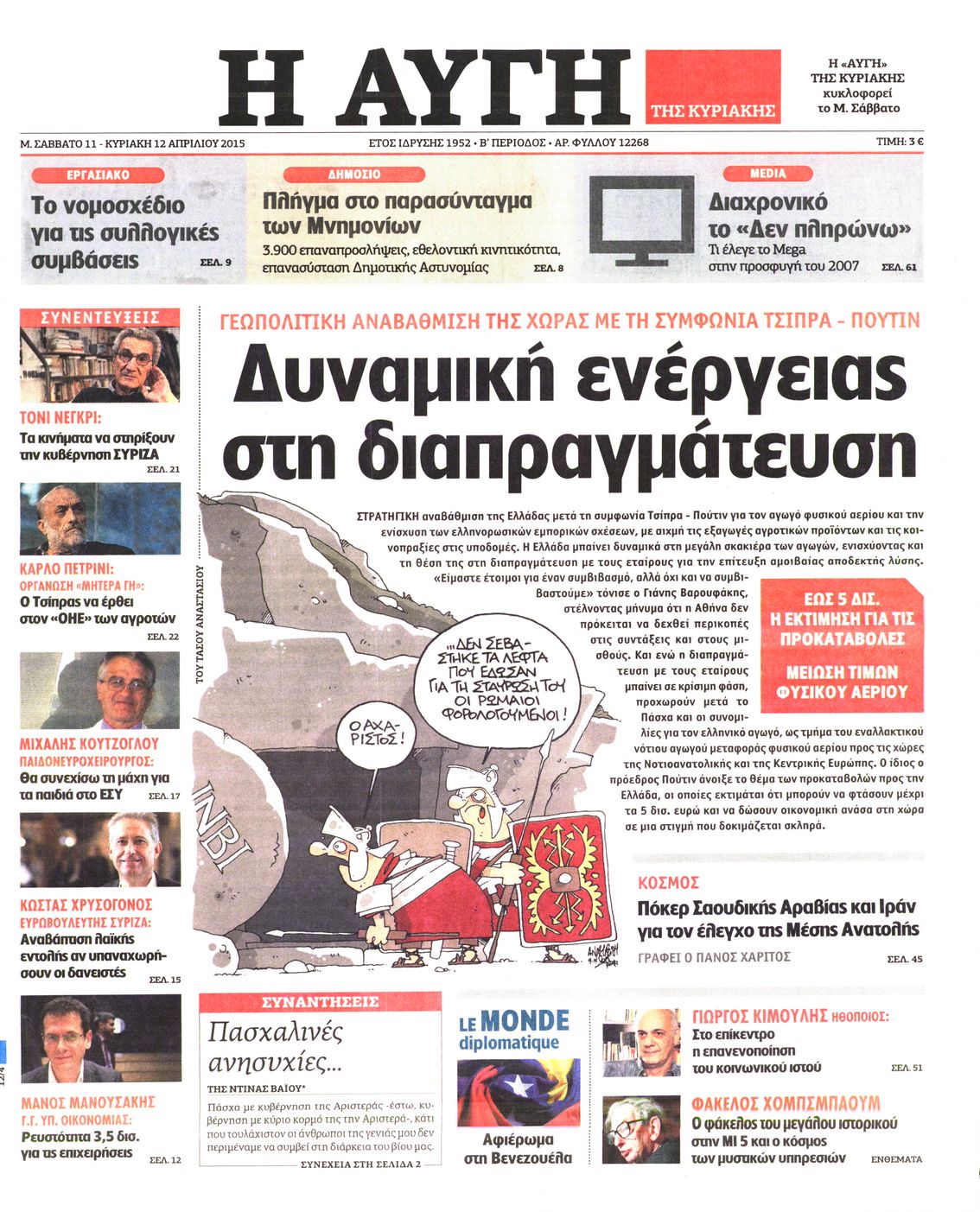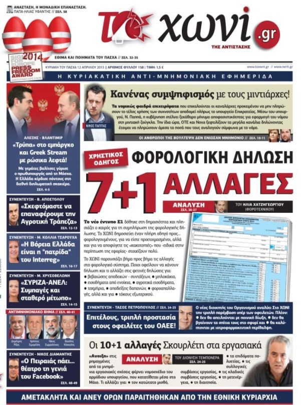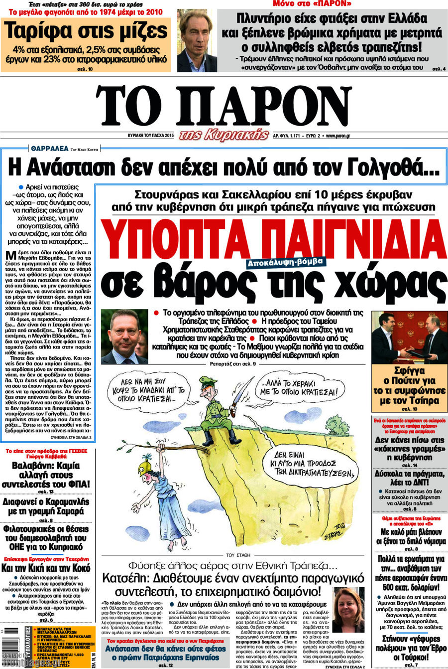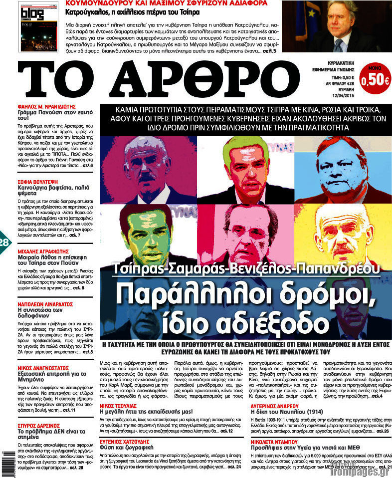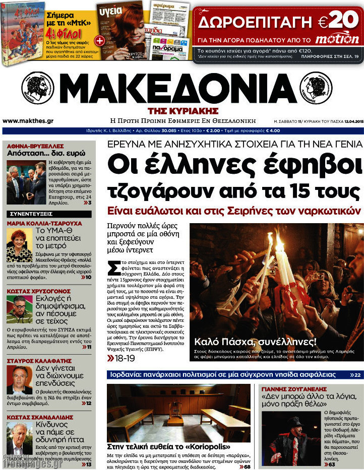 Οι πολιτικές εφημερίδες Enikos Newsroom 07:40, Σάββατο 11 Απριλίου 2015 Media Διαβάστε τα σημερινά πρωτοσέλιδα των πολιτικών εφημερίδων: ΕΦΗΜΕΡΙΔΕΣ ΠΟΛΙΤΙΚΕΣ ΕΦΗΜΕΡΙΔΕΣ ΠΡΩΤΟΣΕΛΙΔΑ Μοιράσου το: σχολίασε κι εσύ (0 σχόλια) Ακολουθήστε το enikos.gr στο Google News και μάθετε πρώτοι όλες τις ειδήσεις Δείτε όλες τις τελευταίες ειδήσεις από την Ελλάδα και τον Κόσμο στο enikos.gr Ειδήσεις Ροή Ειδήσεων 20 λεπτά πριν Χριστούγεννα στα μπλόκα: Επιμένουν στις κινητοποιήσεις τους οι αγρότες – Ανοίγουν τα διόδια το Σαββατοκύριακο 49 λεπτά πριν Τραμπ: Δεν αποκλείει την πιθανότητα ενός πολέμου στη Βενεζουέλα – «Ο Μαδούρο ξέρει καλύτερα από τον καθένα τι ακριβώς θέλω» 43 λεπτά πριν Ουκρανία: Η άνευ προηγουμένου επίθεση σε ρωσικό τάνκερ στη Μεσόγειο και το μήνυμα προς στον Πούτιν – Το «μακρύ χέρι» του Κιέβου 3 ώρες πριν Πούτιν: «Ναι, είμαι ερωτευμένος» – Βίντεο από τη σπάνια προσωπική παραδοχή του 1 ώρα πριν Συνεχίζει να προκαλεί ο Μίτσκοσκι: «Για μένα το όνομα Μακεδονία είναι ιερό» 2 ώρες πριν Αριθμολογία: Οι άνθρωποι που έχουν γεννηθεί αυτές τις 4 ημερομηνίες, συχνά παρεξηγούνται – «Η καλοσύνη τους κρύβει τεράστια δύναμη» 4 ώρες πριν Μήπως έχετε χάσει τον εαυτό σας στη σχέση σας; 7 «αθόρυβες» υποχωρήσεις που μάλλον κάνατε, χωρίς να το συνειδητοποιήσετε 3 ώρες πριν Ξεχάστε το καθάρισμα το Σαββατοκύριακο: Ο «κανόνας των 20 λεπτών» που θα σας λύσει τα χέρια 58 λεπτά πριν Ύπνος: Μια κρυφή κατάσταση του εγκεφάλου πριν από τον ύπνο μπορεί να είναι το “κλειδί” για υψηλή ευφυΐα και δημιουργικότητα 3 λεπτά πριν Νίκος Ξυλούρης: Συγκινεί η χήρα του σπουδαίου καλλιτέχνη – «Ευχαριστώ όλο τον κόσμο που τον κρατάει ζωντανό 45 χρόνια» 10 λεπτά πριν Παναθηναϊκός: «Μέσα» οι Σφιντέρσκι και Τουμπά για το ματς με τον ΠΑΟΚ – Τι έδειξε η μαγνητική του Πάντοβιτς 16 λεπτά πριν Γιώργος Γιαννόπουλος για “Το σόι σου”: “Είναι ευτυχία και ευλογία αυτή η σειρά” 20 λεπτά πριν Χριστούγεννα στα μπλόκα: Επιμένουν στις κινητοποιήσεις τους οι αγρότες – Ανοίγουν τα διόδια το Σαββατοκύριακο 32 λεπτά πριν Χάρι και Μέγκαν: Η σπάνια οικογενειακή φωτογραφία με τον Άρτσι και τη Λίλιμπετ – Τι σχεδιάζουν για τα Χριστούγεννα ENIKOS NETWORK Το ΕΚΑΒ τιμήθηκε από την Ακαδημία Αθηνών για τα 40 χρόνια προσφοράς του Έχετε πραγματικά μεγάλη καρδιά; 10 χαρακτηριστικά όσων έχουν καλοσύνη Πλήρης επάρκεια προϊόντων στις λαϊκές της Αττικής, παρά τις αγροτικές κινητοποιήσεις – Τι απαντούν οι πωλητές ΑΑΔΕ: Νέες αναβαθμίσεις στο Ψηφιακό Πελατολόγιο και την εφαρμογή myDATAapp – Τι πρέπει να γνωρίζετε Χαρτογραφώντας το «σημείο χωρίς επιστροφή»: Για πρώτη φορά αποκαλύπτεται με λεπτομέρεια το ακανθώδες όριο της ατμόσφαιρας τ... Η Google καταργεί τη λειτουργία «dark web report» – Πώς θα μπορούν οι χρήστες να διαγράφουν τα δεδομένα τους περισσότερα 22:42 , Παρασκευή 19 Δεκεμβρίου 2025 Γιώργος Γιαννόπουλος για “Το σόι σου”: “Είναι ευτυχία και ευλογία αυτή η σειρά” «Είναι ευτυχία και ευλογία η συγκυρία αυτής της σειράς», θα πει ο Γιώργος Γιαννόπουλος -ο αγαπ... 20:37 , Παρασκευή 19 Δεκεμβρίου 2025 Don’t Forget The Lyrics: Η Έλλη Κοκκίνου υποδέχεται 4 παίκτες που θα κάνουν τα πάντα για να μη χάσουν ούτε… μισή λέξη από τους στίχους Το «Don’t Forget The Lyrics» επιστρέφει απόψε, Παρασκευή 19 Δεκεμβρίου, στις 21:00 με νέο επει... 19:31 , Παρασκευή 19 Δεκεμβρίου 2025 GNTM: Απόψε ο μεγάλος τελικός για τους 4 φιναλίστ Έπειτα από μήνες γεμάτους μόδα, δημιουργία και έντονες αναμετρήσεις, το GNTM 2025 κορυφώνεται,... 18:11 , Παρασκ