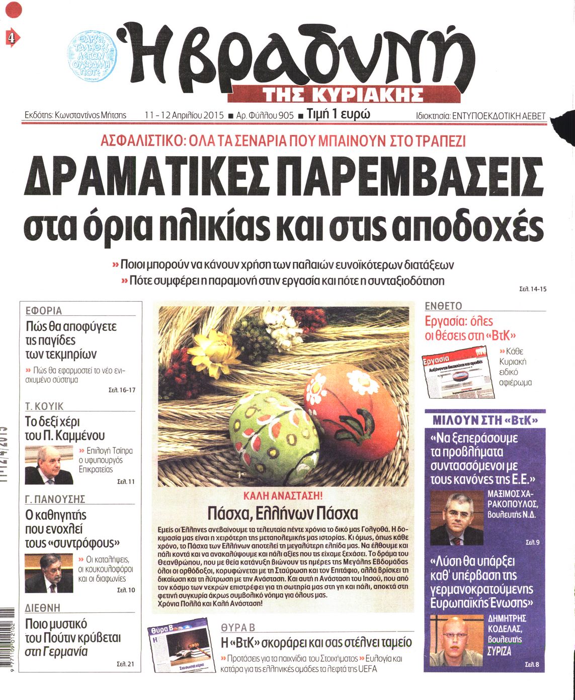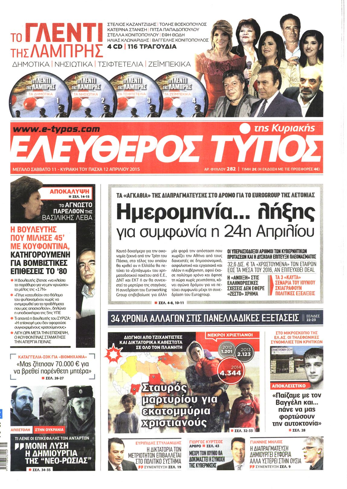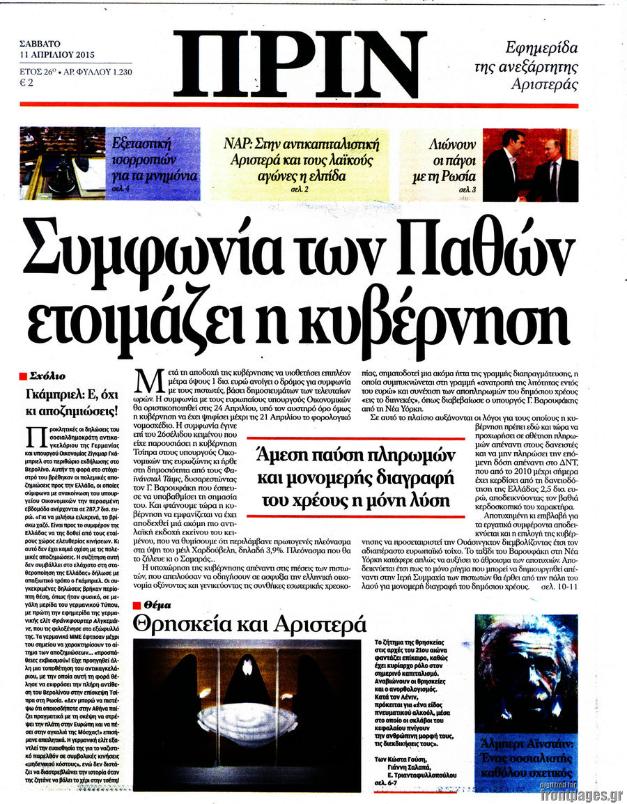Οι πολιτικές εφημερίδες Enikos Newsroom 07:40, Σάββατο 11 Απριλίου 2015 Media Διαβάστε τα σημερινά πρωτοσέλιδα των πολιτικών εφημερίδων: ΕΦΗΜΕΡΙΔΕΣ ΠΟΛΙΤΙΚΕΣ ΕΦΗΜΕΡΙΔΕΣ ΠΡΩΤΟΣΕΛΙΔΑ Μοιράσου το: σχολίασε κι εσύ (0 σχόλια) Ακολουθήστε το enikos.gr στο Google News και μάθετε πρώτοι όλες τις ειδήσεις Δείτε όλες τις τελευταίες ειδήσεις από την Ελλάδα και τον Κόσμο στο enikos.gr Ειδήσεις Ροή Ειδήσεων 20 λεπτά πριν Χριστούγεννα στα μπλόκα: Επιμένουν στις κινητοποιήσεις τους οι αγρότες – Ανοίγουν τα διόδια το Σαββατοκύριακο 49 λεπτά πριν Τραμπ: Δεν αποκλείει την πιθανότητα ενός πολέμου στη Βενεζουέλα – «Ο Μαδούρο ξέρει καλύτερα από τον καθένα τι ακριβώς θέλω» 43 λεπτά πριν Ουκρανία: Η άνευ προηγουμένου επίθεση σε ρωσικό τάνκερ στη Μεσόγειο και το μήνυμα προς στον Πούτιν – Το «μακρύ χέρι» του Κιέβου 3 ώρες πριν Πούτιν: «Ναι, είμαι ερωτευμένος» – Βίντεο από τη σπάνια προσωπική παραδοχή του 1 ώρα πριν Συνεχίζει να προκαλεί ο Μίτσκοσκι: «Για μένα το όνομα Μακεδονία είναι ιερό» 2 ώρες πριν Αριθμολογία: Οι άνθρωποι που έχουν γεννηθεί αυτές τις 4 ημερομηνίες, συχνά παρεξηγούνται – «Η καλοσύνη τους κρύβει τεράστια δύναμη» 4 ώρες πριν Μήπως έχετε χάσει τον εαυτό σας στη σχέση σας; 7 «αθόρυβες» υποχωρήσεις που μάλλον κάνατε, χωρίς να το συνειδητοποιήσετε 3 ώρες πριν Ξεχάστε το καθάρισμα το Σαββατοκύριακο: Ο «κανόνας των 20 λεπτών» που θα σας λύσει τα χέρια 58 λεπτά πριν Ύπνος: Μια κρυφή κατάσταση του εγκεφάλου πριν από τον ύπνο μπορεί να είναι το “κλειδί” για υψηλή ευφυΐα και δημιουργικότητα 3 λεπτά πριν Νίκος Ξυλούρης: Συγκινεί η χήρα του σπουδαίου καλλιτέχνη – «Ευχαριστώ όλο τον κόσμο που τον κρατάει ζωντανό 45 χρόνια» 10 λεπτά πριν Παναθηναϊκός: «Μέσα» οι Σφιντέρσκι και Τουμπά για το ματς με τον ΠΑΟΚ – Τι έδειξε η μαγνητική του Πάντοβιτς 16 λεπτά πριν Γιώργος Γιαννόπουλος για “Το σόι σου”: “Είναι ευτυχία και ευλογία αυτή η σειρά” 20 λεπτά πριν Χριστούγεννα στα μπλόκα: Επιμένουν στις κινητοποιήσεις τους οι αγρότες – Ανοίγουν τα διόδια το Σαββατοκύριακο 32 λεπτά πριν Χάρι και Μέγκαν: Η σπάνια οικογενειακή φωτογραφία με τον Άρτσι και τη Λίλιμπετ – Τι σχεδιάζουν για τα Χριστούγεννα ENIKOS NETWORK Το ΕΚΑΒ τιμήθηκε από την Ακαδημία Αθηνών για τα 40 χρόνια προσφοράς του Έχετε πραγματικά μεγάλη καρδιά; 10 χαρακτηριστικά όσων έχουν καλοσύνη Πλήρης επάρκεια προϊόντων στις λαϊκές της Αττικής, παρά τις αγροτικές κινητοποιήσεις – Τι απαντούν οι πωλητές ΑΑΔΕ: Νέες αναβαθμίσεις στο Ψηφιακό Πελατολόγιο και την εφαρμογή myDATAapp – Τι πρέπει να γνωρίζετε Χαρτογραφώντας το «σημείο χωρίς επιστροφή»: Για πρώτη φορά αποκαλύπτεται με λεπτομέρεια το ακανθώδες όριο της ατμόσφαιρας τ... Η Google καταργεί τη λειτουργία «dark web report» – Πώς θα μπορούν οι χρήστες να διαγράφουν τα δεδομένα τους περισσότερα 22:42 , Παρασκευή 19 Δεκεμβρίου 2025 Γιώργος Γιαννόπουλος για “Το σόι σου”: “Είναι ευτυχία και ευλογία αυτή η σειρά” «Είναι ευτυχία και ευλογία η συγκυρία αυτής της σειράς», θα πει ο Γιώργος Γιαννόπουλος -ο αγαπ... 20:37 , Παρασκευή 19 Δεκεμβρίου 2025 Don’t Forget The Lyrics: Η Έλλη Κοκκίνου υποδέχεται 4 παίκτες που θα κάνουν τα πάντα για να μη χάσουν ούτε… μισή λέξη από τους στίχους Το «Don’t Forget The Lyrics» επιστρέφει απόψε, Παρασκευή 19 Δεκεμβρίου, στις 21:00 με νέο επει... 19:31 , Παρασκευή 19 Δεκεμβρίου 2025 GNTM: Απόψε ο μεγάλος τελικός για τους 4 φιναλίστ Έπειτα από μήνες γεμάτους μόδα, δημιουργία και έντονες αναμετρήσεις, το GNTM 2025 κορυφώνεται,... 18:11 , Παρασκ