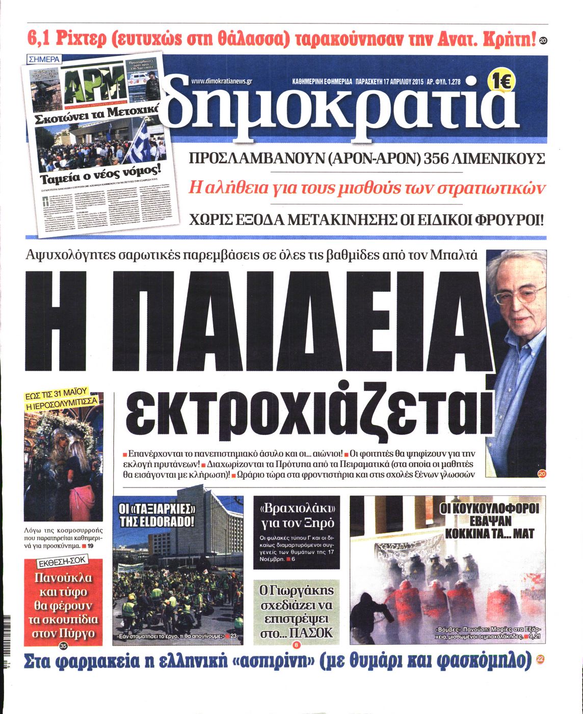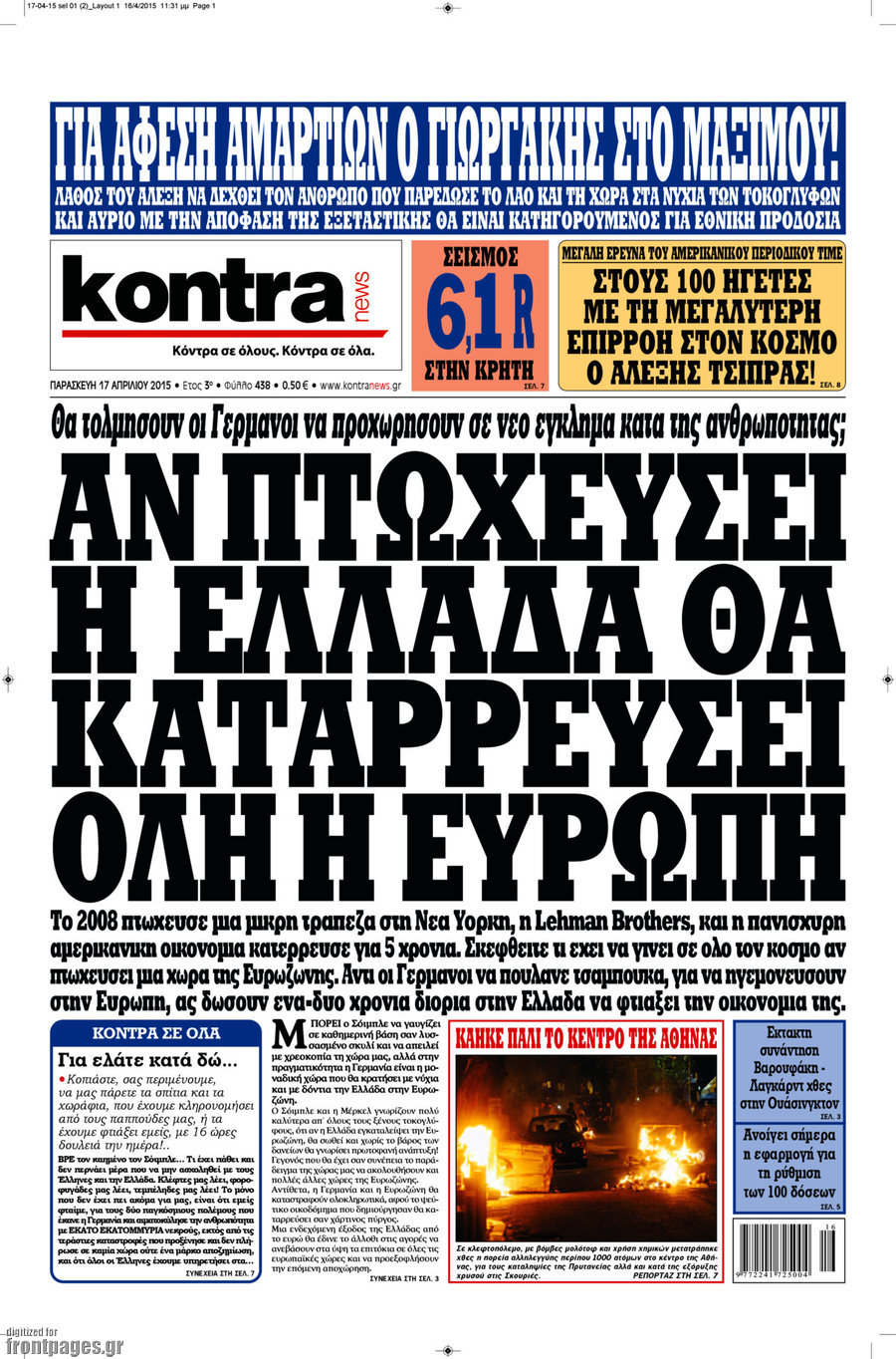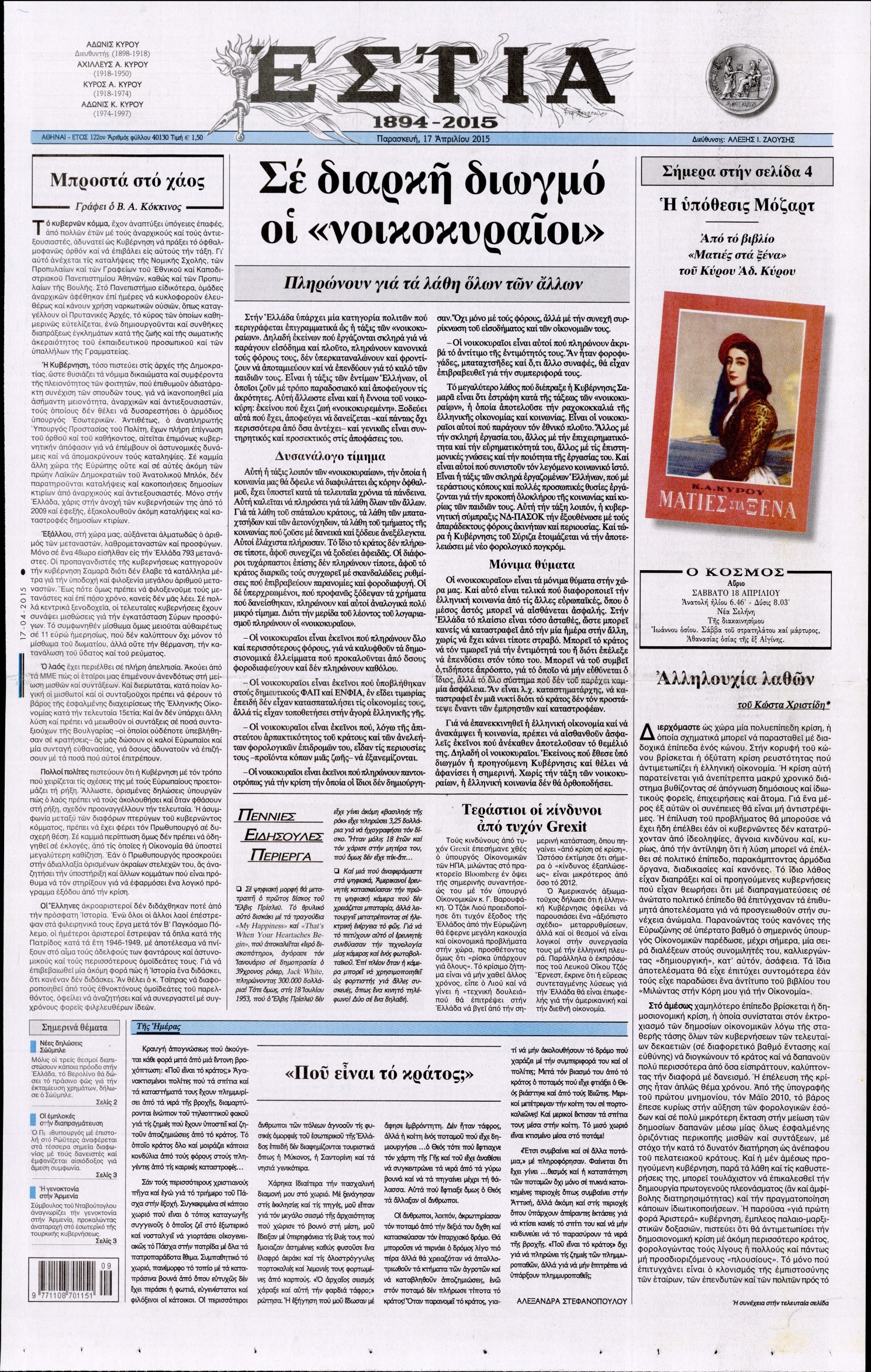 Οι πολιτικές εφημερίδες Enikos Newsroom 07:56, Παρασκευή 17 Απριλίου 2015 Media Διαβάστε τα σημερινά πρωτοσέλιδα των πολιτικών εφημερίδων: ΕΦΗΜΕΡΙΔΕΣ ΠΟΛΙΤΙΚΕΣ ΕΦΗΜΕΡΙΔΕΣ ΠΡΩΤΟΣΕΛΙΔΑ Μοιράσου το: σχολίασε κι εσύ (0 σχόλια) Ακολουθήστε το enikos.gr στο Google News και μάθετε πρώτοι όλες τις ειδήσεις Δείτε όλες τις τελευταίες ειδήσεις από την Ελλάδα και τον Κόσμο στο enikos.gr Ειδήσεις Ροή Ειδήσεων 55 λεπτά πριν Η Ουκρανία χτύπησε τάνκερ του σκιώδους στόλου της Ρωσίας στη Μεσόγειο – Έπλεε νότια της Κρήτης 3 ώρες πριν Πούτιν: Η Ουκρανία δεν είναι έτοιμη για ειρηνευτικές συνομιλίες – Ο ρωσικός στρατός προελαύνει σε όλα τα μέτωπα 4 ώρες πριν Νίκος Παππάς: Ζητώ συγγνώμη για αυτό το επεισόδιο – Δεν τον γρονθοκόπησα 10 λεπτά πριν Εξώδικο επιχειρηματία στον Γιώργο Μαζωνάκη – Τι απαντά στις καταγγελίες του τραγουδιστή 59 λεπτά πριν Βουλή: Υπερψηφίστηκε το νομοσχέδιο για την ένταξη του ΟΠΕΚΕΠΕ στην ΑΑΔΕ 5 ώρες πριν Αλλαγή σελίδας για 3 ζώδια – «Μία δύσκολη περίοδος φτάνει στο τέλος της» 2 ημέρες πριν 20 χρόνια τα Χριστούγεννα ξεκινούν στα Public με μεγάλη ποικιλία σε δώρα! 4 ώρες πριν Γεμάτος νεροχύτης; 5 σοβαρές ευθύνες που «φοβίζουν» όσους αφήνουν άπλυτα πιάτα 3 ώρες πριν Ειδικός μοιράζεται 6 κόλπα για να διατηρείστε σε φόρμα με πάνω από 40 ώρες εργασίας την εβδομάδα: «Προπονηθείτε πριν από τη δουλειά, όχι μετά» 2 λεπτά πριν Πούτιν: Προειδοποιεί το Κίεβο με αντίποινα για την επίθεση σε ρωσικό τάνκερ στη Μεσόγειο 4 λεπτά πριν Γαλλία: Άνοιξε το Μουσείο του Λούβρου – Τέλος των απεργιακών κινητοποιήσεων 10 λεπτά πριν Εξώδικο επιχειρηματία στον Γιώργο Μαζωνάκη – Τι απαντά στις καταγγελίες του τραγουδιστή 15 λεπτά πριν Sports Party* με το ντέρμπι ΠΑΟΚ-Παναθηναϊκός την Κυριακή από το Πάμε Στοίχημα 22 λεπτά πριν Πρίγκιπας Χάρι – Μέγκαν Μαρκλ: Αλλάζουν όνομα στο φιλανθρωπικό ίδρυμα Archewell Foundation ENIKOS NETWORK Τάξη στις ιατρικές διαφημίσεις για την προστασία των πολιτών βάζει ο ΙΣΑ Μακροζωία: Τι παίζει πιο σημαντικό ρόλο ακόμα και από την διατροφή και την άσκηση, σύμφωνα με μελέτη ΕΥΔΑΠ: Οδηγός για τις αλλαγές στα τιμολόγια του νερού – 17 ερωτήσεις και απαντήσεις e-ΕΦΚΑ: Νέα παράταση της προθεσμίας υποβολής για τις ΑΠΔ – Ποιες επιχειρήσεις αφορά Χαρτογραφώντας το «σημείο χωρίς επιστροφή»: Για πρώτη φορά αποκαλύπτεται με λεπτομέρεια το ακανθώδες όριο της ατμόσφαιρας τ... Η Google καταργεί τη λειτουργία «dark web report» – Πώς θα μπορούν οι χρήστες να διαγράφουν τα δεδομένα τους περισσότερα 08:00 , Παρασκευή 19 Δεκεμβρίου 2025 Την Κυριακή με τη Realnews: Δωροεπιταγή 10€ Δωροεπιταγή αξίας 10€ για αγορές άνω των 60€ από τα πολυκαταστήματα FactoryOutlet H προσφορά ι... 05:48 , Παρασκευή 19 Δεκεμβρίου 2025 Οι οικονομικές εφημερίδες 19/12/2025 Διαβάστε τα πρωτοσέλιδα από τις οικονομικές εφημερίδες, σήμερα 19/12/2025. 05:43 , Παρασκευή 19 Δεκεμβρίου 2025 Οι αθλητικές εφημερίδες 19/12/2025 Διαβάστε τα πρωτοσέλιδα από τις αθλητικές εφημερίδες, σήμερα 19/12/2025. 05:38 , Παρασκευή 19 Δεκεμβρίου 2025 Οι πολιτικές εφημερίδες 19/12/2025 Διαβάστε τα πρωτοσέλιδα από τις πολιτικές εφημερίδες, σήμερα 19/12/2025. ΤΕΛΕΥΤΑΙΕΣ ΕΙΔΗΣΕΙΣ 4 λεπτά πριν Γαλλία: Άνοιξε το Μουσείο του Λούβρου – Τέλος των... 10 λεπτά πριν Εξώδικο επιχειρηματία στον Γιώργο Μαζωνάκη – Τι... 15 λεπτά πριν Sports Party* με το ντέρμπι ΠΑΟΚ-Παναθηναϊκός την Κυριακή... 22 λεπτά πριν Πρίγκιπας Χάρι – Μέγκαν Μαρκλ: Αλλάζουν όνομα στο... 28 λεπτά πριν Βουλή: «Γαλάζιος» καβγάς Δαβάκη – Καιρίδη για την... 33 λεπτά πριν Ένωση Δικαστικών στο ΣτΕ: Διαβ