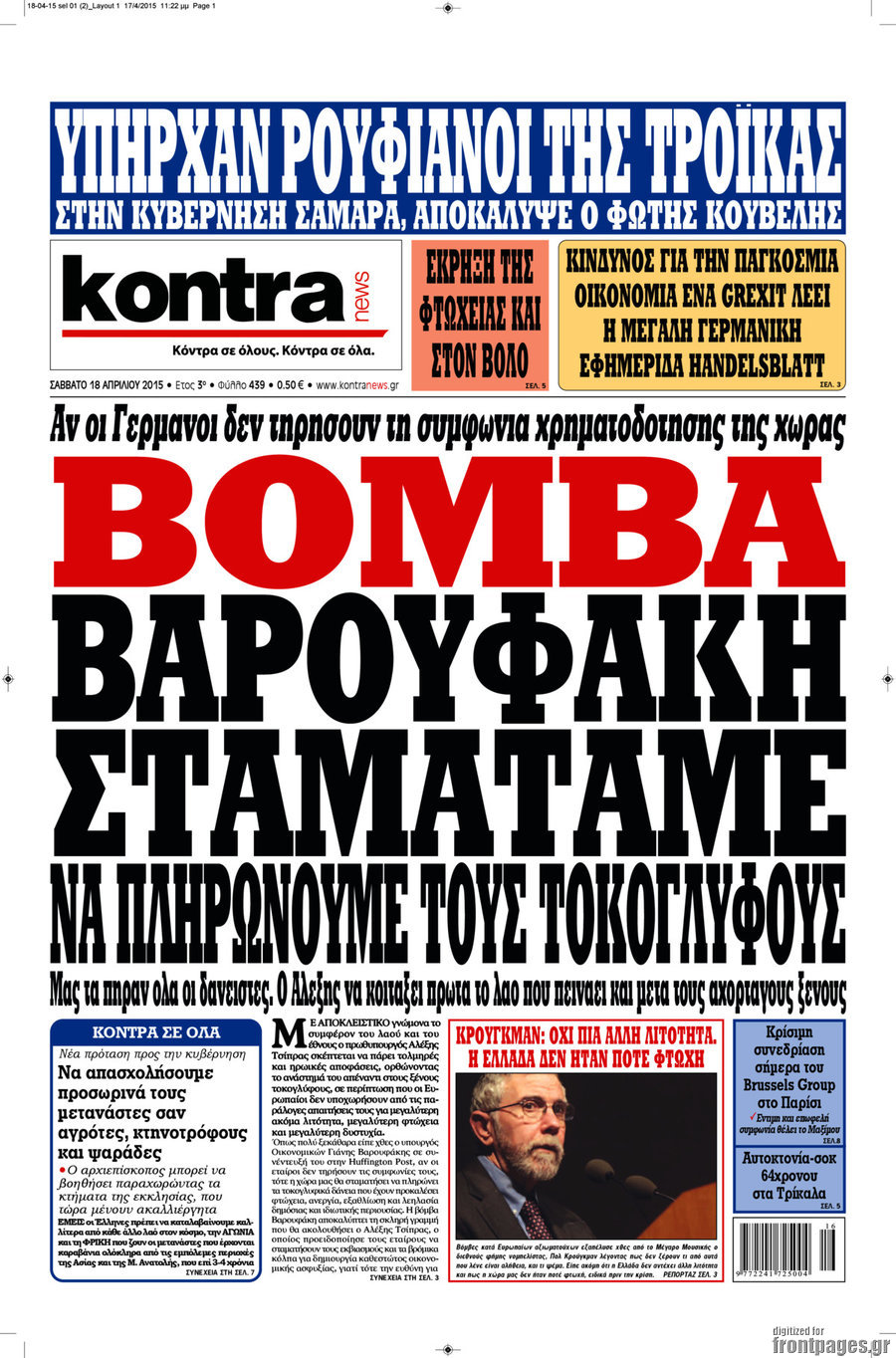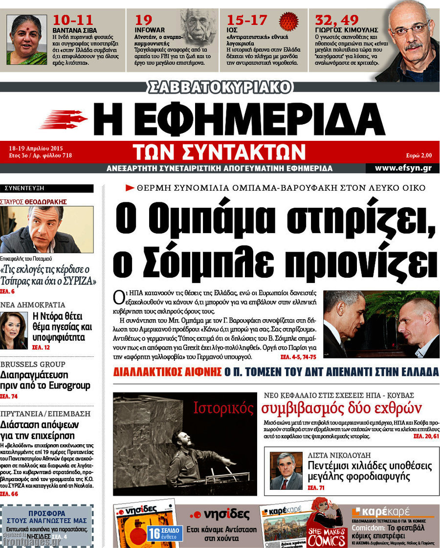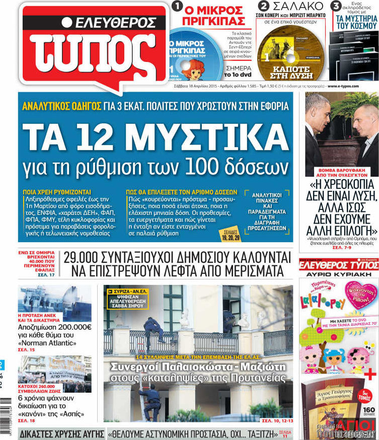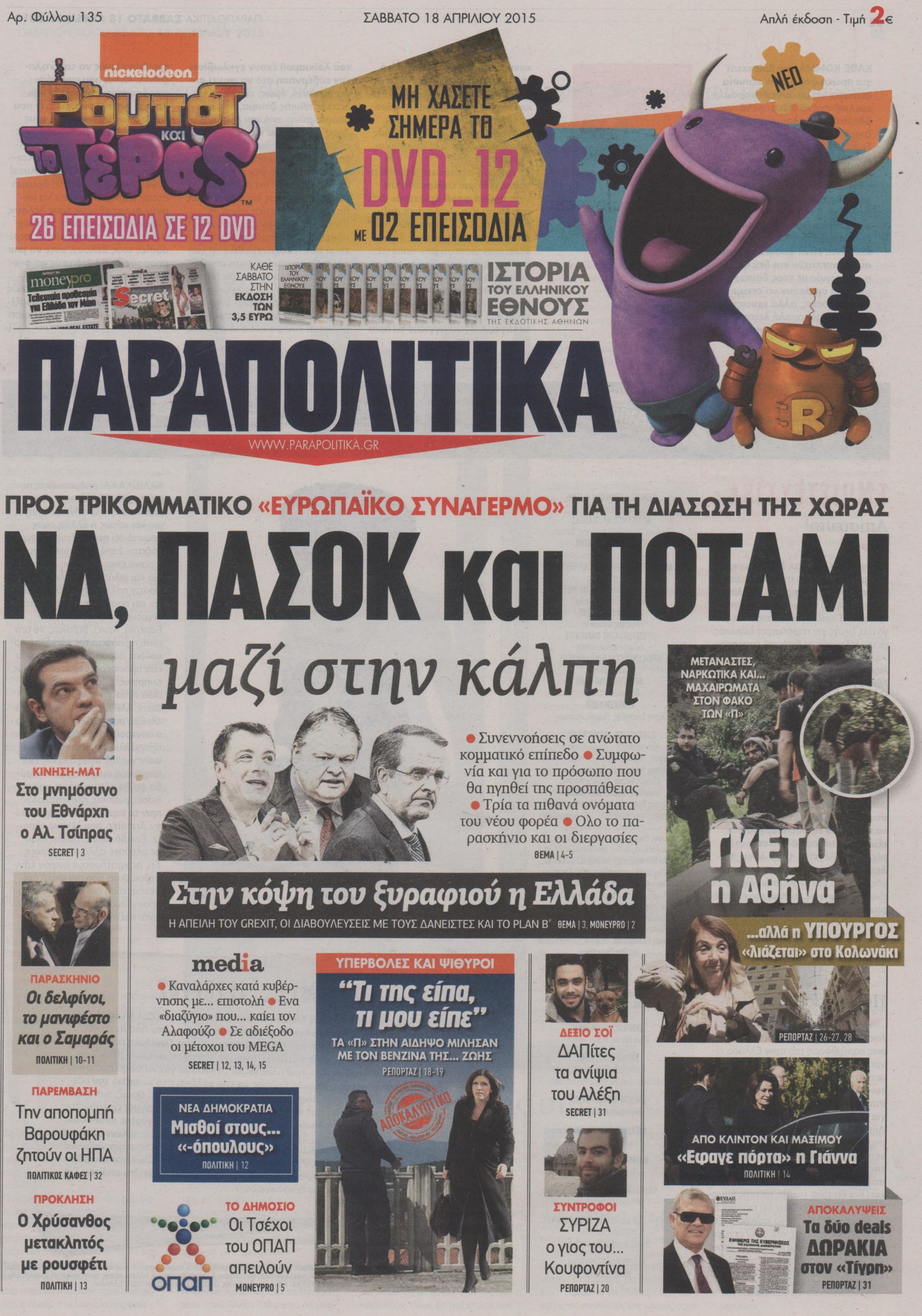 Οι πολιτικές εφημερίδες Enikos Newsroom 08:12, Σάββατο 18 Απριλίου 2015 Media Διαβάστε τα σημερινά πρωτοσέλιδα των πολιτικών εφημερίδων: ΕΦΗΜΕΡΙΔΕΣ ΠΟΛΙΤΙΚΕΣ ΕΦΗΜΕΡΙΔΕΣ ΠΡΩΤΟΣΕΛΙΔΑ Μοιράσου το: σχολίασε κι εσύ (0 σχόλια) Ακολουθήστε το enikos.gr στο Google News και μάθετε πρώτοι όλες τις ειδήσεις Δείτε όλες τις τελευταίες ειδήσεις από την Ελλάδα και τον Κόσμο στο enikos.gr Ειδήσεις Ροή Ειδήσεων 1 ώρα πριν Μεσόγειος: Η διαδρομή του ρωσικού τάνκερ «Qendil» και η στοχευμένη επίθεση της Ουκρανίας με drone – Ο Πούτιν προειδοποίησε για αντίποινα 56 λεπτά πριν Αττική: Θρίλερ με νεκρό βρέφος 5 μηνών – Κοιμόταν στο ίδιο κρεβάτι με τους γονείς του 2 ώρες πριν Από το Ορμένιο ως τα Μάλγαρα κι από τη Σιάτιστα μέχρι τη Νίκαια: Μπλόκα σε όλη την Ελλάδα – Το Σάββατο ανοίγουν τα διόδια οι αγρότες 2 ώρες πριν «Έλληνας Εσκομπάρ»: Φωτογραφίες με τους 4 τόνους κοκαΐνης που κατασχέθηκαν από το σκάφος «Ουρανία» 3 ώρες πριν Πούτιν: Σαρκαστικά μηνύματα, παράπονα και απρόοπτα στη συνέντευξη Τύπου – Η πρόταση γάμου on air και οι ερωτήσεις για τα αγγούρια και τους… εξωγήινους 3 ώρες πριν Τα 5 ζώδια που ευνοούνται στην ερωτική ζωή τους την επόμενη εβδομάδα – «Η ενέργεια του Αιγόκερου φέρνει αγάπη και σταθερότητα» 7 ώρες πριν Ειδικός μοιράζεται 6 κόλπα για να διατηρείστε σε φόρμα με πάνω από 40 ώρες εργασίας την εβδομάδα: «Προπονηθείτε πριν από τη δουλειά, όχι μετά» 4 ώρες πριν Αυτό το έξυπνο μαθηματικό κόλπο θα μπορούσε να αλλάξει τον τρόπο με τον οποίο οι επιστήμονες μελετούν τους σεισμούς 2 ώρες πριν Κουίζ για την παλιά Αθήνα: Αναγνωρίζετε την περιοχή; Έχετε περάσει 100% από εκεί 2 λεπτά πριν Λάρισα: Ασθενοφόρο έπεσε πάνω σε κλούβα της ΕΛ.ΑΣ στον Πλατύκαμπο – Τραυματίστηκε ο συνοδηγός – ΒΙΝΤΕΟ 8 λεπτά πριν Τέμπη: Διεκόπη για τις 9 Ιανουαρίου η δίκη για τα χαμένα βίντεο της εμπορικής αμαξοστοιχίας – «Απαιτούμε να μας σέβονται» 13 λεπτά πριν Hellenic Train: Αλλαγές και καταργήσεις δρομολογίων λεωφορείων λόγω των αγροτικών κινητοποιήσεων 20 λεπτά πριν Ζελένσκι: «Δεν χρειάζεται αναθεώρηση του Συντάγματος» για να εγκαταλείψει η Ουκρανία τον στόχο ένταξης στο ΝΑΤΟ 24 λεπτά πριν Παναγιώτα Βλαντή: Η τρυφερή εξομολόγηση για τον σύζυγό της – «Πραγματικά ήταν για μένα αυτό που ήθελα σε όλη μου τη ζωή» ENIKOS NETWORK «Η σούπερ» γρίπη εξαπλώνεται στην Ευρώπη-Στοιχεία από το ECDC για την αποτελεσματικότητα του εμβολίου ΕΛΣΤΑΤ: Αύξηση κατά 1,7% των επαγγελματιών υγείας το 2024 Η απάντηση της κυβέρνησης στα αιτήματα των αγροτών: 16 έχουν ικανοποιηθεί, 4 βρίσκονται υπό επεξεργασία και 7 δεν είναι εφι... Μισθολογική διαφάνεια: Το 68% των εργαζομένων αγνοεί τη νέα οδηγία – Αναλυτικά τα στοιχεία έρευνας Χαρτογραφώντας το «σημείο χωρίς επιστροφή»: Για πρώτη φορά αποκαλύπτεται με λεπτομέρεια το ακανθώδες όριο της ατμόσφαιρας τ... Η Google καταργεί τη λειτουργία «dark web report» – Πώς θα μπορούν οι χρήστες να διαγράφουν τα δεδομένα τους περισσότερα 18:11 , Παρασκευή 19 Δεκεμβρίου 2025 Το σόι σου: Ο Άρης έρχεται στην Ελλάδα για τις γιορτές των Χριστουγέννων – Τι θα δούμε στο αποψινό εορταστικό επεισόδιο Ένα απολαυστικό, εορταστικό επεισόδιο της σειράς “Το σόι σου”, γεμάτο ευτράπελα αλ... 15:15 , Παρασκευή 19 Δεκεμβρίου 2025 Την Κυριακή με τη Realnews: Ό,τι και αν αγοράσεις, σκανάρεις και κερδίζεις! Την Κυριακή με τη Realnews: Ό,τι και αν αγοράσεις, σκανάρεις και κερδίζεις! Με το PADU app, το... 08:00 , Παρασκευή 19 Δεκεμβρίου 2025 Την Κυριακή με τη Realnews: Δωροεπιταγή 10€ Δωροεπιταγή αξίας 10€ γι