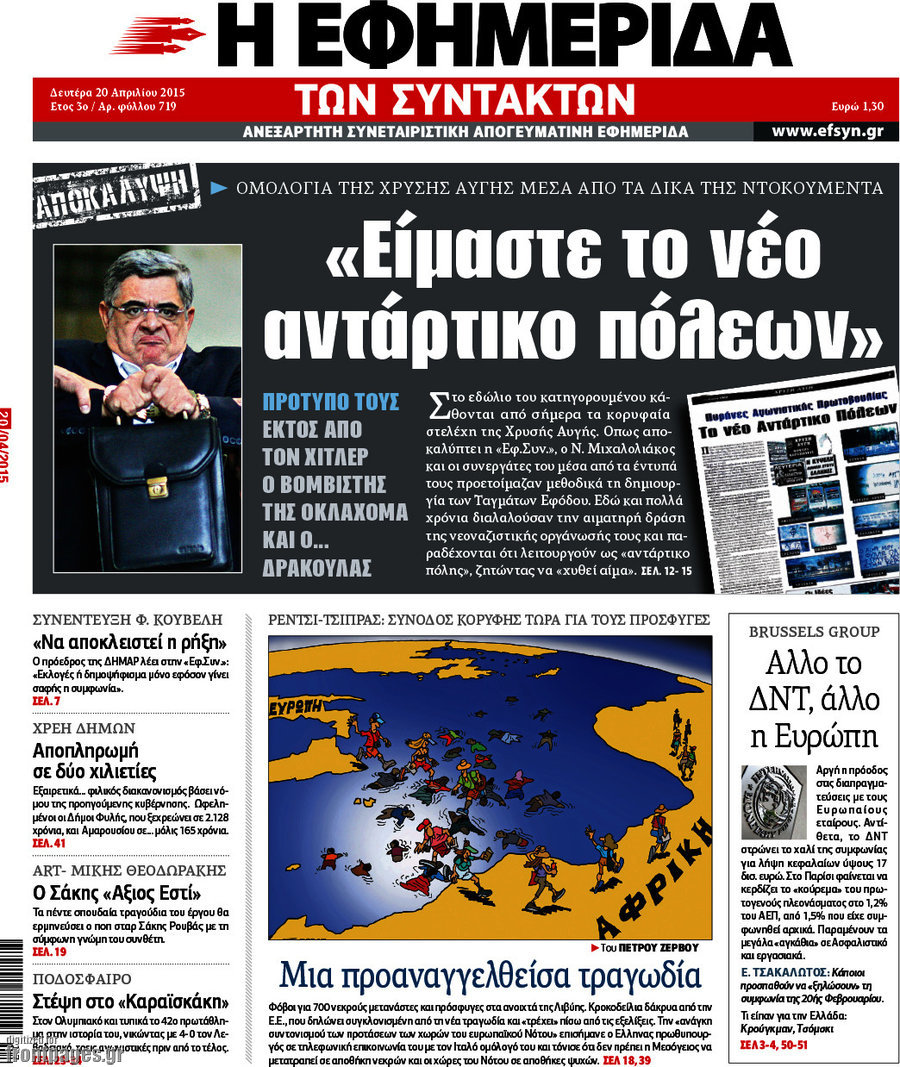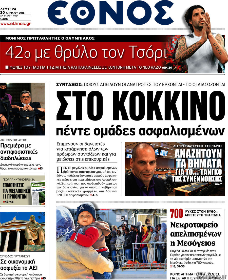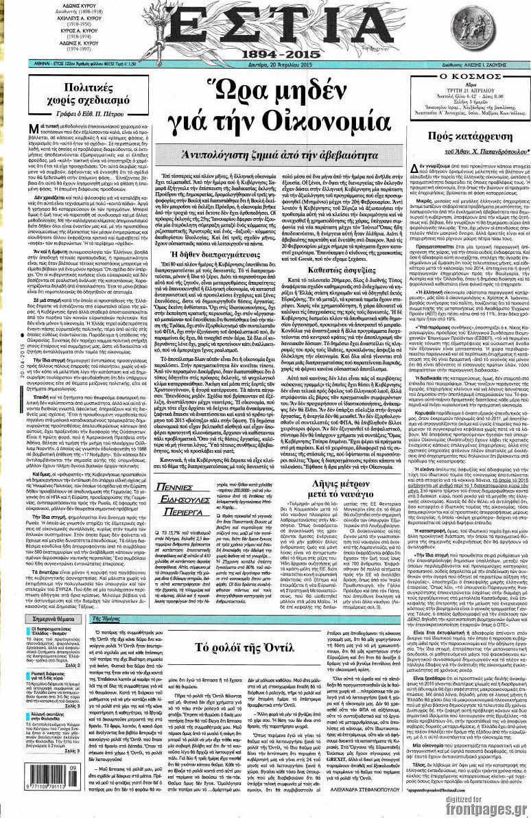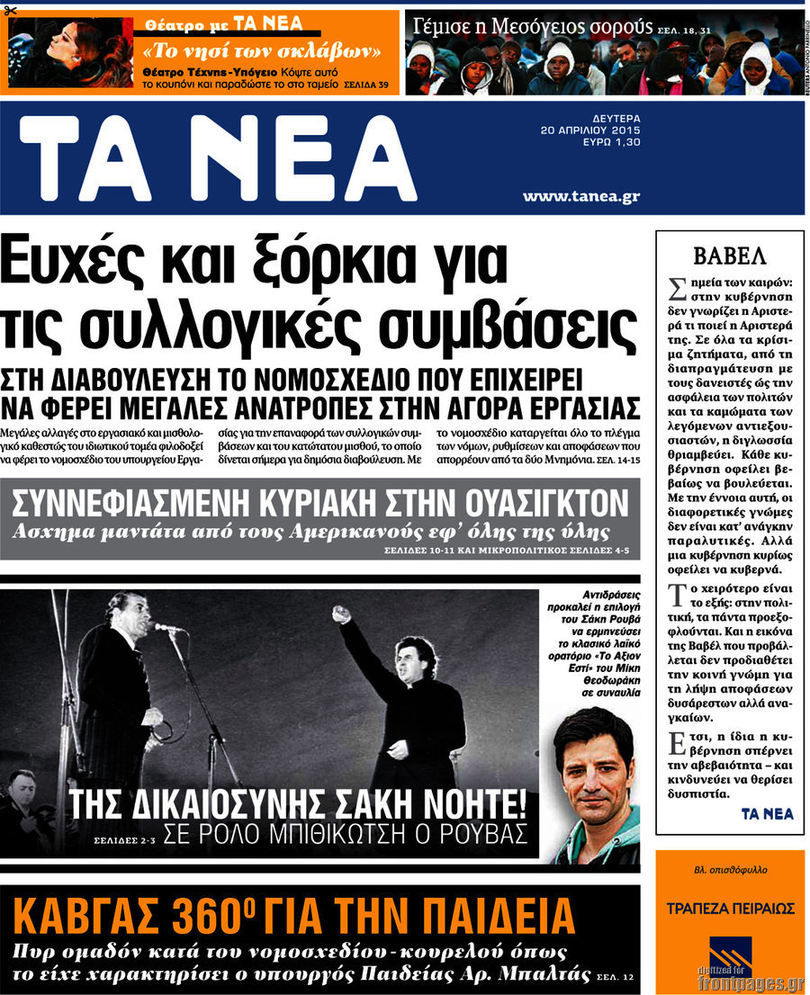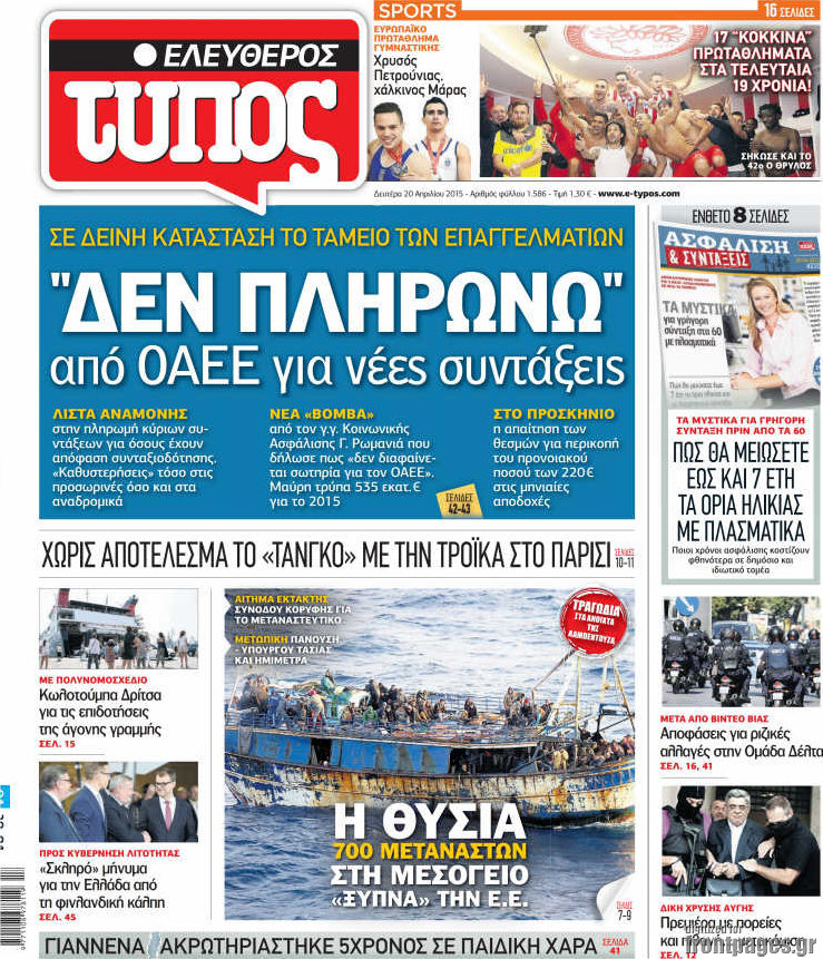 Οι πολιτικές εφημερίδες Enikos Newsroom 09:08, Δευτέρα 20 Απριλίου 2015 Media Διαβάστε τα πρωτοσέλιδα των πολιτικών εφημερίδων. ΕΦΗΜΕΡΙΔΕΣ ΠΟΛΙΤΙΚΕΣ ΕΦΗΜΕΡΙΔΕΣ Μοιράσου το: σχολίασε κι εσύ (0 σχόλια) Ακολουθήστε το enikos.gr στο Google News και μάθετε πρώτοι όλες τις ειδήσεις Δείτε όλες τις τελευταίες ειδήσεις από την Ελλάδα και τον Κόσμο στο enikos.gr Ειδήσεις Ροή Ειδήσεων 3 ώρες πριν Χριστούγεννα στα μπλόκα: Επιμένουν στις κινητοποιήσεις τους οι αγρότες – Ανοίγουν τα διόδια το Σαββατοκύριακο 3 ώρες πριν Ουκρανία: Η άνευ προηγουμένου επίθεση σε ρωσικό τάνκερ στη Μεσόγειο και το μήνυμα προς στον Πούτιν – Το «μακρύ χέρι» του Κιέβου 3 ώρες πριν Πούτιν: Τα μηνύματα σε Ευρώπη και ΝΑΤΟ από το μαραθώνιο «σόου» του – Η απαίτηση για «σεβασμό» και η ειρήνη «με τους όρους» της Μόσχας 4 ώρες πριν Τραμπ: Δεν αποκλείει την πιθανότητα ενός πολέμου στη Βενεζουέλα – «Ο Μαδούρο ξέρει καλύτερα από τον καθένα τι ακριβώς θέλω» 4 ώρες πριν Συνεχίζει να προκαλεί ο Μίτσκοσκι: «Για μένα το όνομα Μακεδονία είναι ιερό» 3 ώρες πριν Ανακαλύφθηκαν αρχαία χρυσά νομίσματα 2.200 ετών που απεικονίζουν τον θεό Απόλλωνα – Η άγνωστη σύνδεση με τον Φίλιππο Β΄ της Μακεδονίας 4 ώρες πριν Ύπνος: Μια κρυφή κατάσταση του εγκεφάλου πριν από τον ύπνο μπορεί να είναι το “κλειδί” για υψηλή ευφυΐα και δημιουργικότητα 5 ώρες πριν Αριθμολογία: Οι άνθρωποι που έχουν γεννηθεί αυτές τις 4 ημερομηνίες, συχνά παρεξηγούνται – «Η καλοσύνη τους κρύβει τεράστια δύναμη» 6 ώρες πριν Ξεχάστε το καθάρισμα το Σαββατοκύριακο: Ο «κανόνας των 20 λεπτών» που θα σας λύσει τα χέρια 17 λεπτά πριν Euroleague: Επέστρεψε στις νίκες ο Ολυμπιακός, πήρε την ματσάρα της χρονιάς η Μπάρτσα – Τα αποτελέσματα και η βαθμολογία 32 λεπτά πριν Συρία: Μαζικά πλήγματα των ΗΠΑ σε θέσεις του Ισλαμικού Κράτους – Χέγκσεθ: «Δεν είναι αρχή πολέμου, είναι μια δήλωση εκδίκησης» για το θάνατο των στρατιωτών μας 45 λεπτά πριν Ουκρανία: Ολοκληρώθηκαν οι συνομιλίες με τους Αμερικανούς κι Ευρωπαίους διαπραγματευτές 1 ώρα πριν Μπαρτσελόνα – Μπασκόνια 134-124: Οι «μπλαουγκράνα» πήραν το ματς της χρονιάς ύστερα από τρεις παρατάσεις 1 ώρα πριν Φαίη Σκορδά: «Παλιότερα τα κομπλιμέντα τα προσπερνούσα, τώρα τα έχω ανάγκη» ENIKOS NETWORK Το ΕΚΑΒ τιμήθηκε από την Ακαδημία Αθηνών για τα 40 χρόνια προσφοράς του Έχετε πραγματικά μεγάλη καρδιά; 10 χαρακτηριστικά όσων έχουν καλοσύνη Αναστολή μέτρων αναγκαστικής εκτέλεσης για κτηνοτρόφους που πλήττονται από την ευλογιά των αιγοπροβάτων Πλήρης επάρκεια προϊόντων στις λαϊκές της Αττικής, παρά τις αγροτικές κινητοποιήσεις – Τι απαντούν οι πωλητές Χαρτογραφώντας το «σημείο χωρίς επιστροφή»: Για πρώτη φορά αποκαλύπτεται με λεπτομέρεια το ακανθώδες όριο της ατμόσφαιρας τ... Η Google καταργεί τη λειτουργία «dark web report» – Πώς θα μπορούν οι χρήστες να διαγράφουν τα δεδομένα τους περισσότερα 22:42 , Παρασκευή 19 Δεκεμβρίου 2025 Γιώργος Γιαννόπουλος για “Το σόι σου”: “Είναι ευτυχία και ευλογία αυτή η σειρά” «Είναι ευτυχία και ευλογία η συγκυρία αυτής της σειράς», θα πει ο Γιώργος Γιαννόπουλος -ο αγαπ... 20:37 , Παρασκευή 19 Δεκεμβρίου 2025 Don’t Forget The Lyrics: Η Έλλη Κοκκίνου υποδέχεται 4 παίκτες που θα κάνουν τα πάντα για να μη χάσουν ούτε… μισή λέξη από τους στίχους Το «Don’t Forget The Lyrics» επιστρέφει απόψε, Παρασκευή 19 Δεκεμβρίου, στις 21:00 με νέο επει... 19:31 , Παρασκευή 19 Δεκεμβρίου 2025 GNTM: Απόψε ο μεγάλος τελικός για τους 4 φιναλίστ Έπειτα από μήνες γεμάτους μόδα, δημιουργία και έν