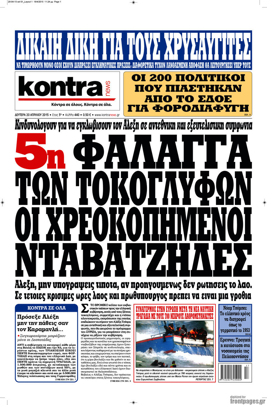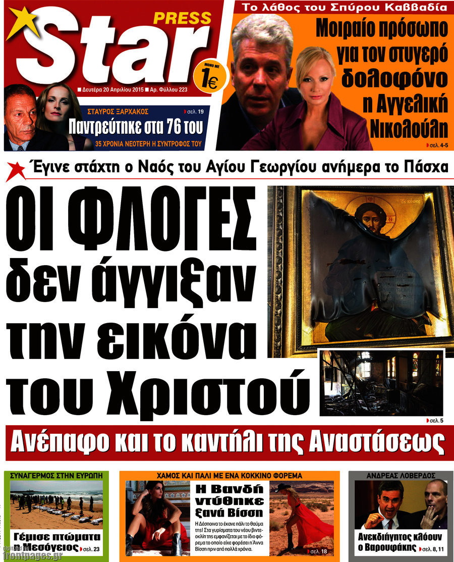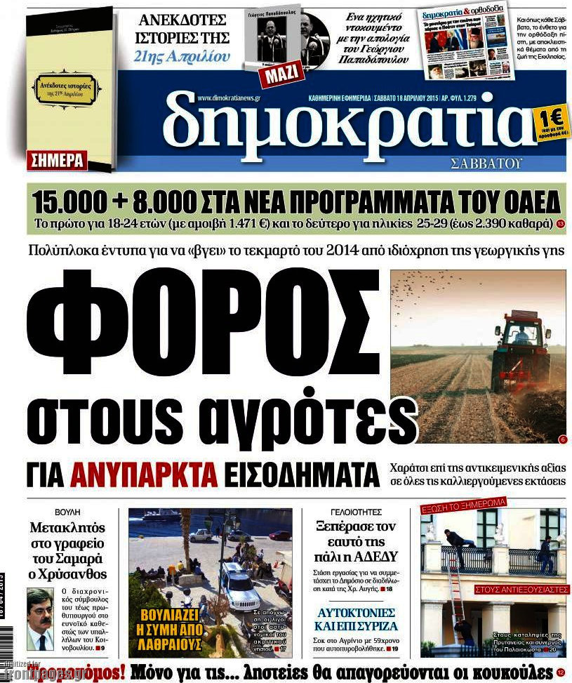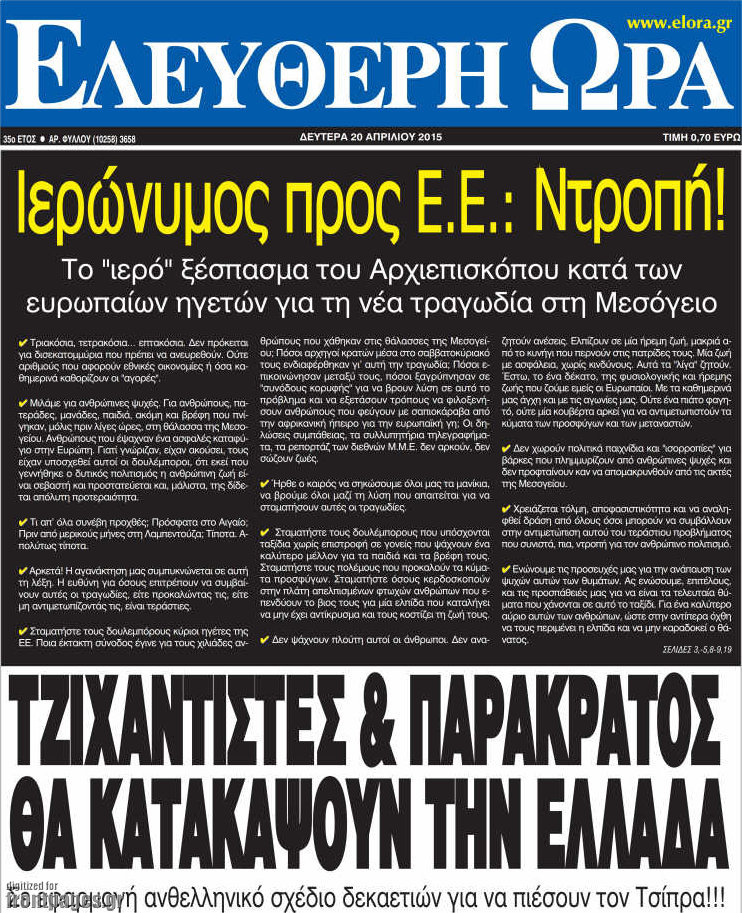 Οι πολιτικές εφημερίδες Enikos Newsroom 09:08, Δευτέρα 20 Απριλίου 2015 Media Διαβάστε τα πρωτοσέλιδα των πολιτικών εφημερίδων. ΕΦΗΜΕΡΙΔΕΣ ΠΟΛΙΤΙΚΕΣ ΕΦΗΜΕΡΙΔΕΣ Μοιράσου το: σχολίασε κι εσύ (0 σχόλια) Ακολουθήστε το enikos.gr στο Google News και μάθετε πρώτοι όλες τις ειδήσεις Δείτε όλες τις τελευταίες ειδήσεις από την Ελλάδα και τον Κόσμο στο enikos.gr Ειδήσεις Ροή Ειδήσεων 3 ώρες πριν Χριστούγεννα στα μπλόκα: Επιμένουν στις κινητοποιήσεις τους οι αγρότες – Ανοίγουν τα διόδια το Σαββατοκύριακο 3 ώρες πριν Ουκρανία: Η άνευ προηγουμένου επίθεση σε ρωσικό τάνκερ στη Μεσόγειο και το μήνυμα προς στον Πούτιν – Το «μακρύ χέρι» του Κιέβου 3 ώρες πριν Πούτιν: Τα μηνύματα σε Ευρώπη και ΝΑΤΟ από το μαραθώνιο «σόου» του – Η απαίτηση για «σεβασμό» και η ειρήνη «με τους όρους» της Μόσχας 4 ώρες πριν Τραμπ: Δεν αποκλείει την πιθανότητα ενός πολέμου στη Βενεζουέλα – «Ο Μαδούρο ξέρει καλύτερα από τον καθένα τι ακριβώς θέλω» 4 ώρες πριν Συνεχίζει να προκαλεί ο Μίτσκοσκι: «Για μένα το όνομα Μακεδονία είναι ιερό» 3 ώρες πριν Ανακαλύφθηκαν αρχαία χρυσά νομίσματα 2.200 ετών που απεικονίζουν τον θεό Απόλλωνα – Η άγνωστη σύνδεση με τον Φίλιππο Β΄ της Μακεδονίας 4 ώρες πριν Ύπνος: Μια κρυφή κατάσταση του εγκεφάλου πριν από τον ύπνο μπορεί να είναι το “κλειδί” για υψηλή ευφυΐα και δημιουργικότητα 5 ώρες πριν Αριθμολογία: Οι άνθρωποι που έχουν γεννηθεί αυτές τις 4 ημερομηνίες, συχνά παρεξηγούνται – «Η καλοσύνη τους κρύβει τεράστια δύναμη» 6 ώρες πριν Ξεχάστε το καθάρισμα το Σαββατοκύριακο: Ο «κανόνας των 20 λεπτών» που θα σας λύσει τα χέρια 17 λεπτά πριν Euroleague: Επέστρεψε στις νίκες ο Ολυμπιακός, πήρε την ματσάρα της χρονιάς η Μπάρτσα – Τα αποτελέσματα και η βαθμολογία 32 λεπτά πριν Συρία: Μαζικά πλήγματα των ΗΠΑ σε θέσεις του Ισλαμικού Κράτους – Χέγκσεθ: «Δεν είναι αρχή πολέμου, είναι μια δήλωση εκδίκησης» για το θάνατο των στρατιωτών μας 45 λεπτά πριν Ουκρανία: Ολοκληρώθηκαν οι συνομιλίες με τους Αμερικανούς κι Ευρωπαίους διαπραγματευτές 1 ώρα πριν Μπαρτσελόνα – Μπασκόνια 134-124: Οι «μπλαουγκράνα» πήραν το ματς της χρονιάς ύστερα από τρεις παρατάσεις 1 ώρα πριν Φαίη Σκορδά: «Παλιότερα τα κομπλιμέντα τα προσπερνούσα, τώρα τα έχω ανάγκη» ENIKOS NETWORK Το ΕΚΑΒ τιμήθηκε από την Ακαδημία Αθηνών για τα 40 χρόνια προσφοράς του Έχετε πραγματικά μεγάλη καρδιά; 10 χαρακτηριστικά όσων έχουν καλοσύνη Αναστολή μέτρων αναγκαστικής εκτέλεσης για κτηνοτρόφους που πλήττονται από την ευλογιά των αιγοπροβάτων Πλήρης επάρκεια προϊόντων στις λαϊκές της Αττικής, παρά τις αγροτικές κινητοποιήσεις – Τι απαντούν οι πωλητές Χαρτογραφώντας το «σημείο χωρίς επιστροφή»: Για πρώτη φορά αποκαλύπτεται με λεπτομέρεια το ακανθώδες όριο της ατμόσφαιρας τ... Η Google καταργεί τη λειτουργία «dark web report» – Πώς θα μπορούν οι χρήστες να διαγράφουν τα δεδομένα τους περισσότερα 22:42 , Παρασκευή 19 Δεκεμβρίου 2025 Γιώργος Γιαννόπουλος για “Το σόι σου”: “Είναι ευτυχία και ευλογία αυτή η σειρά” «Είναι ευτυχία και ευλογία η συγκυρία αυτής της σειράς», θα πει ο Γιώργος Γιαννόπουλος -ο αγαπ... 20:37 , Παρασκευή 19 Δεκεμβρίου 2025 Don’t Forget The Lyrics: Η Έλλη Κοκκίνου υποδέχεται 4 παίκτες που θα κάνουν τα πάντα για να μη χάσουν ούτε… μισή λέξη από τους στίχους Το «Don’t Forget The Lyrics» επιστρέφει απόψε, Παρασκευή 19 Δεκεμβρίου, στις 21:00 με νέο επει... 19:31 , Παρασκευή 19 Δεκεμβρίου 2025 GNTM: Απόψε ο μεγάλος τελικός για τους 4 φιναλίστ Έπειτα από μήνες γεμάτους μόδα, δημιουργία και έν