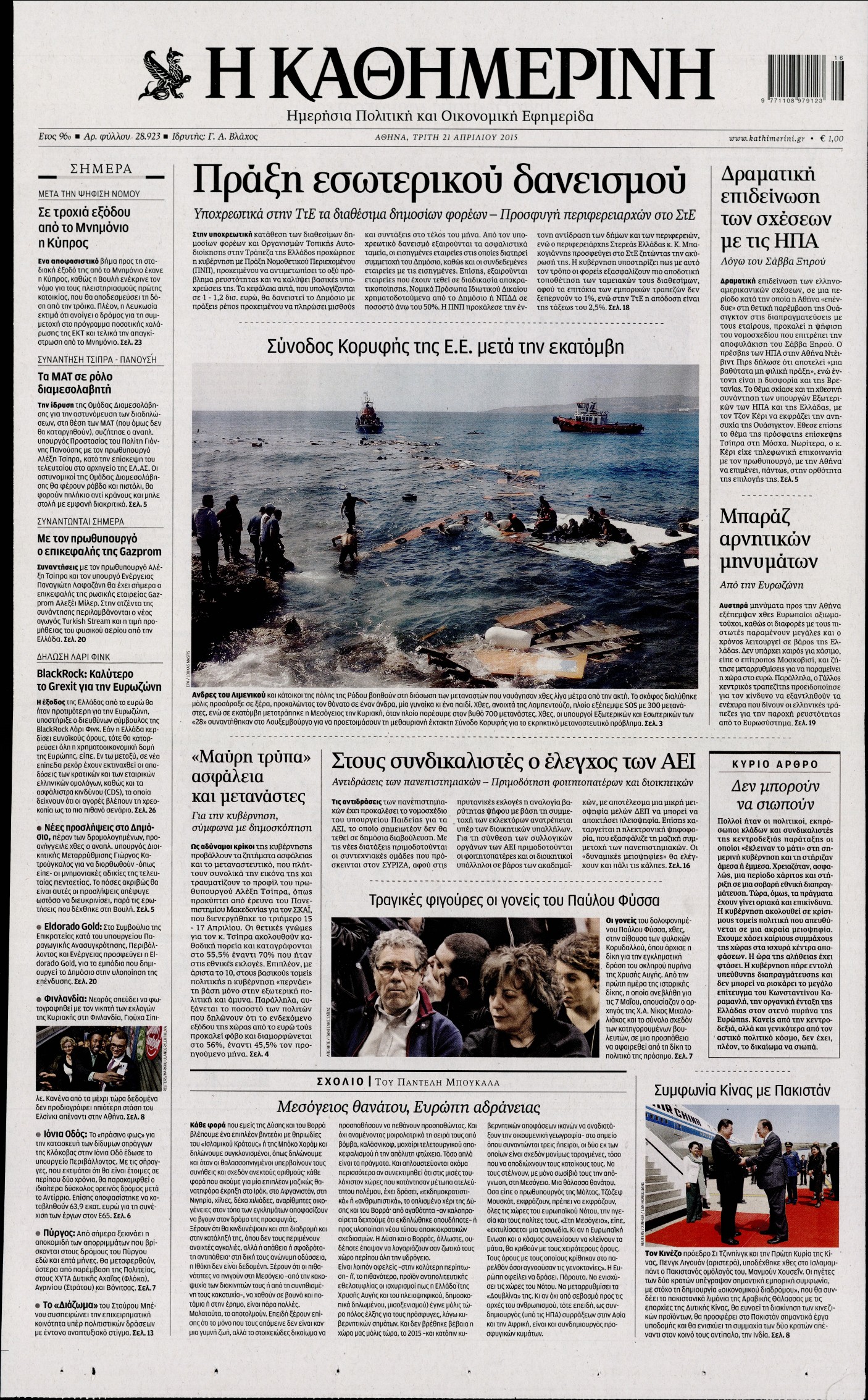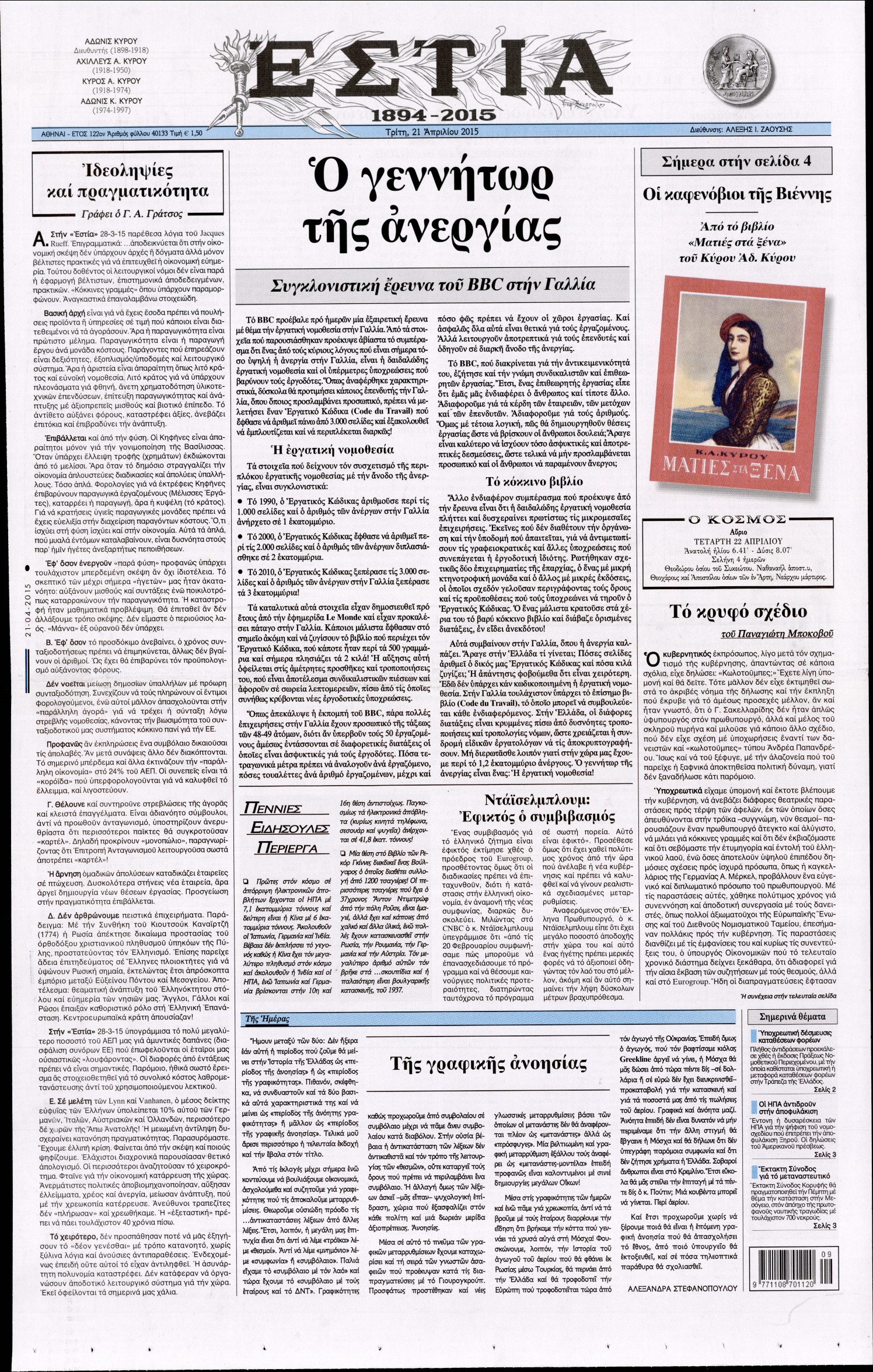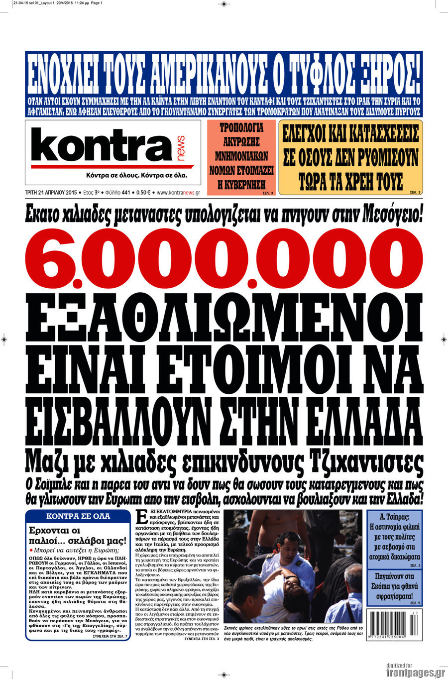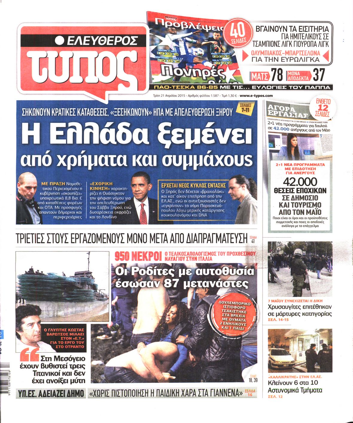 Οι πολιτικές εφημερίδες Enikos Newsroom 07:36, Τρίτη 21 Απριλίου 2015 Media Διαβάστε τα σημερινά πρωτοσέλιδα των πολιτικών εφημερίδων: ΕΦΗΜΕΡΙΔΕΣ ΠΟΛΙΤΙΚΕΣ ΕΦΗΜΕΡΙΔΕΣ ΠΡΩΤΟΣΕΛΙΔΑ Μοιράσου το: σχολίασε κι εσύ (0 σχόλια) Ακολουθήστε το enikos.gr στο Google News και μάθετε πρώτοι όλες τις ειδήσεις Δείτε όλες τις τελευταίες ειδήσεις από την Ελλάδα και τον Κόσμο στο enikos.gr Ειδήσεις Ροή Ειδήσεων 4 ώρες πριν Χριστούγεννα στα μπλόκα: Επιμένουν στις κινητοποιήσεις τους οι αγρότες – Ανοίγουν τα διόδια το Σαββατοκύριακο 5 ώρες πριν Ουκρανία: Η άνευ προηγουμένου επίθεση σε ρωσικό τάνκερ στη Μεσόγειο και το μήνυμα προς στον Πούτιν – Το «μακρύ χέρι» του Κιέβου 4 ώρες πριν Πούτιν: Τα μηνύματα σε Ευρώπη και ΝΑΤΟ από το μαραθώνιο «σόου» του – Η απαίτηση για «σεβασμό» και η ειρήνη «με τους όρους» της Μόσχας 5 ώρες πριν Τραμπ: Δεν αποκλείει την πιθανότητα ενός πολέμου στη Βενεζουέλα – «Ο Μαδούρο ξέρει καλύτερα από τον καθένα τι ακριβώς θέλω» 5 ώρες πριν Συνεχίζει να προκαλεί ο Μίτσκοσκι: «Για μένα το όνομα Μακεδονία είναι ιερό» 4 ώρες πριν Ανακαλύφθηκαν αρχαία χρυσά νομίσματα 2.200 ετών που απεικονίζουν τον θεό Απόλλωνα – Η άγνωστη σύνδεση με τον Φίλιππο Β΄ της Μακεδονίας 5 ώρες πριν Ύπνος: Μια κρυφή κατάσταση του εγκεφάλου πριν από τον ύπνο μπορεί να είναι το “κλειδί” για υψηλή ευφυΐα και δημιουργικότητα 6 ώρες πριν Αριθμολογία: Οι άνθρωποι που έχουν γεννηθεί αυτές τις 4 ημερομηνίες, συχνά παρεξηγούνται – «Η καλοσύνη τους κρύβει τεράστια δύναμη» 7 ώρες πριν Ξεχάστε το καθάρισμα το Σαββατοκύριακο: Ο «κανόνας των 20 λεπτών» που θα σας λύσει τα χέρια 13 λεπτά πριν Θεσσαλονίκη: Εξαφανίστηκε 13χρονος από χώρο φιλοξενίας ασυνόδευτων ανηλίκων στο Ωραιόκαστρο 23 λεπτά πριν Ντόναλντ Τραμπ: «Πολύ βαριά αντίποινα» στη Συρία – «Πλήττουμε πολύ δυνατά οχυρά του Ισλαμικού Κράτους» 38 λεπτά πριν Εξάρχεια: Ένταση με μολότοφ, χημικά και κρότου λάμψης 53 λεπτά πριν ΗΠΑ: Τραγωδία στην Αλαμπάμα – Σκότωσε την δημοσιογράφο σύζυγό του και αυτοκτόνησε μπροστά στον 3χρονο γιο τους 1 ώρα πριν Πρόταση γάμου στο ΣΕΦ κατά την διάρκεια του αγώνα Ολυμπιακός-Βιλερμπάν – Δείτε βίντεο ENIKOS NETWORK Το ΕΚΑΒ τιμήθηκε από την Ακαδημία Αθηνών για τα 40 χρόνια προσφοράς του Έχετε πραγματικά μεγάλη καρδιά; 10 χαρακτηριστικά όσων έχουν καλοσύνη Αναστολή μέτρων αναγκαστικής εκτέλεσης για κτηνοτρόφους που πλήττονται από την ευλογιά των αιγοπροβάτων Πλήρης επάρκεια προϊόντων στις λαϊκές της Αττικής, παρά τις αγροτικές κινητοποιήσεις – Τι απαντούν οι πωλητές Χαρτογραφώντας το «σημείο χωρίς επιστροφή»: Για πρώτη φορά αποκαλύπτεται με λεπτομέρεια το ακανθώδες όριο της ατμόσφαιρας τ... Η Google καταργεί τη λειτουργία «dark web report» – Πώς θα μπορούν οι χρήστες να διαγράφουν τα δεδομένα τους περισσότερα 22:42 , Παρασκευή 19 Δεκεμβρίου 2025 Γιώργος Γιαννόπουλος για “Το σόι σου”: “Είναι ευτυχία και ευλογία αυτή η σειρά” «Είναι ευτυχία και ευλογία η συγκυρία αυτής της σειράς», θα πει ο Γιώργος Γιαννόπουλος -ο αγαπ... 20:37 , Παρασκευή 19 Δεκεμβρίου 2025 Don’t Forget The Lyrics: Η Έλλη Κοκκίνου υποδέχεται 4 παίκτες που θα κάνουν τα πάντα για να μη χάσουν ούτε… μισή λέξη από τους στίχους Το «Don’t Forget The Lyrics» επιστρέφει απόψε, Παρασκευή 19 Δεκεμβρίου, στις 21:00 με νέο επει... 19:31 , Παρασκευή 19 Δεκεμβρίου 2025 GNTM: Απόψε ο μεγάλος τελικός για τους 4 φιναλίστ Έπειτα από μήνες γεμάτους μόδα, δημιουργία και έντονες αναμετρήσεις, το GNTM 2025 κορυφώνεται,... 18:11 , Παρασκευή 19 Δεκεμβρίου 20