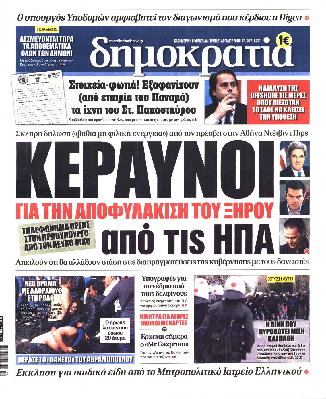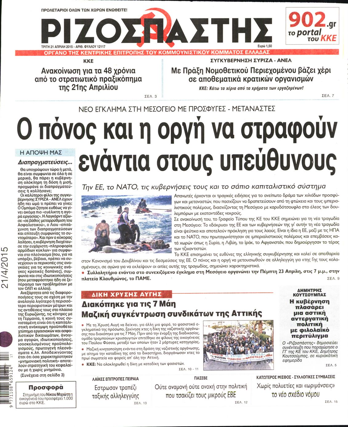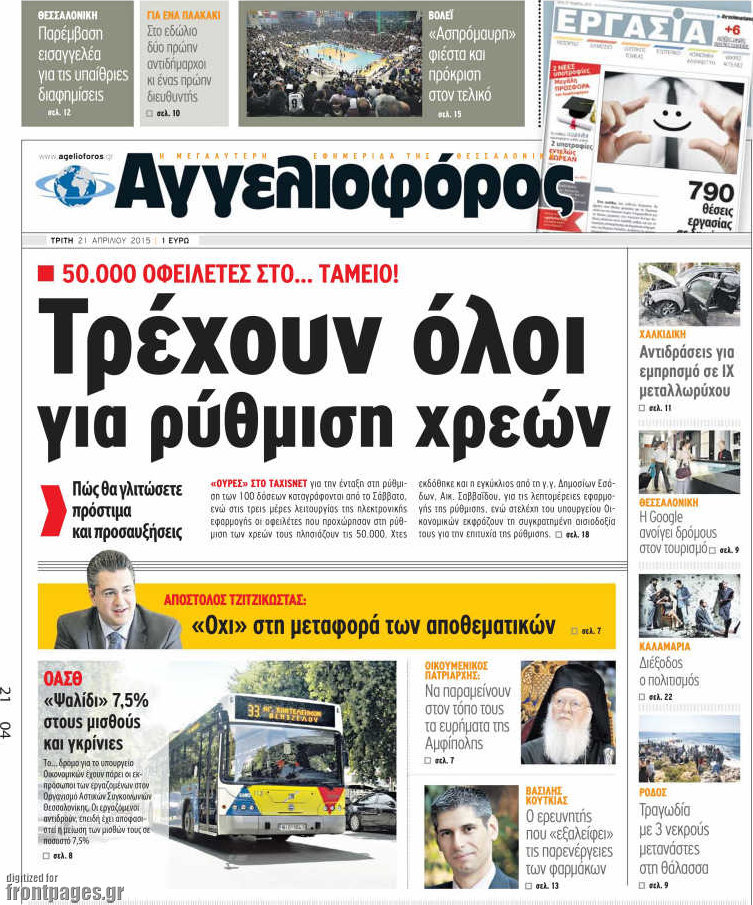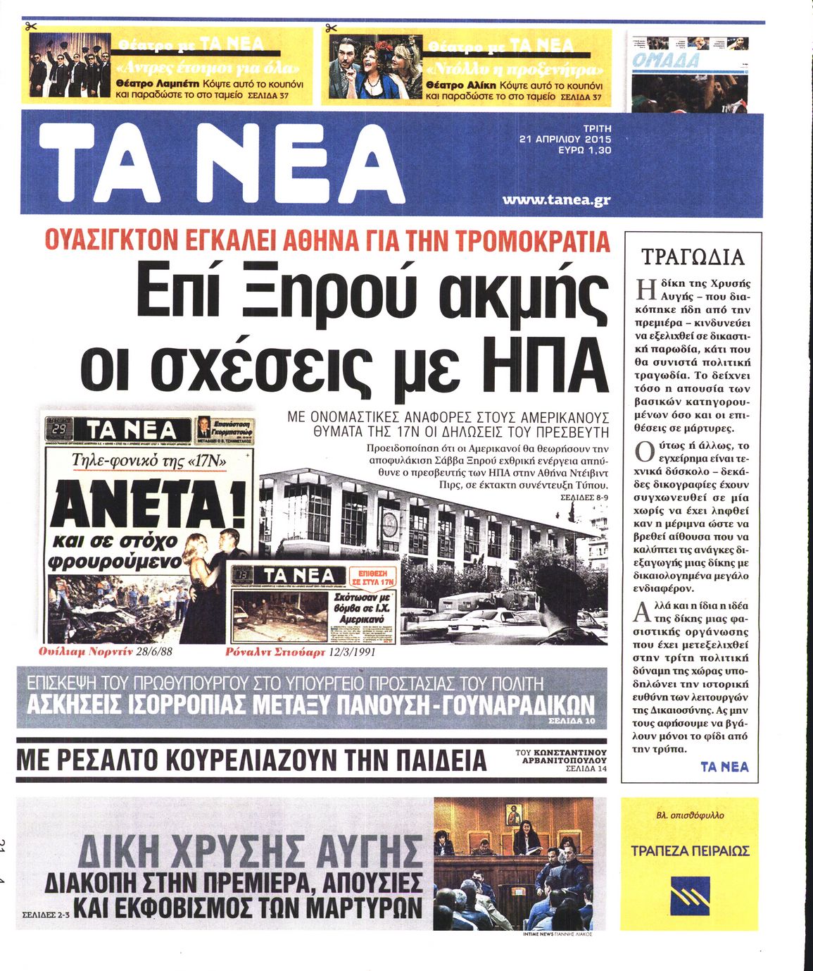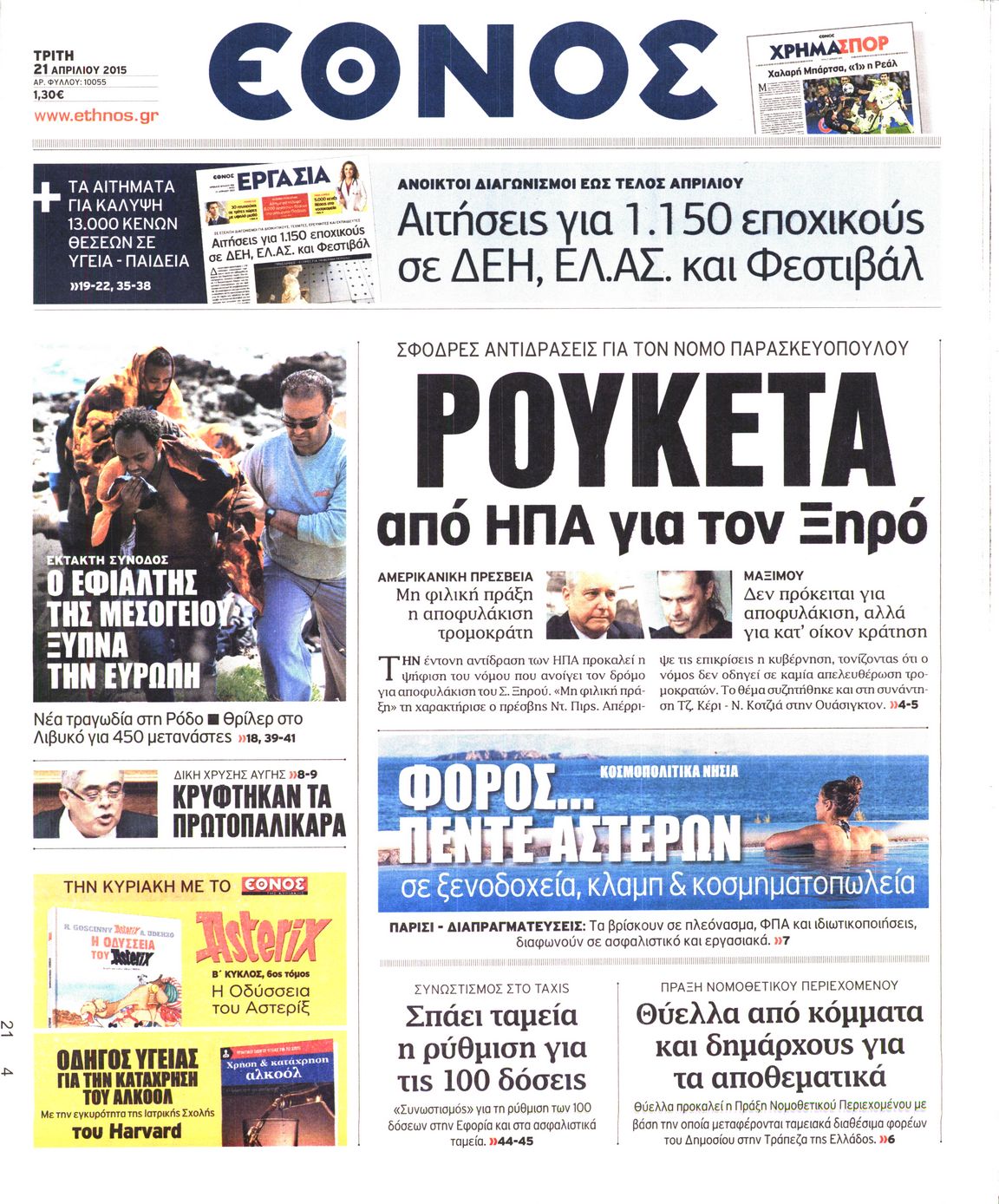 Οι πολιτικές εφημερίδες Enikos Newsroom 07:36, Τρίτη 21 Απριλίου 2015 Media Διαβάστε τα σημερινά πρωτοσέλιδα των πολιτικών εφημερίδων: ΕΦΗΜΕΡΙΔΕΣ ΠΟΛΙΤΙΚΕΣ ΕΦΗΜΕΡΙΔΕΣ ΠΡΩΤΟΣΕΛΙΔΑ Μοιράσου το: σχολίασε κι εσύ (0 σχόλια) Ακολουθήστε το enikos.gr στο Google News και μάθετε πρώτοι όλες τις ειδήσεις Δείτε όλες τις τελευταίες ειδήσεις από την Ελλάδα και τον Κόσμο στο enikos.gr Ειδήσεις Ροή Ειδήσεων 4 ώρες πριν Χριστούγεννα στα μπλόκα: Επιμένουν στις κινητοποιήσεις τους οι αγρότες – Ανοίγουν τα διόδια το Σαββατοκύριακο 5 ώρες πριν Ουκρανία: Η άνευ προηγουμένου επίθεση σε ρωσικό τάνκερ στη Μεσόγειο και το μήνυμα προς στον Πούτιν – Το «μακρύ χέρι» του Κιέβου 4 ώρες πριν Πούτιν: Τα μηνύματα σε Ευρώπη και ΝΑΤΟ από το μαραθώνιο «σόου» του – Η απαίτηση για «σεβασμό» και η ειρήνη «με τους όρους» της Μόσχας 5 ώρες πριν Τραμπ: Δεν αποκλείει την πιθανότητα ενός πολέμου στη Βενεζουέλα – «Ο Μαδούρο ξέρει καλύτερα από τον καθένα τι ακριβώς θέλω» 5 ώρες πριν Συνεχίζει να προκαλεί ο Μίτσκοσκι: «Για μένα το όνομα Μακεδονία είναι ιερό» 4 ώρες πριν Ανακαλύφθηκαν αρχαία χρυσά νομίσματα 2.200 ετών που απεικονίζουν τον θεό Απόλλωνα – Η άγνωστη σύνδεση με τον Φίλιππο Β΄ της Μακεδονίας 5 ώρες πριν Ύπνος: Μια κρυφή κατάσταση του εγκεφάλου πριν από τον ύπνο μπορεί να είναι το “κλειδί” για υψηλή ευφυΐα και δημιουργικότητα 6 ώρες πριν Αριθμολογία: Οι άνθρωποι που έχουν γεννηθεί αυτές τις 4 ημερομηνίες, συχνά παρεξηγούνται – «Η καλοσύνη τους κρύβει τεράστια δύναμη» 7 ώρες πριν Ξεχάστε το καθάρισμα το Σαββατοκύριακο: Ο «κανόνας των 20 λεπτών» που θα σας λύσει τα χέρια 13 λεπτά πριν Θεσσαλονίκη: Εξαφανίστηκε 13χρονος από χώρο φιλοξενίας ασυνόδευτων ανηλίκων στο Ωραιόκαστρο 23 λεπτά πριν Ντόναλντ Τραμπ: «Πολύ βαριά αντίποινα» στη Συρία – «Πλήττουμε πολύ δυνατά οχυρά του Ισλαμικού Κράτους» 38 λεπτά πριν Εξάρχεια: Ένταση με μολότοφ, χημικά και κρότου λάμψης 53 λεπτά πριν ΗΠΑ: Τραγωδία στην Αλαμπάμα – Σκότωσε την δημοσιογράφο σύζυγό του και αυτοκτόνησε μπροστά στον 3χρονο γιο τους 1 ώρα πριν Πρόταση γάμου στο ΣΕΦ κατά την διάρκεια του αγώνα Ολυμπιακός-Βιλερμπάν – Δείτε βίντεο ENIKOS NETWORK Το ΕΚΑΒ τιμήθηκε από την Ακαδημία Αθηνών για τα 40 χρόνια προσφοράς του Έχετε πραγματικά μεγάλη καρδιά; 10 χαρακτηριστικά όσων έχουν καλοσύνη Αναστολή μέτρων αναγκαστικής εκτέλεσης για κτηνοτρόφους που πλήττονται από την ευλογιά των αιγοπροβάτων Πλήρης επάρκεια προϊόντων στις λαϊκές της Αττικής, παρά τις αγροτικές κινητοποιήσεις – Τι απαντούν οι πωλητές Χαρτογραφώντας το «σημείο χωρίς επιστροφή»: Για πρώτη φορά αποκαλύπτεται με λεπτομέρεια το ακανθώδες όριο της ατμόσφαιρας τ... Η Google καταργεί τη λειτουργία «dark web report» – Πώς θα μπορούν οι χρήστες να διαγράφουν τα δεδομένα τους περισσότερα 22:42 , Παρασκευή 19 Δεκεμβρίου 2025 Γιώργος Γιαννόπουλος για “Το σόι σου”: “Είναι ευτυχία και ευλογία αυτή η σειρά” «Είναι ευτυχία και ευλογία η συγκυρία αυτής της σειράς», θα πει ο Γιώργος Γιαννόπουλος -ο αγαπ... 20:37 , Παρασκευή 19 Δεκεμβρίου 2025 Don’t Forget The Lyrics: Η Έλλη Κοκκίνου υποδέχεται 4 παίκτες που θα κάνουν τα πάντα για να μη χάσουν ούτε… μισή λέξη από τους στίχους Το «Don’t Forget The Lyrics» επιστρέφει απόψε, Παρασκευή 19 Δεκεμβρίου, στις 21:00 με νέο επει... 19:31 , Παρασκευή 19 Δεκεμβρίου 2025 GNTM: Απόψε ο μεγάλος τελικός για τους 4 φιναλίστ Έπειτα από μήνες γεμάτους μόδα, δημιουργία και έντονες αναμετρήσεις, το GNTM 2025 κορυφώνεται,... 18:11 , Παρασκευή 19 Δεκεμβρίου 20