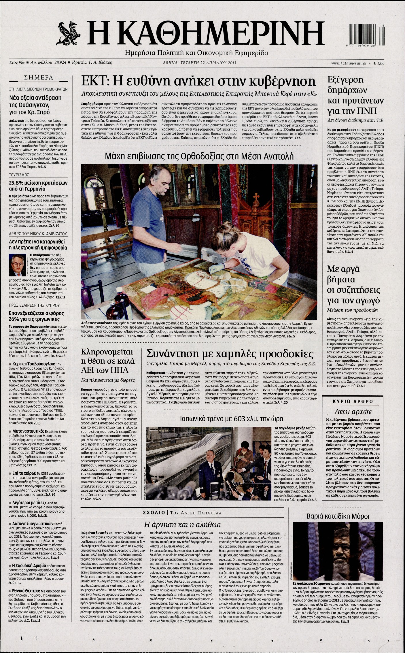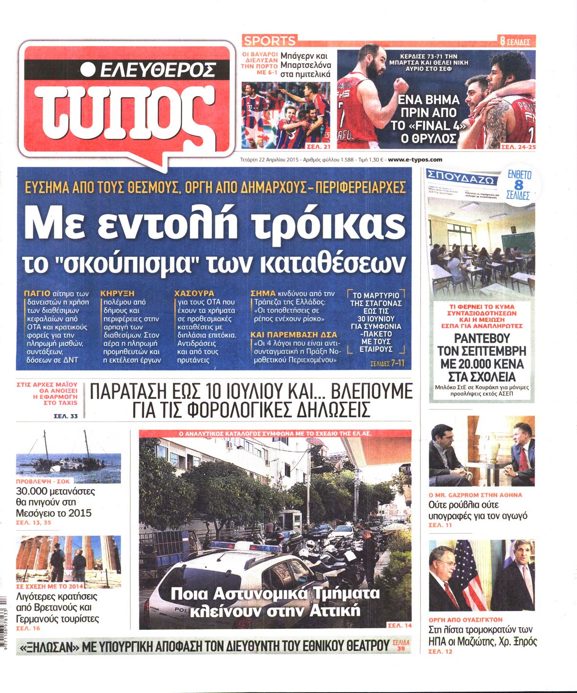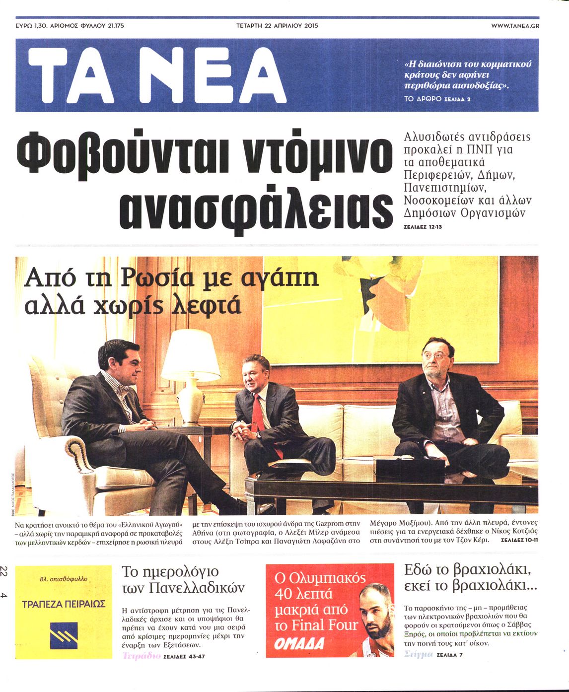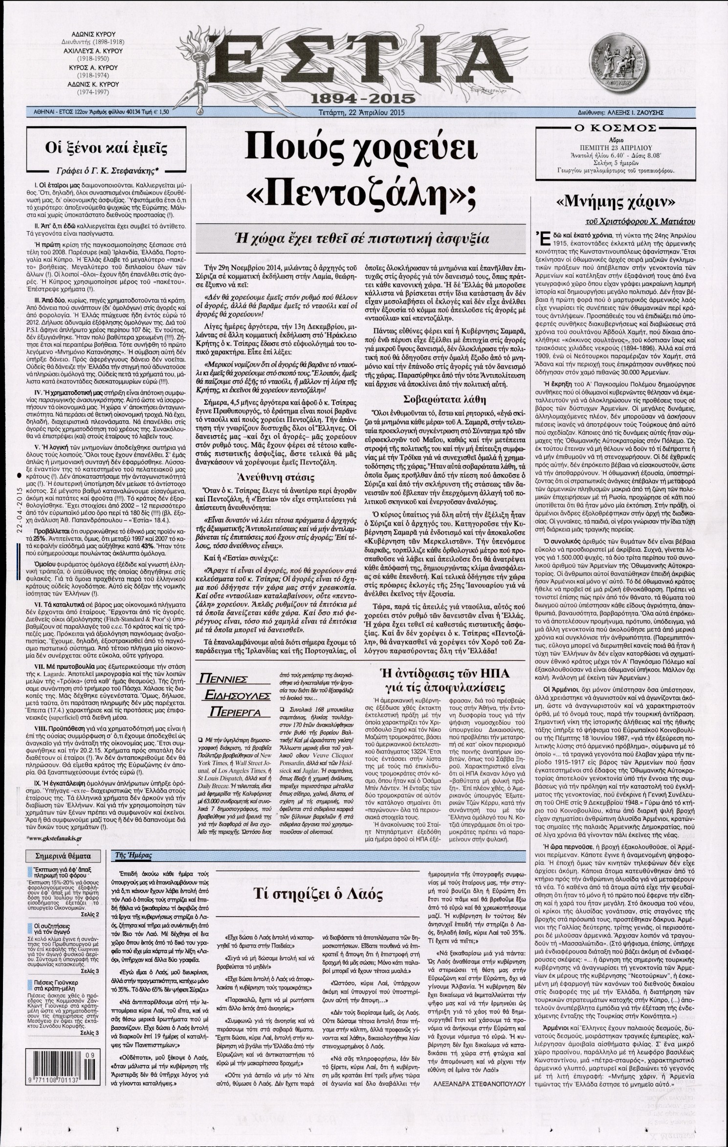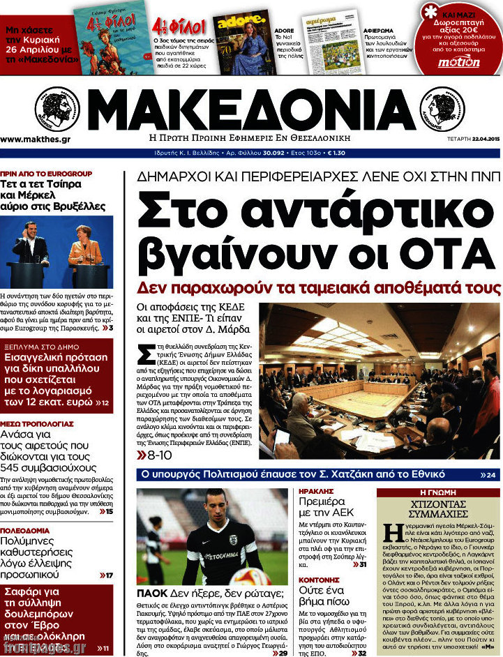 Οι πολιτικές εφημερίδες Enikos Newsroom 07:30, Τετάρτη 22 Απριλίου 2015 Media Διαβάστε τα σημερινά πρωτοσέλιδα των πολιτικών εφημερίδων: ΕΦΗΜΕΡΙΔΕΣ ΠΟΛΙΤΙΚΕΣ ΕΦΗΜΕΡΙΔΕΣ ΠΡΩΤΟΣΕΛΙΔΑ Μοιράσου το: σχολίασε κι εσύ (0 σχόλια) Ακολουθήστε το enikos.gr στο Google News και μάθετε πρώτοι όλες τις ειδήσεις Δείτε όλες τις τελευταίες ειδήσεις από την Ελλάδα και τον Κόσμο στο enikos.gr Ειδήσεις Ροή Ειδήσεων 1 ώρα πριν Χριστούγεννα στα μπλόκα: Επιμένουν στις κινητοποιήσεις τους οι αγρότες – Ανοίγουν τα διόδια το Σαββατοκύριακο 2 ώρες πριν Ουκρανία: Η άνευ προηγουμένου επίθεση σε ρωσικό τάνκερ στη Μεσόγειο και το μήνυμα προς στον Πούτιν – Το «μακρύ χέρι» του Κιέβου 1 ώρα πριν Πούτιν: Τα μηνύματα σε Ευρώπη και ΝΑΤΟ από το μαραθώνιο «σόου» του – Η απαίτηση για «σεβασμό» και η ειρήνη «με τους όρους» της Μόσχας 2 ώρες πριν Τραμπ: Δεν αποκλείει την πιθανότητα ενός πολέμου στη Βενεζουέλα – «Ο Μαδούρο ξέρει καλύτερα από τον καθένα τι ακριβώς θέλω» 3 ώρες πριν Συνεχίζει να προκαλεί ο Μίτσκοσκι: «Για μένα το όνομα Μακεδονία είναι ιερό» 1 ώρα πριν Ανακαλύφθηκαν αρχαία χρυσά νομίσματα 2.200 ετών που απεικονίζουν τον θεό Απόλλωνα – Η άγνωστη σύνδεση με τον Φίλιππο Β΄ της Μακεδονίας 2 ώρες πριν Ύπνος: Μια κρυφή κατάσταση του εγκεφάλου πριν από τον ύπνο μπορεί να είναι το “κλειδί” για υψηλή ευφυΐα και δημιουργικότητα 3 ώρες πριν Αριθμολογία: Οι άνθρωποι που έχουν γεννηθεί αυτές τις 4 ημερομηνίες, συχνά παρεξηγούνται – «Η καλοσύνη τους κρύβει τεράστια δύναμη» 4 ώρες πριν Ξεχάστε το καθάρισμα το Σαββατοκύριακο: Ο «κανόνας των 20 λεπτών» που θα σας λύσει τα χέρια 4 λεπτά πριν Πόλεμος στην Ουκρανία: Εφτά νεκροί από ρωσική πυραυλική επίθεση στο λιμάνι της Οδησσού 7 λεπτά πριν ΗΠΑ: Η κυβέρνηση του Ντόναλντ Τραμπ άρχισε να δημοσιοποιεί τα αρχεία Έπσταϊν 19 λεπτά πριν Σάμος: Άνοιξε το μπλόκο των αγροτών στον κόμβο Κοκκαρίου – Σε νέα συνεδρίαση θα καθορίσουν την στάση τους 27 λεπτά πριν Άνω Λιόσια: Πυροβολισμοί σε επιχείρηση με χαλιά – Εντοπίστηκαν 10 κάλυκες 34 λεπτά πριν Γάζα: Ισραηλινό πλήγμα σε σχολείο που είχαν καταφύγει εκτοπισμένοι – Τουλάχιστον έξι νεκροί ENIKOS NETWORK Το ΕΚΑΒ τιμήθηκε από την Ακαδημία Αθηνών για τα 40 χρόνια προσφοράς του Έχετε πραγματικά μεγάλη καρδιά; 10 χαρακτηριστικά όσων έχουν καλοσύνη Αναστολή μέτρων αναγκαστικής εκτέλεσης για κτηνοτρόφους που πλήττονται από την ευλογιά των αιγοπροβάτων Πλήρης επάρκεια προϊόντων στις λαϊκές της Αττικής, παρά τις αγροτικές κινητοποιήσεις – Τι απαντούν οι πωλητές Χαρτογραφώντας το «σημείο χωρίς επιστροφή»: Για πρώτη φορά αποκαλύπτεται με λεπτομέρεια το ακανθώδες όριο της ατμόσφαιρας τ... Η Google καταργεί τη λειτουργία «dark web report» – Πώς θα μπορούν οι χρήστες να διαγράφουν τα δεδομένα τους περισσότερα 22:42 , Παρασκευή 19 Δεκεμβρίου 2025 Γιώργος Γιαννόπουλος για “Το σόι σου”: “Είναι ευτυχία και ευλογία αυτή η σειρά” «Είναι ευτυχία και ευλογία η συγκυρία αυτής της σειράς», θα πει ο Γιώργος Γιαννόπουλος -ο αγαπ... 20:37 , Παρασκευή 19 Δεκεμβρίου 2025 Don’t Forget The Lyrics: Η Έλλη Κοκκίνου υποδέχεται 4 παίκτες που θα κάνουν τα πάντα για να μη χάσουν ούτε… μισή λέξη από τους στίχους Το «Don’t Forget The Lyrics» επιστρέφει απόψε, Παρασκευή 19 Δεκεμβρίου, στις 21:00 με νέο επει... 19:31 , Παρασκευή 19 Δεκεμβρίου 2025 GNTM: Απόψε ο μεγάλος τελικός για τους 4 φιναλίστ Έπειτα από μήνες γεμάτους μόδα, δημιουργία και έντονες αναμετρήσεις, το GNTM 2025 κορυφώνεται,... 18:11 , Παρασκευή 19 Δεκεμβρίου 2025 Το σόι σου