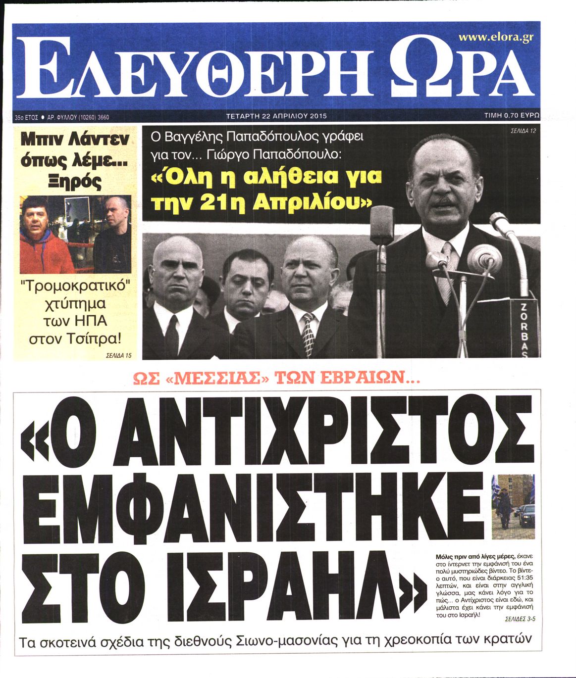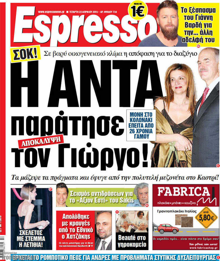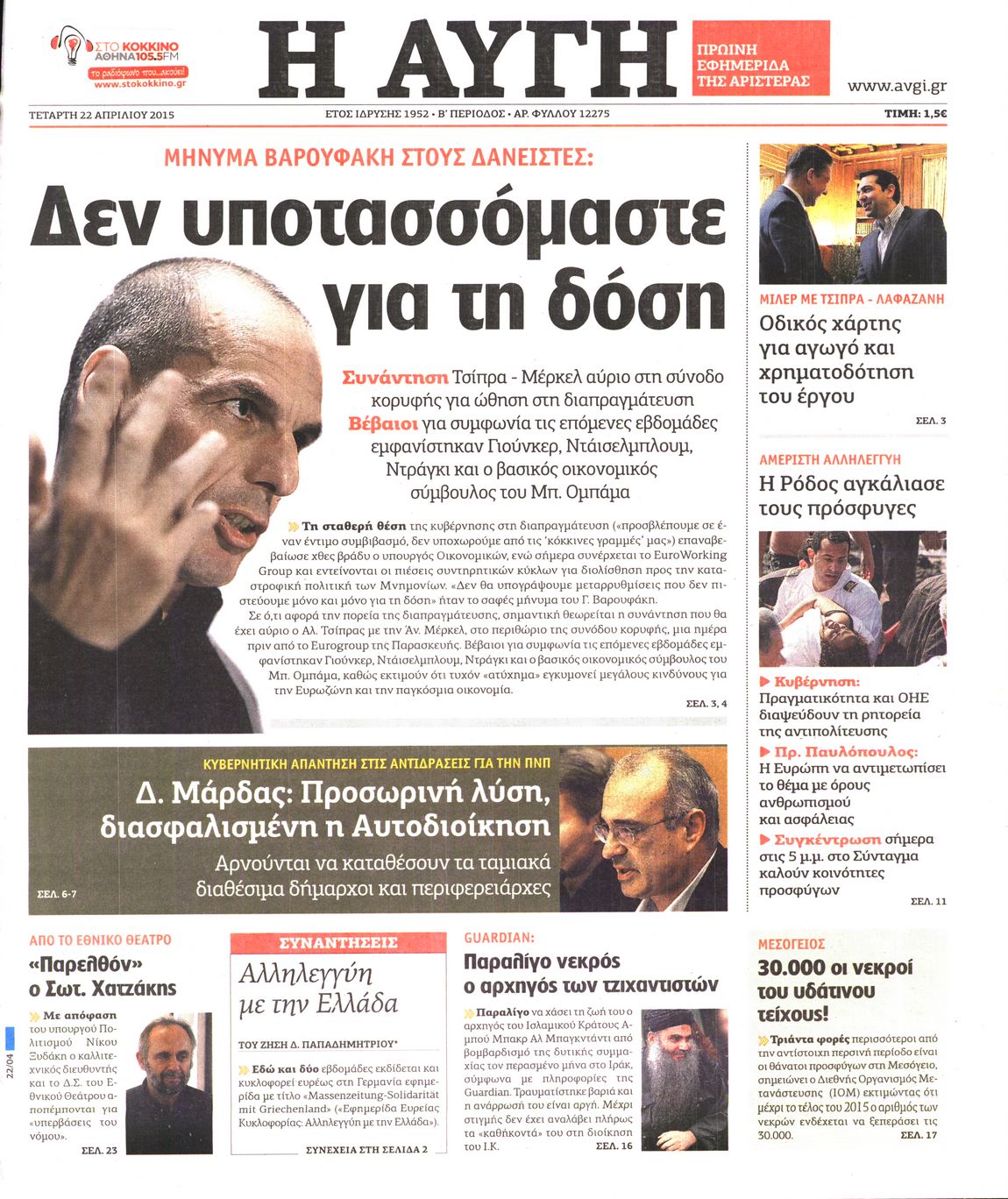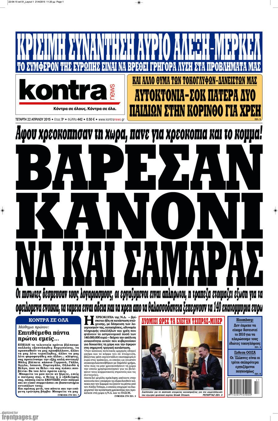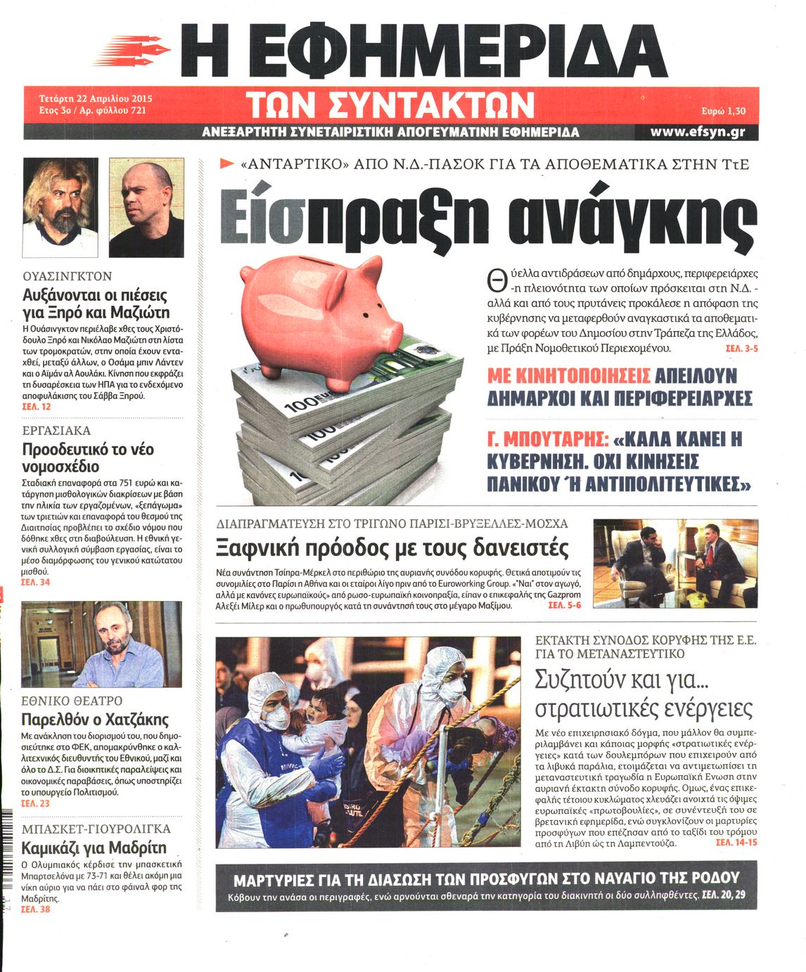 Οι πολιτικές εφημερίδες Enikos Newsroom 07:30, Τετάρτη 22 Απριλίου 2015 Media Διαβάστε τα σημερινά πρωτοσέλιδα των πολιτικών εφημερίδων: ΕΦΗΜΕΡΙΔΕΣ ΠΟΛΙΤΙΚΕΣ ΕΦΗΜΕΡΙΔΕΣ ΠΡΩΤΟΣΕΛΙΔΑ Μοιράσου το: σχολίασε κι εσύ (0 σχόλια) Ακολουθήστε το enikos.gr στο Google News και μάθετε πρώτοι όλες τις ειδήσεις Δείτε όλες τις τελευταίες ειδήσεις από την Ελλάδα και τον Κόσμο στο enikos.gr Ειδήσεις Ροή Ειδήσεων 1 ώρα πριν Χριστούγεννα στα μπλόκα: Επιμένουν στις κινητοποιήσεις τους οι αγρότες – Ανοίγουν τα διόδια το Σαββατοκύριακο 2 ώρες πριν Ουκρανία: Η άνευ προηγουμένου επίθεση σε ρωσικό τάνκερ στη Μεσόγειο και το μήνυμα προς στον Πούτιν – Το «μακρύ χέρι» του Κιέβου 1 ώρα πριν Πούτιν: Τα μηνύματα σε Ευρώπη και ΝΑΤΟ από το μαραθώνιο «σόου» του – Η απαίτηση για «σεβασμό» και η ειρήνη «με τους όρους» της Μόσχας 2 ώρες πριν Τραμπ: Δεν αποκλείει την πιθανότητα ενός πολέμου στη Βενεζουέλα – «Ο Μαδούρο ξέρει καλύτερα από τον καθένα τι ακριβώς θέλω» 3 ώρες πριν Συνεχίζει να προκαλεί ο Μίτσκοσκι: «Για μένα το όνομα Μακεδονία είναι ιερό» 1 ώρα πριν Ανακαλύφθηκαν αρχαία χρυσά νομίσματα 2.200 ετών που απεικονίζουν τον θεό Απόλλωνα – Η άγνωστη σύνδεση με τον Φίλιππο Β΄ της Μακεδονίας 2 ώρες πριν Ύπνος: Μια κρυφή κατάσταση του εγκεφάλου πριν από τον ύπνο μπορεί να είναι το “κλειδί” για υψηλή ευφυΐα και δημιουργικότητα 3 ώρες πριν Αριθμολογία: Οι άνθρωποι που έχουν γεννηθεί αυτές τις 4 ημερομηνίες, συχνά παρεξηγούνται – «Η καλοσύνη τους κρύβει τεράστια δύναμη» 4 ώρες πριν Ξεχάστε το καθάρισμα το Σαββατοκύριακο: Ο «κανόνας των 20 λεπτών» που θα σας λύσει τα χέρια 4 λεπτά πριν Πόλεμος στην Ουκρανία: Εφτά νεκροί από ρωσική πυραυλική επίθεση στο λιμάνι της Οδησσού 7 λεπτά πριν ΗΠΑ: Η κυβέρνηση του Ντόναλντ Τραμπ άρχισε να δημοσιοποιεί τα αρχεία Έπσταϊν 19 λεπτά πριν Σάμος: Άνοιξε το μπλόκο των αγροτών στον κόμβο Κοκκαρίου – Σε νέα συνεδρίαση θα καθορίσουν την στάση τους 27 λεπτά πριν Άνω Λιόσια: Πυροβολισμοί σε επιχείρηση με χαλιά – Εντοπίστηκαν 10 κάλυκες 34 λεπτά πριν Γάζα: Ισραηλινό πλήγμα σε σχολείο που είχαν καταφύγει εκτοπισμένοι – Τουλάχιστον έξι νεκροί ENIKOS NETWORK Το ΕΚΑΒ τιμήθηκε από την Ακαδημία Αθηνών για τα 40 χρόνια προσφοράς του Έχετε πραγματικά μεγάλη καρδιά; 10 χαρακτηριστικά όσων έχουν καλοσύνη Αναστολή μέτρων αναγκαστικής εκτέλεσης για κτηνοτρόφους που πλήττονται από την ευλογιά των αιγοπροβάτων Πλήρης επάρκεια προϊόντων στις λαϊκές της Αττικής, παρά τις αγροτικές κινητοποιήσεις – Τι απαντούν οι πωλητές Χαρτογραφώντας το «σημείο χωρίς επιστροφή»: Για πρώτη φορά αποκαλύπτεται με λεπτομέρεια το ακανθώδες όριο της ατμόσφαιρας τ... Η Google καταργεί τη λειτουργία «dark web report» – Πώς θα μπορούν οι χρήστες να διαγράφουν τα δεδομένα τους περισσότερα 22:42 , Παρασκευή 19 Δεκεμβρίου 2025 Γιώργος Γιαννόπουλος για “Το σόι σου”: “Είναι ευτυχία και ευλογία αυτή η σειρά” «Είναι ευτυχία και ευλογία η συγκυρία αυτής της σειράς», θα πει ο Γιώργος Γιαννόπουλος -ο αγαπ... 20:37 , Παρασκευή 19 Δεκεμβρίου 2025 Don’t Forget The Lyrics: Η Έλλη Κοκκίνου υποδέχεται 4 παίκτες που θα κάνουν τα πάντα για να μη χάσουν ούτε… μισή λέξη από τους στίχους Το «Don’t Forget The Lyrics» επιστρέφει απόψε, Παρασκευή 19 Δεκεμβρίου, στις 21:00 με νέο επει... 19:31 , Παρασκευή 19 Δεκεμβρίου 2025 GNTM: Απόψε ο μεγάλος τελικός για τους 4 φιναλίστ Έπειτα από μήνες γεμάτους μόδα, δημιουργία και έντονες αναμετρήσεις, το GNTM 2025 κορυφώνεται,... 18:11 , Παρασκευή 19 Δεκεμβρίου 2025 Το σόι σου