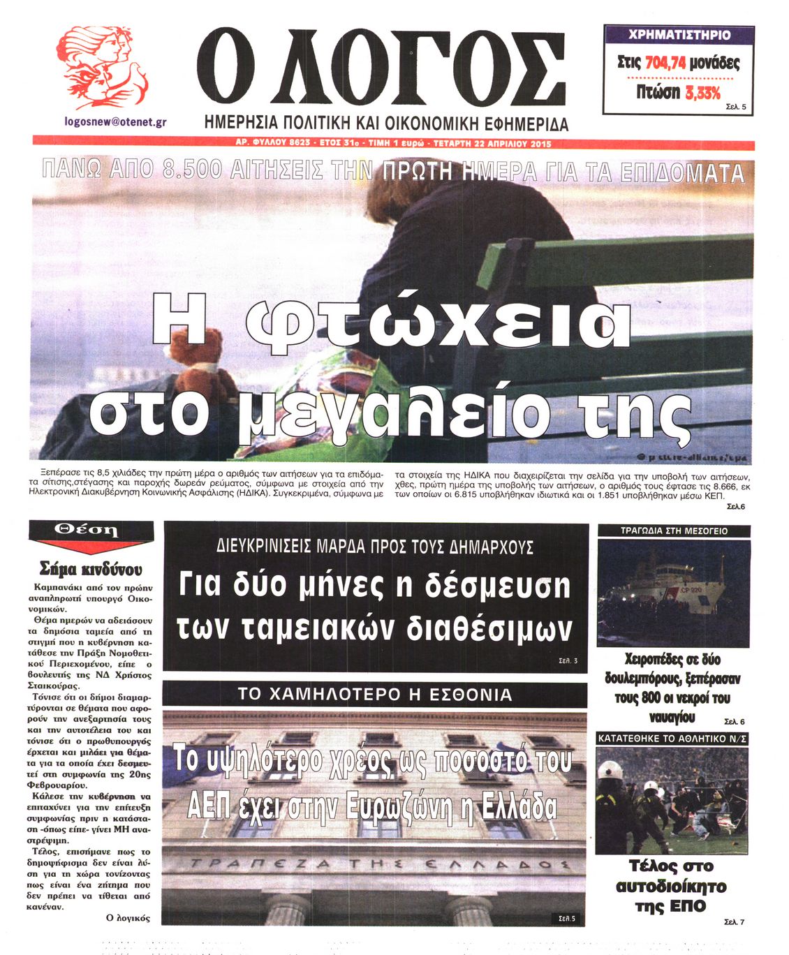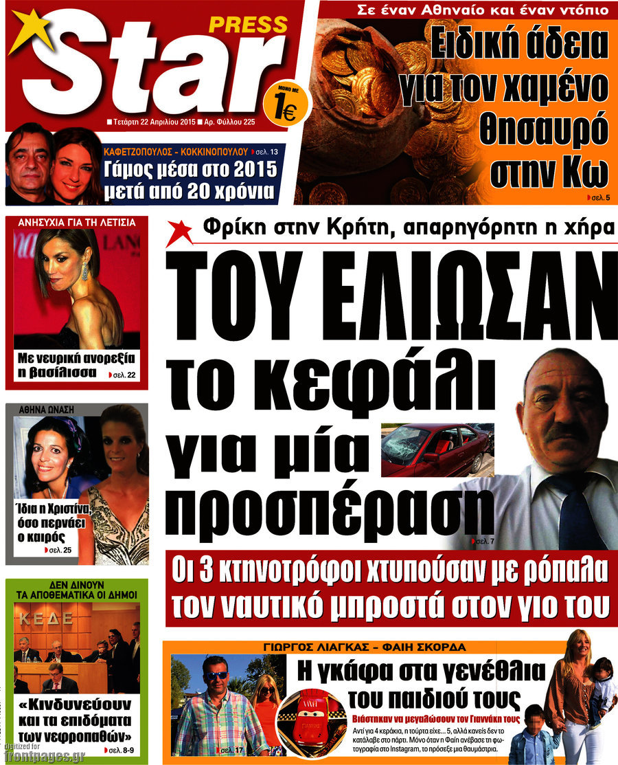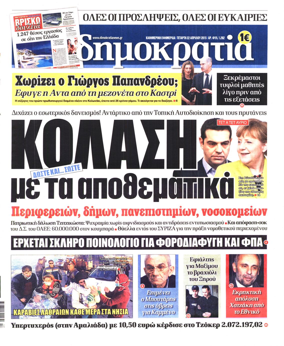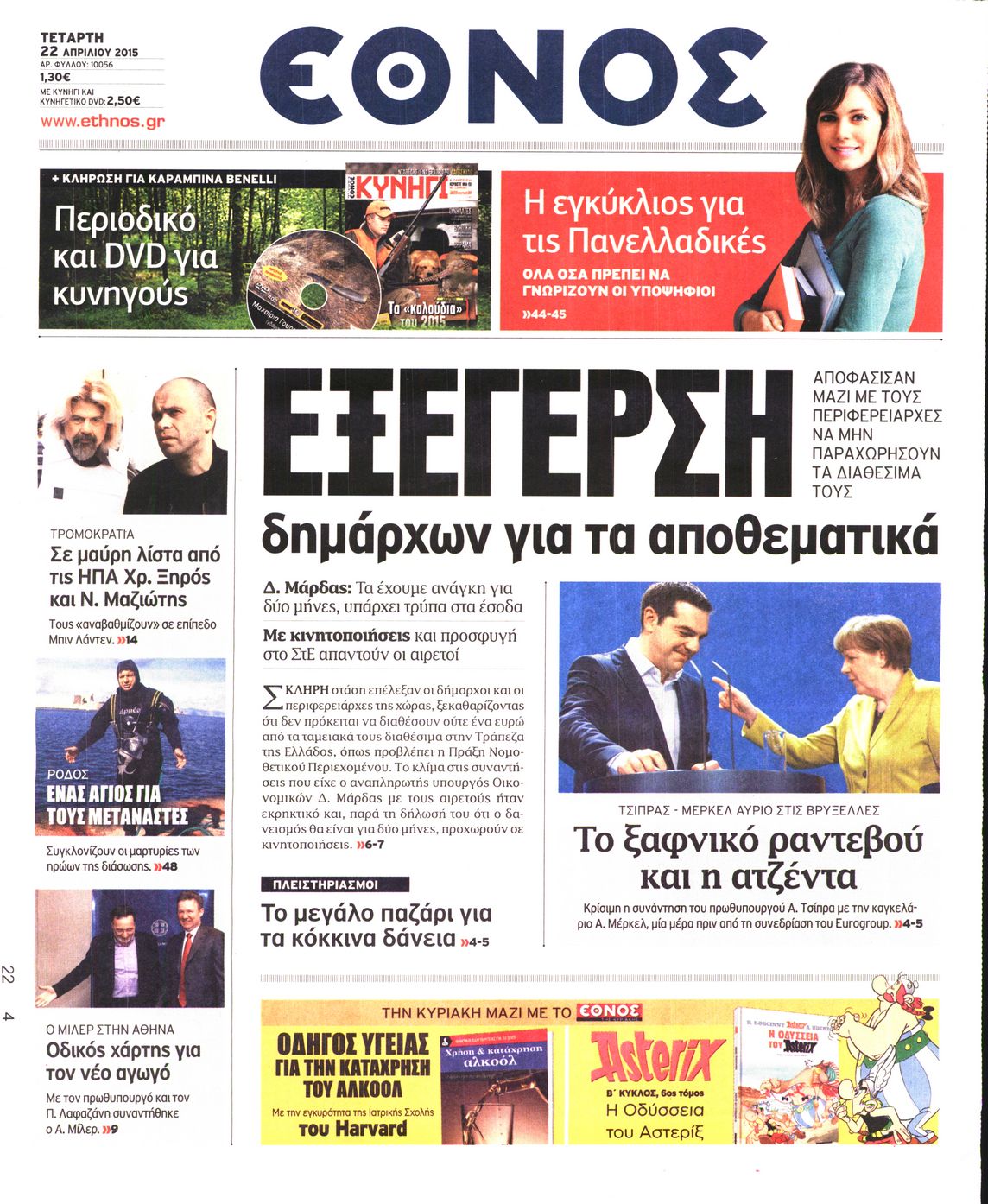 Οι πολιτικές εφημερίδες Enikos Newsroom 07:30, Τετάρτη 22 Απριλίου 2015 Media Διαβάστε τα σημερινά πρωτοσέλιδα των πολιτικών εφημερίδων: ΕΦΗΜΕΡΙΔΕΣ ΠΟΛΙΤΙΚΕΣ ΕΦΗΜΕΡΙΔΕΣ ΠΡΩΤΟΣΕΛΙΔΑ Μοιράσου το: σχολίασε κι εσύ (0 σχόλια) Ακολουθήστε το enikos.gr στο Google News και μάθετε πρώτοι όλες τις ειδήσεις Δείτε όλες τις τελευταίες ειδήσεις από την Ελλάδα και τον Κόσμο στο enikos.gr Ειδήσεις Ροή Ειδήσεων 1 ώρα πριν Χριστούγεννα στα μπλόκα: Επιμένουν στις κινητοποιήσεις τους οι αγρότες – Ανοίγουν τα διόδια το Σαββατοκύριακο 2 ώρες πριν Ουκρανία: Η άνευ προηγουμένου επίθεση σε ρωσικό τάνκερ στη Μεσόγειο και το μήνυμα προς στον Πούτιν – Το «μακρύ χέρι» του Κιέβου 1 ώρα πριν Πούτιν: Τα μηνύματα σε Ευρώπη και ΝΑΤΟ από το μαραθώνιο «σόου» του – Η απαίτηση για «σεβασμό» και η ειρήνη «με τους όρους» της Μόσχας 2 ώρες πριν Τραμπ: Δεν αποκλείει την πιθανότητα ενός πολέμου στη Βενεζουέλα – «Ο Μαδούρο ξέρει καλύτερα από τον καθένα τι ακριβώς θέλω» 3 ώρες πριν Συνεχίζει να προκαλεί ο Μίτσκοσκι: «Για μένα το όνομα Μακεδονία είναι ιερό» 1 ώρα πριν Ανακαλύφθηκαν αρχαία χρυσά νομίσματα 2.200 ετών που απεικονίζουν τον θεό Απόλλωνα – Η άγνωστη σύνδεση με τον Φίλιππο Β΄ της Μακεδονίας 2 ώρες πριν Ύπνος: Μια κρυφή κατάσταση του εγκεφάλου πριν από τον ύπνο μπορεί να είναι το “κλειδί” για υψηλή ευφυΐα και δημιουργικότητα 3 ώρες πριν Αριθμολογία: Οι άνθρωποι που έχουν γεννηθεί αυτές τις 4 ημερομηνίες, συχνά παρεξηγούνται – «Η καλοσύνη τους κρύβει τεράστια δύναμη» 4 ώρες πριν Ξεχάστε το καθάρισμα το Σαββατοκύριακο: Ο «κανόνας των 20 λεπτών» που θα σας λύσει τα χέρια 4 λεπτά πριν Πόλεμος στην Ουκρανία: Εφτά νεκροί από ρωσική πυραυλική επίθεση στο λιμάνι της Οδησσού 7 λεπτά πριν ΗΠΑ: Η κυβέρνηση του Ντόναλντ Τραμπ άρχισε να δημοσιοποιεί τα αρχεία Έπσταϊν 19 λεπτά πριν Σάμος: Άνοιξε το μπλόκο των αγροτών στον κόμβο Κοκκαρίου – Σε νέα συνεδρίαση θα καθορίσουν την στάση τους 27 λεπτά πριν Άνω Λιόσια: Πυροβολισμοί σε επιχείρηση με χαλιά – Εντοπίστηκαν 10 κάλυκες 34 λεπτά πριν Γάζα: Ισραηλινό πλήγμα σε σχολείο που είχαν καταφύγει εκτοπισμένοι – Τουλάχιστον έξι νεκροί ENIKOS NETWORK Το ΕΚΑΒ τιμήθηκε από την Ακαδημία Αθηνών για τα 40 χρόνια προσφοράς του Έχετε πραγματικά μεγάλη καρδιά; 10 χαρακτηριστικά όσων έχουν καλοσύνη Αναστολή μέτρων αναγκαστικής εκτέλεσης για κτηνοτρόφους που πλήττονται από την ευλογιά των αιγοπροβάτων Πλήρης επάρκεια προϊόντων στις λαϊκές της Αττικής, παρά τις αγροτικές κινητοποιήσεις – Τι απαντούν οι πωλητές Χαρτογραφώντας το «σημείο χωρίς επιστροφή»: Για πρώτη φορά αποκαλύπτεται με λεπτομέρεια το ακανθώδες όριο της ατμόσφαιρας τ... Η Google καταργεί τη λειτουργία «dark web report» – Πώς θα μπορούν οι χρήστες να διαγράφουν τα δεδομένα τους περισσότερα 22:42 , Παρασκευή 19 Δεκεμβρίου 2025 Γιώργος Γιαννόπουλος για “Το σόι σου”: “Είναι ευτυχία και ευλογία αυτή η σειρά” «Είναι ευτυχία και ευλογία η συγκυρία αυτής της σειράς», θα πει ο Γιώργος Γιαννόπουλος -ο αγαπ... 20:37 , Παρασκευή 19 Δεκεμβρίου 2025 Don’t Forget The Lyrics: Η Έλλη Κοκκίνου υποδέχεται 4 παίκτες που θα κάνουν τα πάντα για να μη χάσουν ούτε… μισή λέξη από τους στίχους Το «Don’t Forget The Lyrics» επιστρέφει απόψε, Παρασκευή 19 Δεκεμβρίου, στις 21:00 με νέο επει... 19:31 , Παρασκευή 19 Δεκεμβρίου 2025 GNTM: Απόψε ο μεγάλος τελικός για τους 4 φιναλίστ Έπειτα από μήνες γεμάτους μόδα, δημιουργία και έντονες αναμετρήσεις, το GNTM 2025 κορυφώνεται,... 18:11 , Παρασκευή 19 Δεκεμβρίου 2025 Το σόι σου