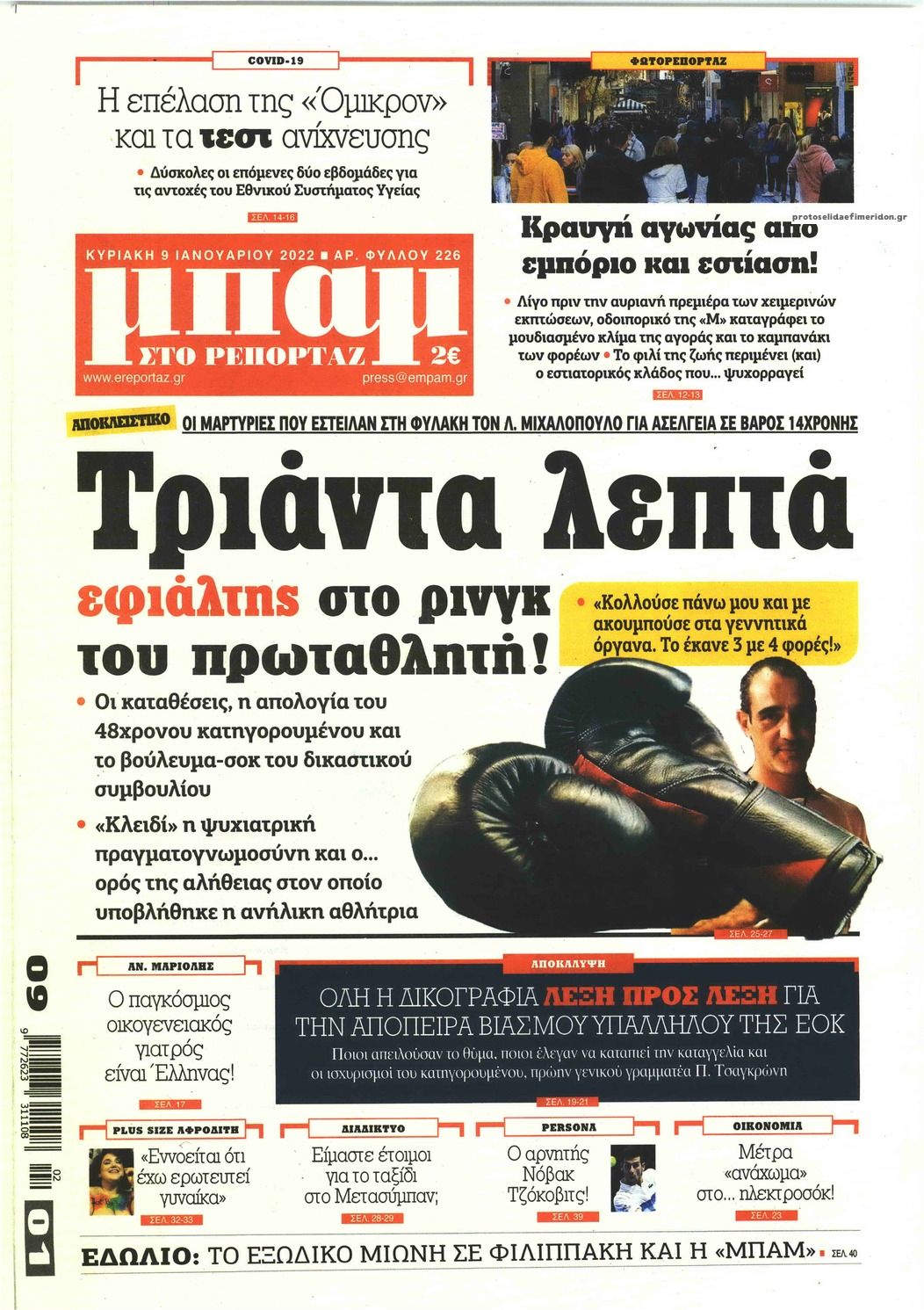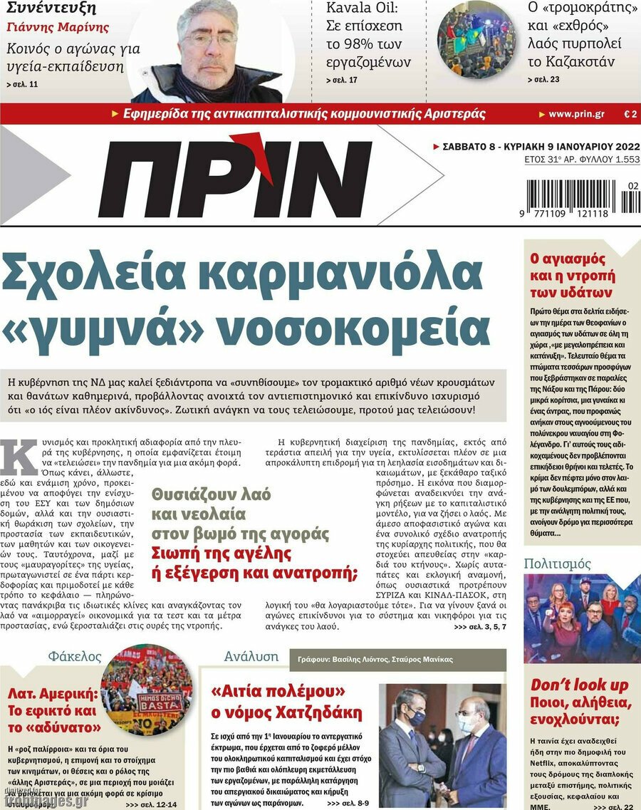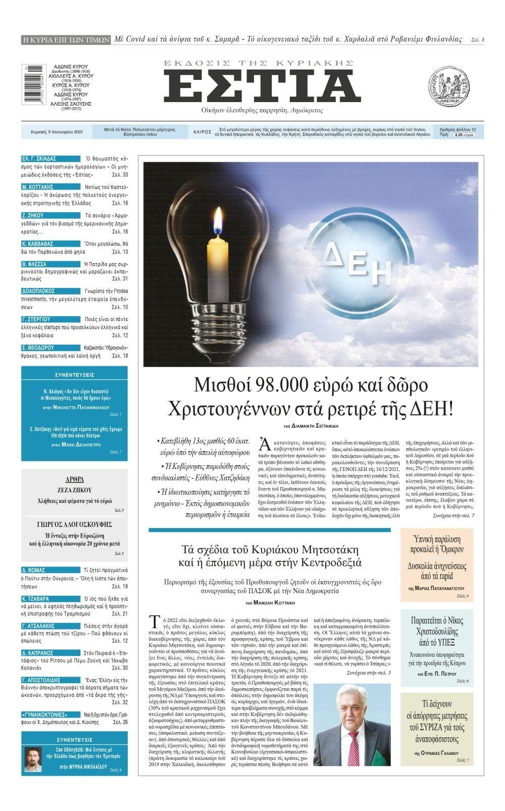 Οι πολιτικές εφημερίδες 9/1/2022 Σήφης Γαρυφαλάκης 07:27, Κυριακή 09 Ιανουαρίου 2022 Media Διαβάστε τα πρωτοσέλιδα από τις πολιτικές εφημερίδες… ΕΦΗΜΕΡΙΔΕΣ ΠΟΛΙΤΙΚΕΣ ΕΦΗΜΕΡΙΔΕΣ ΠΡΩΤΟΣΕΛΙΔΑ Μοιράσου το: Οι πολιτικές εφημερίδες 8/1/2022 Οι πολιτικές εφημερίδες 7/1/2022 Οι πολιτικές εφημερίδες 6/1/2022 σχολίασε κι εσύ (0 σχόλια) Ακολουθήστε το enikos.gr στο Google News και μάθετε πρώτοι όλες τις ειδήσεις Δείτε όλες τις τελευταίες ειδήσεις από την Ελλάδα και τον Κόσμο στο enikos.gr Ειδήσεις Ροή Ειδήσεων 4 ώρες πριν Αγρότες: Την Τρίτη η απόφαση για διάλογο ή κλιμάκωση των κινητοποιήσεών τους – Πώς χαρακτηρίζουν τις ανακοινώσεις Τσιάρα και οι επόμενες κινήσεις 4 ώρες πριν Τραμπ για Ουκρανία: «Είμαστε πιο κοντά σε συμφωνία από ποτέ» – «Πολυεθνική δύναμη» προτείνουν οι Ευρωπαίοι 4 ώρες πριν Κυψέλη: Η 16χρονη που μαχαίρωσε την 14χρονη είχε συλληφθεί 3 φορές στο παρελθόν – Έβριζε καθηγητές, έβαζε φωτιές σε κάδους και εκβίαζε συμμαθητές της 4 ώρες πριν Χαλκιδική: Πώς δρούσαν οι αστυνομικοί που συνελήφθησαν για κλήσεις που δεν έκοβαν – Η «ετήσια συνδρομή» για τα μπλόκα της Τροχαίας και οι «δωρεές» 3 ώρες πριν Τρομοκρατική επίθεση στο Σίδνεϊ: Θλίψη για τα 15 θύματα – Οργή στην εβραϊκή κοινότητα που προειδοποιούσε επί δύο χρόνια 5 ώρες πριν Ύπνος: Η αρχαία μορφή άσκησης που αποδεικνύεται αποτελεσματική στην αντιμετώπιση της αϋπνίας, σύμφωνα με μελέτη 6 ώρες πριν Αριθμολογία: Ο τυχερός σας αριθμός, ανάλογα με τον μήνα γέννησής σας 7 ώρες πριν Πώς να μην μαραίνονται γρήγορα τα κομμένα λουλούδια: Το λάθος στην τοποθέτηση του βάζου που πρέπει να αποφεύγετε 4 ώρες πριν Επιστήμονες ίσως έλυσαν το μυστήριο γύρω από τα Χόμπιτ – Νέα έρευνα αποκαλύπτει πώς εξαφανίστηκαν 9 λεπτά πριν Ροντ Στιούαρτ: Εκνευρίστηκε με θεατή στην συναυλία του στην Αθήνα – «Φύγε από την μέση, χαλάς το σόου» 23 λεπτά πριν Μεξικό: Συντριβή μικρού αεροσκάφους – Τουλάχιστον επτά νεκροί 35 λεπτά πριν Serie A: O Γουέσλι Φράνκα επανάφερε τη Ρόμα στις νίκες, 1-0 την Κόμο του Τάσου Δουβίκα 44 λεπτά πριν Σεισμός 5,2 Ρίχτερ ανοιχτά της Ζακύνθου 50 λεπτά πριν Βενεζουέλα: Ο Αλεξάντερ Λουκασένκο λέει πως ο Μαδούρο είναι ευπρόσδεκτος να εγκατασταθεί στη Λευκορωσία ENIKOS NETWORK Πότε το χρόνιο ροχαλητό να αποτελέσει ένδειξη κινδύνου για την καρδιά; Τι λένε οι ειδικοί Μάριος Θεμιστοκλέους: Το ΕΣΥ ενισχύεται, εκσυγχρονίζεται, αλλάζει ΕΒΕΠ για αγροτικές κινητοποιήσεις: Κάθε επιπλέον εβδομάδα προσθέτει περίπου 200 εκατ. ευρώ ζημιά Τι προβλέπει το νομοσχέδιο του υπουργείου Εθνικής Άμυνας – Oι αλλαγές στους μισθούς Σύγχρονος Νοστράδαμος: Προειδοποιεί για «μεγάλο γεγονός» τους επόμενους μήνες που θα συγκλονίσει τη Βρετανία και τον κόσμο Τεστ παρατηρητικότητας: Μπορείτε να βρείτε τις 3 διαφορές στις εικόνες με έναν πιγκουίνο σε 14 δευτερόλεπτα περισσότερα 21:35 , Δευτέρα 15 Δεκεμβρίου 2025 Το Σπίτι Δίπλα Στο Ποτάμι: Η Ιουλία και ο Φωκάς μετακομίζουν στη Ρόδο – Δύο νέοι χαρακτήρες μπαίνουν στη σειρά Δύο νέοι, κομβικοί χαρακτήρες κάνουν την εμφάνισή τους αυτή την εβδομάδα στην αγαπημένη σειρά ... 19:46 , Δευτέρα 15 Δεκεμβρίου 2025 Άγιος έρωτας: Η Χριστίνα λέει την αλήθεια στον Αντρέα Ο Βασίλης δέχεται επίθεση από τους συμμαθητές του, η Αναστασία είναι συντετριμμένη με την απώλ... 18:45 , Δευτέρα 15 Δεκεμβρίου 2025 Συνέδριο «Ελληνικός Τουρισμός 2025, Μια εθνική υπόθεση!» – «Ο Θαλάσσιος Πυλώνας ως Ενιαία Στρατηγική: Συνέργειες σε Λιμάνια, Μαρίνες, Ακτοπλοΐα, Κρουαζιέρα και Yachti