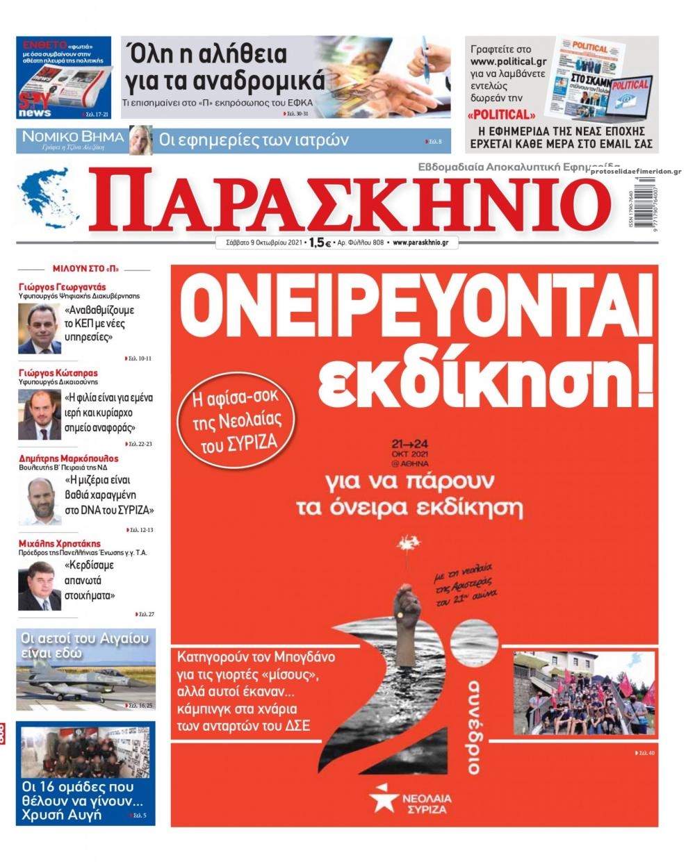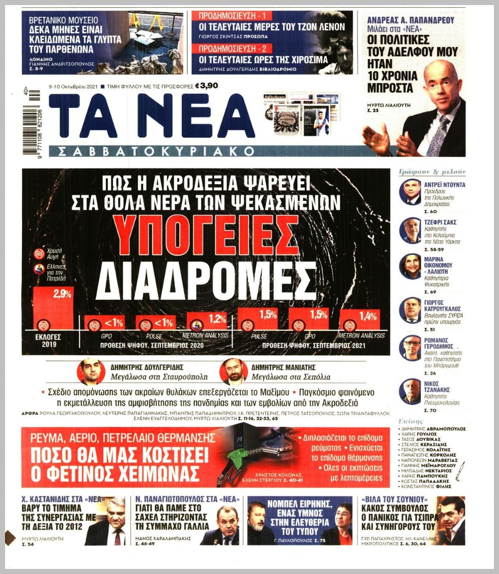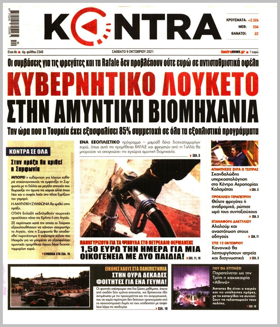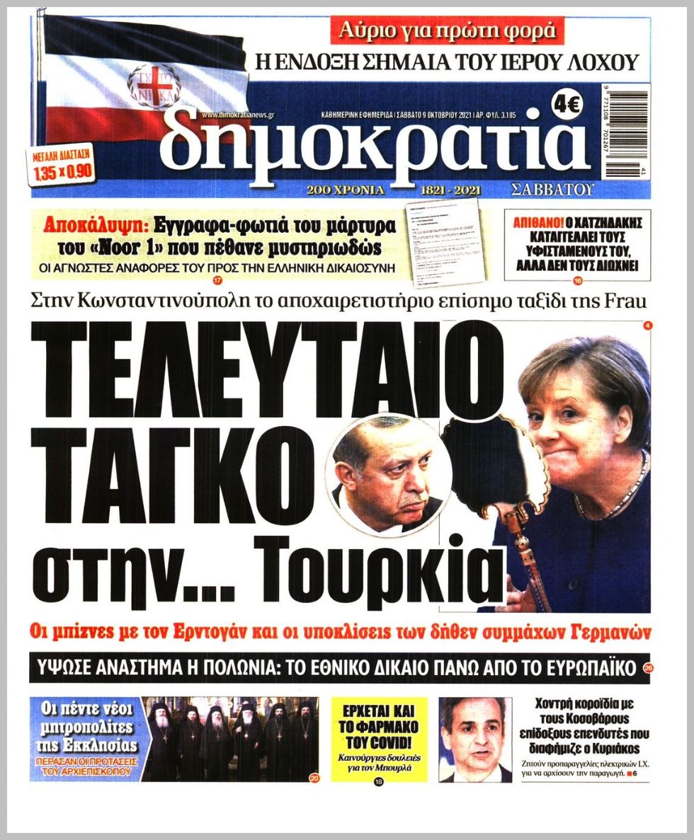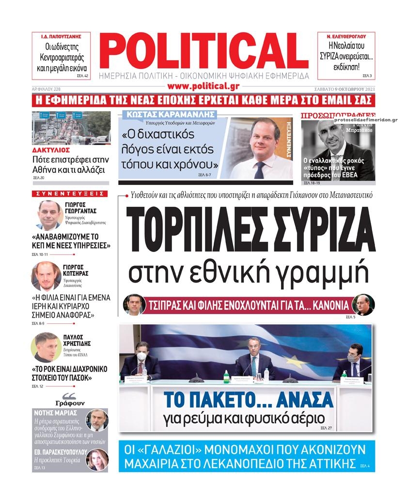 Οι πολιτικές εφημερίδες 9/10/2021 Διονύσης Νίκκας 07:10, Σάββατο 09 Οκτωβρίου 2021 Media Διαβάστε τα πρωτοσέλιδα από τις πολιτικές εφημερίδες… ΠΟΛΙΤΙΚΕΣ ΕΦΗΜΕΡΙΔΕΣ ΠΡΩΤΟΣΕΛΙΔΑ Μοιράσου το: σχολίασε κι εσύ (0 σχόλια) Ακολουθήστε το enikos.gr στο Google News και μάθετε πρώτοι όλες τις ειδήσεις Δείτε όλες τις τελευταίες ειδήσεις από την Ελλάδα και τον Κόσμο στο enikos.gr Ειδήσεις Ροή Ειδήσεων 8 ώρες πριν Χριστούγεννα στα μπλόκα: Επιμένουν στις κινητοποιήσεις τους οι αγρότες – Ανοίγουν τα διόδια το Σαββατοκύριακο 8 ώρες πριν Ουκρανία: Η άνευ προηγουμένου επίθεση σε ρωσικό τάνκερ στη Μεσόγειο και το μήνυμα προς στον Πούτιν – Το «μακρύ χέρι» του Κιέβου 8 ώρες πριν Πούτιν: Τα μηνύματα σε Ευρώπη και ΝΑΤΟ από το μαραθώνιο «σόου» του – Η απαίτηση για «σεβασμό» και η ειρήνη «με τους όρους» της Μόσχας 7 ώρες πριν ΗΠΑ: Η κυβέρνηση του Ντόναλντ Τραμπ άρχισε να δημοσιοποιεί τα αρχεία Έπσταϊν 7 ώρες πριν Άνω Λιόσια: Πυροβολισμοί σε επιχείρηση με χαλιά – Εντοπίστηκαν 10 κάλυκες 35 λεπτά πριν Αυγά: Πόσα μπορείτε να τρώτε την ημέρα με ασφάλεια για μέγιστη πρόσληψη πρωτεΐνης 1 ώρα πριν Τα ζώδια σήμερα, Σάββατο 20 Δεκεμβρίου: Παρθένοι, το σύμπαν σας δίνει το κλειδί 8 ώρες πριν Ανακαλύφθηκαν αρχαία χρυσά νομίσματα 2.200 ετών που απεικονίζουν τον θεό Απόλλωνα – Η άγνωστη σύνδεση με τον Φίλιππο Β΄ της Μακεδονίας 9 ώρες πριν Ύπνος: Μια κρυφή κατάσταση του εγκεφάλου πριν από τον ύπνο μπορεί να είναι το “κλειδί” για υψηλή ευφυΐα και δημιουργικότητα 4 λεπτά πριν ΔΕΔΔΗΕ: Διακοπές ρεύματος σήμερα (20/12) στην Αθήνα και σε άλλες 7 περιοχές της Αττικής 12 λεπτά πριν Κολομβία: Είκοσι χρόνια κάθειρξη σε πρώην ανώτερο αξιωματικό για 72 εκτελέσεις αμάχων 20 λεπτά πριν Οπτική ψευδαίσθηση: Μόνο αν είσαι ο Σέρλοκ Χολμς θα βρεις τον αριθμό «87» σε 7 δευτερόλεπτα 27 λεπτά πριν Σαρωτικοί οι έλεγχοι στους δρόμους ενόψει εορτών – Μπλόκα της τροχαίας σε κεντρικές αρτηρίες της Αττικής 35 λεπτά πριν Αυγά: Πόσα μπορείτε να τρώτε την ημέρα με ασφάλεια για μέγιστη πρόσληψη πρωτεΐνης ENIKOS NETWORK Το ΕΚΑΒ τιμήθηκε από την Ακαδημία Αθηνών για τα 40 χρόνια προσφοράς του Έχετε πραγματικά μεγάλη καρδιά; 10 χαρακτηριστικά όσων έχουν καλοσύνη Αναστολή μέτρων αναγκαστικής εκτέλεσης για κτηνοτρόφους που πλήττονται από την ευλογιά των αιγοπροβάτων Πλήρης επάρκεια προϊόντων στις λαϊκές της Αττικής, παρά τις αγροτικές κινητοποιήσεις – Τι απαντούν οι πωλητές Χαρτογραφώντας το «σημείο χωρίς επιστροφή»: Για πρώτη φορά αποκαλύπτεται με λεπτομέρεια το ακανθώδες όριο της ατμόσφαιρας τ... Η Google καταργεί τη λειτουργία «dark web report» – Πώς θα μπορούν οι χρήστες να διαγράφουν τα δεδομένα τους περισσότερα 05:48 , Σάββατο 20 Δεκεμβρίου 2025 Οι οικονομικές εφημερίδες 20/12/2025 Διαβάστε τα πρωτοσέλιδα από τις οικονομικές εφημερίδες, σήμερα 20/12/2025. 05:43 , Σάββατο 20 Δεκεμβρίου 2025 Οι αθλητικές εφημερίδες 20/12/2025 Διαβάστε τα πρωτοσέλιδα από τις αθλητικές εφημερίδες, σήμερα 20/12/2025. 05:38 , Σάββατο 20 Δεκεμβρίου 2025 Οι πολιτικές εφημερίδες 20/12/2025 Διαβάστε τα πρωτοσέλιδα από τις πολιτικές εφημερίδες, σήμερα 20/12/2025. 04:20 , Σάββατο 20 Δεκεμβρίου 2025 Αγγελική Νικολούλη: Τα συλλυπητήρια για την απώλεια της Ειρήνης Μαρινάκη Τα συλληπητήρια στον πρόεδρο του Mega, τον Βαγγέλη Μαρινάκη, για την απώλεια της μητέρας του Ε... ΤΕΛΕΥΤΑΙΕΣ ΕΙΔΗΣΕΙΣ 12 λεπτά πριν Κολομβία: Είκοσι χρόνια κάθειρξη σε πρώην ανώτερο... 20 λεπτά πριν Οπτική ψευδαίσθηση: Μόνο αν είσαι ο Σέρλοκ Χολμς θα... 27 λεπτά πριν Σαρωτικοί