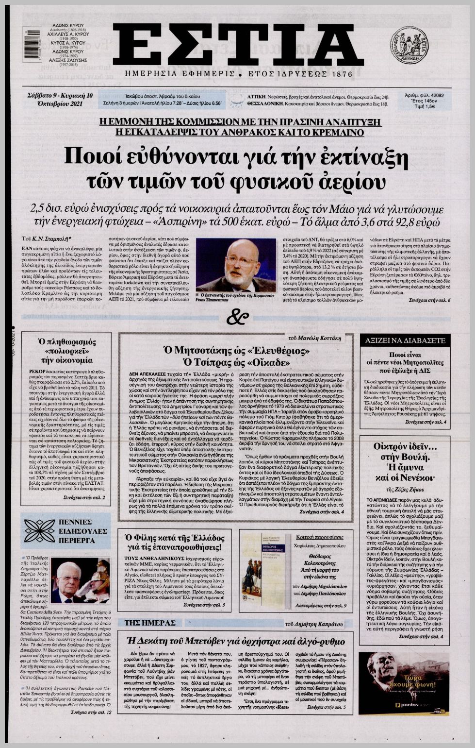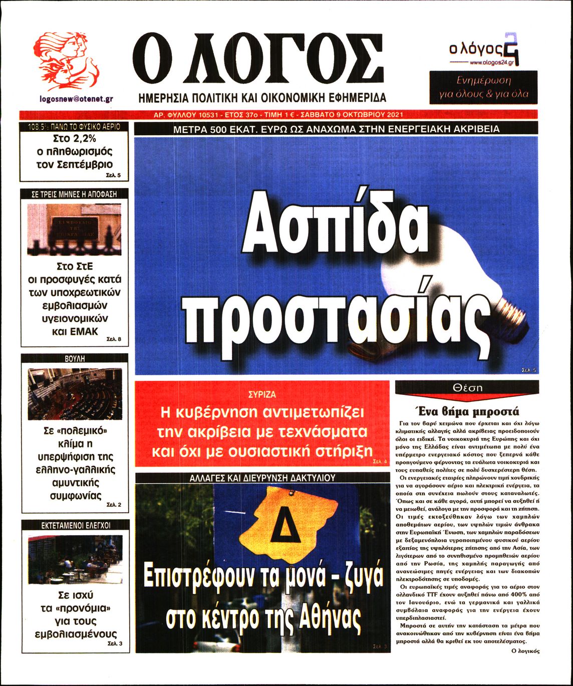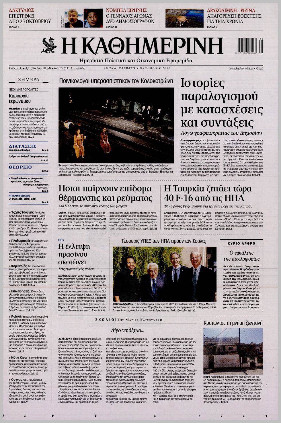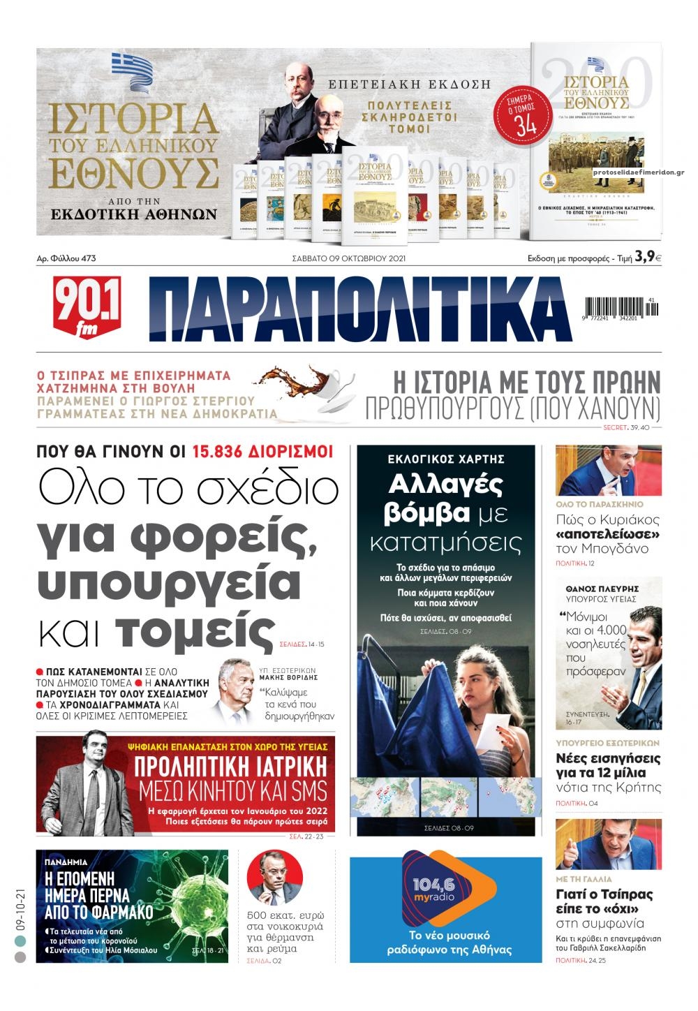 Οι πολιτικές εφημερίδες 9/10/2021 Διονύσης Νίκκας 07:10, Σάββατο 09 Οκτωβρίου 2021 Media Διαβάστε τα πρωτοσέλιδα από τις πολιτικές εφημερίδες… ΠΟΛΙΤΙΚΕΣ ΕΦΗΜΕΡΙΔΕΣ ΠΡΩΤΟΣΕΛΙΔΑ Μοιράσου το: σχολίασε κι εσύ (0 σχόλια) Ακολουθήστε το enikos.gr στο Google News και μάθετε πρώτοι όλες τις ειδήσεις Δείτε όλες τις τελευταίες ειδήσεις από την Ελλάδα και τον Κόσμο στο enikos.gr Ειδήσεις Ροή Ειδήσεων 8 ώρες πριν Χριστούγεννα στα μπλόκα: Επιμένουν στις κινητοποιήσεις τους οι αγρότες – Ανοίγουν τα διόδια το Σαββατοκύριακο 8 ώρες πριν Ουκρανία: Η άνευ προηγουμένου επίθεση σε ρωσικό τάνκερ στη Μεσόγειο και το μήνυμα προς στον Πούτιν – Το «μακρύ χέρι» του Κιέβου 8 ώρες πριν Πούτιν: Τα μηνύματα σε Ευρώπη και ΝΑΤΟ από το μαραθώνιο «σόου» του – Η απαίτηση για «σεβασμό» και η ειρήνη «με τους όρους» της Μόσχας 7 ώρες πριν ΗΠΑ: Η κυβέρνηση του Ντόναλντ Τραμπ άρχισε να δημοσιοποιεί τα αρχεία Έπσταϊν 7 ώρες πριν Άνω Λιόσια: Πυροβολισμοί σε επιχείρηση με χαλιά – Εντοπίστηκαν 10 κάλυκες 35 λεπτά πριν Αυγά: Πόσα μπορείτε να τρώτε την ημέρα με ασφάλεια για μέγιστη πρόσληψη πρωτεΐνης 1 ώρα πριν Τα ζώδια σήμερα, Σάββατο 20 Δεκεμβρίου: Παρθένοι, το σύμπαν σας δίνει το κλειδί 8 ώρες πριν Ανακαλύφθηκαν αρχαία χρυσά νομίσματα 2.200 ετών που απεικονίζουν τον θεό Απόλλωνα – Η άγνωστη σύνδεση με τον Φίλιππο Β΄ της Μακεδονίας 9 ώρες πριν Ύπνος: Μια κρυφή κατάσταση του εγκεφάλου πριν από τον ύπνο μπορεί να είναι το “κλειδί” για υψηλή ευφυΐα και δημιουργικότητα 4 λεπτά πριν ΔΕΔΔΗΕ: Διακοπές ρεύματος σήμερα (20/12) στην Αθήνα και σε άλλες 7 περιοχές της Αττικής 12 λεπτά πριν Κολομβία: Είκοσι χρόνια κάθειρξη σε πρώην ανώτερο αξιωματικό για 72 εκτελέσεις αμάχων 20 λεπτά πριν Οπτική ψευδαίσθηση: Μόνο αν είσαι ο Σέρλοκ Χολμς θα βρεις τον αριθμό «87» σε 7 δευτερόλεπτα 27 λεπτά πριν Σαρωτικοί οι έλεγχοι στους δρόμους ενόψει εορτών – Μπλόκα της τροχαίας σε κεντρικές αρτηρίες της Αττικής 35 λεπτά πριν Αυγά: Πόσα μπορείτε να τρώτε την ημέρα με ασφάλεια για μέγιστη πρόσληψη πρωτεΐνης ENIKOS NETWORK Το ΕΚΑΒ τιμήθηκε από την Ακαδημία Αθηνών για τα 40 χρόνια προσφοράς του Έχετε πραγματικά μεγάλη καρδιά; 10 χαρακτηριστικά όσων έχουν καλοσύνη Αναστολή μέτρων αναγκαστικής εκτέλεσης για κτηνοτρόφους που πλήττονται από την ευλογιά των αιγοπροβάτων Πλήρης επάρκεια προϊόντων στις λαϊκές της Αττικής, παρά τις αγροτικές κινητοποιήσεις – Τι απαντούν οι πωλητές Χαρτογραφώντας το «σημείο χωρίς επιστροφή»: Για πρώτη φορά αποκαλύπτεται με λεπτομέρεια το ακανθώδες όριο της ατμόσφαιρας τ... Η Google καταργεί τη λειτουργία «dark web report» – Πώς θα μπορούν οι χρήστες να διαγράφουν τα δεδομένα τους περισσότερα 05:48 , Σάββατο 20 Δεκεμβρίου 2025 Οι οικονομικές εφημερίδες 20/12/2025 Διαβάστε τα πρωτοσέλιδα από τις οικονομικές εφημερίδες, σήμερα 20/12/2025. 05:43 , Σάββατο 20 Δεκεμβρίου 2025 Οι αθλητικές εφημερίδες 20/12/2025 Διαβάστε τα πρωτοσέλιδα από τις αθλητικές εφημερίδες, σήμερα 20/12/2025. 05:38 , Σάββατο 20 Δεκεμβρίου 2025 Οι πολιτικές εφημερίδες 20/12/2025 Διαβάστε τα πρωτοσέλιδα από τις πολιτικές εφημερίδες, σήμερα 20/12/2025. 04:20 , Σάββατο 20 Δεκεμβρίου 2025 Αγγελική Νικολούλη: Τα συλλυπητήρια για την απώλεια της Ειρήνης Μαρινάκη Τα συλληπητήρια στον πρόεδρο του Mega, τον Βαγγέλη Μαρινάκη, για την απώλεια της μητέρας του Ε... ΤΕΛΕΥΤΑΙΕΣ ΕΙΔΗΣΕΙΣ 12 λεπτά πριν Κολομβία: Είκοσι χρόνια κάθειρξη σε πρώην ανώτερο... 20 λεπτά πριν Οπτική ψευδαίσθηση: Μόνο αν είσαι ο Σέρλοκ Χολμς θα... 27 λεπτά πριν Σαρωτικοί