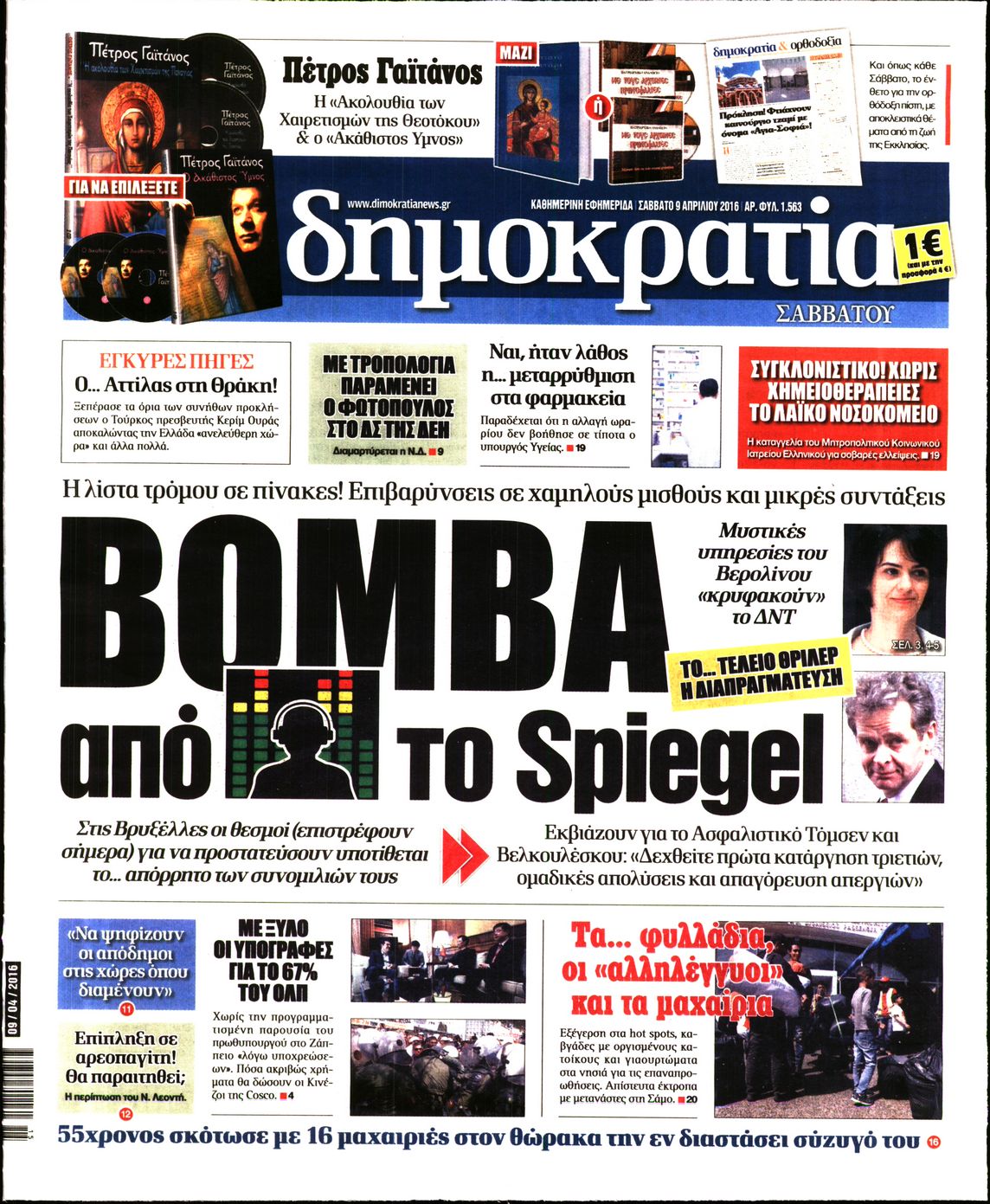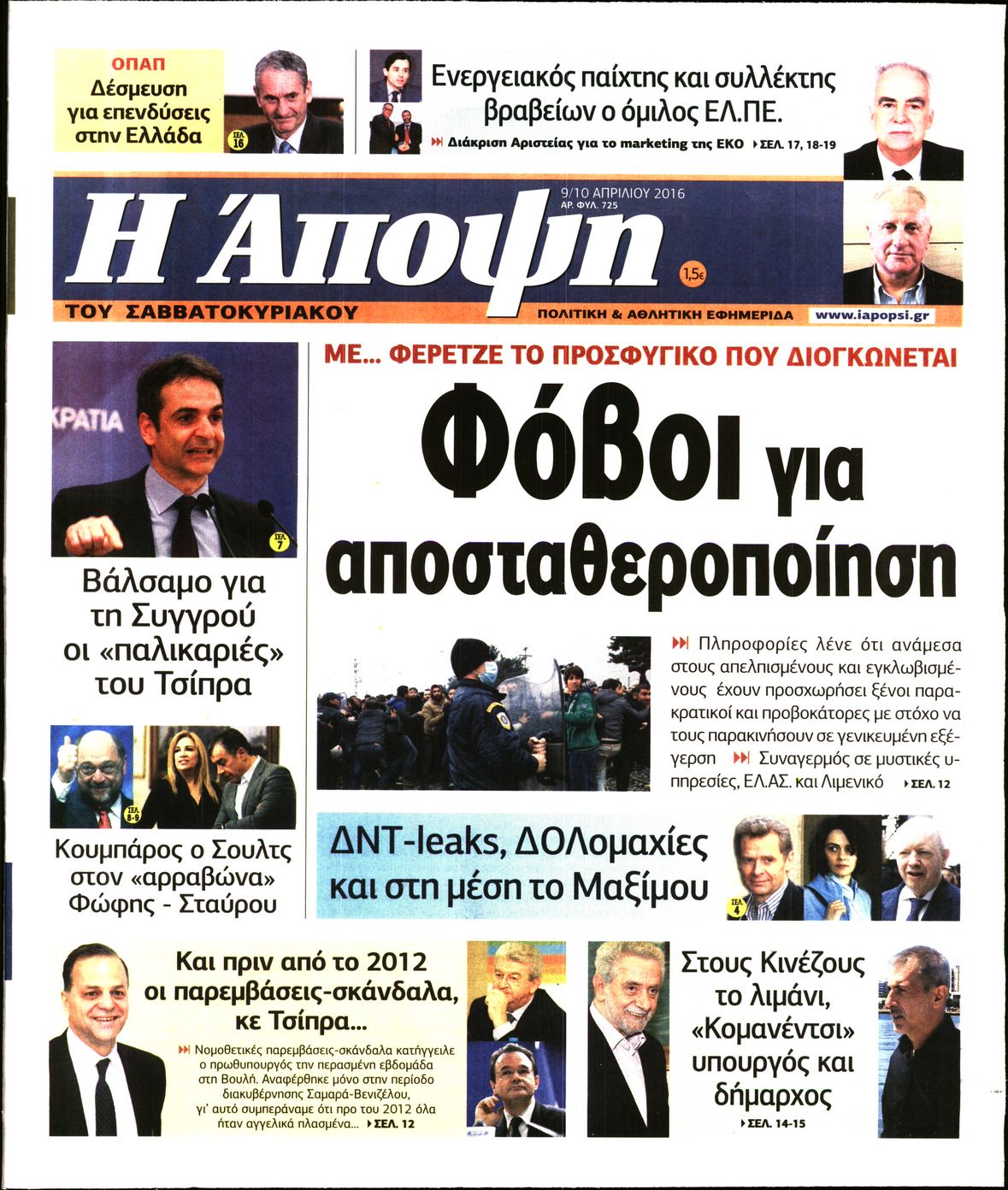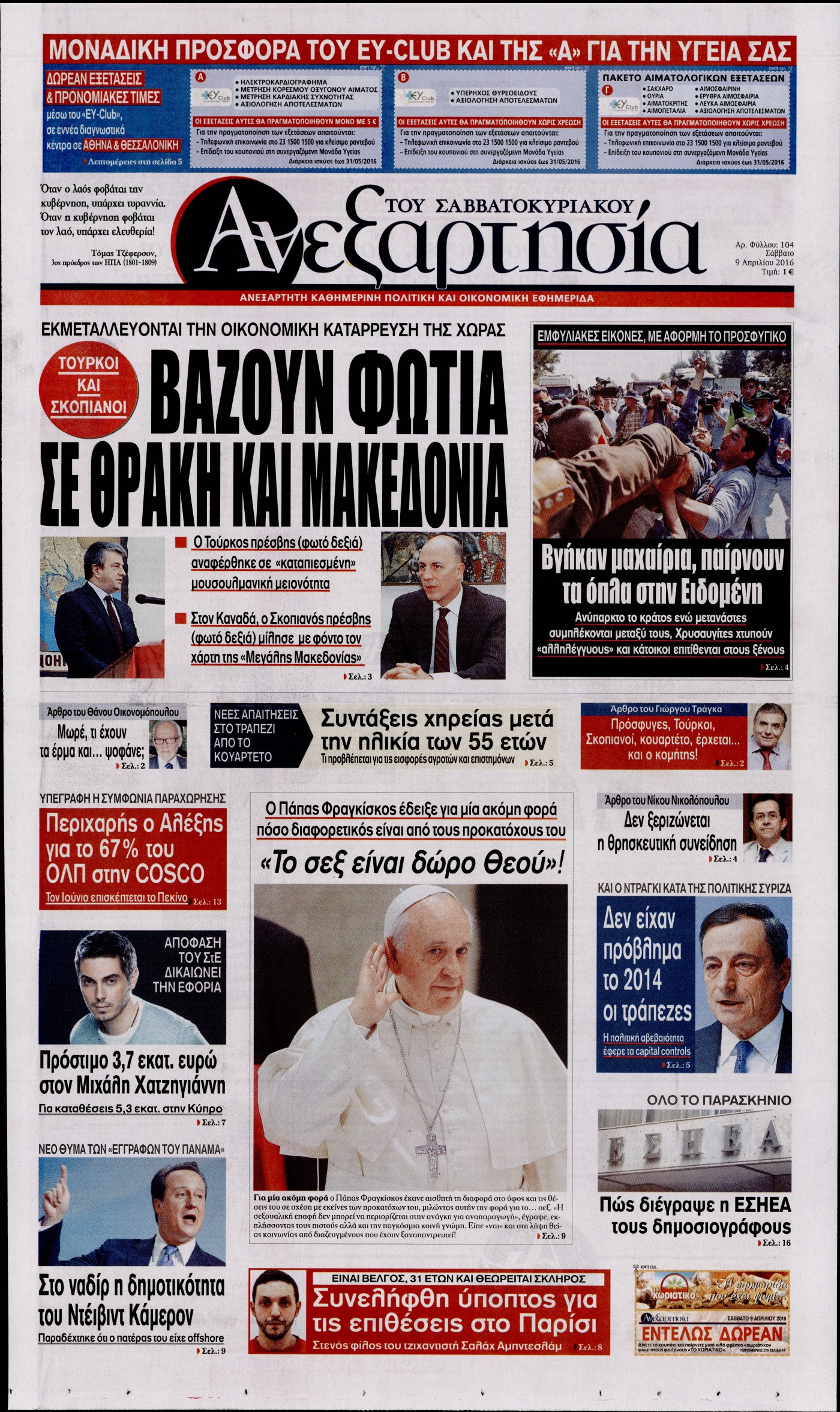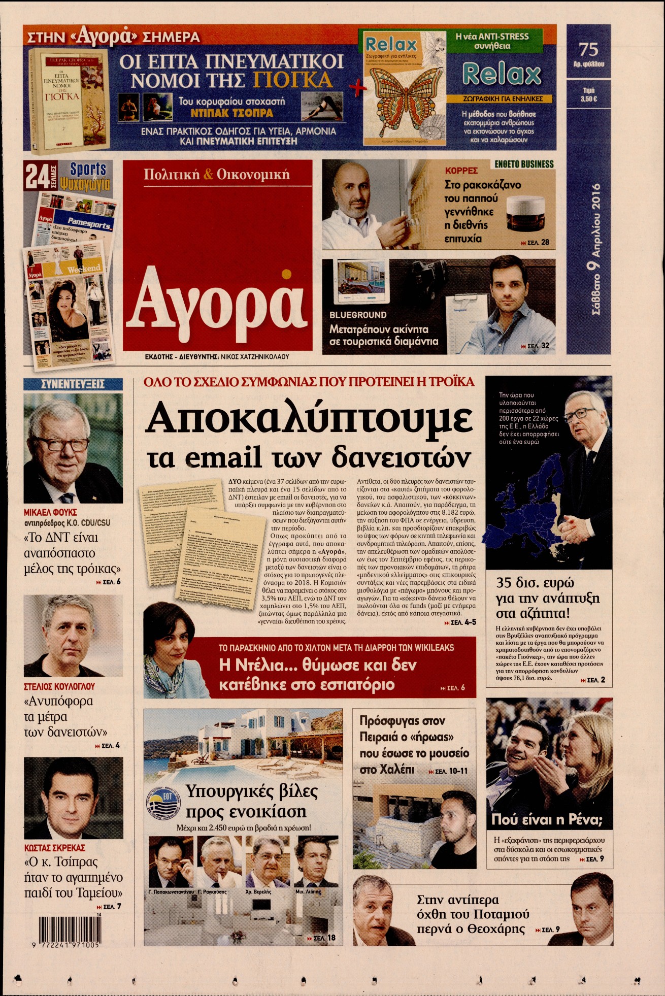 Οι πολιτικές εφημερίδες 9-4-2016 Enikos Newsroom 07:06, Σάββατο 09 Απριλίου 2016 Media Διαβάστε τα σημερινά πρωτοσέλιδα των πολιτικών εφημερίδων: ΠΟΛΙΤΙΚΕΣ ΕΦΗΜΕΡΙΔΕΣ ΠΡΩΤΟΣΕΛΙΔΑ Μοιράσου το: σχολίασε κι εσύ (0 σχόλια) Ακολουθήστε το enikos.gr στο Google News και μάθετε πρώτοι όλες τις ειδήσεις Δείτε όλες τις τελευταίες ειδήσεις από την Ελλάδα και τον Κόσμο στο enikos.gr Ειδήσεις Ροή Ειδήσεων 4 ώρες πριν Μεσόγειος: Η διαδρομή του ρωσικού τάνκερ «Qendil» και η στοχευμένη επίθεση της Ουκρανίας με drone – Ο Πούτιν προειδοποίησε για αντίποινα 58 λεπτά πριν Αγρότες: Έκλεισαν για μία ώρα την παρακαμπτήρια της Ιόνιας Οδού στη θέση Χαλίκι 3 ώρες πριν Εμπλοκή και αερομαχίες με οπλισμένα τουρκικά F-16 στο Αιγαίο 2 ώρες πριν Πούτιν: «Ναι, είμαι ερωτευμένος» – Βίντεο από τη σπάνια προσωπική παραδοχή του 1 ώρα πριν Ανδρέας Λυκουρέντζος: Υπέβαλε την παραίτησή του ο πρόεδρος του ΕΛΓΑ, αλλά δεν έγινε δεκτή – Όλο το παρασκήνιο 1 ώρα πριν Αριθμολογία: Οι άνθρωποι που έχουν γεννηθεί αυτές τις 4 ημερομηνίες, συχνά παρεξηγούνται – «Η καλοσύνη τους κρύβει τεράστια δύναμη» 3 ώρες πριν Μήπως έχετε χάσει τον εαυτό σας στη σχέση σας; 7 «αθόρυβες» υποχωρήσεις που μάλλον κάνατε, χωρίς να το συνειδητοποιήσετε 2 ώρες πριν Ξεχάστε το καθάρισμα το Σαββατοκύριακο: Ο «κανόνας των 20 λεπτών» που θα σας λύσει τα χέρια 5 ώρες πριν Κουίζ για την παλιά Αθήνα: Αναγνωρίζετε την περιοχή; Έχετε περάσει 100% από εκεί 3 λεπτά πριν Τραμπ: Δεν αποκλείει την πιθανότητα ενός πολέμου στη Βενεζουέλα – «Ο Μαδούρο ξέρει καλύτερα από τον καθένα τι ακριβώς θέλω» 5 λεπτά πριν Κηφισιά: Με πολλές απουσίες κόντρα στον Ολυμπιακό – «Last dance» για τον Τεττέη 12 λεπτά πριν Ύπνος: Μια κρυφή κατάσταση του εγκεφάλου πριν από τον ύπνο μπορεί να είναι το “κλειδί” για υψηλή ευφυΐα και δημιουργικότητα 18 λεπτά πριν ΕΕ: «Κάποια στιγμή θα χρησιμοποιήσουμε τα ρωσικά περιουσιακά στοιχεία» δήλωσε ο πρόεδρος του ΕΛΚ 22 λεπτά πριν Conference League: Καλύτερη επίθεση η ΑΕΚ στη διοργάνωση και 2η σε προσπάθειες στην εστία – Ξεχωρίζουν Πινέδα, Ελίασον και Ρότα ENIKOS NETWORK Το ΕΚΑΒ τιμήθηκε από την Ακαδημία Αθηνών για τα 40 χρόνια προσφοράς του Έχετε πραγματικά μεγάλη καρδιά; 10 χαρακτηριστικά όσων έχουν καλοσύνη Όμιλος ΔΕΗ: Νέα ορόσημα και ενισχυμένη διαφάνεια στην ετήσια Έκθεση Βιώσιμης Ανάπτυξης Έρχονται νέες προσλήψεις σε Δήμο – Όλες οι λεπτομέρειες Χαρτογραφώντας το «σημείο χωρίς επιστροφή»: Για πρώτη φορά αποκαλύπτεται με λεπτομέρεια το ακανθώδες όριο της ατμόσφαιρας τ... Η Google καταργεί τη λειτουργία «dark web report» – Πώς θα μπορούν οι χρήστες να διαγράφουν τα δεδομένα τους περισσότερα 20:37 , Παρασκευή 19 Δεκεμβρίου 2025 Don’t Forget The Lyrics: Η Έλλη Κοκκίνου υποδέχεται 4 παίκτες που θα κάνουν τα πάντα για να μη χάσουν ούτε… μισή λέξη από τους στίχους Το «Don’t Forget The Lyrics» επιστρέφει απόψε, Παρασκευή 19 Δεκεμβρίου, στις 21:00 με νέο επει... 19:31 , Παρασκευή 19 Δεκεμβρίου 2025 GNTM: Απόψε ο μεγάλος τελικός για τους 4 φιναλίστ Έπειτα από μήνες γεμάτους μόδα, δημιουργία και έντονες αναμετρήσεις, το GNTM 2025 κορυφώνεται,... 18:11 , Παρασκευή 19 Δεκεμβρίου 2025 Το σόι σου: Ο Άρης έρχεται στην Ελλάδα για τις γιορτές των Χριστουγέννων – Τι θα δούμε στο αποψινό εορταστικό επεισόδιο Ένα απολαυστικό, εορταστικό επεισόδιο της σειράς “Το σόι σου”, γεμάτο ευτράπελα αλ... 15:15 , Παρασκευή 19 Δεκεμβρίου 2025 Την Κυριακή με τη Realnews: Ό,τι και αν αγοράσεις, σκανάρεις και κερδίζεις! Την Κυριακή με τη Realnews: Ό,τι και αν αγοράσεις, σκανάρεις κα