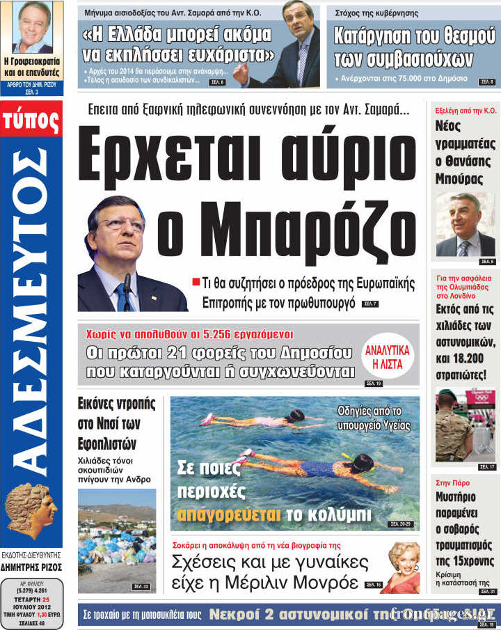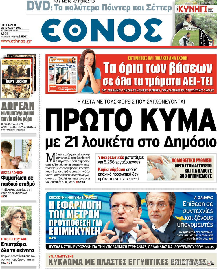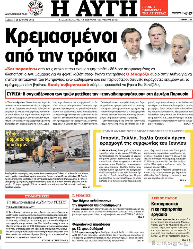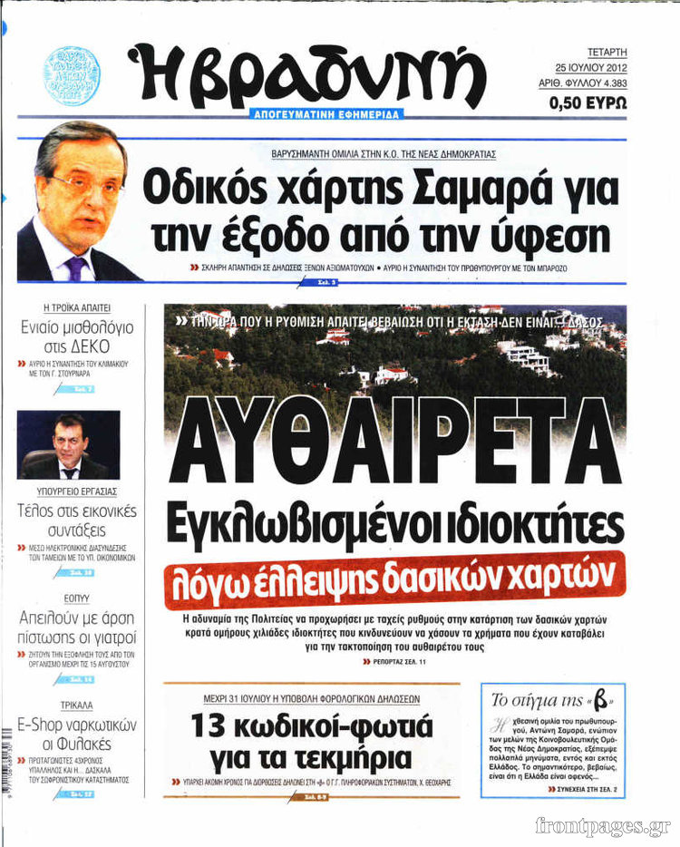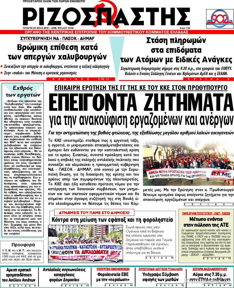 Τα σημερινά πρωτοσέλιδα των πολιτικών εφημερίδων.