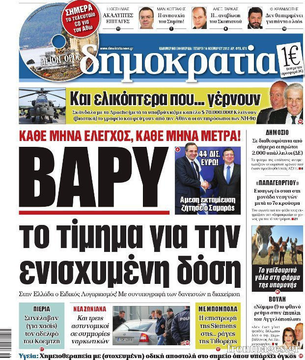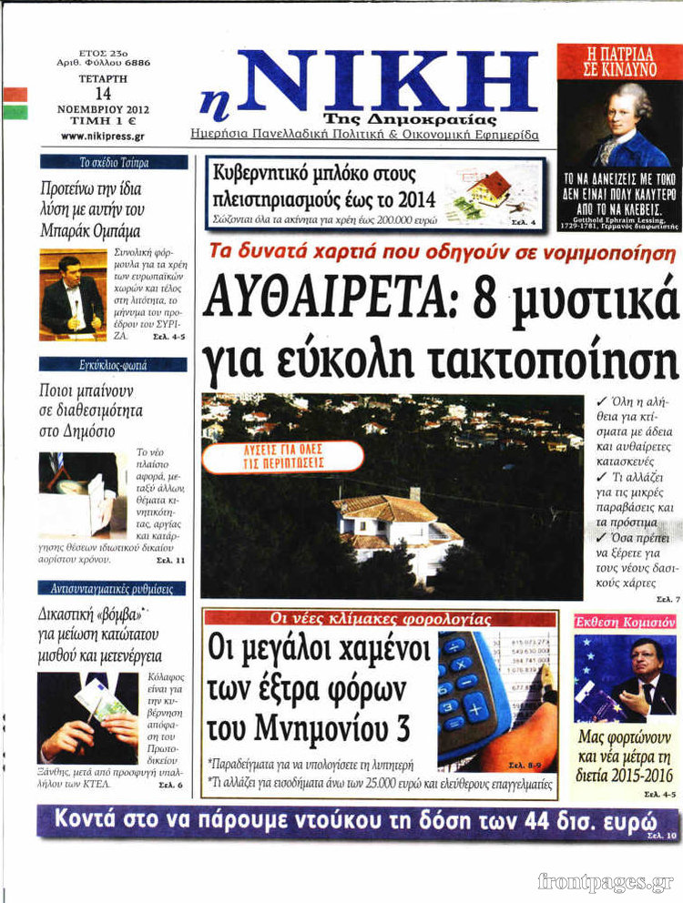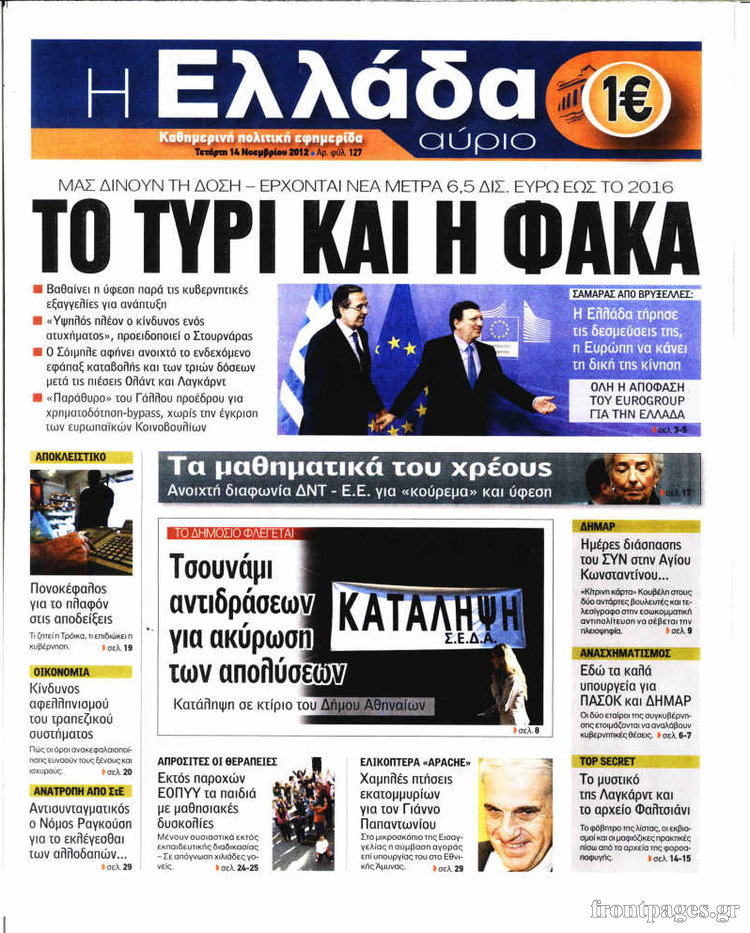Οι πολιτικές εφημερίδες Enikos Newsroom 08:51, Τετάρτη 14 Νοεμβρίου 2012 Media Τα σημερινά πρωτοσέλιδα των πολιτικών εφημερίδων. ΕΦΗΜΕΡΙΔΕΣ ΠΡΩΤΟΣΕΛΙΔΑ ΠΟΛΙΤΙΚΕΣ ΕΦΗΜΕΡΙΔΕΣ ΠΡΩΤΟΣΕΛΙΔΑ Μοιράσου το: σχολίασε κι εσύ (0 σχόλια) Ακολουθήστε το enikos.gr στο Google News και μάθετε πρώτοι όλες τις ειδήσεις Δείτε όλες τις τελευταίες ειδήσεις από την Ελλάδα και τον Κόσμο στο enikos.gr Ειδήσεις Ροή Ειδήσεων 1 ώρα πριν Ενοίκια: Ποια προγράμματα θα «τρέξουν» για να ανοίξουν τα κλειστά ακίνητα – Όλες οι νέες πληροφορίες 1 ώρα πριν Ίμια 30 χρόνια μετά: «Ο βοσκός πήγαινε και στις δύο βραχονησίδες έως το 2004 – Μετά του έκοψαν τα λεφτά» 50 λεπτά πριν Τραγωδία στη Ρουμανία: Σήμερα και αύριο το τελευταίο «αντίο» στους επτά οπαδούς του ΠΑΟΚ 10 λεπτά πριν Αλέξης Τσίπρας: Συγκροτεί ομάδα και κείμενο για τη σύγκλιση των προοδευτικών δυνάμεων 28 λεπτά πριν Ουκρανικό: Τα ανοιχτά μέτωπα Κιέβου – Μόσχας πριν από τις νέες συνομιλίες στο Αμπού Ντάμπι – Η τακτική «φθοράς» της Ρωσίας 3 ώρες πριν Οπτική ψευδαίσθηση: Μόνο όσοι έχουν τέλεια όραση μπορούν να εντοπίσουν τη 2η γάτα μέσα σε 13 δευτερόλεπτα 3 ώρες πριν Άνοια: Η τροφή που συνδέεται με μειωμένο κίνδυνο και καλύτερη υγεία του εγκεφάλου 6 ώρες πριν Τα ζώδια σήμερα, Παρασκευή 30 Ιανουαρίου 2026: Καρκίνοι, ακούστε το ένστικτό σας και όχι τον φόβο σας 41 λεπτά πριν Ναός μπορεί να αναδύθηκε από το νερό όπως περιγράφει η μυθολογία – Τα στοιχεία της νέας μελέτης 13 λεπτά πριν Στο real taste & style που κυκλοφορεί με τη Realnews 5 λεπτά πριν «Βιολάντα»: Σήμερα οι κηδείες της Βασιλικής Σκαμπαρδώνη και της Ελένης Κατσαρού 10 λεπτά πριν Αλέξης Τσίπρας: Συγκροτεί ομάδα και κείμενο για τη σύγκλιση των προοδευτικών δυνάμεων 11 λεπτά πριν Βασίλειος Τζίγκος: Πέθανε ο δήμαρχος Φιλιατών 17 λεπτά πριν Συνταγή για να μαγειρεύετε εύκολα και άψογα το λευκό ρύζι ENIKOS NETWORK Ο καρκίνος μπορεί να προστατεύσει από το Αλτσχάιμερ; Το παράδοξο συμπέρασμα μελέτης Το κόλπο για να μην πιάσουν μύκητες τα φυτά σας – Είναι εύκολο και αποτελεσματικό Ενοίκια: Ποια προγράμματα θα «τρέξουν» για να ανοίξουν τα κλειστά ακίνητα – Όλες οι νέες πληροφορίες Μυτιληναίος: Προειδοποιεί για τις επιπτώσεις από την άνοδο του ευρώ Google Search: Αναβαθμίζει τις δυνατότητες AI με Gemini 3 και Follow-up ερωτήσεις Κουίζ: Πόσο καλός είσαι στην ελληνική μυθολογία; Δοκίμασε τις γνώσεις σου και κάνε το 3 στα 3 περισσότερα 07:00 , Παρασκευή 30 Ιανουαρίου 2026 Την Κυριακή με τη Realnews: Ό,τι και αν αγοράσεις, σκανάρεις και κερδίζεις! Την Κυριακή με τη Realnews: Ό,τι και αν αγοράσεις, σκανάρεις και κερδίζεις! Με το PADU app, το... 05:48 , Παρασκευή 30 Ιανουαρίου 2026 Οι οικονομικές εφημερίδες 30/1/2026 Διαβάστε τα πρωτοσέλιδα από τις οικονομικές εφημερίδες, σήμερα 30/1/2026. 22:52 , Πέμπτη 29 Ιανουαρίου 2026 Ζελένσκι: Αναμένουμε από τη Ρωσία να σταματήσει τους βομβαρδισμούς για μία εβδομάδα, όπως συμφώνησε Ο Βολοντίμιρ Ζελένσκι δήλωσε απόψε ότι αναμένει την εφαρμογή της συμφωνίας, εκ μέρους της Ρωσί... 18:58 , Πέμπτη 29 Ιανουαρίου 2026 Το σόι σου: Ο Μιχάλης ένα βήμα πριν παρατήσει τον Χαμπέα, απόψε στις 21:00 Ένα ακόμη απολαυστικό επεισόδιο της σειράς “Το σόι σου” έρχεται απόψε στις 21:00 σ... ΤΕΛΕΥΤΑΙΕΣ ΕΙΔΗΣΕΙΣ 5 λεπτά πριν «Βιολάντα»: Σήμερα οι κηδείες της Βασιλικής... 10 λεπτά πριν Αλέξης Τσίπρας: Συγκροτεί ομάδα και κείμενο για τη... 11 λεπτά πριν Βασίλειος Τζίγκος: Πέθανε ο δήμαρχος Φιλιατών 17 λεπτά πριν Συνταγή για να μαγειρεύετε εύκολα και άψογα το λευκό... 23 λεπτά πριν «Βιολάντα»: Στο μικροσκόπ