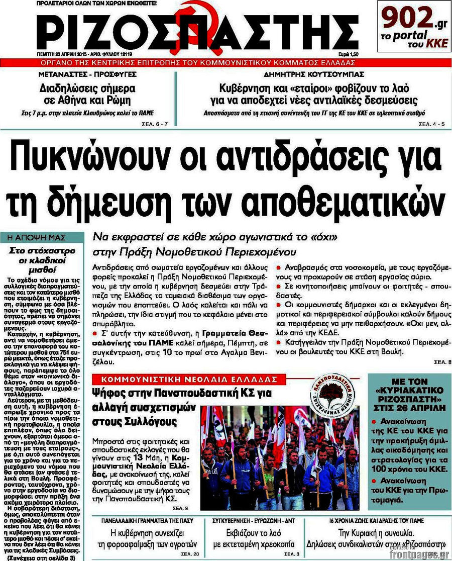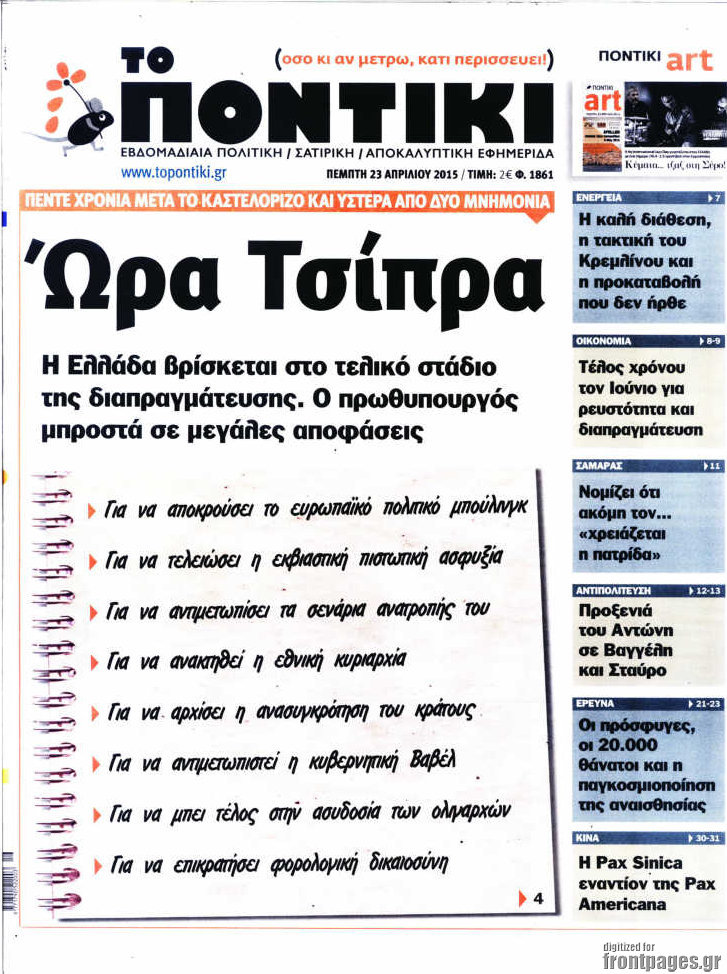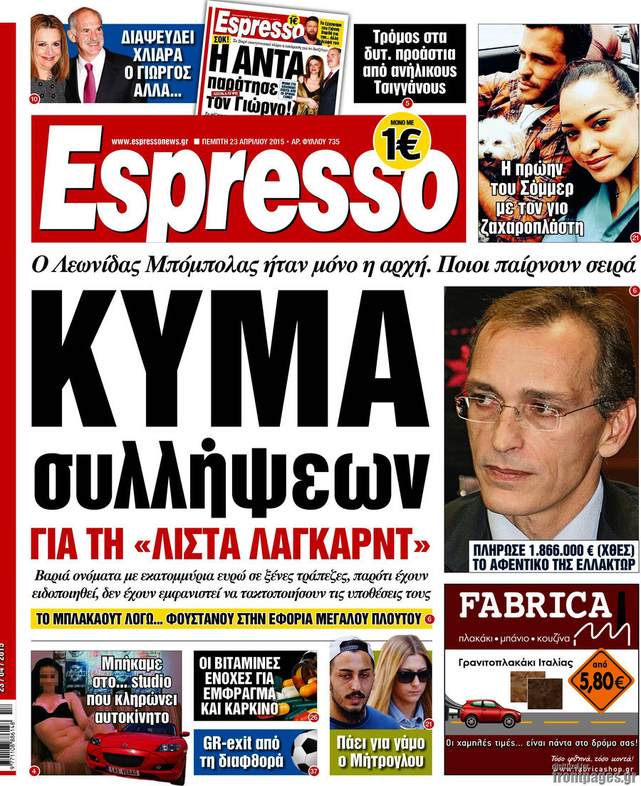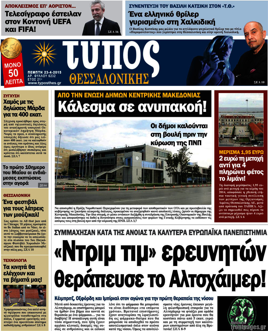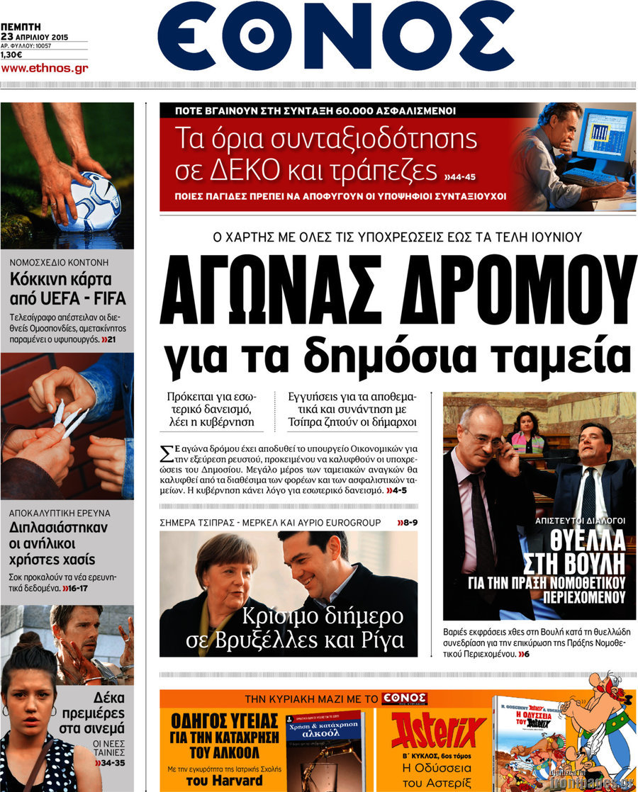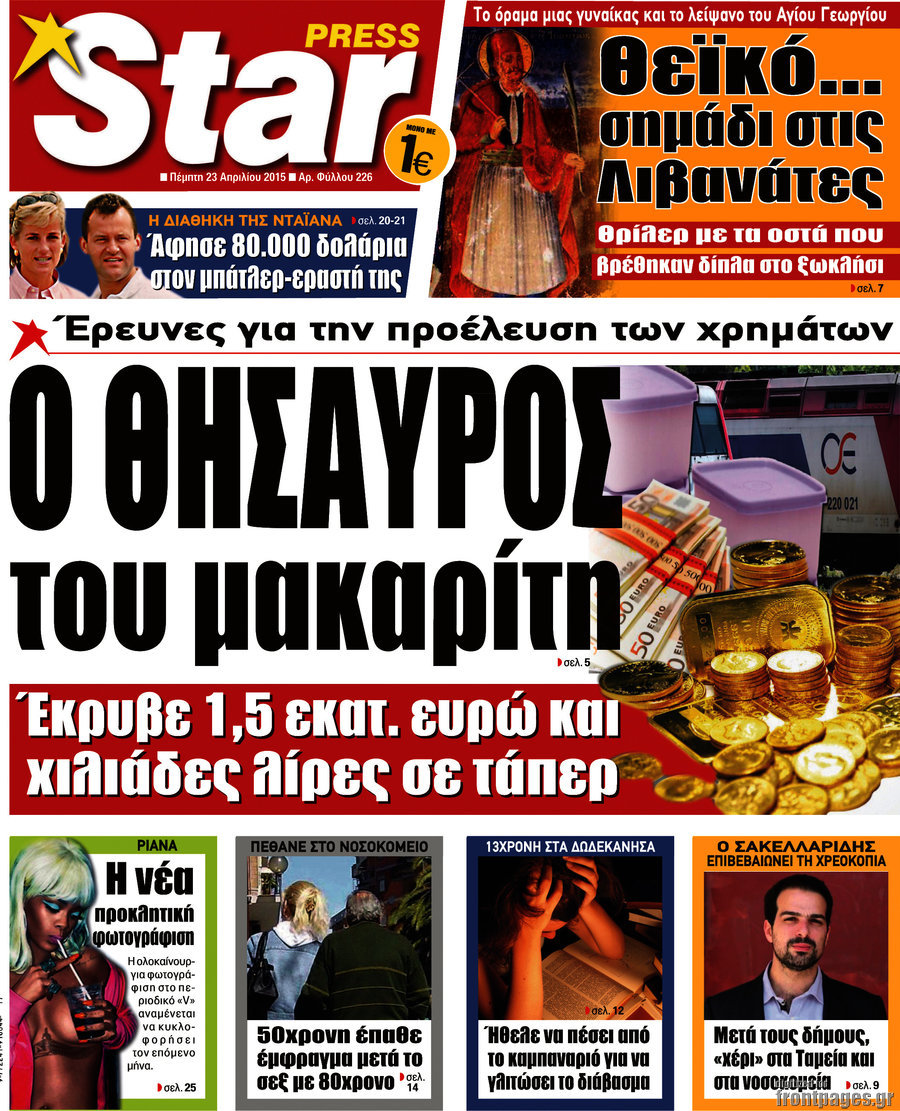 Οι πολιτικές εφημερίδες Enikos Newsroom 07:33, Πέμπτη 23 Απριλίου 2015 Media Διαβάστε τα σημερινά πρωτοσέλιδα των πολιτικών εφημερίδων: ΕΦΗΜΕΡΙΔΕΣ ΠΟΛΙΤΙΚΕΣ ΕΦΗΜΕΡΙΔΕΣ ΠΡΩΤΟΣΕΛΙΔΑ Μοιράσου το: σχολίασε κι εσύ (0 σχόλια) Ακολουθήστε το enikos.gr στο Google News και μάθετε πρώτοι όλες τις ειδήσεις Δείτε όλες τις τελευταίες ειδήσεις από την Ελλάδα και τον Κόσμο στο enikos.gr Ειδήσεις Ροή Ειδήσεων 2 ώρες πριν Μπλόκα: Οι αγρότες σηκώνουν τις μπάρες σε διόδια για τους εκδρομείς των Χριστουγέννων και μοιράζουν προϊόντα – Βίντεο 2 ώρες πριν Τσιάρας προς αγρότες: Τα μπλόκα και τα πείσματα δεν ωφελούν – Οι λύσεις περνούν μέσα από τον διάλογο 3 ώρες πριν Αρχεία Έπσταϊν: Οι συγκλονιστικές φωτογραφίες – Ο Μάικλ Τζάκσον, ο Μικ Τζάγκερ και ο Κέβιν Σπέισι ανάμεσα στους διάσημους που απεικονίζονται 59 λεπτά πριν Μαθητές διακινούσαν κοκαΐνη και χασίς σε σχολείο της Αττικής – 12 συλλήψεις 1 ώρα πριν Βέλγιο: Άγνωστοι έριξαν κόκκινη μπογιά στο προξενείο της Πολωνίας στις Βρυξέλλες 5 ώρες πριν Μία νέα «χρυσή» περίοδος αρχίζει για 3 ζώδια από σήμερα – «Μία αναπάντεχη ευκαιρία οδηγεί στην επιτυχία» 4 ώρες πριν Διαιτολόγος αποκαλύπτει 9 πρωινές συνήθειες που «λιώνουν» το κοιλιακό λίπος – «Υποστηρίζουν την υγιεινή απώλεια βάρους» 5 ώρες πριν Οι 7 φράσεις που δεν λένε ποτέ οι συναισθηματικά έξυπνοι άνθρωποι κατά τη διάρκεια ενός καβγά 7 ώρες πριν Enerwave: Το νέο «ρεύμα» στη λιανική ενέργειας που αλλάζει την εμπειρία του καταναλωτή 8 λεπτά πριν Μαρινάκης στον Realfm 97,8: Η κυβέρνηση σέβεται κάθε λογική διεκδίκηση των αγροτών, αλλά και το αίτημα των πολιτών να μην ταλαιπωρούνται 14 λεπτά πριν O Πάντερ MVP της 17ης αγωνιστικής στην Euroleague 23 λεπτά πριν Πέθανε η τραγουδίστρια Κλαούντια Ντελμέρ 30 λεπτά πριν Μία ανεκμετάλλευτη πηγή θα μπορούσε να προσφέρει ανεξάντλητη ενέργεια – Οι επιστήμονες ίσως γνωρίζουν πώς να την ξεκλειδώσουν 39 λεπτά πριν Θεσσαλονίκη: Ανήλικος που είχε εξαφανιστεί βρέθηκε στο σπίτι Τούρκων μετά από αστυνομική επιχείρηση ENIKOS NETWORK Η αποχή από την αναπαραγωγή παρατείνει τη ζωή στα ζώα, σύμφωνα με μελέτη – Τι ισχύει για τους ανθρώπους; Σημαντικές επαφές στις ΗΠΑ είχε ο υπουργός Υγείας Άδωνις Γεωργιάδης Ευλογιά αιγοπροβάτων: Παρατεταμένη επιζωοτία, αυστηρά μέτρα – Τι ισχύει για τον εμβολιασμό και την ανασύσταση του ζωικού κε... Τσιάρας προς αγρότες: Έχει ικανοποιηθεί το 74% των αιτημάτων – Τα μπλόκα και τα πείσματα δεν ωφελούν Χαρτογραφώντας το «σημείο χωρίς επιστροφή»: Για πρώτη φορά αποκαλύπτεται με λεπτομέρεια το ακανθώδες όριο της ατμόσφαιρας τ... Η Google καταργεί τη λειτουργία «dark web report» – Πώς θα μπορούν οι χρήστες να διαγράφουν τα δεδομένα τους περισσότερα 14:04 , Σάββατο 20 Δεκεμβρίου 2025 Η Realnews αυτής της Κυριακής (21/12/2025) Με τίτλο: «Ασπίδα προστασίας για την Ελλάδα» κυκλοφορεί, αυτήν την Κυριακή, η Realnews. Σημαντ... 12:53 , Σάββατο 20 Δεκεμβρίου 2025 Να μ’ αγαπάς: Το παρελθόν έρχεται στο φως – Καταιγιστικές εξελίξεις στα τελευταία επεισόδια του 2025 Ο Άγγελος αποκαλύπτεται, η Φωτεινή ανησυχεί για τον Λευτέρη και η Ζωή έρχεται αντιμέτωπη με το... 11:41 , Σάββατο 20 Δεκεμβρίου 2025 «Η αγάπη δεν χάνεται ποτέ»: Η μικρού μήκους ταινία κινουμένων σχεδίων που θέτει ερωτήματα για τη ζωή και τον θάνατο Ο θάνατος είναι ένα από τα πιο σκληρά θέματα που καλείται να διαχειριστεί κάποιος στη διάρκεια... 09:30 , Σάββατο 20 Δεκεμβρίου 2025 «Porto Leone: Στη γειτονιά με τα κόκκινα φανάρια» – Ο Χρόνης αποκαλύπτει στην Αλεξάνδρα το μυ