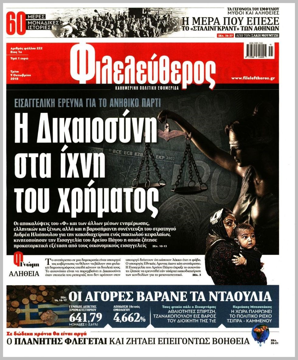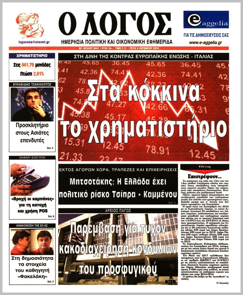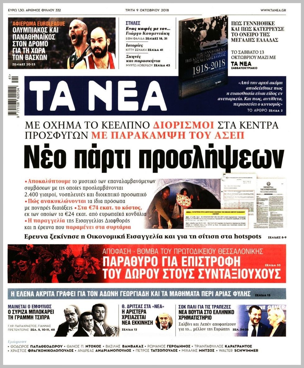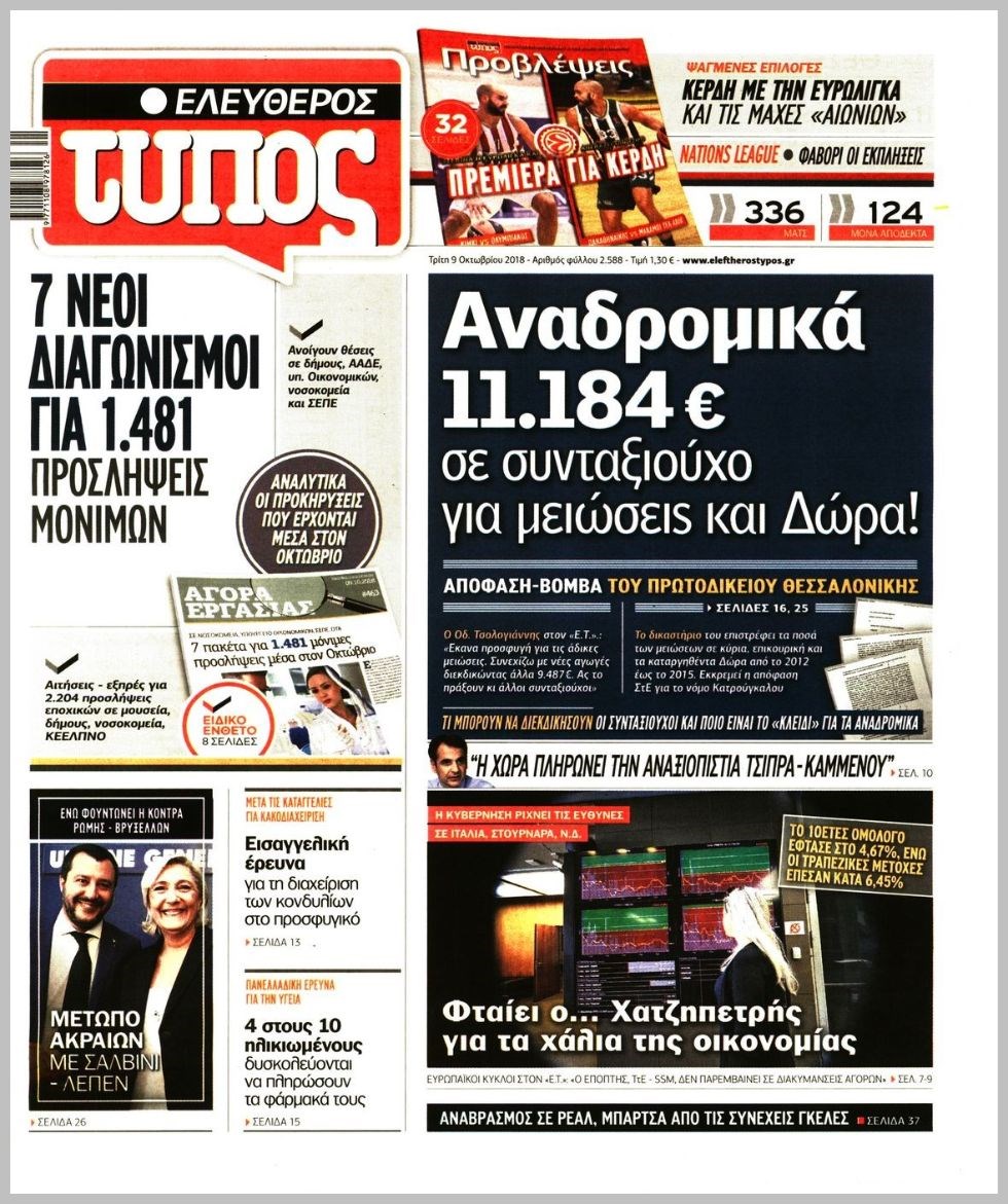 Οι πολιτικές εφημερίδες 9/10/2018 Enikos Newsroom 06:55, Τρίτη 09 Οκτωβρίου 2018 Media Διαβάστε τα πρωτοσέλιδα ΠΟΛΙΤΙΚΕΣ ΕΦΗΜΕΡΙΔΕΣ Μοιράσου το: σχολίασε κι εσύ (0 σχόλια) Ακολουθήστε το enikos.gr στο Google News και μάθετε πρώτοι όλες τις ειδήσεις Δείτε όλες τις τελευταίες ειδήσεις από την Ελλάδα και τον Κόσμο στο enikos.gr Ειδήσεις Ροή Ειδήσεων 1 ώρα πριν Γιορτές με μπλόκα για τους αγρότες: Ανοίγουν διόδια και μοιράζουν προϊόντα στους ταξιδιώτες 2 ώρες πριν Τα αρχεία του Έπσταϊν αποκαλύπτουν φωτογραφία του έκπτωτου πρίγκιπα Άντριου – Είναι ξαπλωμένος στην αγκαλιά 5 γυναικών 43 λεπτά πριν Νέες ταυτότητες: Μεγάλη αναμονή για ραντεβού στην Αττική – Τέλος τα ταξίδια εκτός Ελλάδος από τον Αύγουστο για όσους δεν έχουν αλλάξει 2 ώρες πριν Εξαφάνιση 33χρονου γιατρού στην Κρήτη: «Άναψα τα φώτα, τρόμαξε και άρχισε να τρέχει στα χωράφια» – Η τελευταία διαδρομή και η μαρτυρία «κλειδί» 3 ώρες πριν Ο «χάρτης» με τις αυξήσεις και τις φοροελαφρύνσεις του 2026 – Ποιοι και πόσα κερδίζουν 2 ώρες πριν Μία νέα «χρυσή» περίοδος αρχίζει για 3 ζώδια από σήμερα – «Μία αναπάντεχη ευκαιρία οδηγεί στην επιτυχία» 6 ώρες πριν Αυγά: Πόσα μπορείτε να τρώτε την ημέρα με ασφάλεια για μέγιστη πρόσληψη πρωτεΐνης 4 ώρες πριν Αρχαιολόγοι ανακάλυψαν σε χωράφι απεικόνιση 600 ετών ενός Αγίου – Τα στοιχεία που δείχνουν ότι μαρτύρησε 3 ώρες πριν Αγχώνεται για το χριστουγεννιάτικο δώρο που πήρε στην πλούσια σύντροφό του – «Φοβάμαι πως θα το βρει φθηνιάρικο, φοράει βραχιόλια Cartier» 4 λεπτά πριν Βούλα: Συνελήφθη 24χρονος με 69 κιλά ακατέργαστης κάνναβης – Κυκλοφορούσε με κλεμμένο αυτοκίνητο 12 λεπτά πριν «Η αγάπη δεν χάνεται ποτέ»: Η μικρού μήκους ταινία κινουμένων σχεδίων που θέτει ερωτήματα για τη ζωή και τον θάνατο 20 λεπτά πριν Στέφανος Παπαδόπουλος: Η συνέντευξη μετά τη μήνυση στον Γιώργο Μαζωνάκη – «Δεν θέλω να τα βρούμε εξωδικαστικά» 28 λεπτά πριν Τραγωδία στην άσφαλτο στα Χανιά: Νεκρός 37χρονος οδηγός ΙΧ – Τον βρήκαν ώρες μετά το τροχαίο 36 λεπτά πριν Τα Labubu «μετακομίζουν» στο Χόλιγουντ: Η Sony Pictures ετοιμάζει live-action ταινία με τον σκηνοθέτη του «Wonka» ENIKOS NETWORK Είστε μόνιμα απρόσεκτοι; 3 σημάδια που δείχνουν ότι μπορεί να είναι σύμπτωμα πάθησης Πόσα κιλά παίρνουμε πραγματικά τα Χριστούγεννα, σύμφωνα με την επιστήμη – Πώς να το αποτρέψουμε; e-ΕΦΚΑ και ΔΥΠΑ: Έρχονται νέες πληρωμές έως τις 24 Δεκεμβρίου – Ποιοι πάνε ταμείο Επίδομα παιδιού: Τι αλλάζει από το 2026 – Το όφελος από τις φορολογικές ελαφρύνσεις Χαρτογραφώντας το «σημείο χωρίς επιστροφή»: Για πρώτη φορά αποκαλύπτεται με λεπτομέρεια το ακανθώδες όριο της ατμόσφαιρας τ... Η Google καταργεί τη λειτουργία «dark web report» – Πώς θα μπορούν οι χρήστες να διαγράφουν τα δεδομένα τους περισσότερα 11:41 , Σάββατο 20 Δεκεμβρίου 2025 «Η αγάπη δεν χάνεται ποτέ»: Η μικρού μήκους ταινία κινουμένων σχεδίων που θέτει ερωτήματα για τη ζωή και τον θάνατο Ο θάνατος είναι ένα από τα πιο σκληρά θέματα που καλείται να διαχειριστεί κάποιος στη διάρκεια... 09:30 , Σάββατο 20 Δεκεμβρίου 2025 «Porto Leone: Στη γειτονιά με τα κόκκινα φανάρια» – Ο Χρόνης αποκαλύπτει στην Αλεξάνδρα το μυστικό για το παιδί της Λένας Η μεγάλη δραματική σειρά του Apha «Porto Leone: Στη γειτονιά με τα κόκκινα φανάρια» μας μεταφέ... 08:14 , Σάββατο 20 Δεκεμβρίου 2025 Τρομεροί γονείς: Η Μαρία Καβογιάννη εισβάλλει στο σπίτι της οικογένειας Στεφανίδη Όσα θα δούμε στο νέο διπλό επεισόδιο της σειράς «Τρομεροί γονείς», σήμερα Σάββατο 20 Δεκεμβρίο... 05:48 , Σάββατο 2