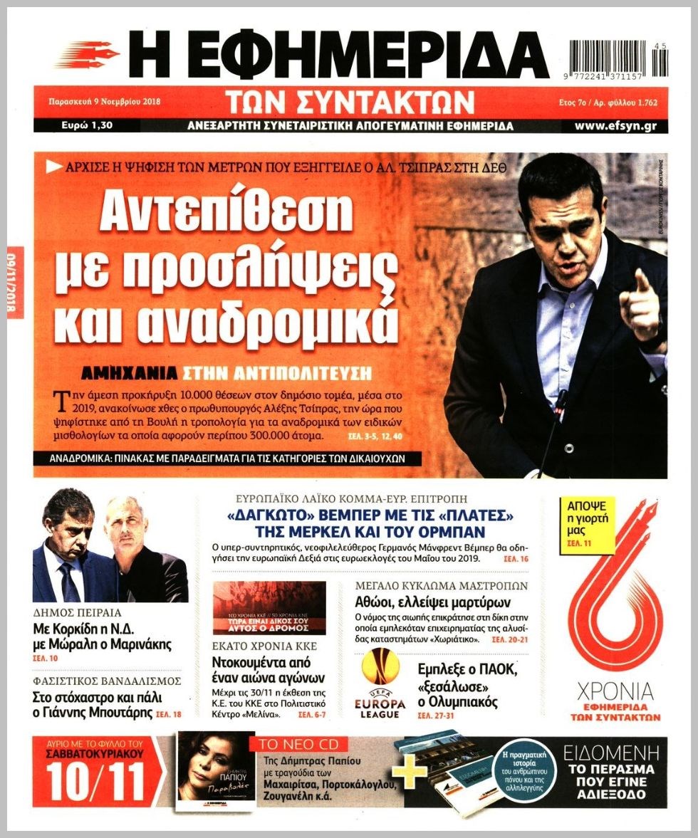 Οι πολιτικές εφημερίδες 9/11/18 Enikos Newsroom 06:23, Παρασκευή 09 Νοεμβρίου 2018 Media Διαβάστε τα πρωτοσέλιδα: ΠΟΛΙΤΙΚΕΣ ΕΦΗΜΕΡΙΔΕΣ ΠΡΩΤΟΣΕΛΙΔΑ Μοιράσου το: σχολίασε κι εσύ (0 σχόλια) Ακολουθήστε το enikos.gr στο Google News και μάθετε πρώτοι όλες τις ειδήσεις Δείτε όλες τις τελευταίες ειδήσεις από την Ελλάδα και τον Κόσμο στο enikos.gr Ειδήσεις Ροή Ειδήσεων 22 λεπτά πριν Ζελένσκι: Μόνο οι ΗΠΑ και ο Τραμπ μπορούν να πιέσουν τη Ρωσία να βάλει τέλος στον πόλεμο 41 λεπτά πριν Φοινικούντα: Προφυλακιστέος ο 30χρονος για συνέργεια στη διπλή δολοφονία – Και άλλα πρόσωπα στο «μικροσκόπιο» 2 ώρες πριν Κυριάκος Μητσοτάκης: Στην Ιερουσαλήμ την Τρίτη ο Πρωθυπουργός για την τριμερή Ελλάδας, Κύπρου, Ισραήλ – Θα συναντηθεί και με τον Αμπάς 5 ώρες πριν Πώς δρούσε το κύκλωμα που διακινούσε ναρκωτικά σε σχολεία – Υπέβαλαν σε βασανιστήρια όσους δεν τηρούσαν τους «κανόνες πειθαρχίας» 1 ώρα πριν Πάπας Λέων: Όταν έχει αϋπνίες επενδύει παραγωγικά τον χρόνο του – Ποιο παιχνίδι παίζει στο κινητό 32 λεπτά πριν Αριθμολογία: Ο αριθμός του φύλακα αγγέλου σας, με βάση τον μήνα γέννησής σας – «Έτσι σας στέλνει σημάδια το σύμπαν» 2 ώρες πριν Πώς να απαλλαγείτε από τη μυρωδιά του τηγανητού φαγητού: Το μυστικό βρίσκεται στην κουζίνα σας 3 ώρες πριν Μήπως οι γιορτές σας δεν είναι τόσο τέλειες; 7 χριστουγεννιάτικες συνήθειες που μαρτυρούν ότι μια οικογένεια είναι δυσλειτουργική 13 ώρες πριν Enerwave: Το νέο «ρεύμα» στη λιανική ενέργειας που αλλάζει την εμπειρία του καταναλωτή 15 λεπτά πριν Εριέττα Μανούρη: «Έχω νιώσει ανταγωνισμό από άντρες, μύθος αυτό που λένε για τις γυναίκες» 22 λεπτά πριν Ζελένσκι: Μόνο οι ΗΠΑ και ο Τραμπ μπορούν να πιέσουν τη Ρωσία να βάλει τέλος στον πόλεμο 32 λεπτά πριν Αριθμολογία: Ο αριθμός του φύλακα αγγέλου σας, με βάση τον μήνα γέννησής σας – «Έτσι σας στέλνει σημάδια το σύμπαν» 41 λεπτά πριν Φοινικούντα: Προφυλακιστέος ο 30χρονος για συνέργεια στη διπλή δολοφονία – Και άλλα πρόσωπα στο «μικροσκόπιο» 52 λεπτά πριν Super League: Ο Σιαμπάνης «κατέβασε ρολά» και ο Βόλος νίκησε 1-0 τον Παναιτωλικό ENIKOS NETWORK Οι γυναίκες αποκαλύπτουν το πιο ελκυστικό πράγμα που μπορεί να κάνει ένας άνδρας Ομορφιά και αντιγήρανση: Ειδικοί μιλούν για συσκευές περιποίησης του δέρματος Εφορία: 7 αλλαγές σε δηλώσεις και ελέγχους ακινήτων – Όλα όσα πρέπει να γνωρίζετε Πορτοκαλί τιμολόγια ρεύματος: Τα σημεία που πρέπει να προσέξουν οι καταναλωτές – Πότε θα εφαρμοστούν Χαρτογραφώντας το «σημείο χωρίς επιστροφή»: Για πρώτη φορά αποκαλύπτεται με λεπτομέρεια το ακανθώδες όριο της ατμόσφαιρας τ... Η Google καταργεί τη λειτουργία «dark web report» – Πώς θα μπορούν οι χρήστες να διαγράφουν τα δεδομένα τους περισσότερα 20:30 , Σάββατο 20 Δεκεμβρίου 2025 Αυτή την Κυριακή με τη Realnews: Instyle, μαζί Drive και Realnews Geopolitics Αυτή την Κυριακή με τη Realnews: Instyle, μαζί Drive και Realnews Geopolitics Instyle Η Άννα Ρ... 20:28 , Σάββατο 20 Δεκεμβρίου 2025 Ο ΑΝΤ1 γεμίζει τις γιορτές με μουσική – Ποιους καλλιτέχνες θα απολαύσουμε Φέτος στον ΑΝΤ1 γιορτάζουμε τις νύχτες μας παρέα με αγαπημένους καλλιτέχνες και μεγάλες μουσι... 18:19 , Σάββατο 20 Δεκεμβρίου 2025 HOTΕΛ ΕΛVIRA: Η Ελβίρα μαθαίνει πως ο Χάρι μένει κρυφά στο ξενοδοχείο του Παντελή Συνεχίζονται οι εκλογές για πρόεδρο, στο νέο επεισόδιο της κωμικής σειράς του MEGA, HOTΕΛ ΕΛVI... 14:04 , Σάββατο 20 Δεκεμβρίου 2025 Η Realnews αυτής της Κυριακής (21/12/2025) Με τίτλο: «Ασπίδα προστασίας για την Ελλάδα» κυκλοφορεί, αυτήν την Κυριακή, η Realnews. Σημαντ... ΤΕΛΕΥΤΑΙΕΣ ΕΙΔΗΣΕΙΣ 15