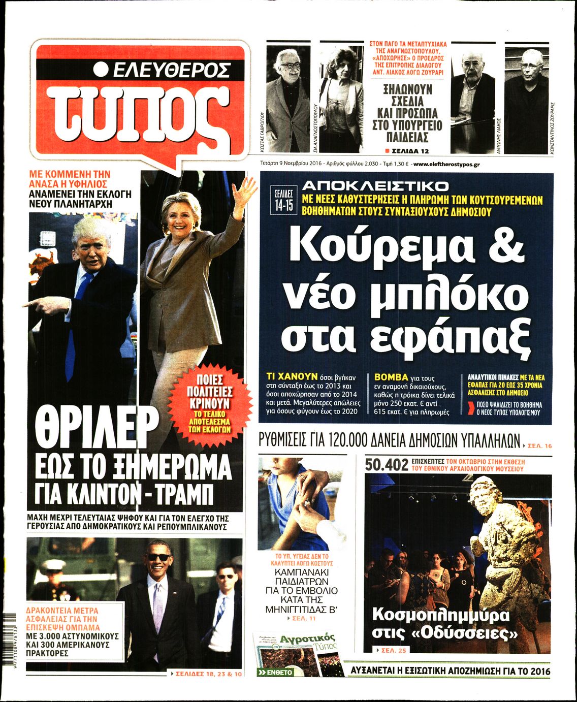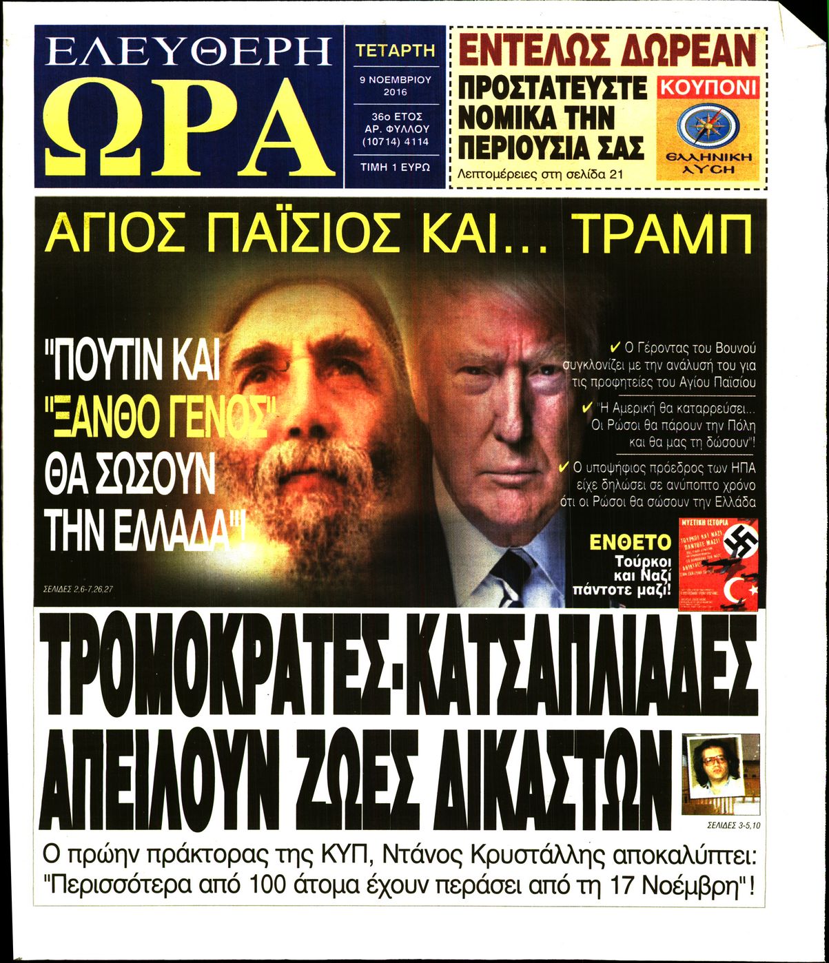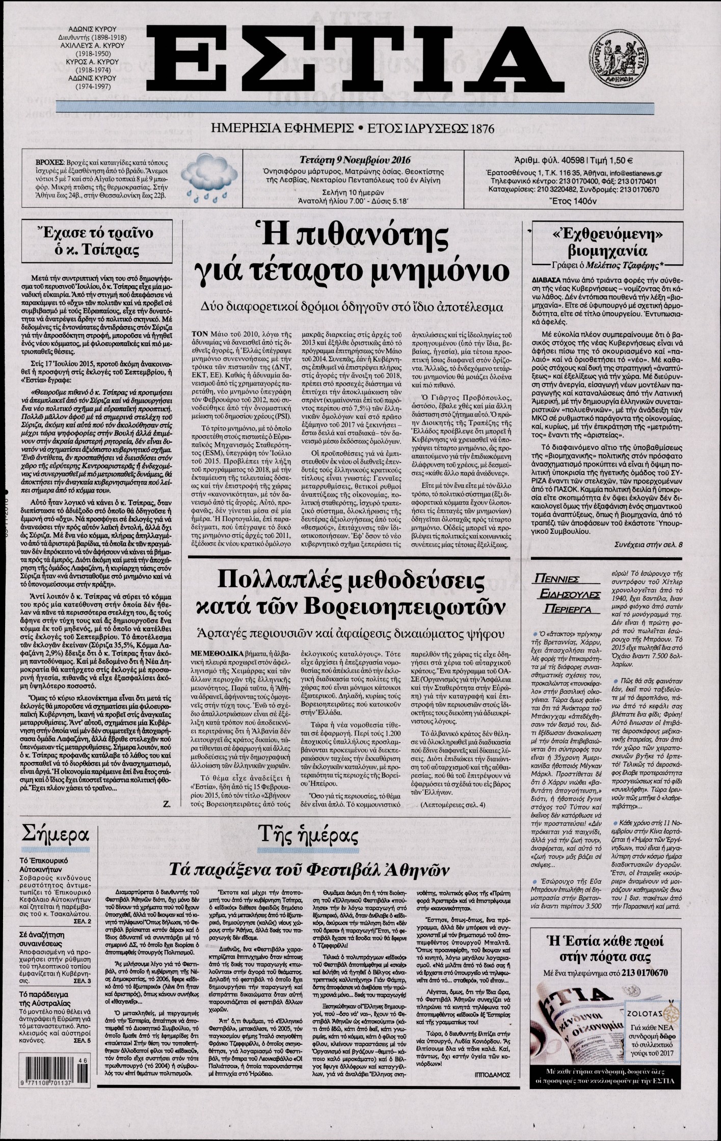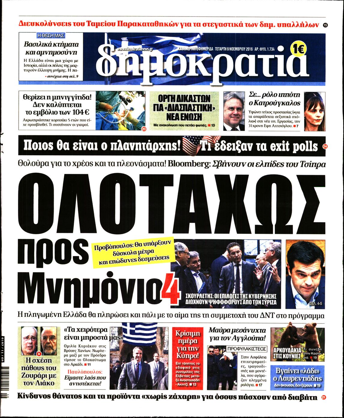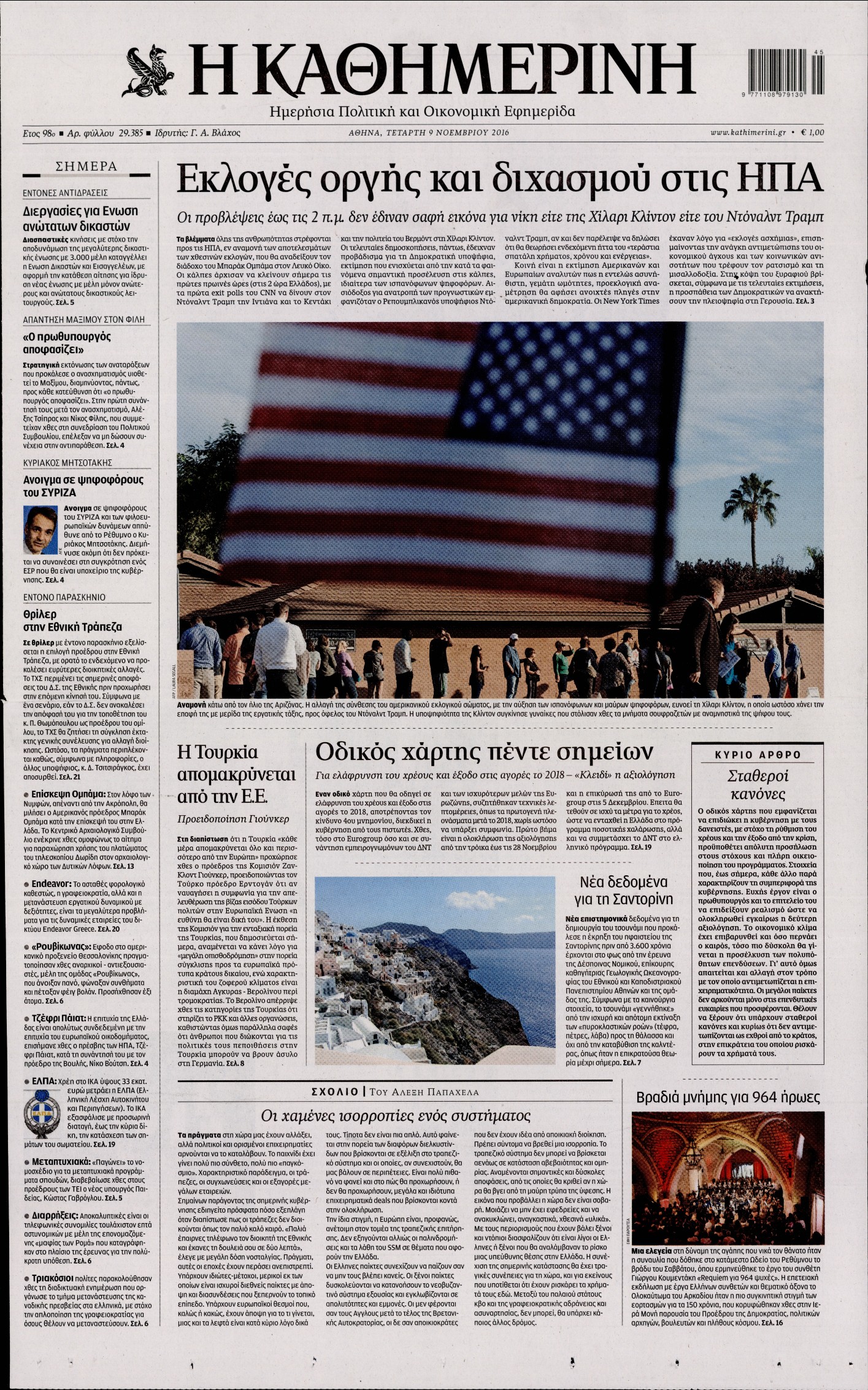 Οι πολιτικές εφημερίδες 9/11/2016 Enikos Newsroom 05:06, Τετάρτη 09 Νοεμβρίου 2016 Media Διαβάστε τα σημερινά πρωτοσέλιδα των πολιτικών εφημερίδων: ΠΟΛΙΤΙΚΕΣ ΕΦΗΜΕΡΙΔΕΣ ΠΡΩΤΟΣΕΛΙΔΑ Μοιράσου το: σχολίασε κι εσύ (0 σχόλια) Ακολουθήστε το enikos.gr στο Google News και μάθετε πρώτοι όλες τις ειδήσεις Δείτε όλες τις τελευταίες ειδήσεις από την Ελλάδα και τον Κόσμο στο enikos.gr Ειδήσεις Ροή Ειδήσεων 1 ώρα πριν Γιορτές με μπλόκα για τους αγρότες: Ανοίγουν διόδια και μοιράζουν προϊόντα στους ταξιδιώτες 2 ώρες πριν Τα αρχεία του Έπσταϊν αποκαλύπτουν φωτογραφία του έκπτωτου πρίγκιπα Άντριου – Είναι ξαπλωμένος στην αγκαλιά 5 γυναικών 48 λεπτά πριν Νέες ταυτότητες: Μεγάλη αναμονή για ραντεβού στην Αττική – Τέλος τα ταξίδια εκτός Ελλάδος από τον Αύγουστο για όσους δεν έχουν αλλάξει 2 ώρες πριν Εξαφάνιση 33χρονου γιατρού στην Κρήτη: «Άναψα τα φώτα, τρόμαξε και άρχισε να τρέχει στα χωράφια» – Η τελευταία διαδρομή και η μαρτυρία «κλειδί» 3 ώρες πριν Ο «χάρτης» με τις αυξήσεις και τις φοροελαφρύνσεις του 2026 – Ποιοι και πόσα κερδίζουν 2 ώρες πριν Μία νέα «χρυσή» περίοδος αρχίζει για 3 ζώδια από σήμερα – «Μία αναπάντεχη ευκαιρία οδηγεί στην επιτυχία» 6 ώρες πριν Αυγά: Πόσα μπορείτε να τρώτε την ημέρα με ασφάλεια για μέγιστη πρόσληψη πρωτεΐνης 4 ώρες πριν Αρχαιολόγοι ανακάλυψαν σε χωράφι απεικόνιση 600 ετών ενός Αγίου – Τα στοιχεία που δείχνουν ότι μαρτύρησε 3 ώρες πριν Αγχώνεται για το χριστουγεννιάτικο δώρο που πήρε στην πλούσια σύντροφό του – «Φοβάμαι πως θα το βρει φθηνιάρικο, φοράει βραχιόλια Cartier» 9 λεπτά πριν Βούλα: Συνελήφθη 24χρονος με 69 κιλά ακατέργαστης κάνναβης – Κυκλοφορούσε με κλεμμένο αυτοκίνητο 17 λεπτά πριν «Η αγάπη δεν χάνεται ποτέ»: Η μικρού μήκους ταινία κινουμένων σχεδίων που θέτει ερωτήματα για τη ζωή και τον θάνατο 25 λεπτά πριν Στέφανος Παπαδόπουλος: Η συνέντευξη μετά τη μήνυση στον Γιώργο Μαζωνάκη – «Δεν θέλω να τα βρούμε εξωδικαστικά» 32 λεπτά πριν Τραγωδία στην άσφαλτο στα Χανιά: Νεκρός 37χρονος οδηγός ΙΧ – Τον βρήκαν ώρες μετά το τροχαίο 40 λεπτά πριν Τα Labubu «μετακομίζουν» στο Χόλιγουντ: Η Sony Pictures ετοιμάζει live-action ταινία με τον σκηνοθέτη του «Wonka» ENIKOS NETWORK Είστε μόνιμα απρόσεκτοι; 3 σημάδια που δείχνουν ότι μπορεί να είναι σύμπτωμα πάθησης Πόσα κιλά παίρνουμε πραγματικά τα Χριστούγεννα, σύμφωνα με την επιστήμη – Πώς να το αποτρέψουμε; e-ΕΦΚΑ και ΔΥΠΑ: Έρχονται νέες πληρωμές έως τις 24 Δεκεμβρίου – Ποιοι πάνε ταμείο Επίδομα παιδιού: Τι αλλάζει από το 2026 – Το όφελος από τις φορολογικές ελαφρύνσεις Χαρτογραφώντας το «σημείο χωρίς επιστροφή»: Για πρώτη φορά αποκαλύπτεται με λεπτομέρεια το ακανθώδες όριο της ατμόσφαιρας τ... Η Google καταργεί τη λειτουργία «dark web report» – Πώς θα μπορούν οι χρήστες να διαγράφουν τα δεδομένα τους περισσότερα 11:41 , Σάββατο 20 Δεκεμβρίου 2025 «Η αγάπη δεν χάνεται ποτέ»: Η μικρού μήκους ταινία κινουμένων σχεδίων που θέτει ερωτήματα για τη ζωή και τον θάνατο Ο θάνατος είναι ένα από τα πιο σκληρά θέματα που καλείται να διαχειριστεί κάποιος στη διάρκεια... 09:30 , Σάββατο 20 Δεκεμβρίου 2025 «Porto Leone: Στη γειτονιά με τα κόκκινα φανάρια» – Ο Χρόνης αποκαλύπτει στην Αλεξάνδρα το μυστικό για το παιδί της Λένας Η μεγάλη δραματική σειρά του Apha «Porto Leone: Στη γειτονιά με τα κόκκινα φανάρια» μας μεταφέ... 08:14 , Σάββατο 20 Δεκεμβρίου 2025 Τρομεροί γονείς: Η Μαρία Καβογιάννη εισβάλλει στο σπίτι της οικογένειας Στεφανίδη Όσα θα δούμε στο νέο διπλό επεισόδιο της σειράς «Τρομεροί 