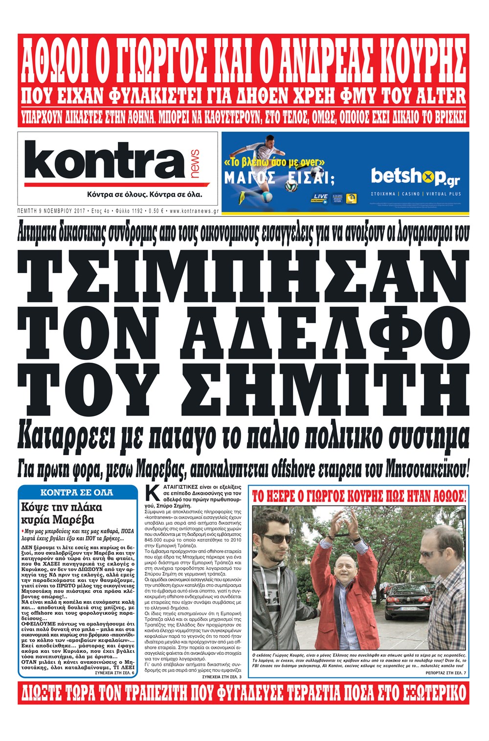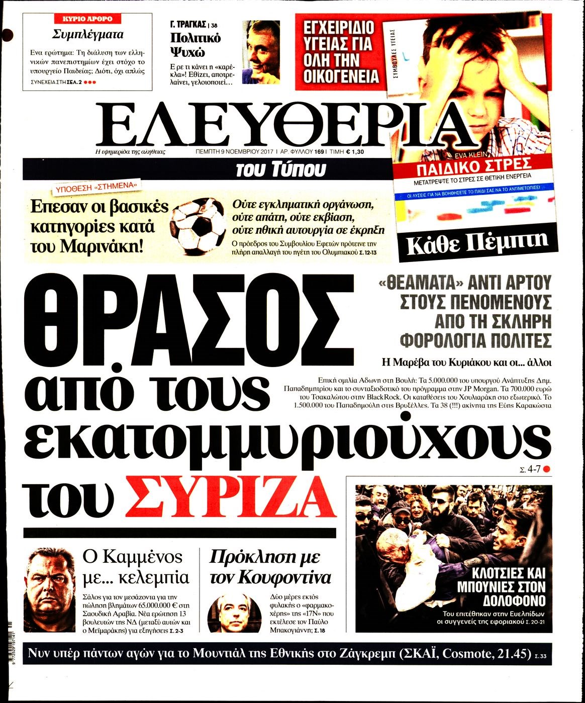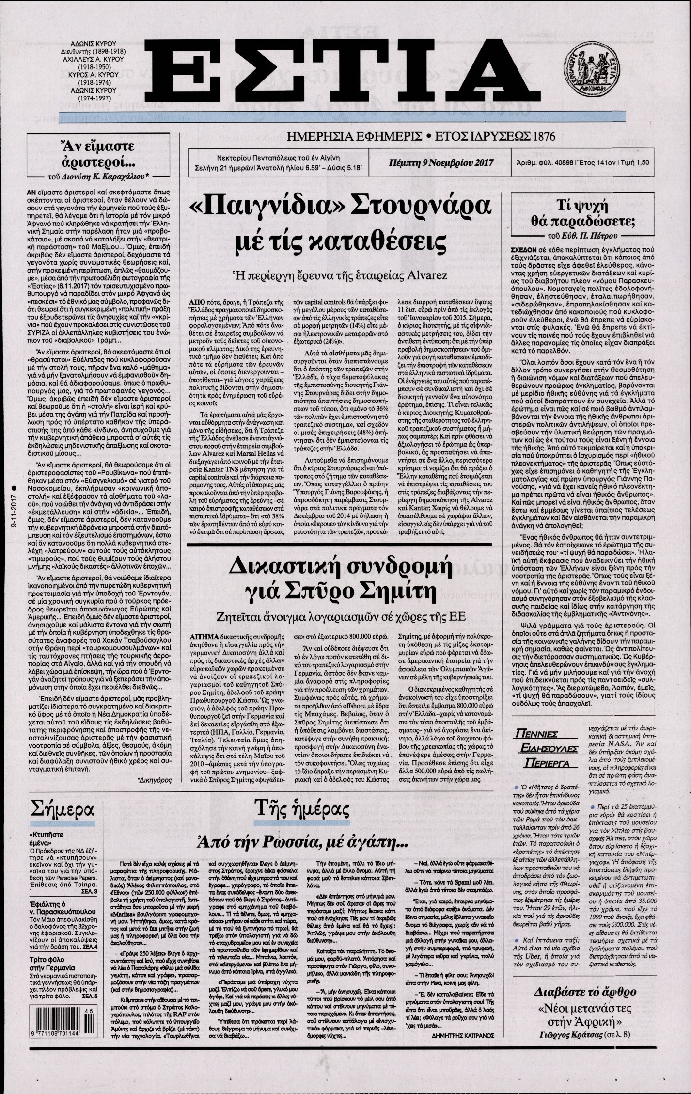 Οι πολιτικές εφημερίδες 9/11/2017 Enikos Newsroom 07:56, Πέμπτη 09 Νοεμβρίου 2017 Media Διαβάστε τα σημερινά πρωτοσέλιδα των πολιτικών εφημερίδων: ΠΟΛΙΤΙΚΕΣ ΕΦΗΜΕΡΙΔΕΣ ΠΡΩΤΟΣΕΛΙΔΑ Μοιράσου το: σχολίασε κι εσύ (0 σχόλια) Ακολουθήστε το enikos.gr στο Google News και μάθετε πρώτοι όλες τις ειδήσεις Δείτε όλες τις τελευταίες ειδήσεις από την Ελλάδα και τον Κόσμο στο enikos.gr Ειδήσεις Ροή Ειδήσεων 28 λεπτά πριν Τραμπ: Δεν αποκλείει την πιθανότητα ενός πολέμου στη Βενεζουέλα – «Ο Μαδούρο ξέρει καλύτερα από τον καθένα τι ακριβώς θέλω» 22 λεπτά πριν Ουκρανία: Η άνευ προηγουμένου επίθεση σε ρωσικό τάνκερ στη Μεσόγειο και το μήνυμα προς στον Πούτιν – Το «μακρύ χέρι» του Κιέβου 3 ώρες πριν Εμπλοκή και αερομαχίες με οπλισμένα τουρκικά F-16 στο Αιγαίο 3 ώρες πριν Πούτιν: «Ναι, είμαι ερωτευμένος» – Βίντεο από τη σπάνια προσωπική παραδοχή του 1 ώρα πριν Ανδρέας Λυκουρέντζος: Υπέβαλε την παραίτησή του ο πρόεδρος του ΕΛΓΑ, αλλά δεν έγινε δεκτή – Όλο το παρασκήνιο 2 ώρες πριν Αριθμολογία: Οι άνθρωποι που έχουν γεννηθεί αυτές τις 4 ημερομηνίες, συχνά παρεξηγούνται – «Η καλοσύνη τους κρύβει τεράστια δύναμη» 4 ώρες πριν Μήπως έχετε χάσει τον εαυτό σας στη σχέση σας; 7 «αθόρυβες» υποχωρήσεις που μάλλον κάνατε, χωρίς να το συνειδητοποιήσετε 3 ώρες πριν Ξεχάστε το καθάρισμα το Σαββατοκύριακο: Ο «κανόνας των 20 λεπτών» που θα σας λύσει τα χέρια 37 λεπτά πριν Ύπνος: Μια κρυφή κατάσταση του εγκεφάλου πριν από τον ύπνο μπορεί να είναι το “κλειδί” για υψηλή ευφυΐα και δημιουργικότητα 11 λεπτά πριν Χάρι και Μέγκαν: Η σπάνια οικογενειακή φωτογραφία με τον Άρτσι και τη Λίλιμπετ – Τι σχεδιάζουν για τα Χριστούγεννα 17 λεπτά πριν Βασίλης Καρράς: «Είναι πάντα δίπλα μου, δεν έφυγε…», λέει ο αδελφός του 22 λεπτά πριν Ουκρανία: Η άνευ προηγουμένου επίθεση σε ρωσικό τάνκερ στη Μεσόγειο και το μήνυμα προς στον Πούτιν – Το «μακρύ χέρι» του Κιέβου 28 λεπτά πριν Τραμπ: Δεν αποκλείει την πιθανότητα ενός πολέμου στη Βενεζουέλα – «Ο Μαδούρο ξέρει καλύτερα από τον καθένα τι ακριβώς θέλω» 29 λεπτά πριν Κηφισιά: Με πολλές απουσίες κόντρα στον Ολυμπιακό – «Last dance» για τον Τεττέη ENIKOS NETWORK Το ΕΚΑΒ τιμήθηκε από την Ακαδημία Αθηνών για τα 40 χρόνια προσφοράς του Έχετε πραγματικά μεγάλη καρδιά; 10 χαρακτηριστικά όσων έχουν καλοσύνη ΑΑΔΕ: Νέες αναβαθμίσεις στο Ψηφιακό Πελατολόγιο και την εφαρμογή myDATAapp – Τι πρέπει να γνωρίζετε Όμιλος ΔΕΗ: Νέα ορόσημα και ενισχυμένη διαφάνεια στην ετήσια Έκθεση Βιώσιμης Ανάπτυξης Χαρτογραφώντας το «σημείο χωρίς επιστροφή»: Για πρώτη φορά αποκαλύπτεται με λεπτομέρεια το ακανθώδες όριο της ατμόσφαιρας τ... Η Google καταργεί τη λειτουργία «dark web report» – Πώς θα μπορούν οι χρήστες να διαγράφουν τα δεδομένα τους περισσότερα 20:37 , Παρασκευή 19 Δεκεμβρίου 2025 Don’t Forget The Lyrics: Η Έλλη Κοκκίνου υποδέχεται 4 παίκτες που θα κάνουν τα πάντα για να μη χάσουν ούτε… μισή λέξη από τους στίχους Το «Don’t Forget The Lyrics» επιστρέφει απόψε, Παρασκευή 19 Δεκεμβρίου, στις 21:00 με νέο επει... 19:31 , Παρασκευή 19 Δεκεμβρίου 2025 GNTM: Απόψε ο μεγάλος τελικός για τους 4 φιναλίστ Έπειτα από μήνες γεμάτους μόδα, δημιουργία και έντονες αναμετρήσεις, το GNTM 2025 κορυφώνεται,... 18:11 , Παρασκευή 19 Δεκεμβρίου 2025 Το σόι σου: Ο Άρης έρχεται στην Ελλάδα για τις γιορτές των Χριστουγέννων – Τι θα δούμε στο αποψινό εορταστικό επεισόδιο Ένα απολαυστικό, εορταστικό επεισόδιο της σειράς “Το σόι σου”, γεμάτο ευτράπελα αλ... 15:15 , Παρασκευή 19 Δεκεμβρίου 2025 Την Κυριακή με τη Realnews: 