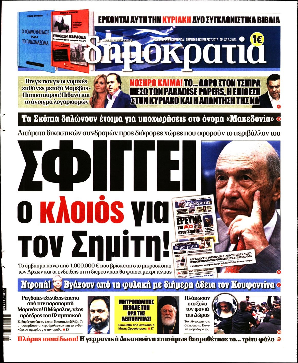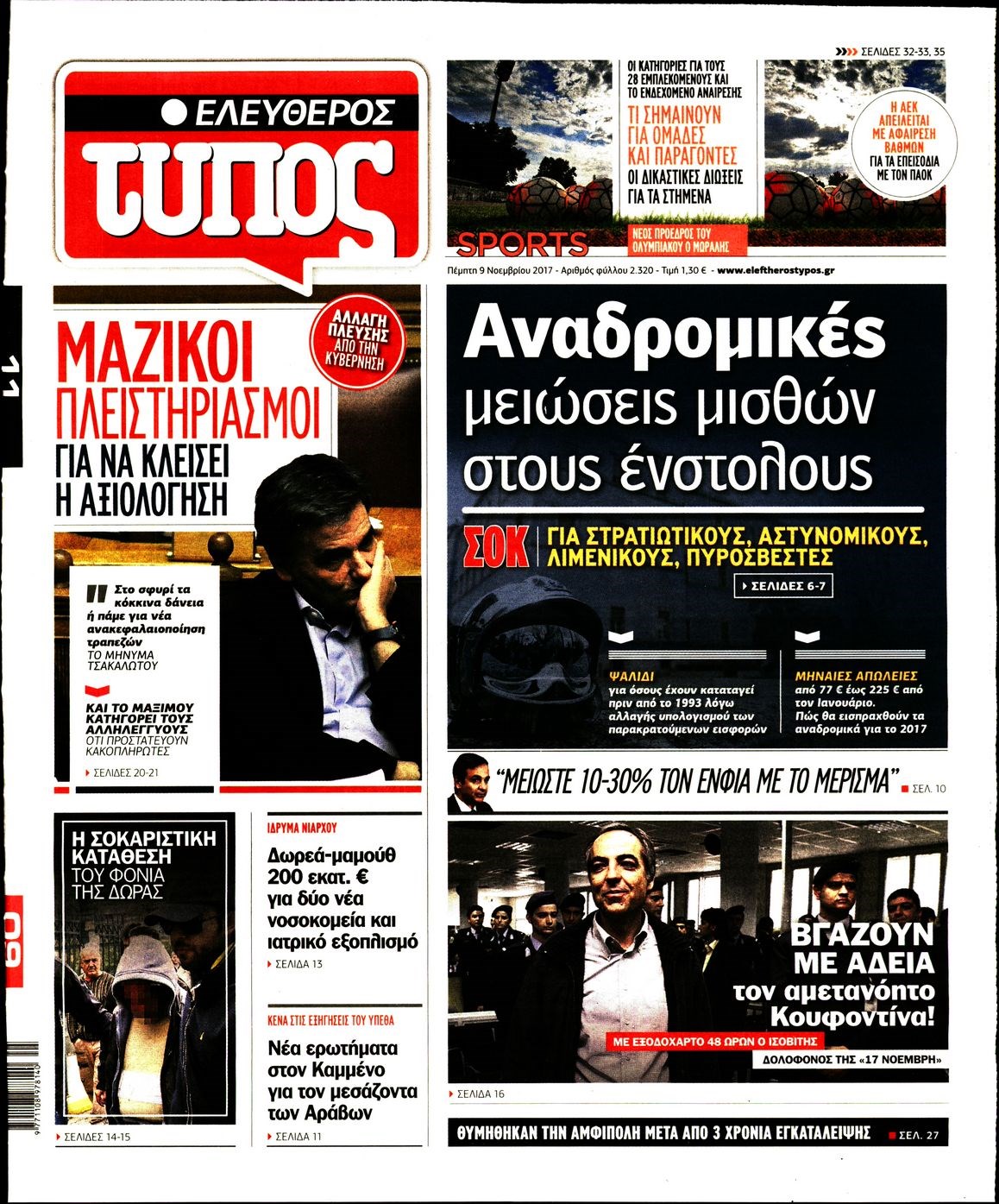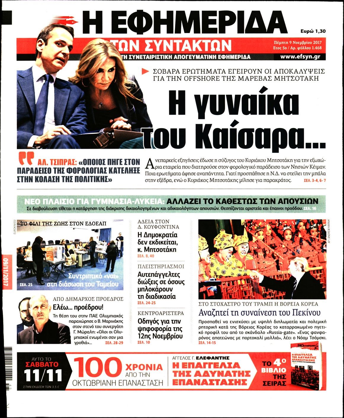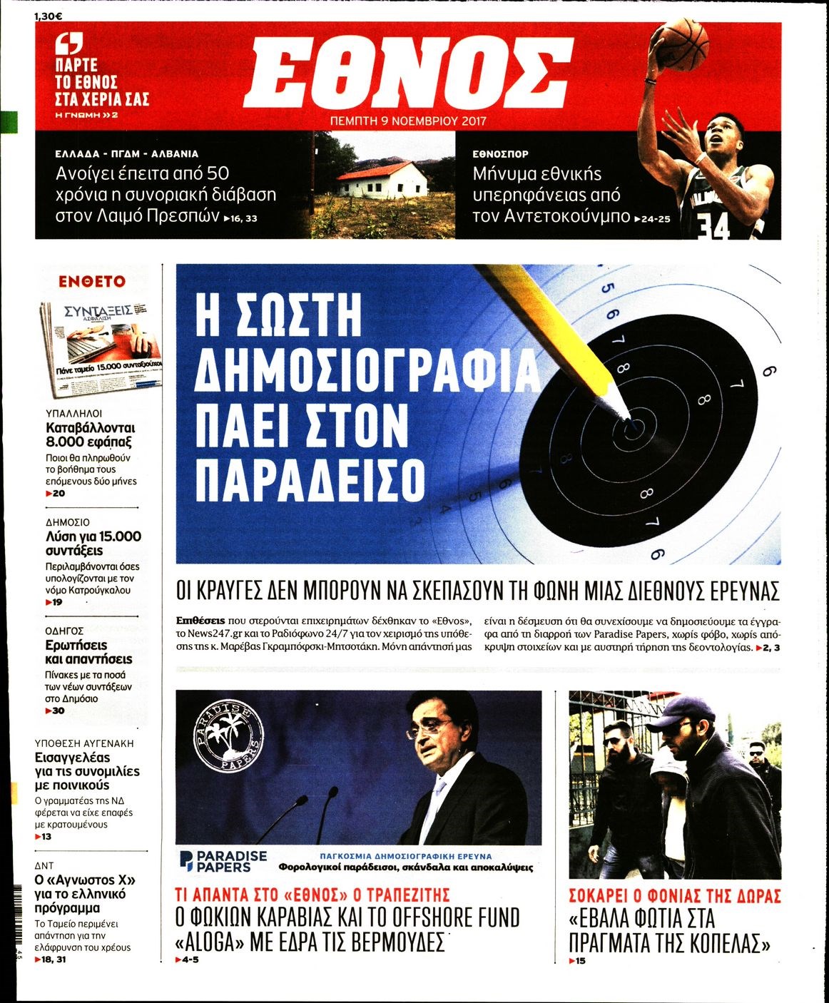 Οι πολιτικές εφημερίδες 9/11/2017 Enikos Newsroom 07:56, Πέμπτη 09 Νοεμβρίου 2017 Media Διαβάστε τα σημερινά πρωτοσέλιδα των πολιτικών εφημερίδων: ΠΟΛΙΤΙΚΕΣ ΕΦΗΜΕΡΙΔΕΣ ΠΡΩΤΟΣΕΛΙΔΑ Μοιράσου το: σχολίασε κι εσύ (0 σχόλια) Ακολουθήστε το enikos.gr στο Google News και μάθετε πρώτοι όλες τις ειδήσεις Δείτε όλες τις τελευταίες ειδήσεις από την Ελλάδα και τον Κόσμο στο enikos.gr Ειδήσεις Ροή Ειδήσεων 28 λεπτά πριν Τραμπ: Δεν αποκλείει την πιθανότητα ενός πολέμου στη Βενεζουέλα – «Ο Μαδούρο ξέρει καλύτερα από τον καθένα τι ακριβώς θέλω» 22 λεπτά πριν Ουκρανία: Η άνευ προηγουμένου επίθεση σε ρωσικό τάνκερ στη Μεσόγειο και το μήνυμα προς στον Πούτιν – Το «μακρύ χέρι» του Κιέβου 3 ώρες πριν Εμπλοκή και αερομαχίες με οπλισμένα τουρκικά F-16 στο Αιγαίο 3 ώρες πριν Πούτιν: «Ναι, είμαι ερωτευμένος» – Βίντεο από τη σπάνια προσωπική παραδοχή του 1 ώρα πριν Ανδρέας Λυκουρέντζος: Υπέβαλε την παραίτησή του ο πρόεδρος του ΕΛΓΑ, αλλά δεν έγινε δεκτή – Όλο το παρασκήνιο 2 ώρες πριν Αριθμολογία: Οι άνθρωποι που έχουν γεννηθεί αυτές τις 4 ημερομηνίες, συχνά παρεξηγούνται – «Η καλοσύνη τους κρύβει τεράστια δύναμη» 4 ώρες πριν Μήπως έχετε χάσει τον εαυτό σας στη σχέση σας; 7 «αθόρυβες» υποχωρήσεις που μάλλον κάνατε, χωρίς να το συνειδητοποιήσετε 3 ώρες πριν Ξεχάστε το καθάρισμα το Σαββατοκύριακο: Ο «κανόνας των 20 λεπτών» που θα σας λύσει τα χέρια 37 λεπτά πριν Ύπνος: Μια κρυφή κατάσταση του εγκεφάλου πριν από τον ύπνο μπορεί να είναι το “κλειδί” για υψηλή ευφυΐα και δημιουργικότητα 11 λεπτά πριν Χάρι και Μέγκαν: Η σπάνια οικογενειακή φωτογραφία με τον Άρτσι και τη Λίλιμπετ – Τι σχεδιάζουν για τα Χριστούγεννα 17 λεπτά πριν Βασίλης Καρράς: «Είναι πάντα δίπλα μου, δεν έφυγε…», λέει ο αδελφός του 22 λεπτά πριν Ουκρανία: Η άνευ προηγουμένου επίθεση σε ρωσικό τάνκερ στη Μεσόγειο και το μήνυμα προς στον Πούτιν – Το «μακρύ χέρι» του Κιέβου 28 λεπτά πριν Τραμπ: Δεν αποκλείει την πιθανότητα ενός πολέμου στη Βενεζουέλα – «Ο Μαδούρο ξέρει καλύτερα από τον καθένα τι ακριβώς θέλω» 29 λεπτά πριν Κηφισιά: Με πολλές απουσίες κόντρα στον Ολυμπιακό – «Last dance» για τον Τεττέη ENIKOS NETWORK Το ΕΚΑΒ τιμήθηκε από την Ακαδημία Αθηνών για τα 40 χρόνια προσφοράς του Έχετε πραγματικά μεγάλη καρδιά; 10 χαρακτηριστικά όσων έχουν καλοσύνη ΑΑΔΕ: Νέες αναβαθμίσεις στο Ψηφιακό Πελατολόγιο και την εφαρμογή myDATAapp – Τι πρέπει να γνωρίζετε Όμιλος ΔΕΗ: Νέα ορόσημα και ενισχυμένη διαφάνεια στην ετήσια Έκθεση Βιώσιμης Ανάπτυξης Χαρτογραφώντας το «σημείο χωρίς επιστροφή»: Για πρώτη φορά αποκαλύπτεται με λεπτομέρεια το ακανθώδες όριο της ατμόσφαιρας τ... Η Google καταργεί τη λειτουργία «dark web report» – Πώς θα μπορούν οι χρήστες να διαγράφουν τα δεδομένα τους περισσότερα 20:37 , Παρασκευή 19 Δεκεμβρίου 2025 Don’t Forget The Lyrics: Η Έλλη Κοκκίνου υποδέχεται 4 παίκτες που θα κάνουν τα πάντα για να μη χάσουν ούτε… μισή λέξη από τους στίχους Το «Don’t Forget The Lyrics» επιστρέφει απόψε, Παρασκευή 19 Δεκεμβρίου, στις 21:00 με νέο επει... 19:31 , Παρασκευή 19 Δεκεμβρίου 2025 GNTM: Απόψε ο μεγάλος τελικός για τους 4 φιναλίστ Έπειτα από μήνες γεμάτους μόδα, δημιουργία και έντονες αναμετρήσεις, το GNTM 2025 κορυφώνεται,... 18:11 , Παρασκευή 19 Δεκεμβρίου 2025 Το σόι σου: Ο Άρης έρχεται στην Ελλάδα για τις γιορτές των Χριστουγέννων – Τι θα δούμε στο αποψινό εορταστικό επεισόδιο Ένα απολαυστικό, εορταστικό επεισόδιο της σειράς “Το σόι σου”, γεμάτο ευτράπελα αλ... 15:15 , Παρασκευή 19 Δεκεμβρίου 2025 Την Κυριακή με τη Realnews: 