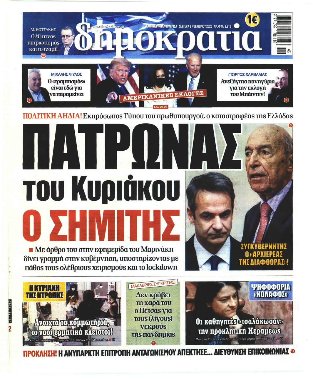 Οι πολιτικές εφημερίδες 9/11/2020 Σήφης Γαρυφαλάκης 06:39, Δευτέρα 09 Νοεμβρίου 2020 Media Διαβάστε τα πρωτοσέλιδα των πολιτικών εφημερίδων… ΕΦΗΜΕΡΙΔΕΣ ΠΟΛΙΤΙΚΕΣ ΕΦΗΜΕΡΙΔΕΣ ΠΡΩΤΟΣΕΛΙΔΑ ΠΡΩΤΟΣΕΛΙΔΑ ΕΦΗΜΕΡΙΔΩΝ Μοιράσου το: σχολίασε κι εσύ (0 σχόλια) Ακολουθήστε το enikos.gr στο Google News και μάθετε πρώτοι όλες τις ειδήσεις Δείτε όλες τις τελευταίες ειδήσεις από την Ελλάδα και τον Κόσμο στο enikos.gr Ειδήσεις Ροή Ειδήσεων 3 ώρες πριν Χριστούγεννα στα μπλόκα: Επιμένουν στις κινητοποιήσεις τους οι αγρότες – Ανοίγουν τα διόδια το Σαββατοκύριακο 3 ώρες πριν Ουκρανία: Η άνευ προηγουμένου επίθεση σε ρωσικό τάνκερ στη Μεσόγειο και το μήνυμα προς στον Πούτιν – Το «μακρύ χέρι» του Κιέβου 2 ώρες πριν Πούτιν: Τα μηνύματα σε Ευρώπη και ΝΑΤΟ από το μαραθώνιο «σόου» του – Η απαίτηση για «σεβασμό» και η ειρήνη «με τους όρους» της Μόσχας 3 ώρες πριν Τραμπ: Δεν αποκλείει την πιθανότητα ενός πολέμου στη Βενεζουέλα – «Ο Μαδούρο ξέρει καλύτερα από τον καθένα τι ακριβώς θέλω» 4 ώρες πριν Συνεχίζει να προκαλεί ο Μίτσκοσκι: «Για μένα το όνομα Μακεδονία είναι ιερό» 2 ώρες πριν Ανακαλύφθηκαν αρχαία χρυσά νομίσματα 2.200 ετών που απεικονίζουν τον θεό Απόλλωνα – Η άγνωστη σύνδεση με τον Φίλιππο Β΄ της Μακεδονίας 3 ώρες πριν Ύπνος: Μια κρυφή κατάσταση του εγκεφάλου πριν από τον ύπνο μπορεί να είναι το “κλειδί” για υψηλή ευφυΐα και δημιουργικότητα 4 ώρες πριν Αριθμολογία: Οι άνθρωποι που έχουν γεννηθεί αυτές τις 4 ημερομηνίες, συχνά παρεξηγούνται – «Η καλοσύνη τους κρύβει τεράστια δύναμη» 5 ώρες πριν Ξεχάστε το καθάρισμα το Σαββατοκύριακο: Ο «κανόνας των 20 λεπτών» που θα σας λύσει τα χέρια 7 λεπτά πριν Συρία: Μαζικά πλήγματα των ΗΠΑ σε θέσεις του Ισλαμικού Κράτους – Χέγκσεθ: «Δεν είναι αρχή πολέμου, είναι μια δήλωση εκδίκησης» για το θάνατο των στρατιωτών μας 19 λεπτά πριν Ουκρανία: Ολοκληρώθηκαν οι συνομιλίες με τους Αμερικανούς κι Ευρωπαίους διαπραγματευτές 34 λεπτά πριν Μπαρτσελόνα – Μπασκόνια 134-124: Οι «μπλαουγκράνα» πήραν το ματς της χρονιάς ύστερα από τρεις παρατάσεις 49 λεπτά πριν Φαίη Σκορδά: «Παλιότερα τα κομπλιμέντα τα προσπερνούσα, τώρα τα έχω ανάγκη» 1 ώρα πριν Βασίλης Σπανούλης: Δεν εμφανίστηκε ούτε ένας δημοσιογράφος στην συνέντευξη Τύπου – «Καλησπέρα στον… κανέναν», δείτε βίντεο ENIKOS NETWORK Το ΕΚΑΒ τιμήθηκε από την Ακαδημία Αθηνών για τα 40 χρόνια προσφοράς του Έχετε πραγματικά μεγάλη καρδιά; 10 χαρακτηριστικά όσων έχουν καλοσύνη Αναστολή μέτρων αναγκαστικής εκτέλεσης για κτηνοτρόφους που πλήττονται από την ευλογιά των αιγοπροβάτων Πλήρης επάρκεια προϊόντων στις λαϊκές της Αττικής, παρά τις αγροτικές κινητοποιήσεις – Τι απαντούν οι πωλητές Χαρτογραφώντας το «σημείο χωρίς επιστροφή»: Για πρώτη φορά αποκαλύπτεται με λεπτομέρεια το ακανθώδες όριο της ατμόσφαιρας τ... Η Google καταργεί τη λειτουργία «dark web report» – Πώς θα μπορούν οι χρήστες να διαγράφουν τα δεδομένα τους περισσότερα 22:42 , Παρασκευή 19 Δεκεμβρίου 2025 Γιώργος Γιαννόπουλος για “Το σόι σου”: “Είναι ευτυχία και ευλογία αυτή η σειρά” «Είναι ευτυχία και ευλογία η συγκυρία αυτής της σειράς», θα πει ο Γιώργος Γιαννόπουλος -ο αγαπ... 20:37 , Παρασκευή 19 Δεκεμβρίου 2025 Don’t Forget The Lyrics: Η Έλλη Κοκκίνου υποδέχεται 4 παίκτες που θα κάνουν τα πάντα για να μη χάσουν ούτε… μισή λέξη από τους στίχους Το «Don’t Forget The Lyrics» επιστρέφει απόψε, Παρασκευή 19 Δεκεμβρίου, στις 21:00 με νέο επει... 19:31 , Παρασκευή 19 Δεκεμβρίου 2025 GNTM: Απόψε ο μεγάλος τελικός γι