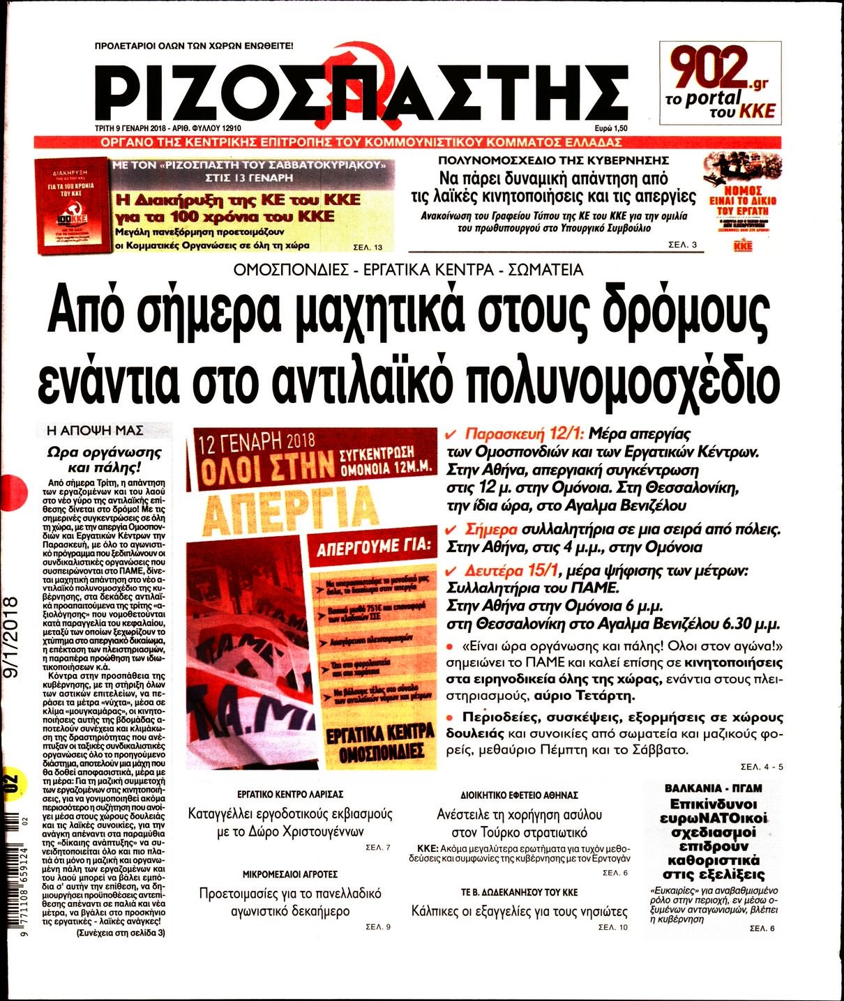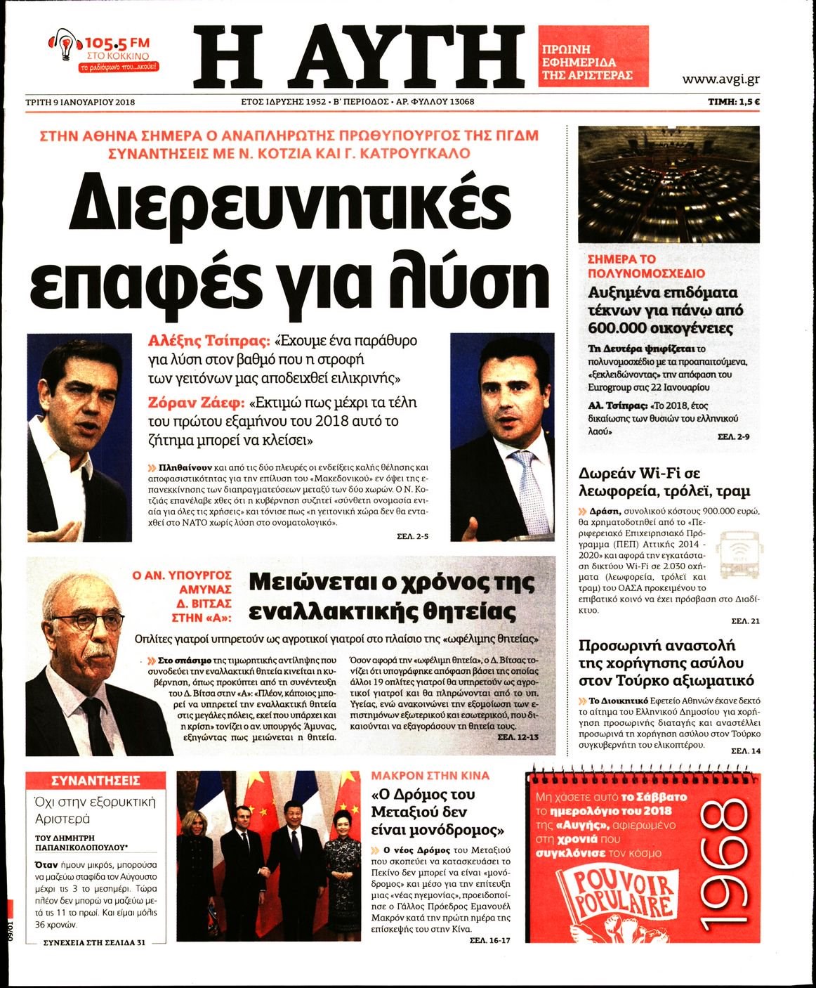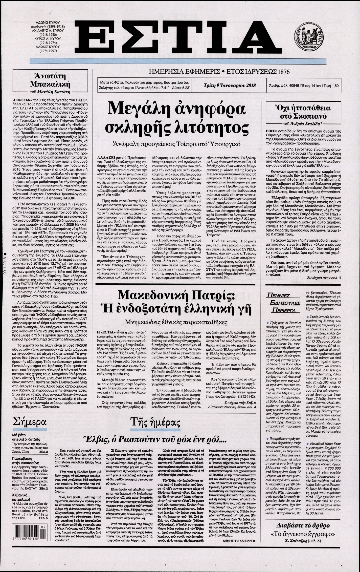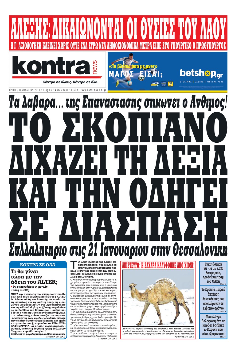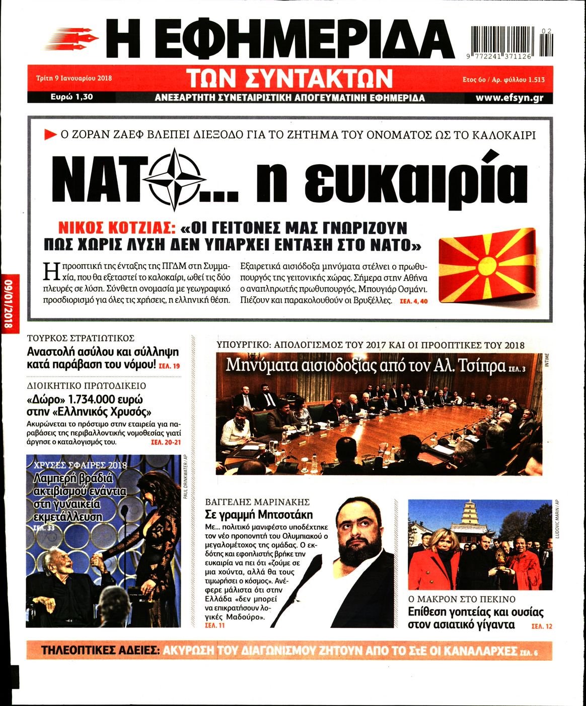 Οι πολιτικές εφημερίδες 9/1/2018 Enikos Newsroom 07:28, Τρίτη 09 Ιανουαρίου 2018 Media Διαβάστε τα σημερινά πρωτοσέλιδα των πολιτικών εφημερίδων: ΠΟΛΙΤΙΚΕΣ ΕΦΗΜΕΡΙΔΕΣ ΠΡΩΤΟΣΕΛΙΔΑ Μοιράσου το: σχολίασε κι εσύ (0 σχόλια) Ακολουθήστε το enikos.gr στο Google News και μάθετε πρώτοι όλες τις ειδήσεις Δείτε όλες τις τελευταίες ειδήσεις από την Ελλάδα και τον Κόσμο στο enikos.gr Ειδήσεις Ροή Ειδήσεων 4 ώρες πριν Χριστούγεννα στα μπλόκα: Επιμένουν στις κινητοποιήσεις τους οι αγρότες – Ανοίγουν τα διόδια το Σαββατοκύριακο 4 ώρες πριν Ουκρανία: Η άνευ προηγουμένου επίθεση σε ρωσικό τάνκερ στη Μεσόγειο και το μήνυμα προς στον Πούτιν – Το «μακρύ χέρι» του Κιέβου 4 ώρες πριν Πούτιν: Τα μηνύματα σε Ευρώπη και ΝΑΤΟ από το μαραθώνιο «σόου» του – Η απαίτηση για «σεβασμό» και η ειρήνη «με τους όρους» της Μόσχας 4 ώρες πριν Τραμπ: Δεν αποκλείει την πιθανότητα ενός πολέμου στη Βενεζουέλα – «Ο Μαδούρο ξέρει καλύτερα από τον καθένα τι ακριβώς θέλω» 5 ώρες πριν Συνεχίζει να προκαλεί ο Μίτσκοσκι: «Για μένα το όνομα Μακεδονία είναι ιερό» 4 ώρες πριν Ανακαλύφθηκαν αρχαία χρυσά νομίσματα 2.200 ετών που απεικονίζουν τον θεό Απόλλωνα – Η άγνωστη σύνδεση με τον Φίλιππο Β΄ της Μακεδονίας 5 ώρες πριν Ύπνος: Μια κρυφή κατάσταση του εγκεφάλου πριν από τον ύπνο μπορεί να είναι το “κλειδί” για υψηλή ευφυΐα και δημιουργικότητα 6 ώρες πριν Αριθμολογία: Οι άνθρωποι που έχουν γεννηθεί αυτές τις 4 ημερομηνίες, συχνά παρεξηγούνται – «Η καλοσύνη τους κρύβει τεράστια δύναμη» 7 ώρες πριν Ξεχάστε το καθάρισμα το Σαββατοκύριακο: Ο «κανόνας των 20 λεπτών» που θα σας λύσει τα χέρια 6 λεπτά πριν Ντόναλντ Τραμπ: «Πολύ βαριά αντίποινα» στη Συρία – «Πλήττουμε πολύ δυνατά οχυρά του Ισλαμικού Κράτους» 21 λεπτά πριν Εξάρχεια: Ένταση με μολότοφ, χημικά και κρότου λάμψης 36 λεπτά πριν ΗΠΑ: Τραγωδία στην Αλαμπάμα – Σκότωσε την δημοσιογράφο σύζυγό του και αυτοκτόνησε μπροστά στον 3χρονο γιο τους 51 λεπτά πριν Πρόταση γάμου στο ΣΕΦ κατά την διάρκεια του αγώνα Ολυμπιακός-Βιλερμπάν – Δείτε βίντεο 1 ώρα πριν Euroleague: Επέστρεψε στις νίκες ο Ολυμπιακός, πήρε την ματσάρα της χρονιάς η Μπάρτσα – Τα αποτελέσματα και η βαθμολογία ENIKOS NETWORK Το ΕΚΑΒ τιμήθηκε από την Ακαδημία Αθηνών για τα 40 χρόνια προσφοράς του Έχετε πραγματικά μεγάλη καρδιά; 10 χαρακτηριστικά όσων έχουν καλοσύνη Αναστολή μέτρων αναγκαστικής εκτέλεσης για κτηνοτρόφους που πλήττονται από την ευλογιά των αιγοπροβάτων Πλήρης επάρκεια προϊόντων στις λαϊκές της Αττικής, παρά τις αγροτικές κινητοποιήσεις – Τι απαντούν οι πωλητές Χαρτογραφώντας το «σημείο χωρίς επιστροφή»: Για πρώτη φορά αποκαλύπτεται με λεπτομέρεια το ακανθώδες όριο της ατμόσφαιρας τ... Η Google καταργεί τη λειτουργία «dark web report» – Πώς θα μπορούν οι χρήστες να διαγράφουν τα δεδομένα τους περισσότερα 22:42 , Παρασκευή 19 Δεκεμβρίου 2025 Γιώργος Γιαννόπουλος για “Το σόι σου”: “Είναι ευτυχία και ευλογία αυτή η σειρά” «Είναι ευτυχία και ευλογία η συγκυρία αυτής της σειράς», θα πει ο Γιώργος Γιαννόπουλος -ο αγαπ... 20:37 , Παρασκευή 19 Δεκεμβρίου 2025 Don’t Forget The Lyrics: Η Έλλη Κοκκίνου υποδέχεται 4 παίκτες που θα κάνουν τα πάντα για να μη χάσουν ούτε… μισή λέξη από τους στίχους Το «Don’t Forget The Lyrics» επιστρέφει απόψε, Παρασκευή 19 Δεκεμβρίου, στις 21:00 με νέο επει... 19:31 , Παρασκευή 19 Δεκεμβρίου 2025 GNTM: Απόψε ο μεγάλος τελικός για τους 4 φιναλίστ Έπειτα από μήνες γεμάτους μόδα, δημιουργία και έντονες αναμετρήσεις, το GNTM 2025 κορυφώνεται,... 18:11 , Παρασκ