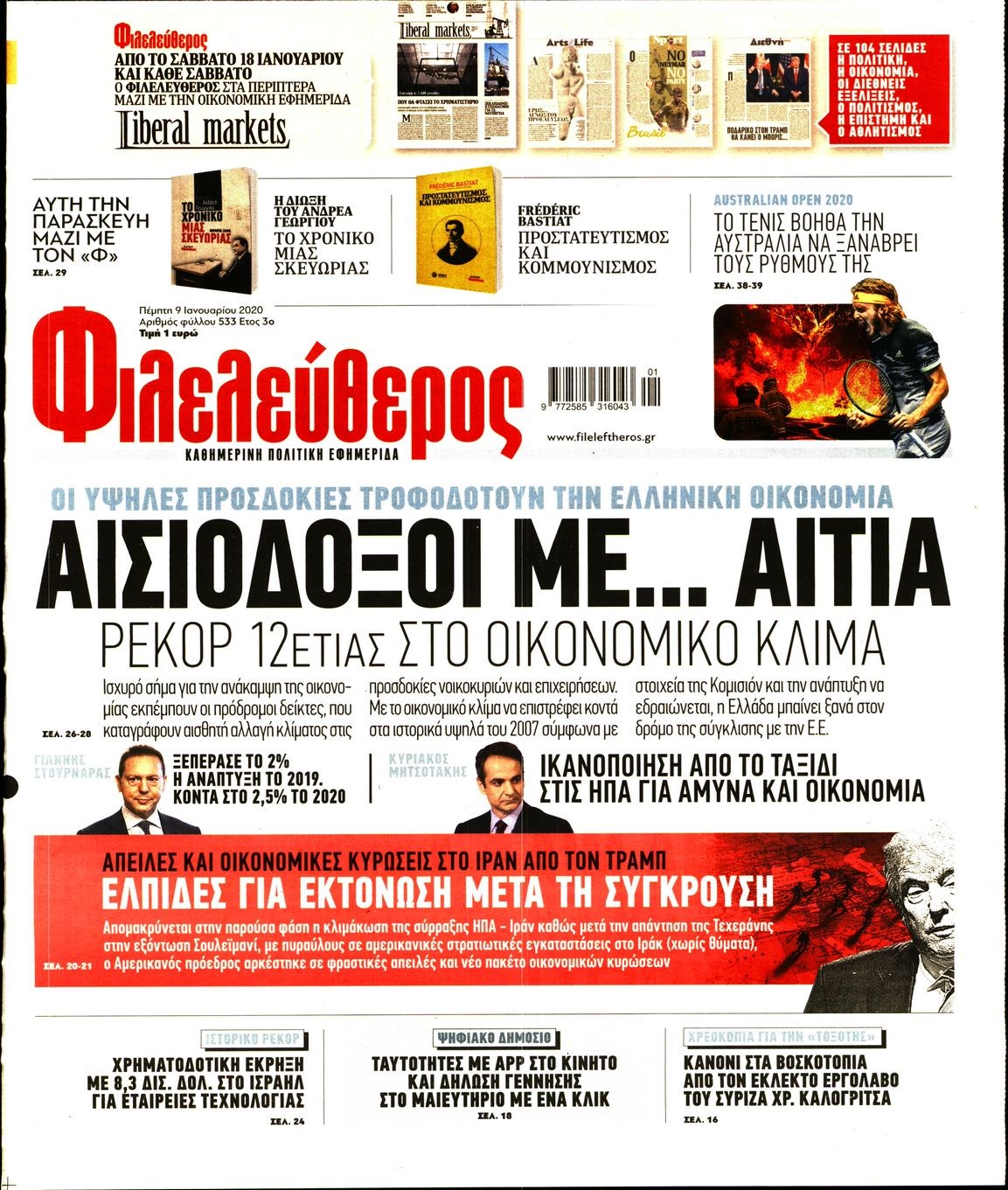 Οι πολιτικές εφημερίδες 9/1/2020 Διονύσης Νίκκας 06:34, Πέμπτη 09 Ιανουαρίου 2020 Media Διαβάστε τα πρωτοσέλιδα των πολιτικών εφημερίδων… ΕΦΗΜΕΡΙΔΕΣ ΠΟΛΙΤΙΚΕΣ ΠΡΩΤΟΣΕΛΙΔΑ Μοιράσου το: σχολίασε κι εσύ (0 σχόλια) Ακολουθήστε το enikos.gr στο Google News και μάθετε πρώτοι όλες τις ειδήσεις Δείτε όλες τις τελευταίες ειδήσεις από την Ελλάδα και τον Κόσμο στο enikos.gr Ειδήσεις Ροή Ειδήσεων 2 ώρες πριν Σίδνεϊ: Νέο συγκλονιστικό βίντεο από την τρομοκρατική επίθεση – Οι φωνές, οι εκκλήσεις και ο ήρωας που αφόπλισε έναν από τους δράστες 3 ώρες πριν Αγρότες: Έδωσαν στη δημοσιότητα τη λίστα με τα αιτήματά τους – Δείτε αναλυτικά τι ζητούν 5 ώρες πριν ΟΠΕΚΕΠΕ-Κρήτη: Προθεσμία να απολογηθούν από την Τρίτη έως την Πέμπτη έλαβαν οι 16 συλληφθέντες 2 ώρες πριν Τραγική εξέλιξη στο Αίγιο: Πέθανε ο 43χρονος που γρονθοκόπησε γιατρό στο νοσοκομείο 28 λεπτά πριν Λακωνία: Βίντεο ντοκουμέντο από την επιχείρηση διάσωσης της 13χρονης που έπεσε σε πηγάδι – Ποια ήταν τα πρώτα λόγια της 2 ώρες πριν Οι 7 βραδινές συνήθειες που μαρτυρούν ότι κάποιος υποφέρει από βαθιά μοναξιά, σύμφωνα με την ψυχολογία 5 ώρες πριν Τα 5 ζώδια που ευνοούνται στα ερωτικά τους έως τις 21 Δεκεμβρίου – «Η επόμενη σχέση σας θα είναι καθοριστική» 10 ώρες πριν Τα 8 πράγματα που τα ευτυχισμένα ζευγάρια δεν κάνουν ποτέ μπροστά στα παιδιά τους 1 ώρα πριν Κουζίνα: Η καθημερινή συνήθεια των ανθρώπων που την διατηρούν πάντα καθαρή 9 λεπτά πριν Αριθμολογία: Οι άνθρωποι που έχουν γεννηθεί αυτές τις 3 ημερομηνίες, μεταμορφώνονται με το πέρασμα των χρόνων 12 λεπτά πριν Κασσελάκης: Συγκαλεί έκτακτο συνέδριο στις 7 και 8 Φεβρουαρίου – «Μαζί θα αποφασίσουμε εάν και πώς θα συνεχιστεί το Κίνημα Δημοκρατίας» 21 λεπτά πριν Δήμητρα Δουμένη για την Κάτια Δανδουλάκη: «Είμαστε ακόμη πάρα πολύ κοντά, είναι για μένα πνευματική μου μητέρα» 28 λεπτά πριν Λακωνία: Βίντεο ντοκουμέντο από την επιχείρηση διάσωσης της 13χρονης που έπεσε σε πηγάδι – Ποια ήταν τα πρώτα λόγια της 37 λεπτά πριν Ανδρουλάκης για την επίθεση στο Σίδνεϊ: Θλίψη και αποτροπιασμός ENIKOS NETWORK 8 κορυφαίες συμβουλές για άνδρες που θέλουν φλογερή σεξουαλική ζωή, σύμφωνα με ειδικό Baby botox: Ποια τα οφέλη και οι κίνδυνοι του να ξεκινήσει κάποιος τις ενέσεις πριν εμφανιστούν ρυτίδες Καιρός: Γενικά αίθριος με κανονικές για την εποχή θερμοκρασίες Διεθνείς οίκοι: «Ψηφίζουν» ελληνικά ομόλογα και το 2026 και «βλέπουν» νέες αναβαθμίσεις Σύγχρονος Νοστράδαμος: Προειδοποιεί για «μεγάλο γεγονός» τους επόμενους μήνες που θα συγκλονίσει τη Βρετανία και τον κόσμο Τεστ παρατηρητικότητας: Μπορείτε να βρείτε τις 3 διαφορές στις εικόνες με έναν πιγκουίνο σε 14 δευτερόλεπτα περισσότερα 17:38 , Κυριακή 14 Δεκεμβρίου 2025 Τηλεθέαση (13/12): Τα ποσοστά για το βράδυ του Σαββάτου Η «μάχη» της prime time για την τηλεθέαση, συνεχίστηκε δυναμικά το βράδυ του Σαββάτου (13/12).... 16:32 , Κυριακή 14 Δεκεμβρίου 2025 Τηλεθέαση (13/12): Πώς κινήθηκαν οι εκπομπές στην πρωινή ζώνη το Σάββατο Με αμείωτη ένταση συνεχίστηκε η μάχη για την τηλεθέαση στην πρωινή ζώνη των τηλεοπτικών καναλι... 15:07 , Κυριακή 14 Δεκεμβρίου 2025 IQ160: Η Μαρίνα στέλνει το φούτερ του Τηλέμαχου για το τεστ πατρότητας Η Πηνελόπη αποφασίζει να κάνει αμνιοπαρακέντηση, για να βεβαιωθεί για την υγεία του μωρού της ... 12:46 , Κυριακή 14 Δεκεμβρίου 2025 Η Realnews στο www.pressreader.com Διαβάστε την ψηφιακή έκδοση της εφημερίδας στην οθόνη του κινητού, του tablet και του υπολογισ... ΤΕΛΕΥΤΑΙΕΣ ΕΙΔΗΣΕΙΣ 9 λεπτά πριν Αριθμο